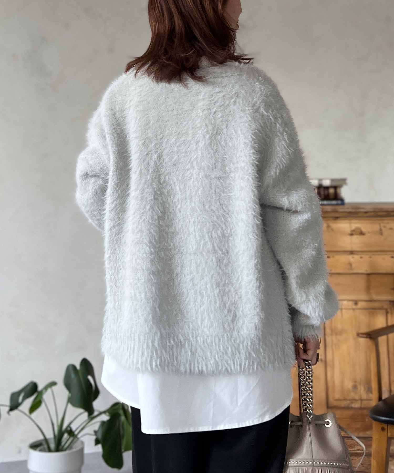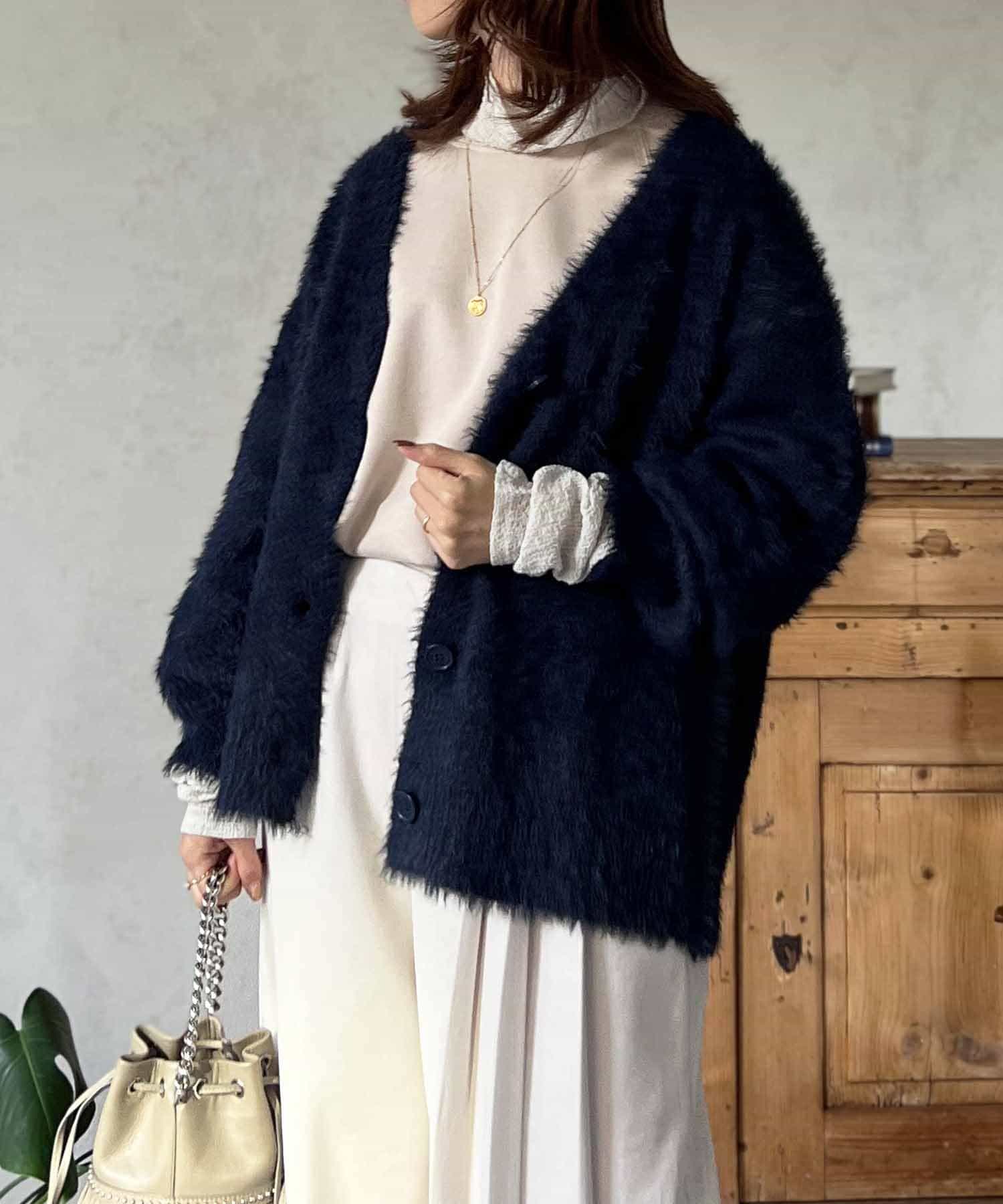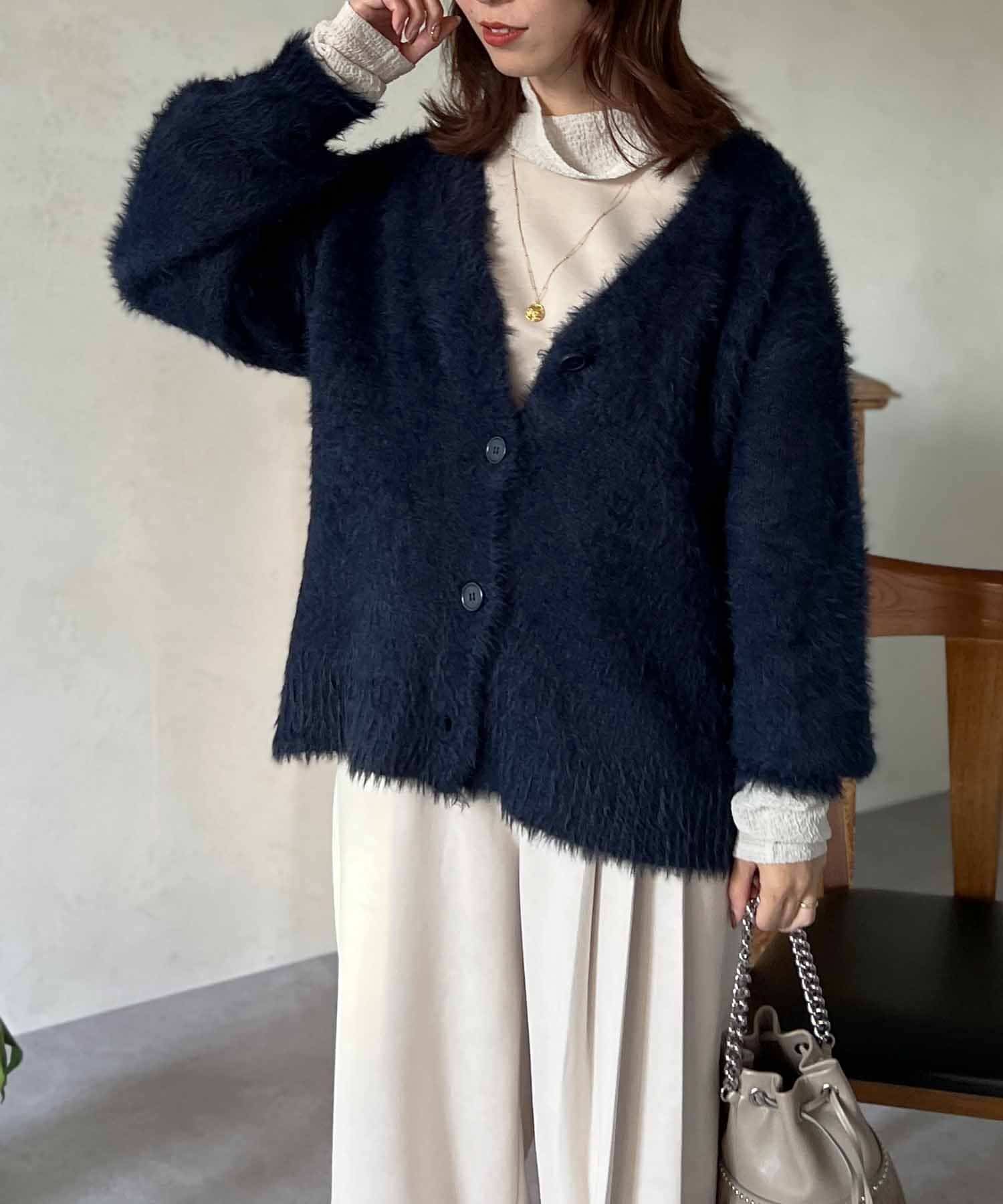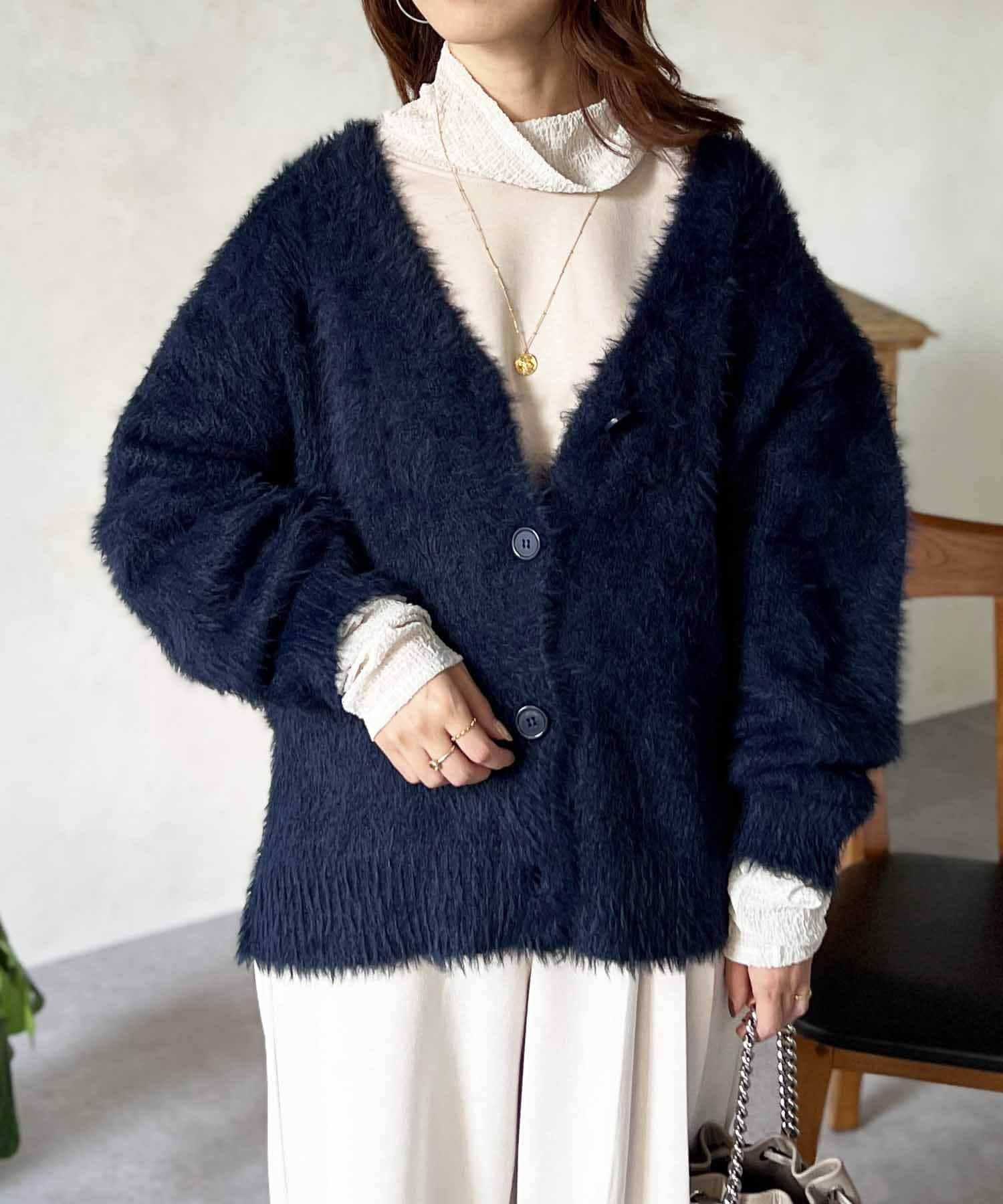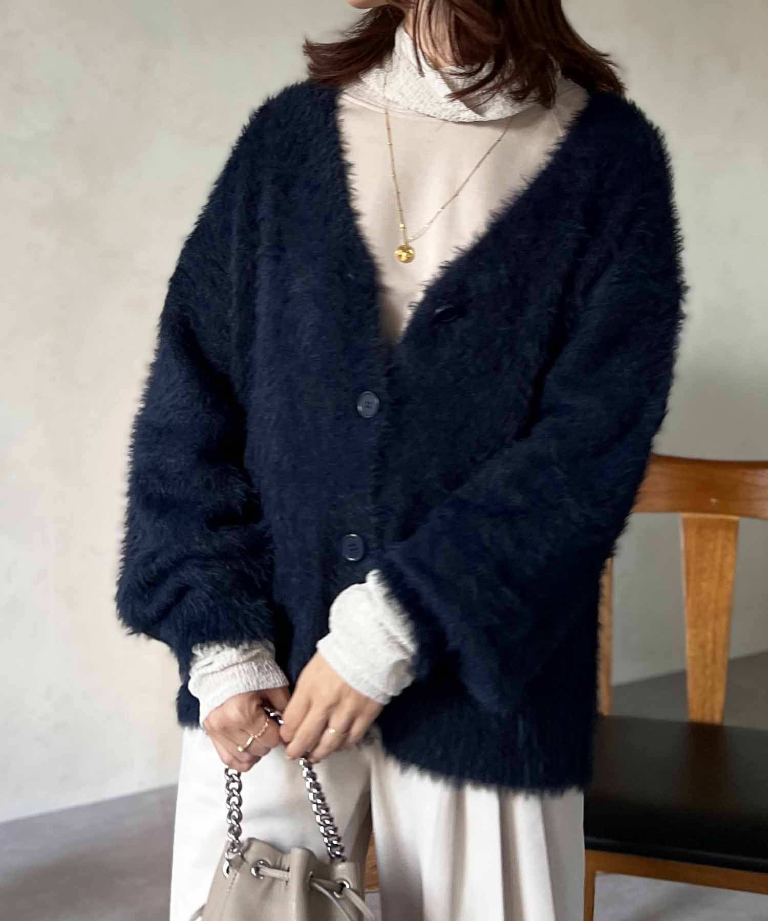 程良くルーズ感のあるシャギーカーディガン。