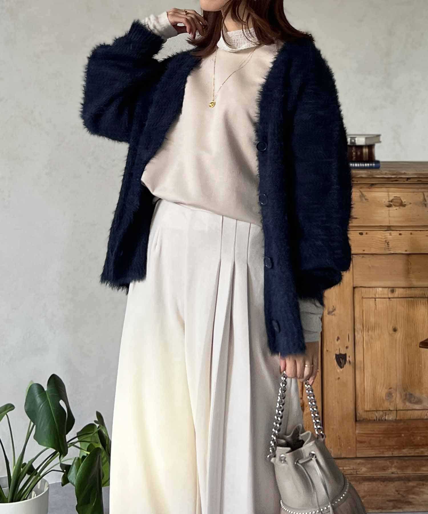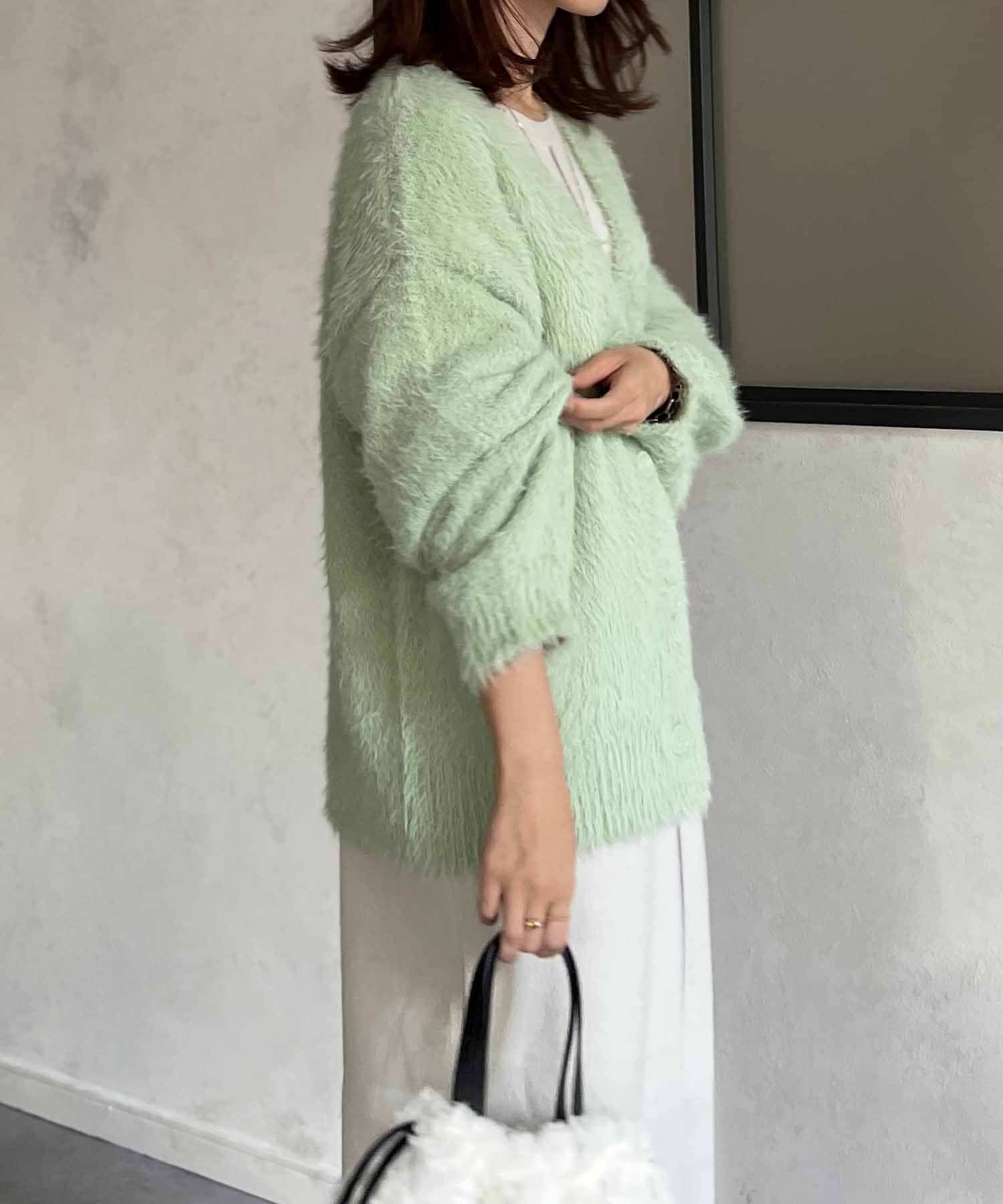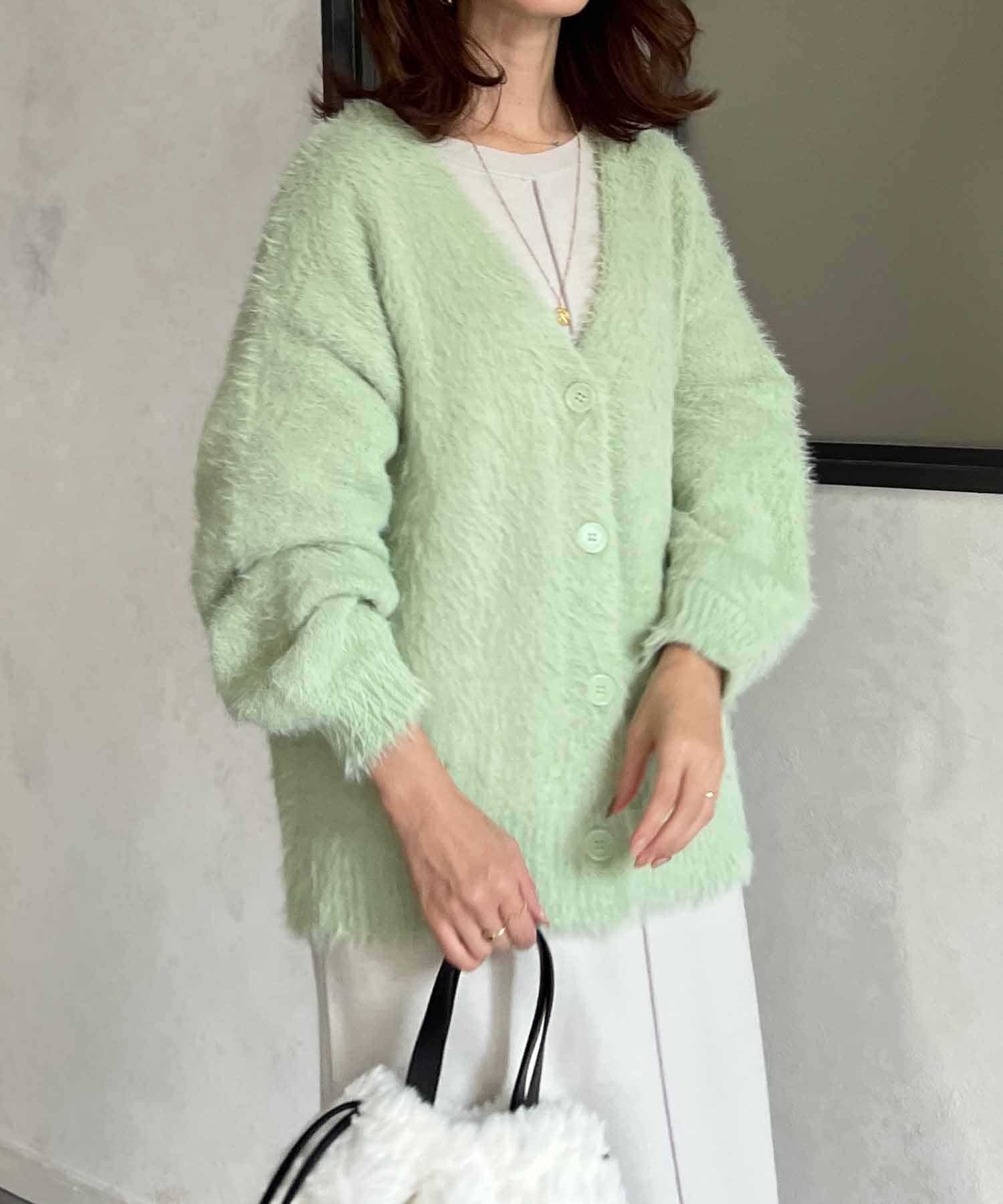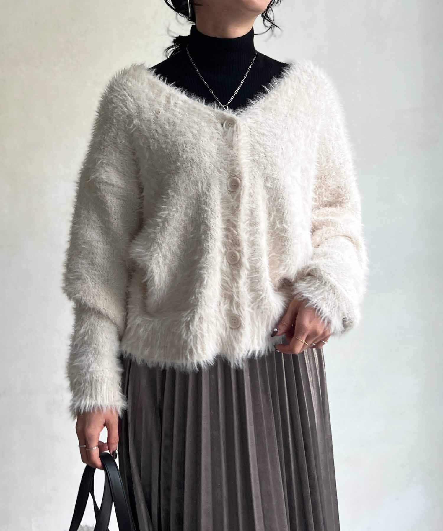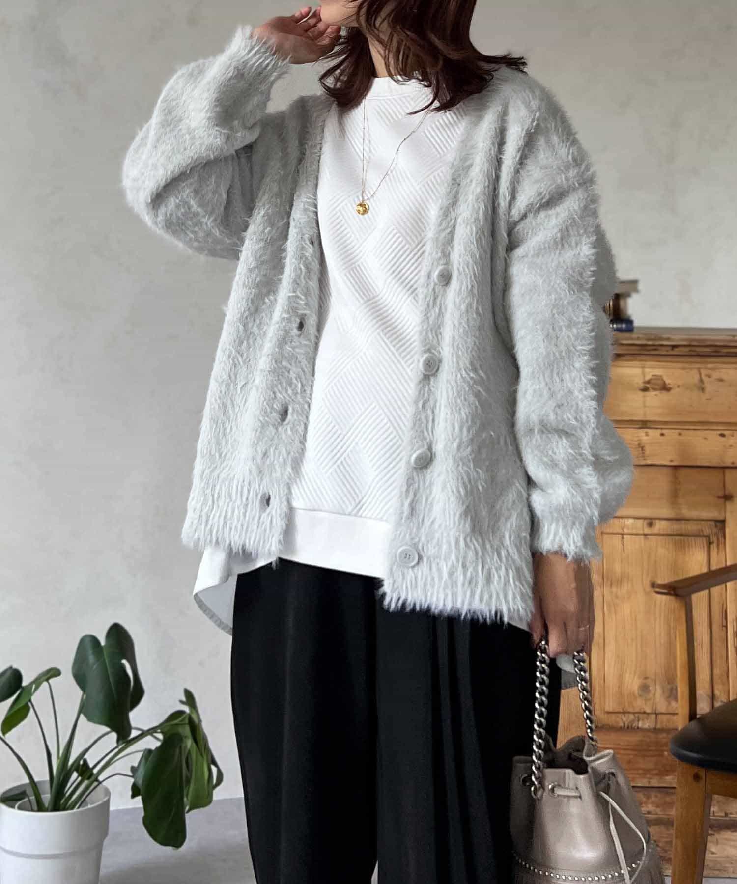 程良くルーズ感のあるシャギーカーディガン。