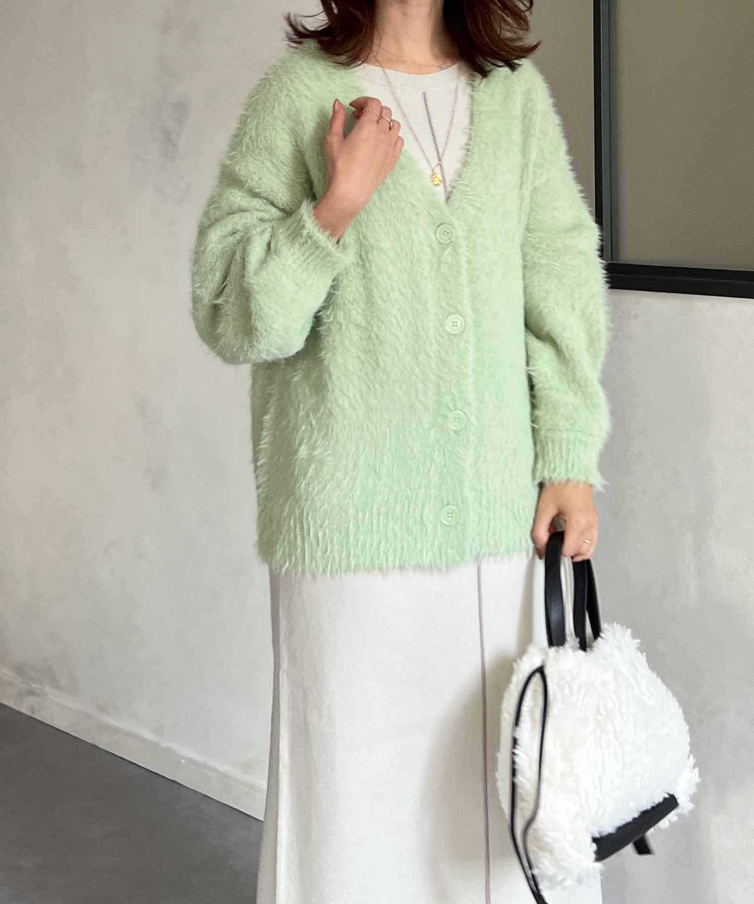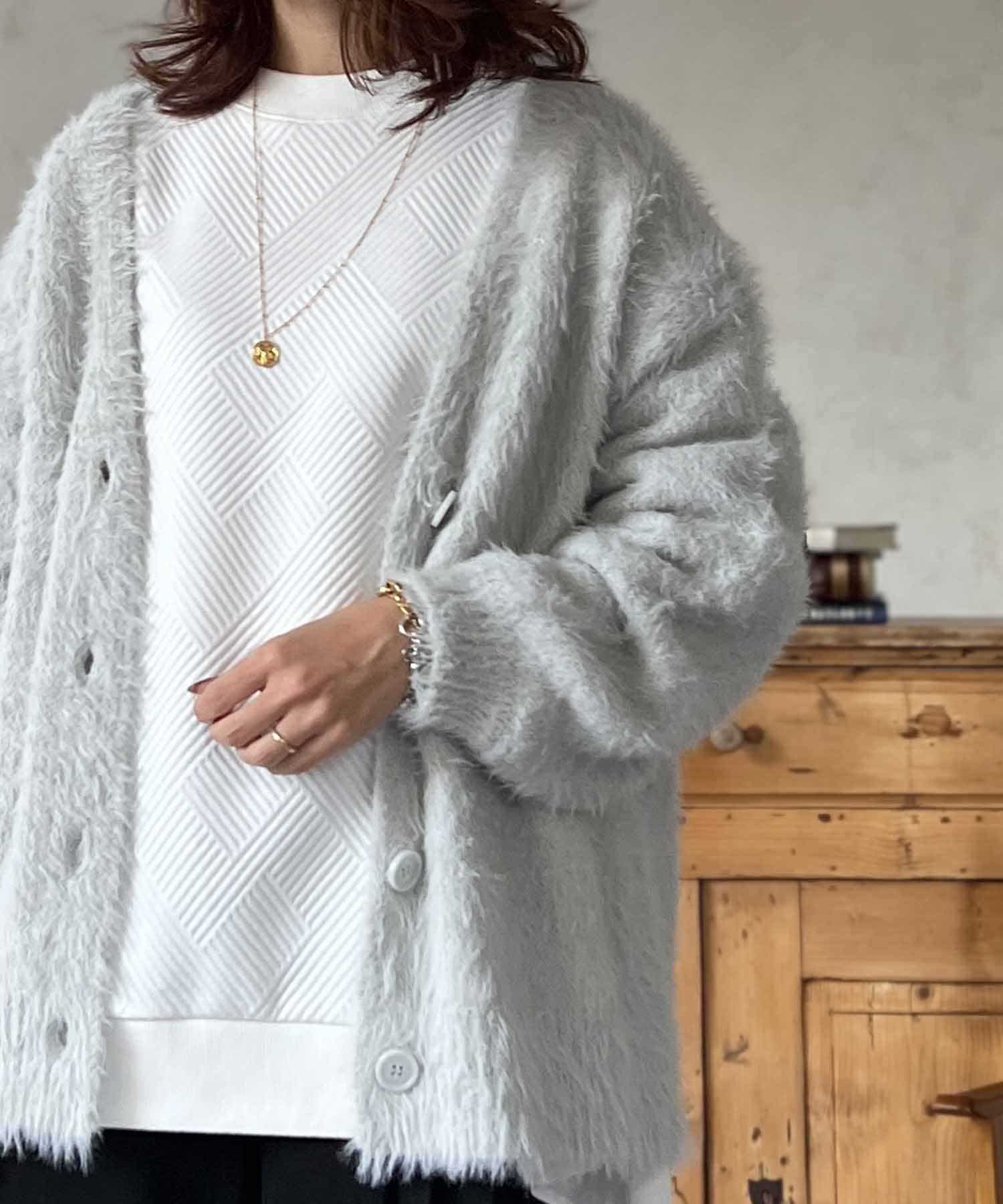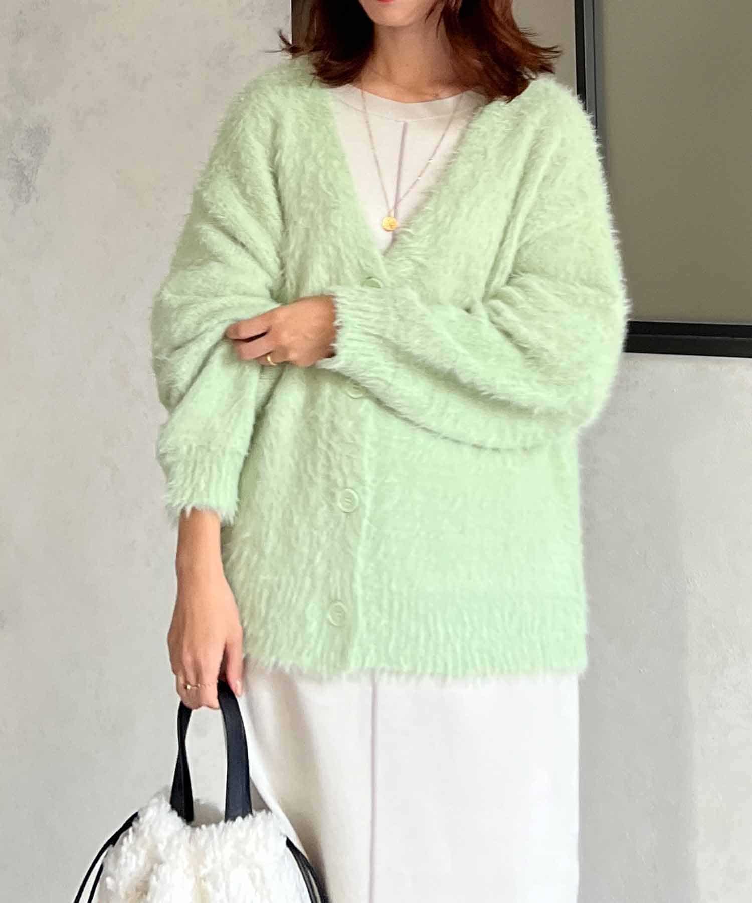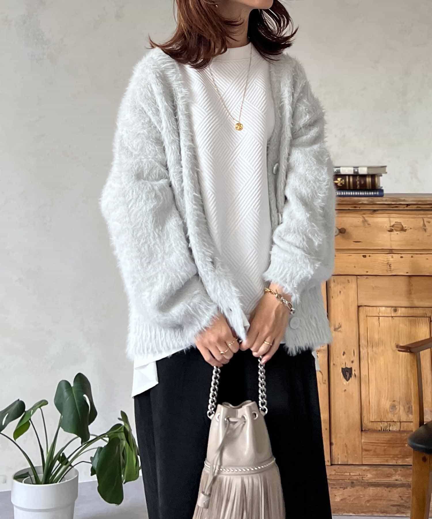 程良くルーズ感のあるシャギーカーディガン。