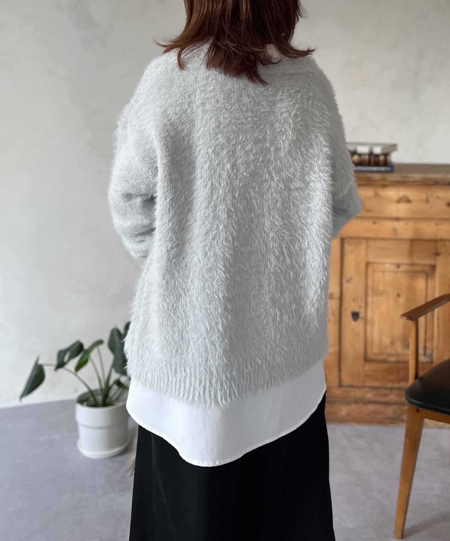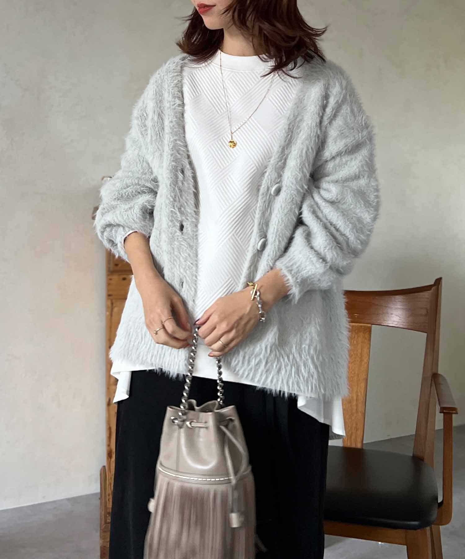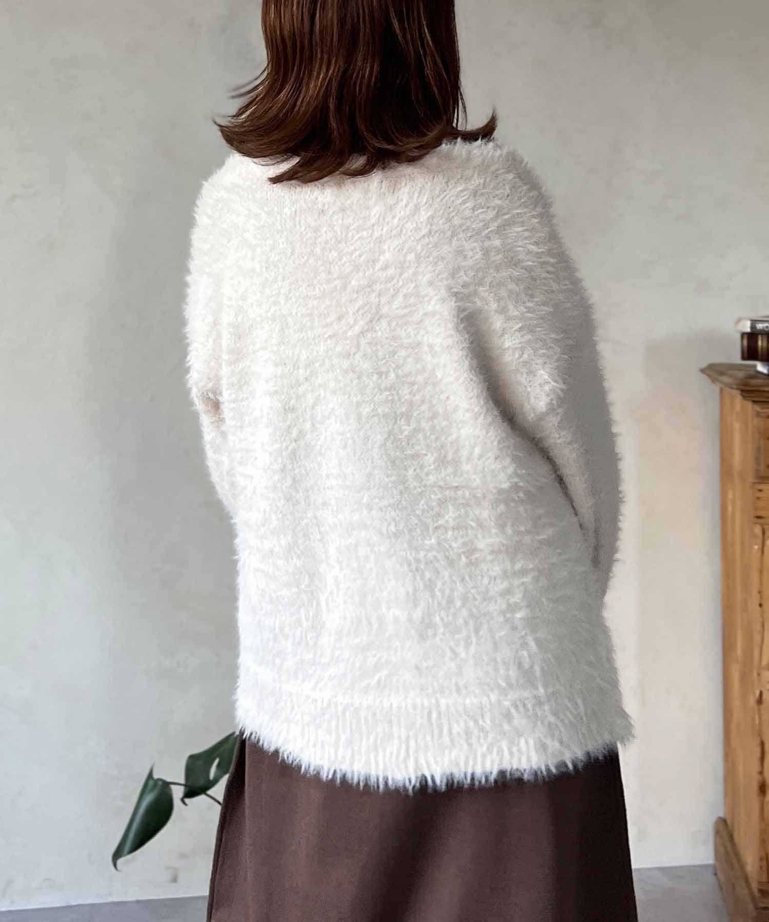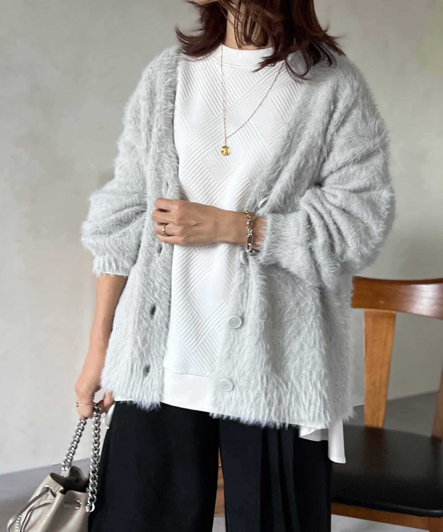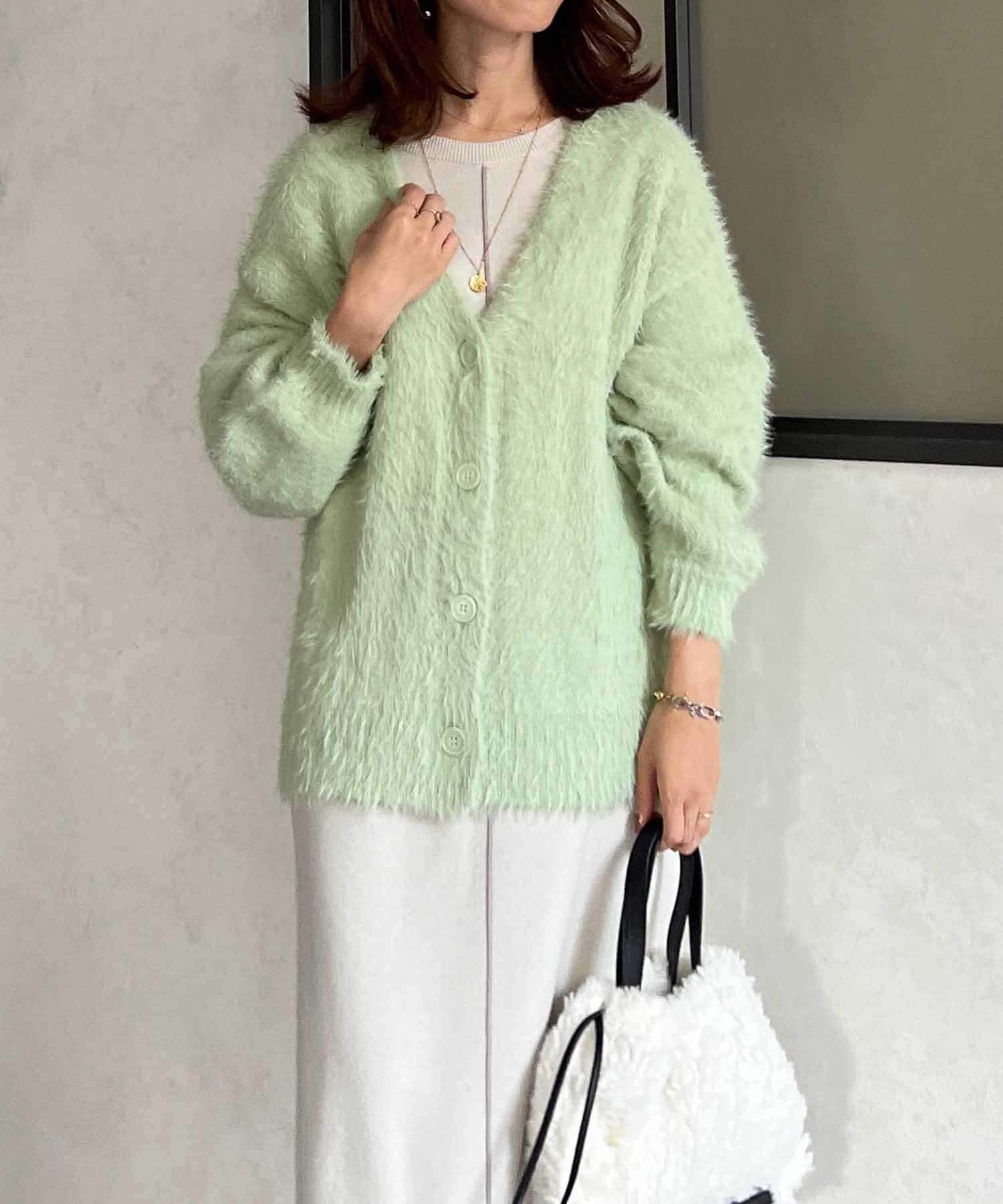 程良くルーズ感のあるシャギーカーディガン。