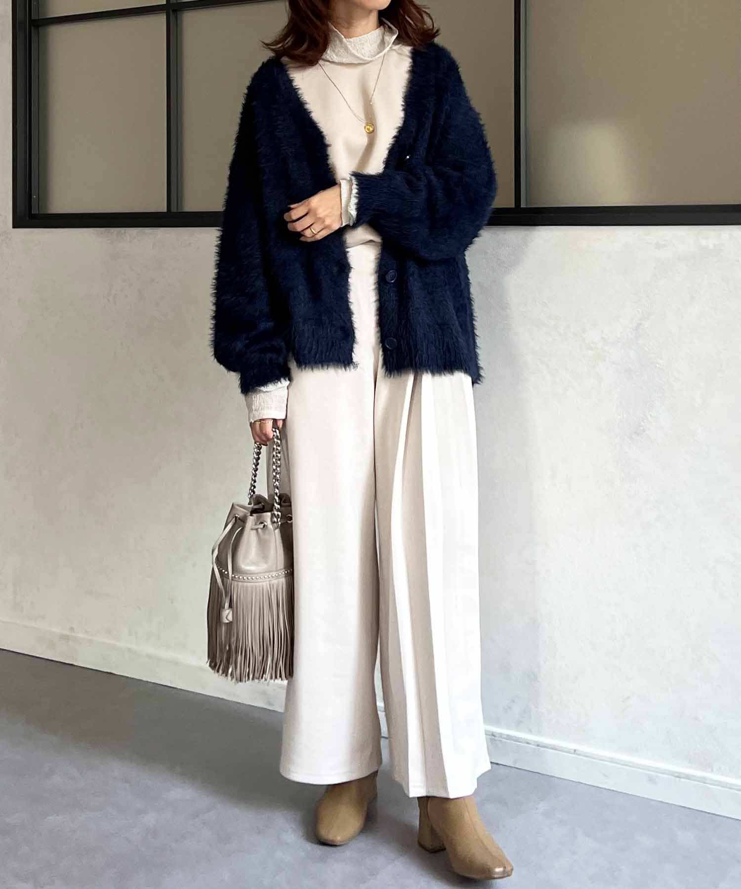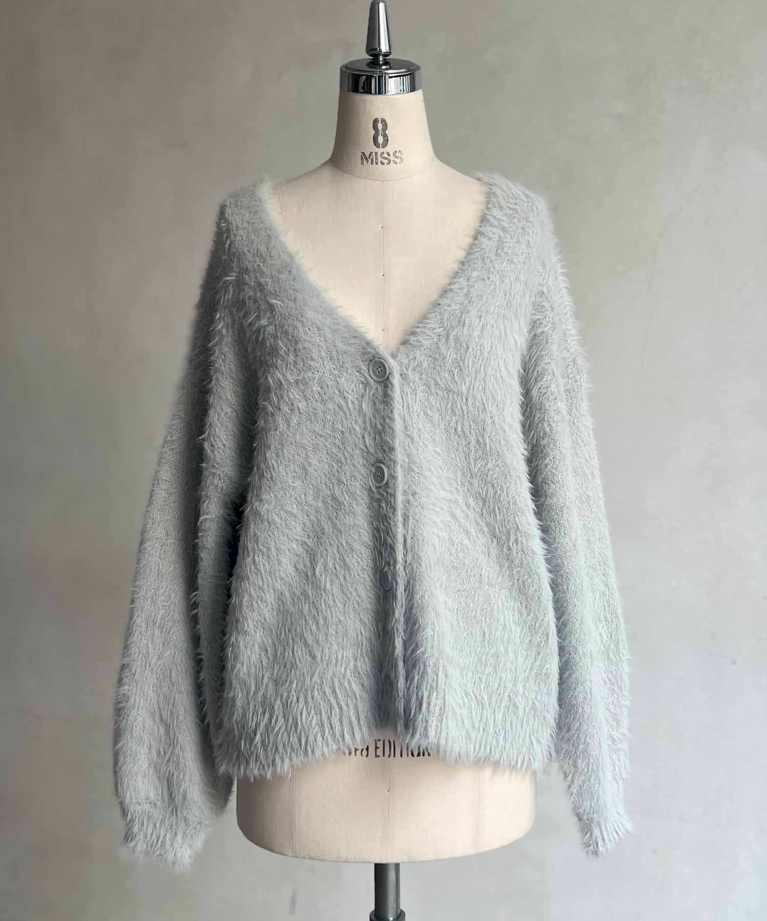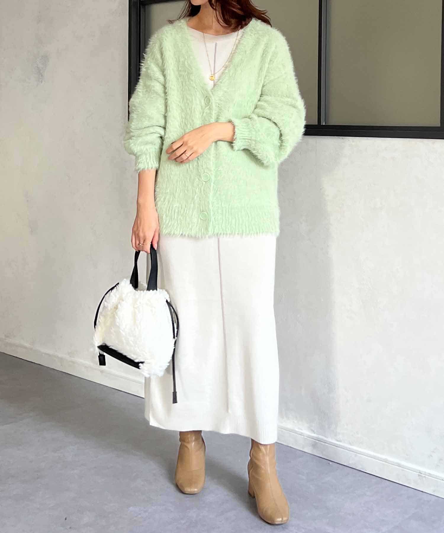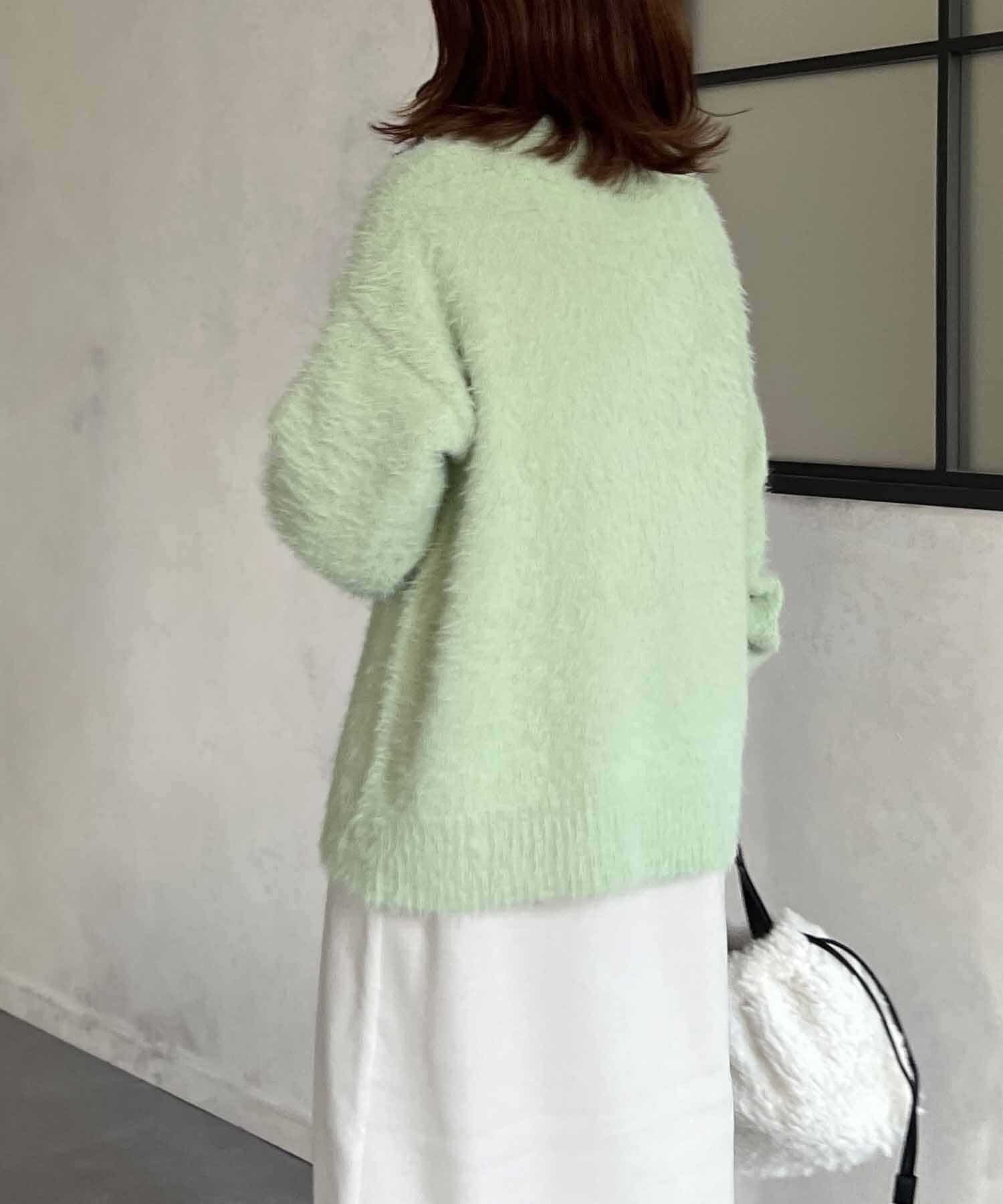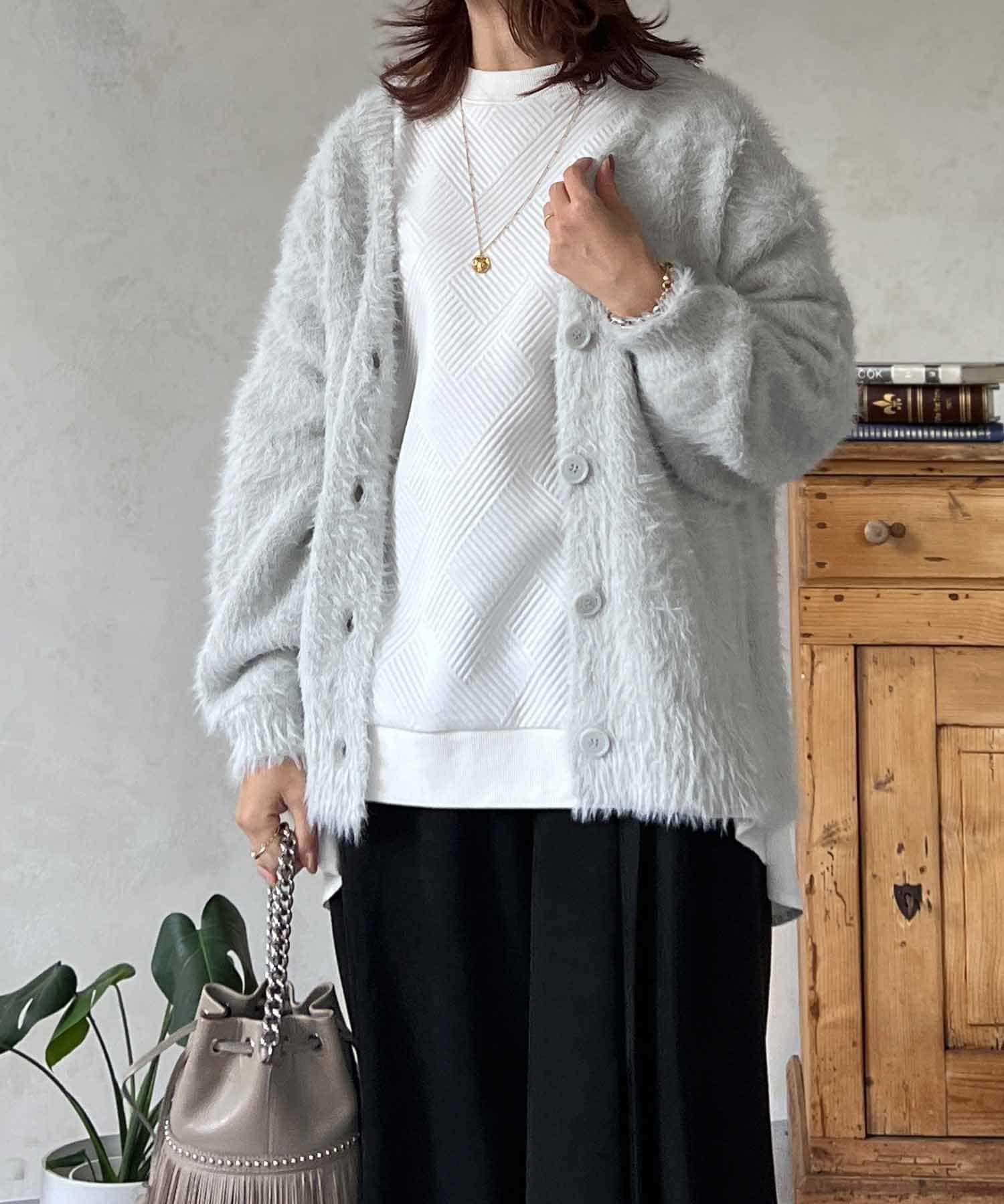 程良くルーズ感のあるシャギーカーディガン。