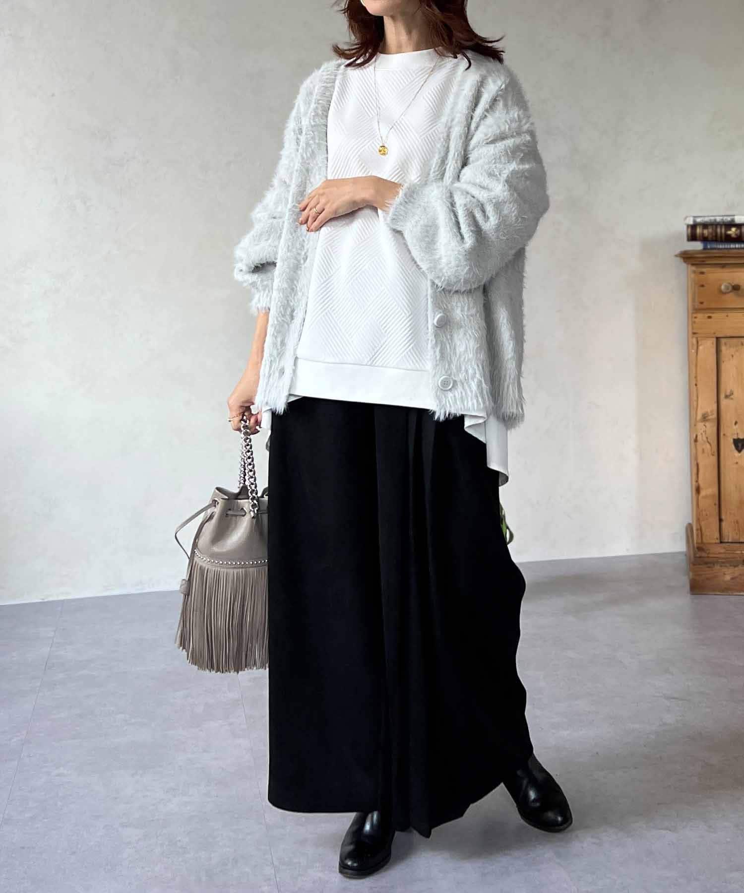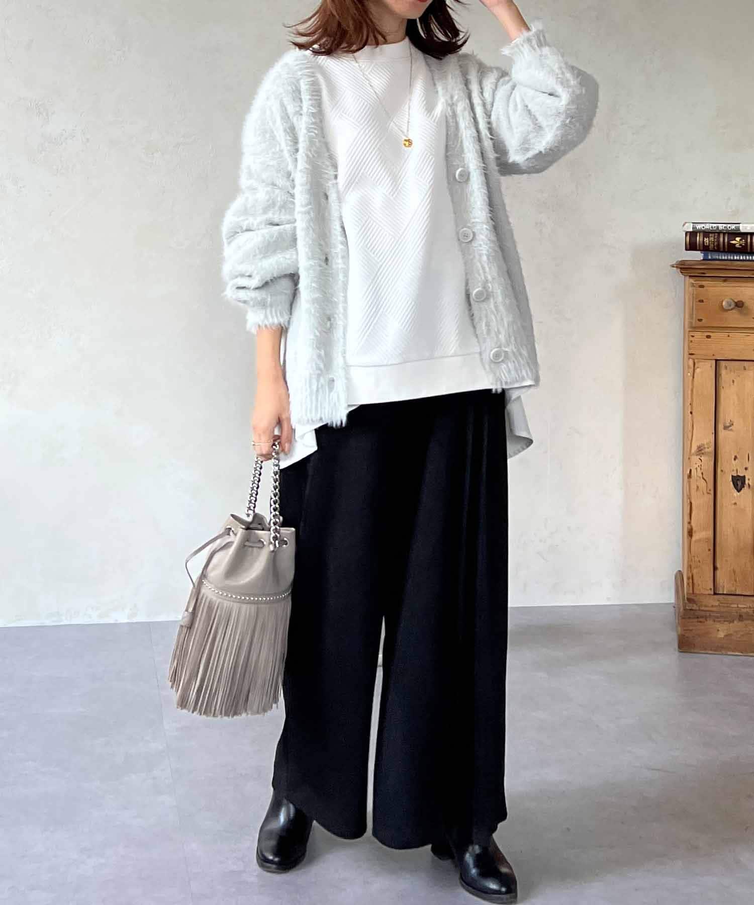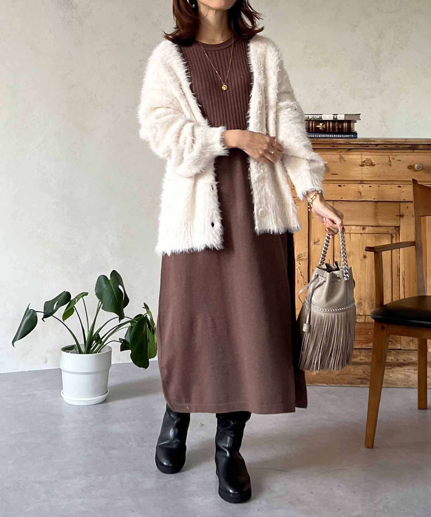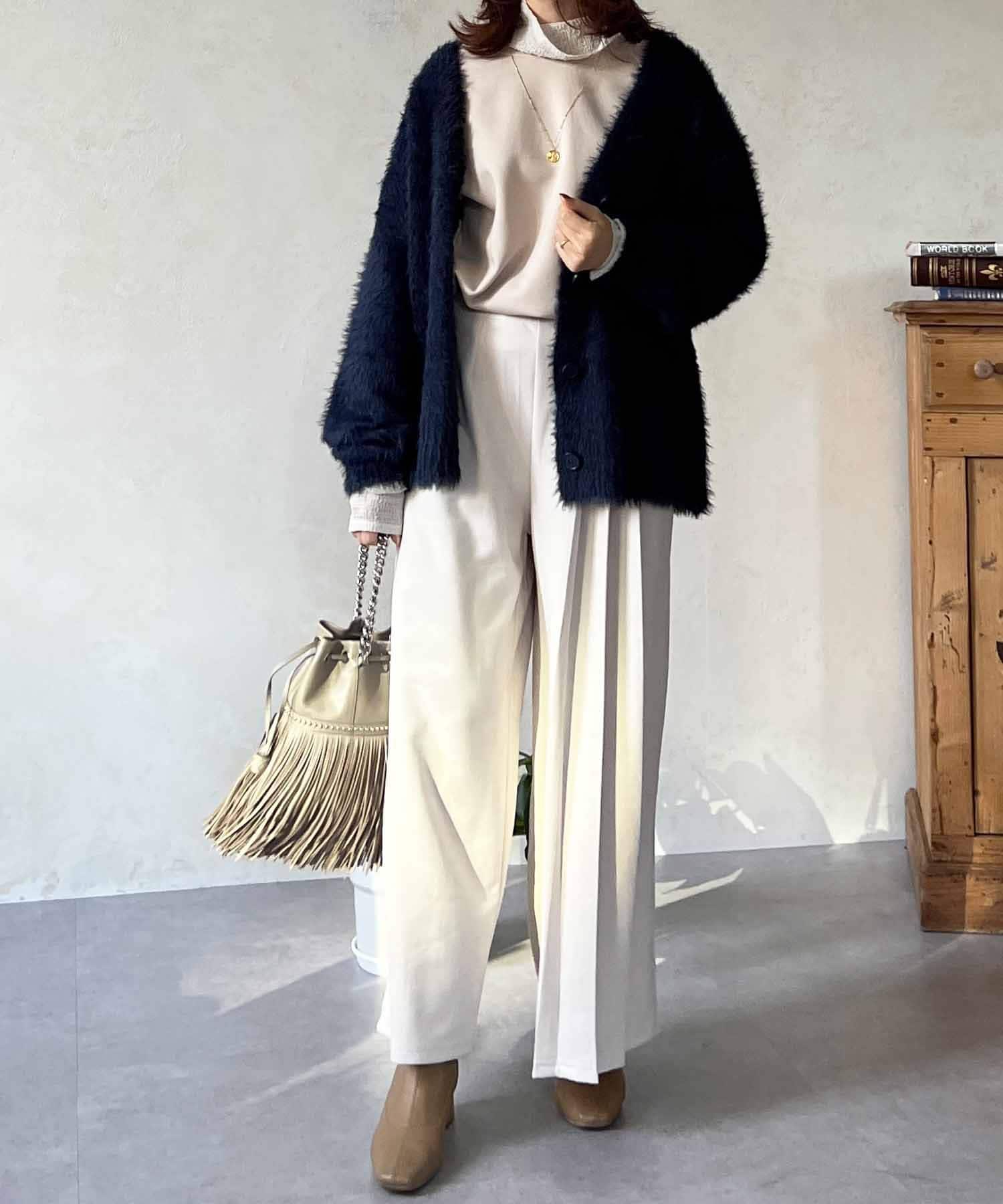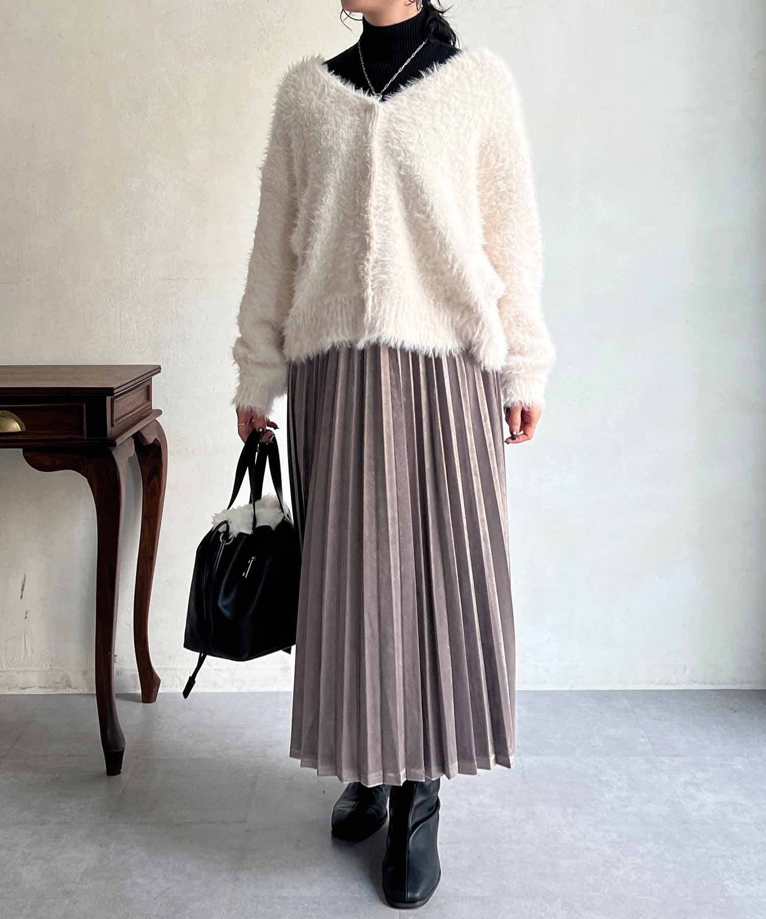 程良くルーズ感のあるシャギーカーディガン。