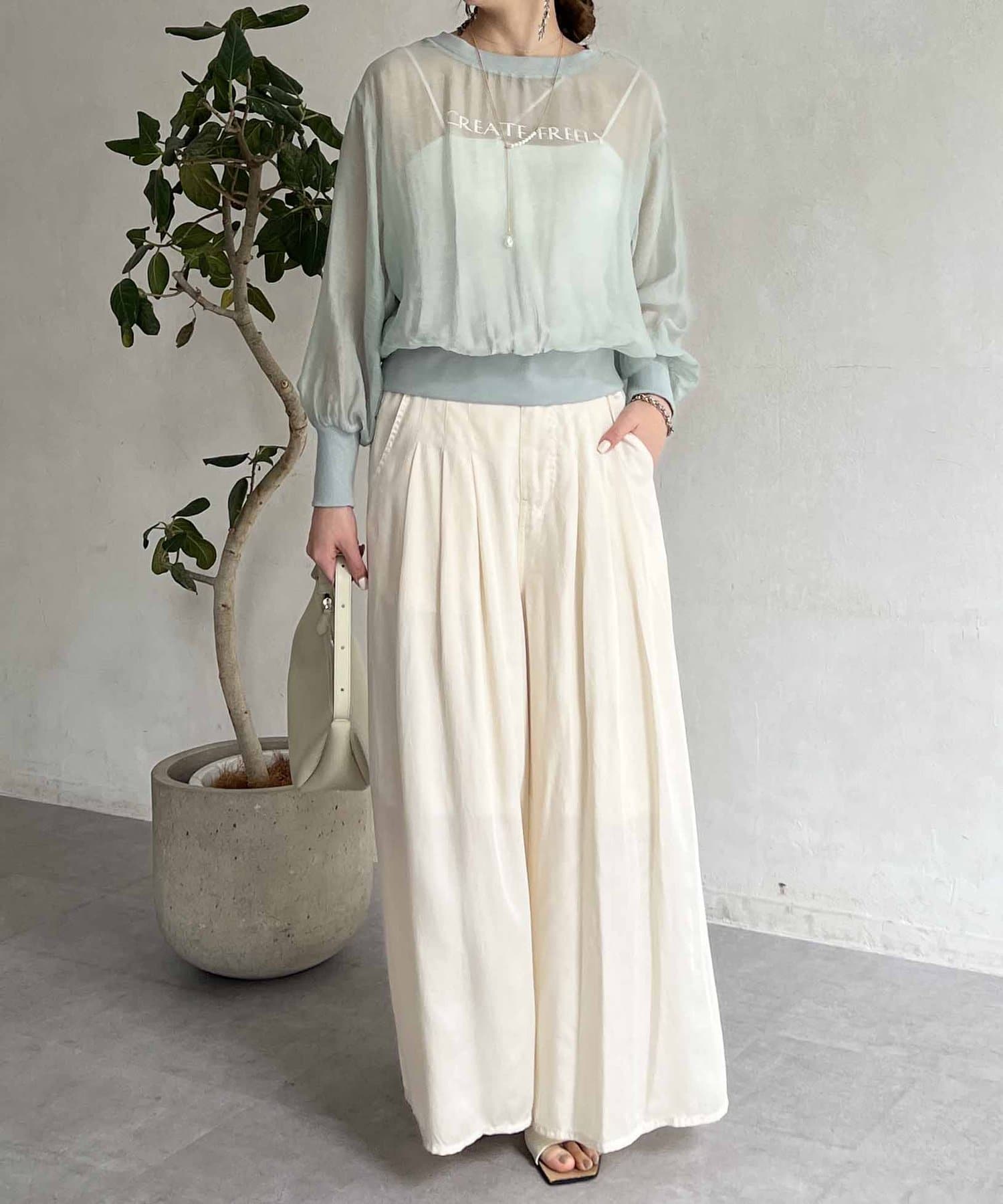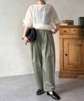 ゆったりとしたシルエットですが、袖周りのリブがメリハリを出してくれるのできれいめアイテムとも好相性◎