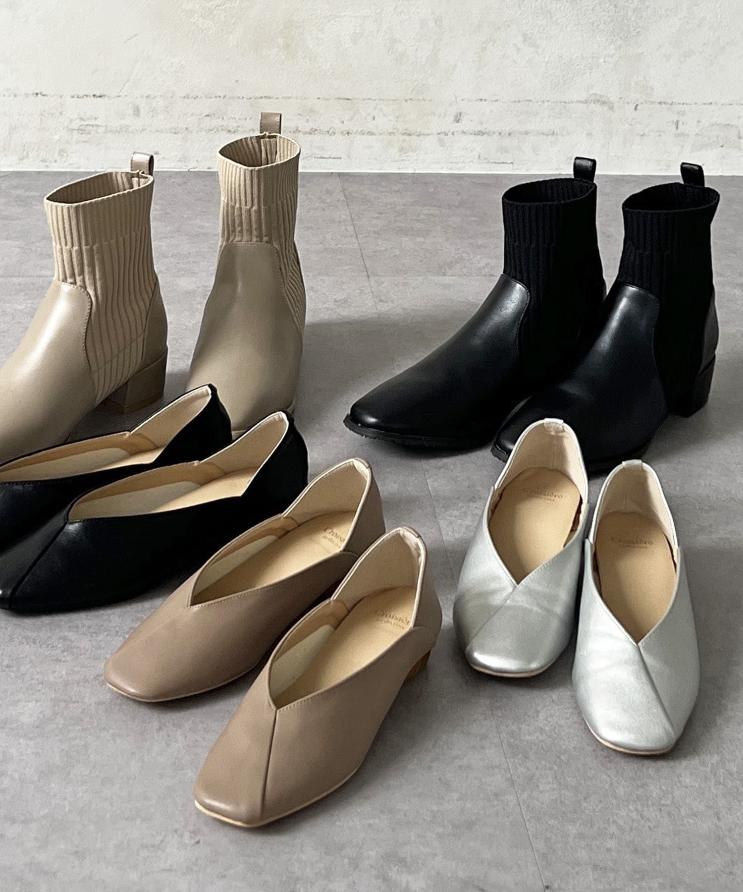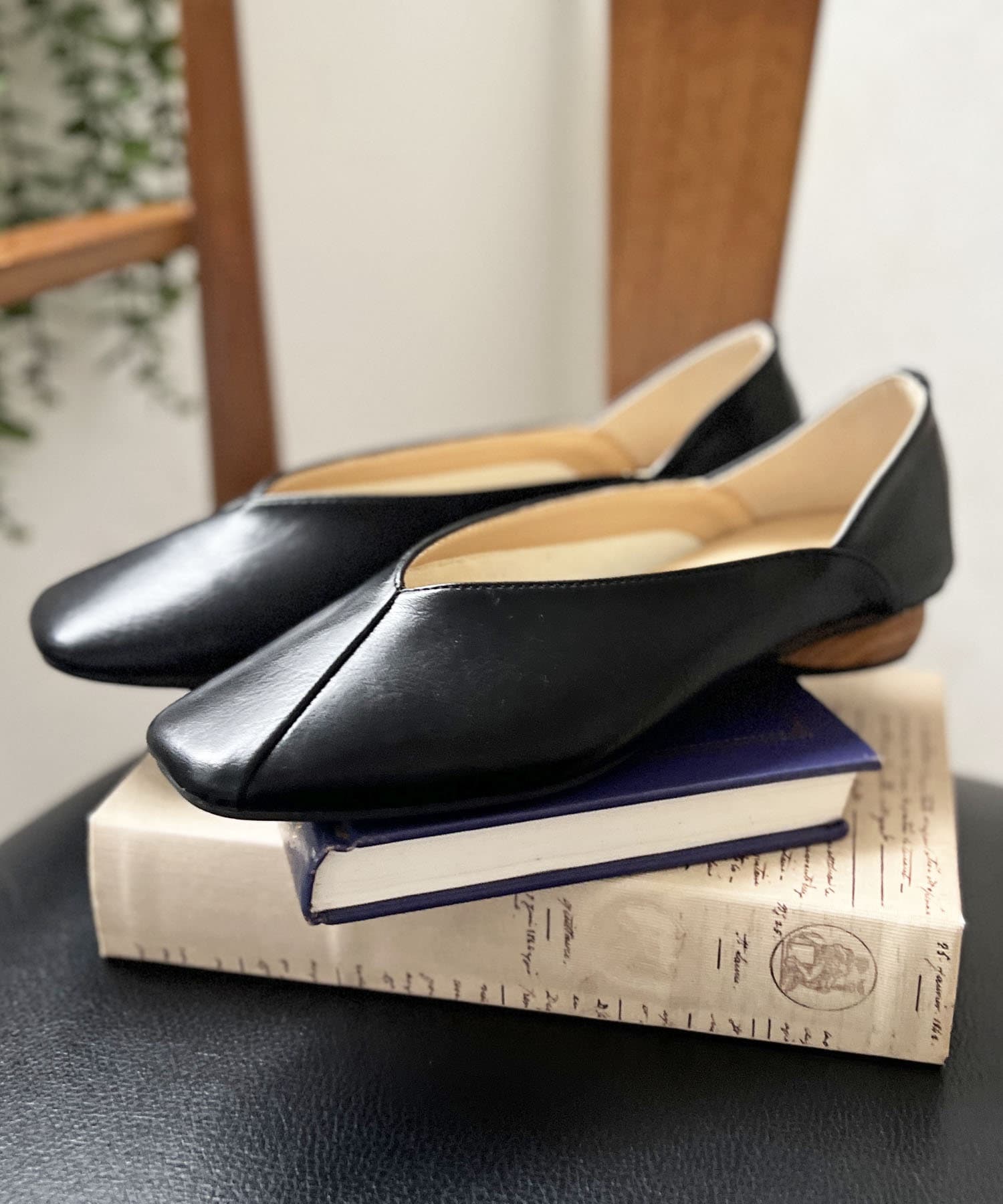 スクエアフラットパンプス