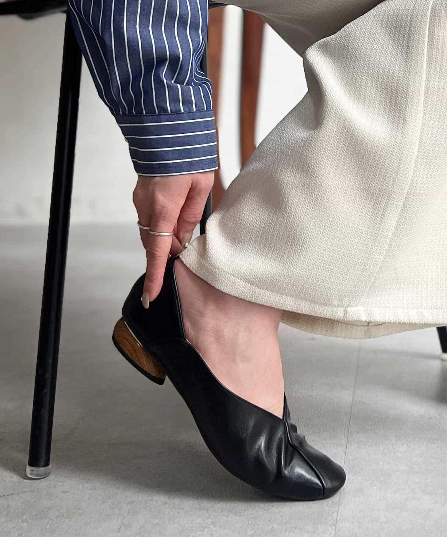ウッドヒールパンプス