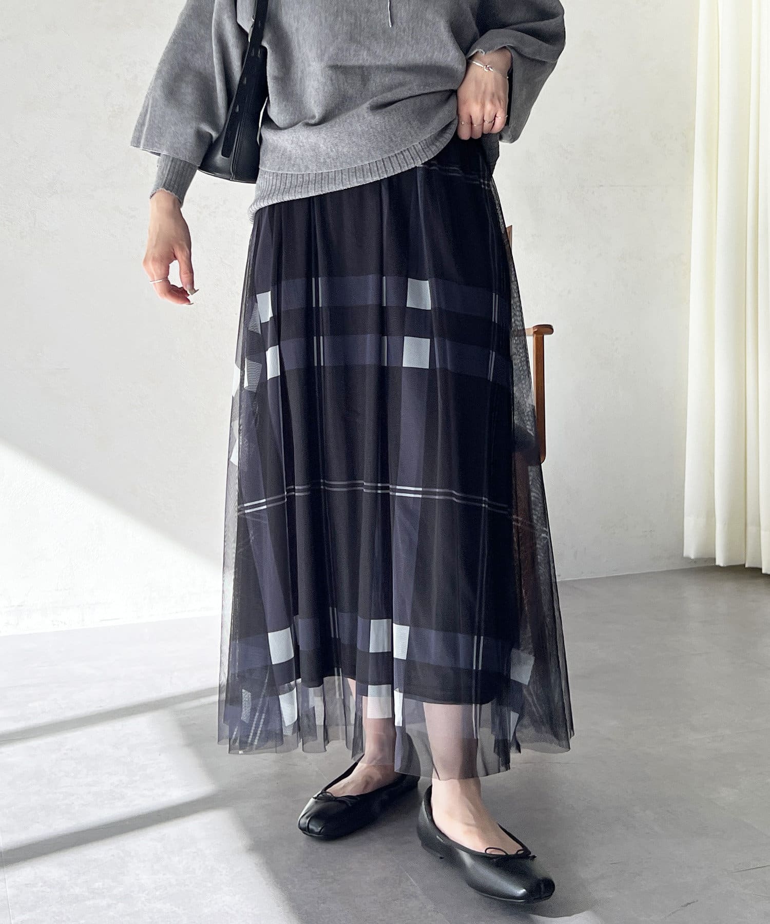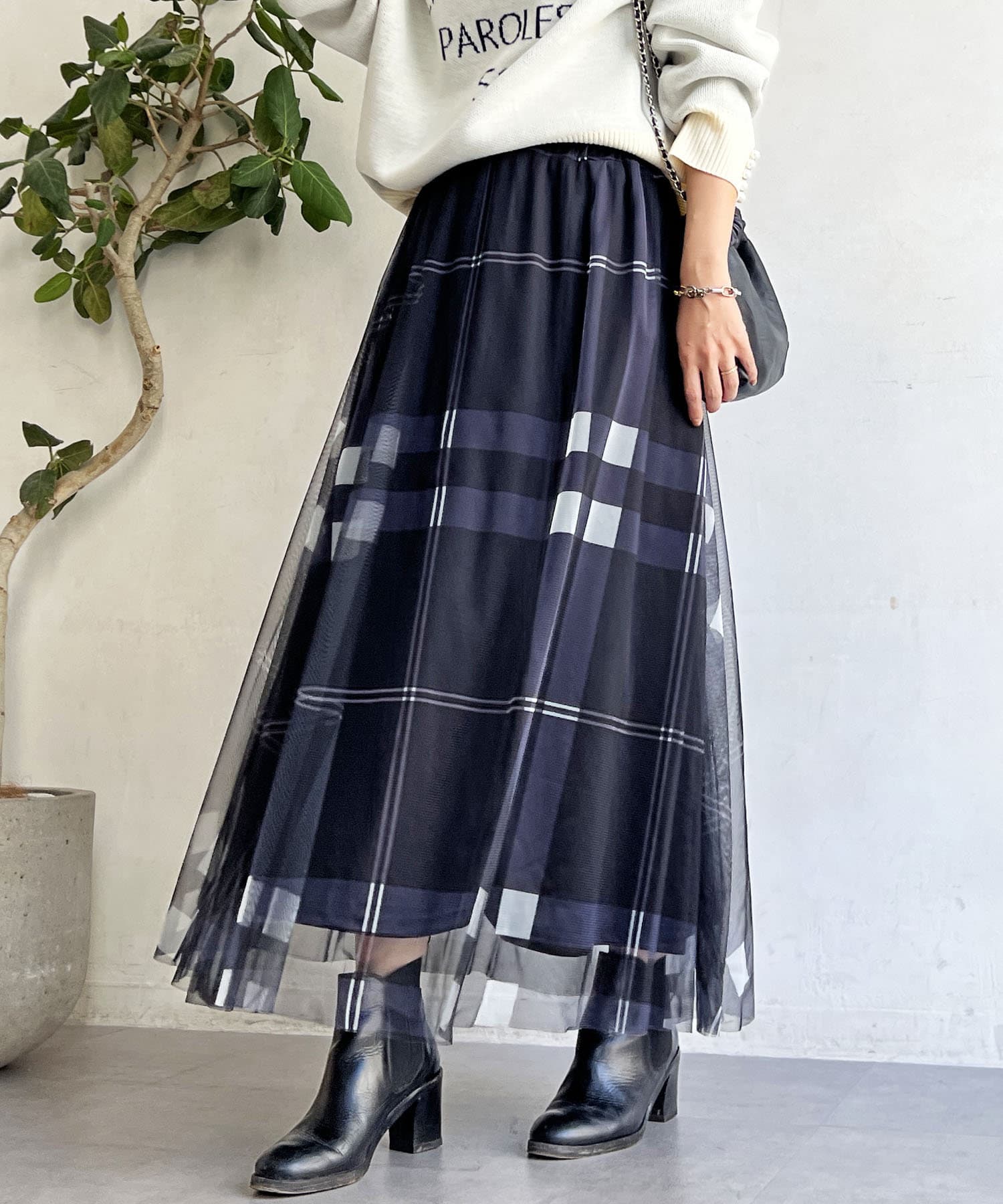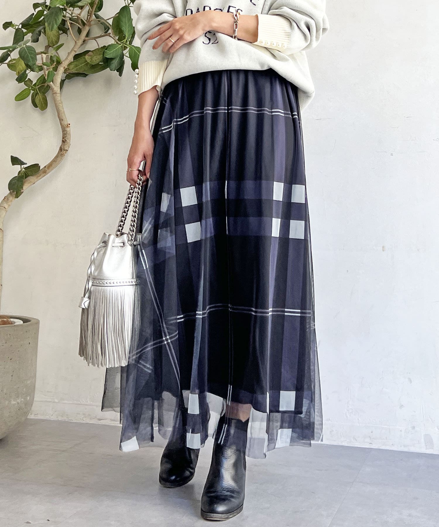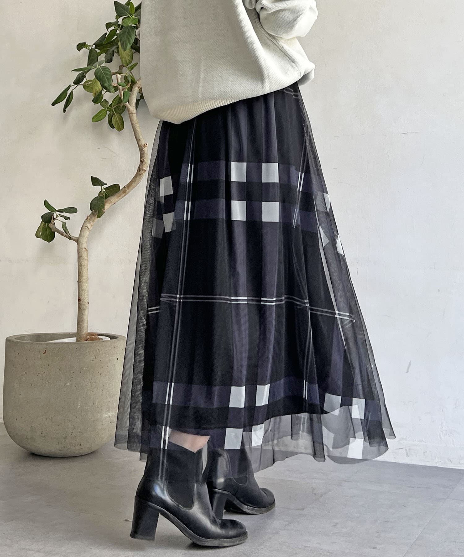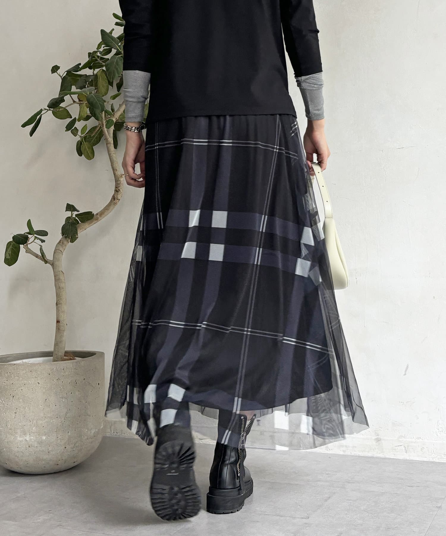 秋冬コーディネートのアクセントに!チェック柄のチュールスカート