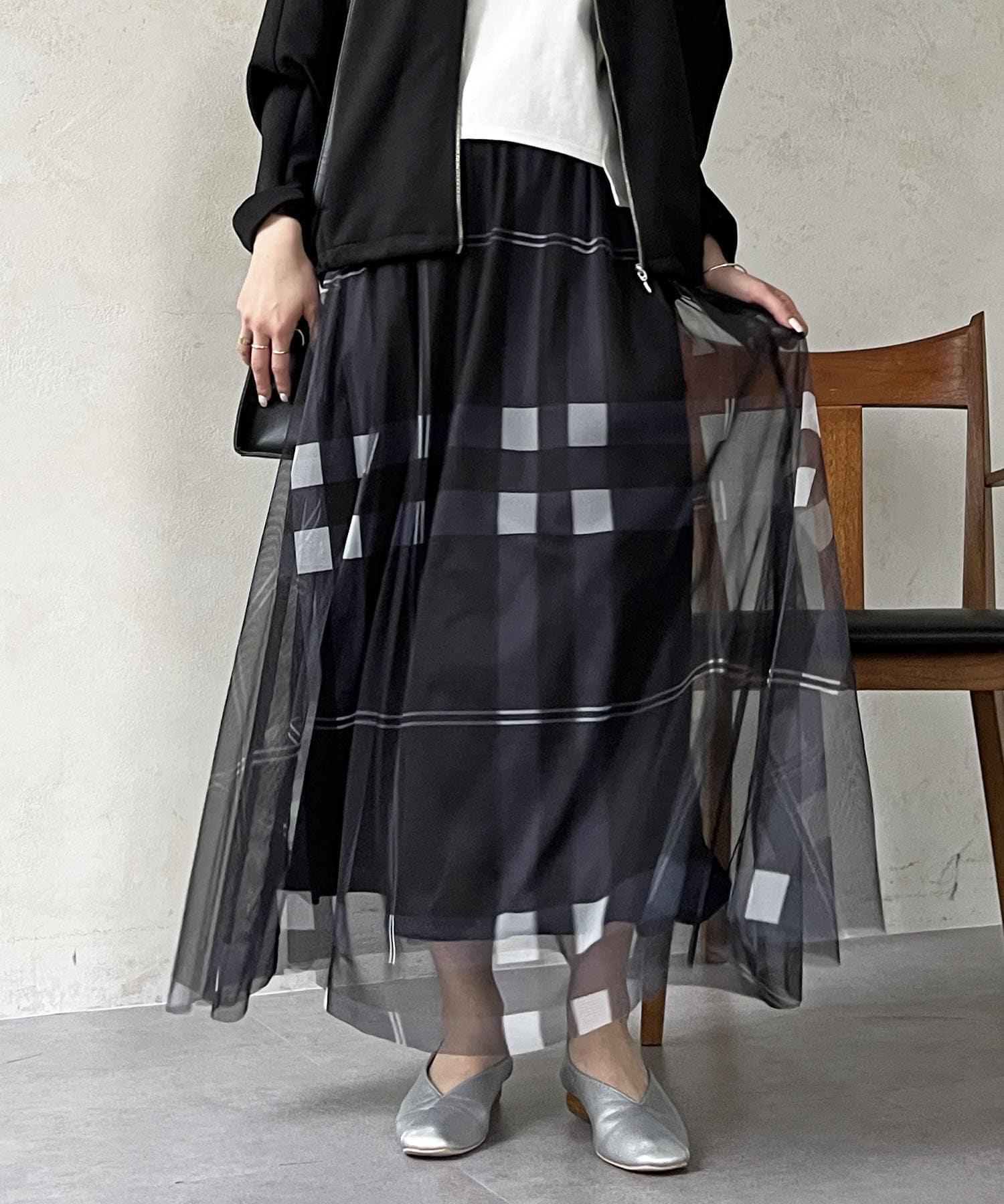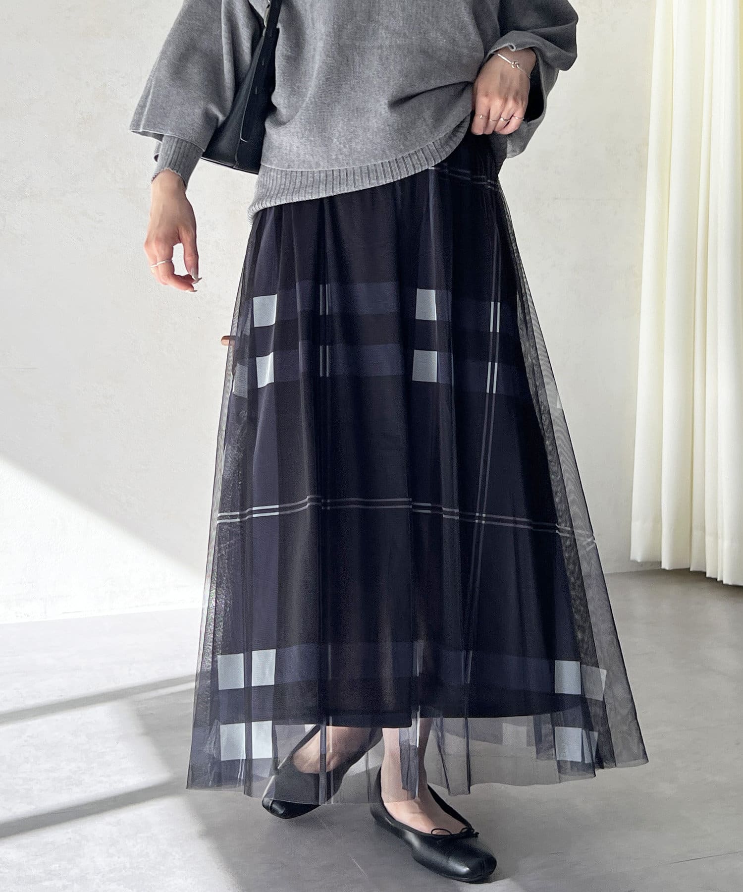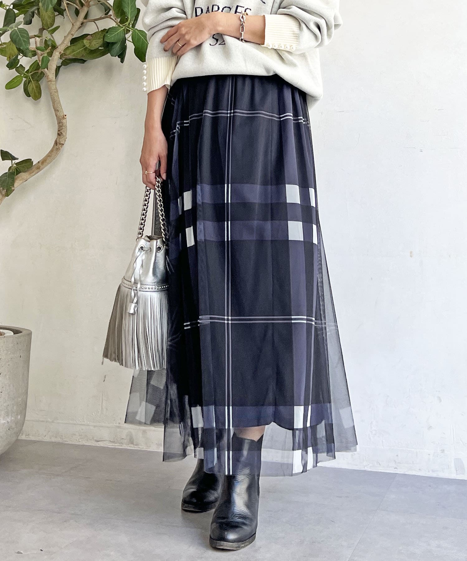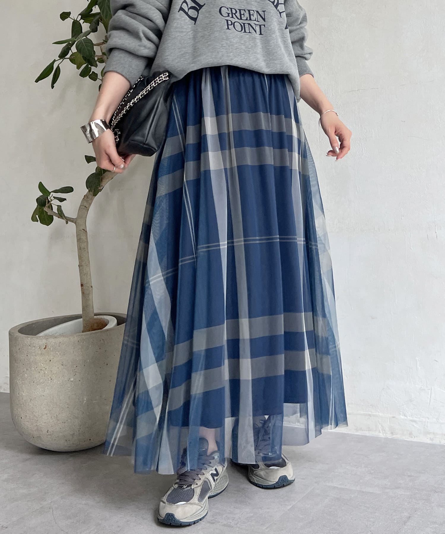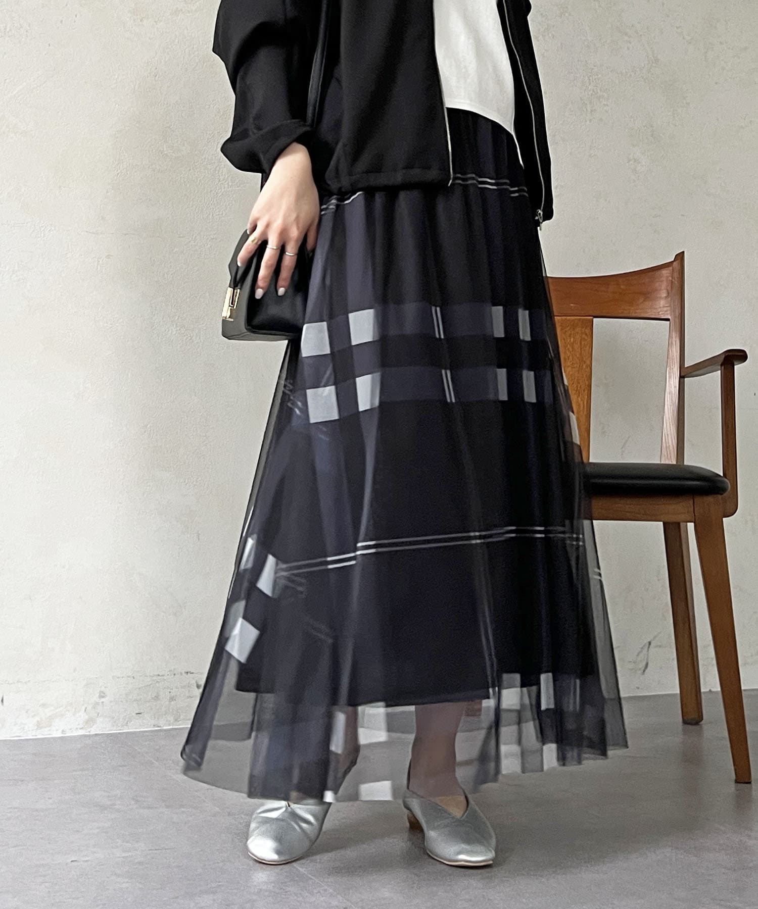 秋冬コーディネートのアクセントに!チェック柄のチュールスカート