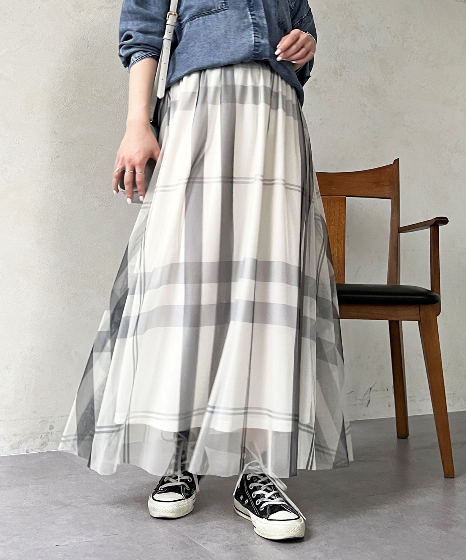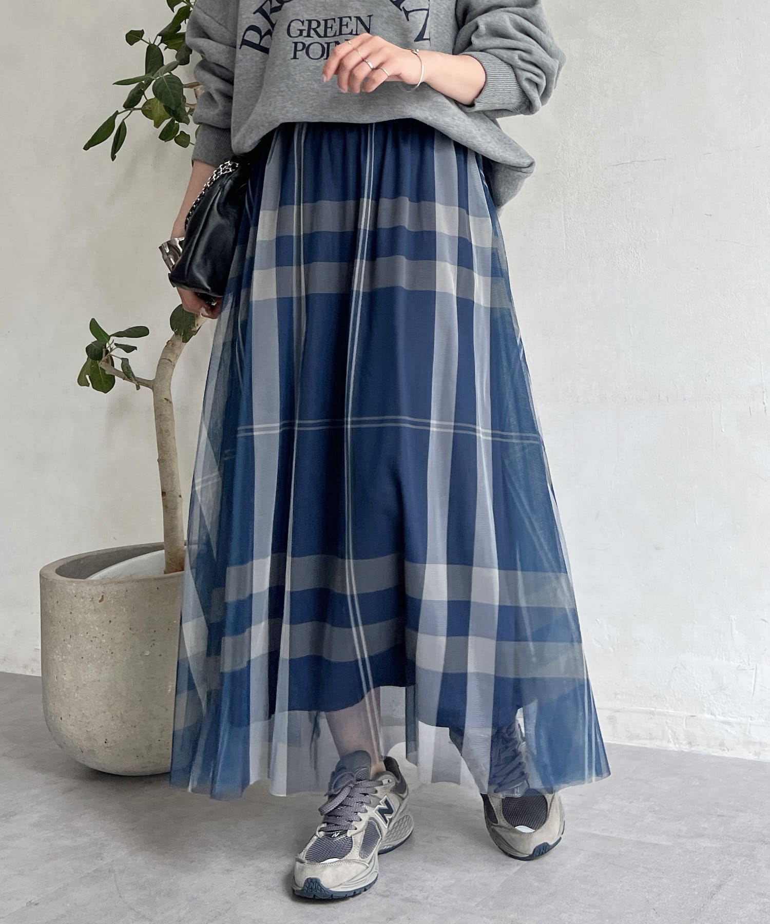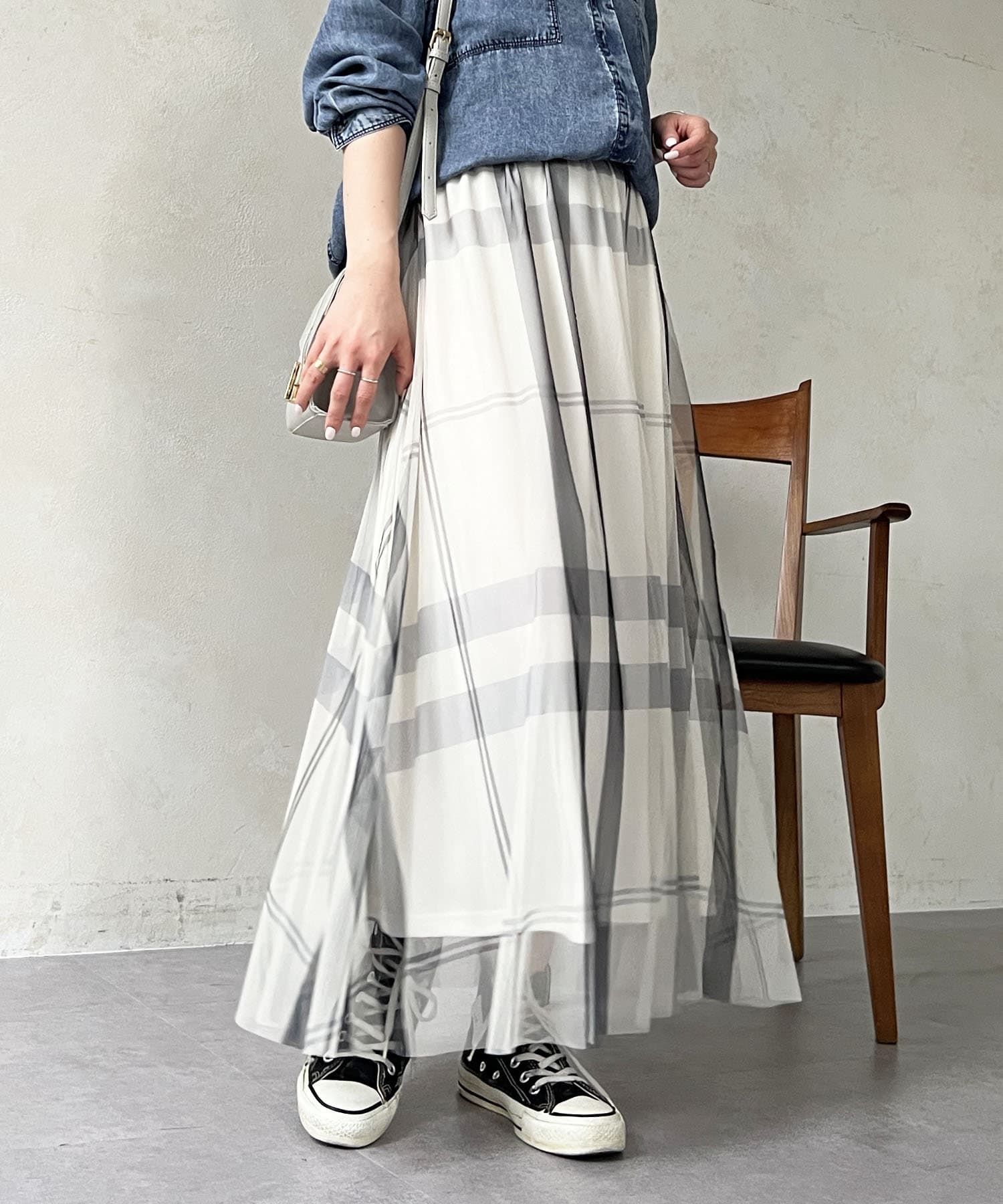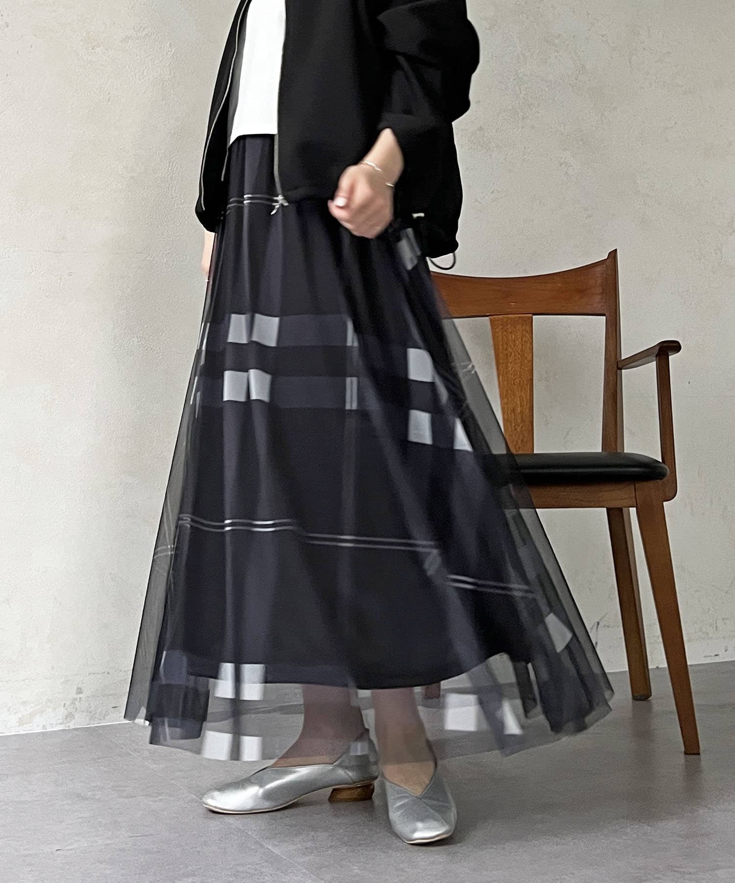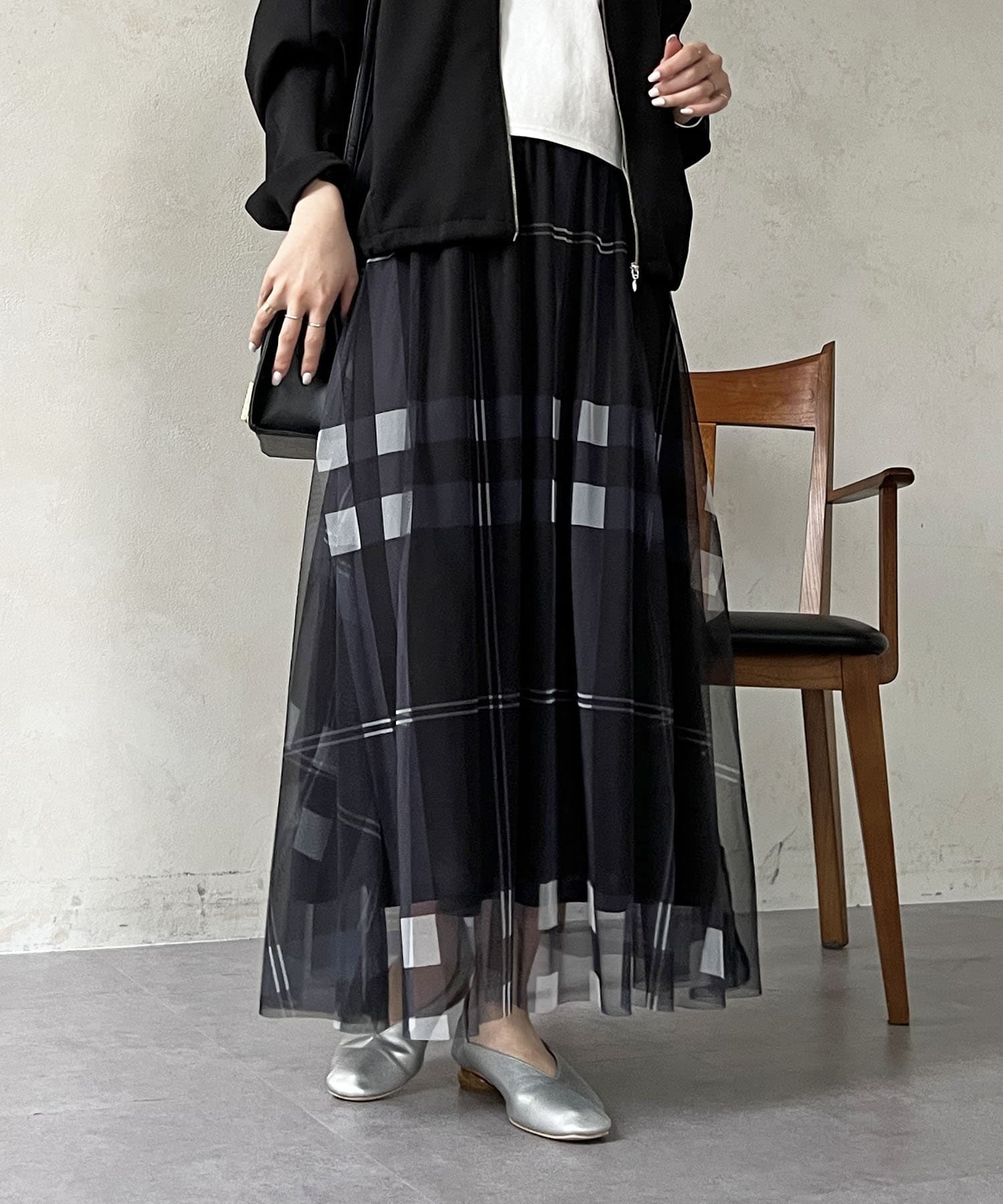秋冬コーディネートのアクセントに!チェック柄のチュールスカート