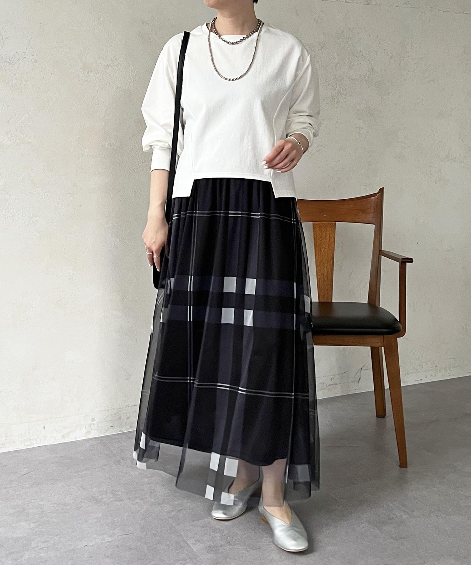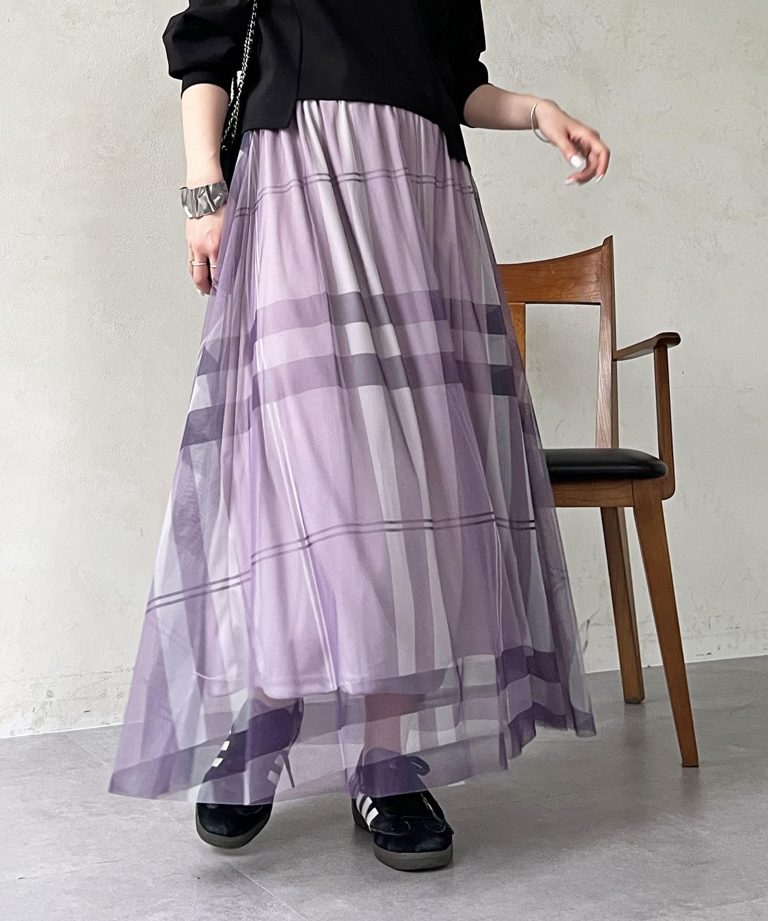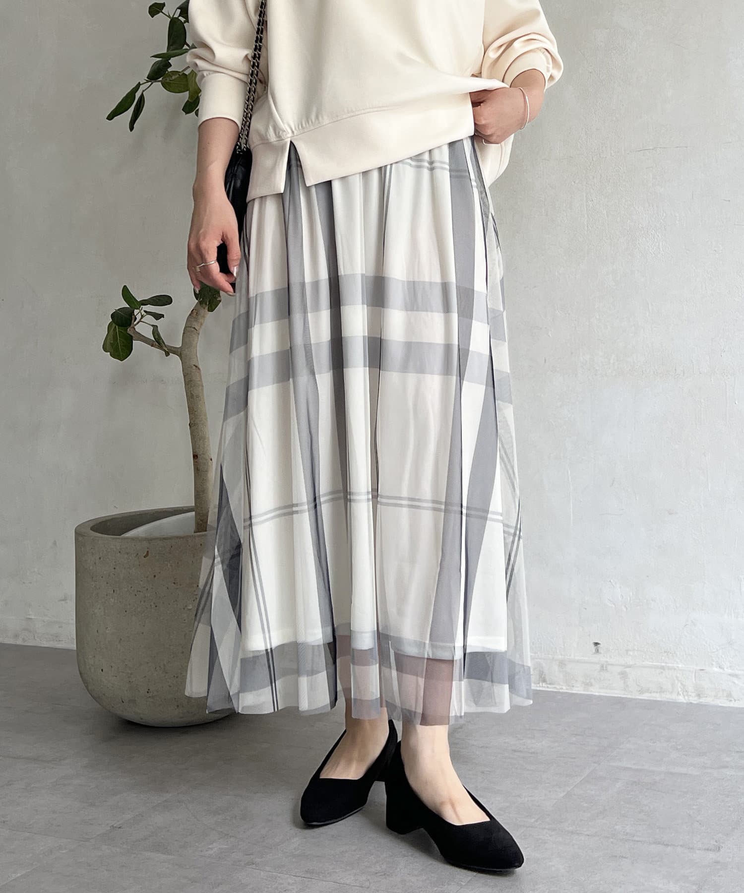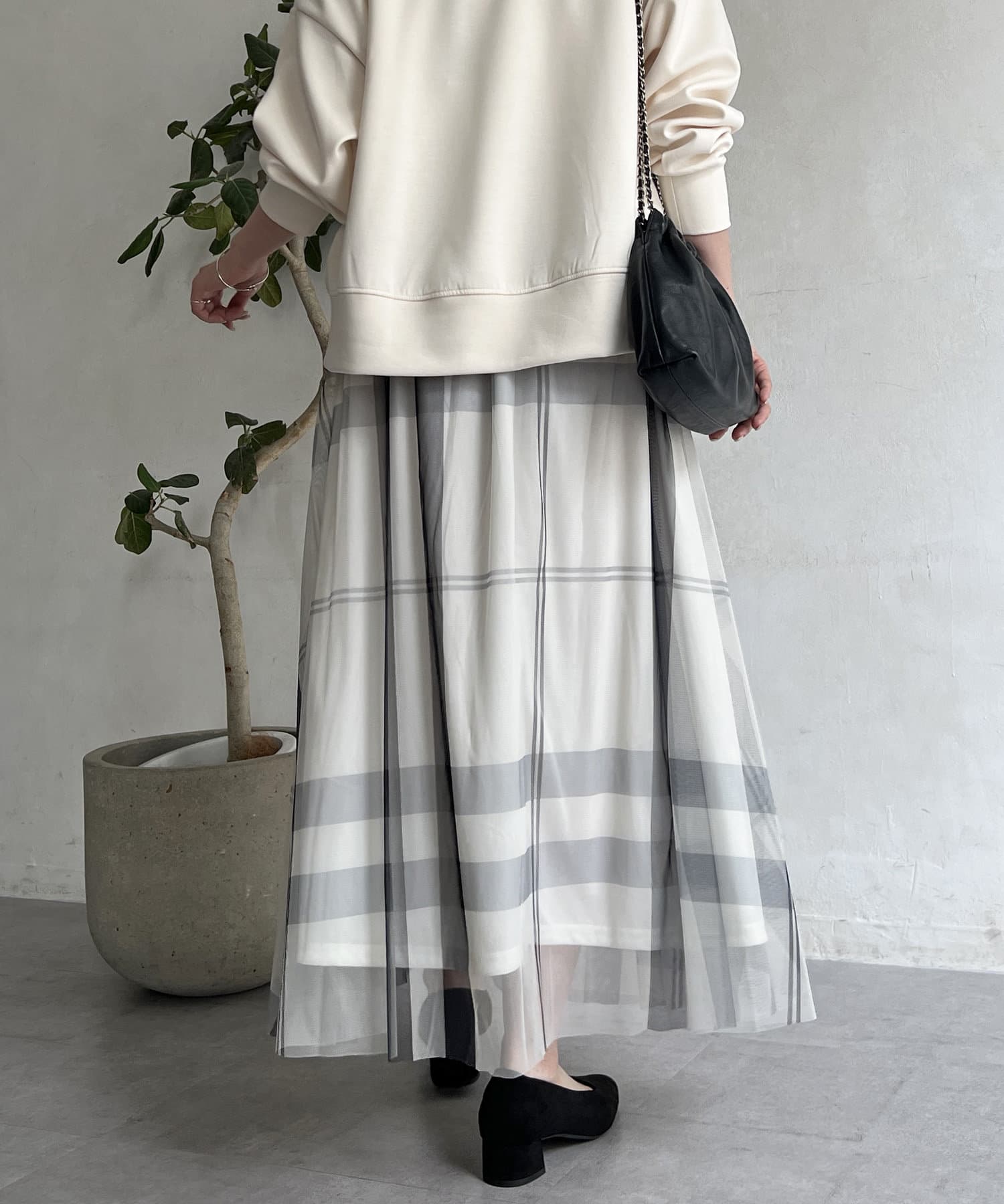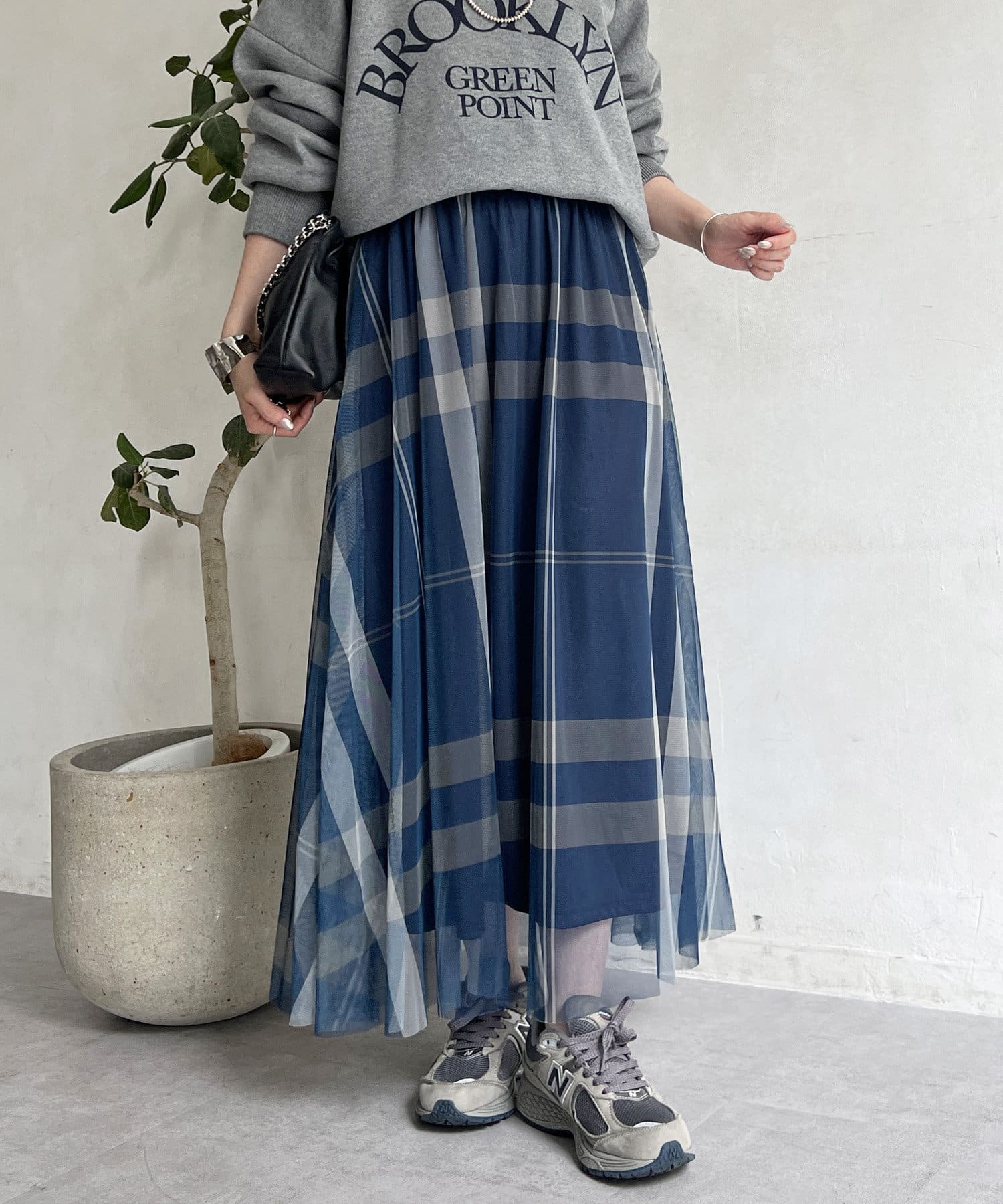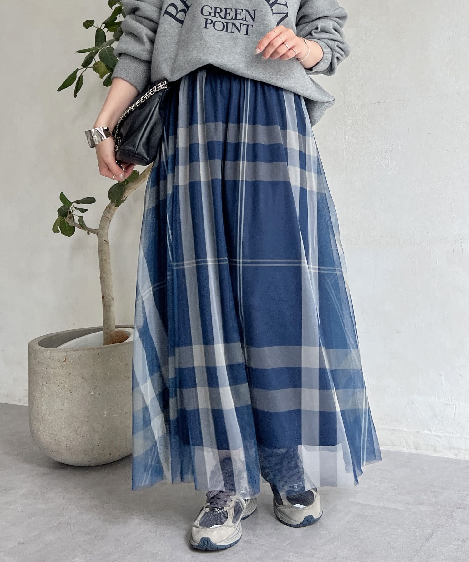 秋冬コーディネートのアクセントに!チェック柄のチュールスカート