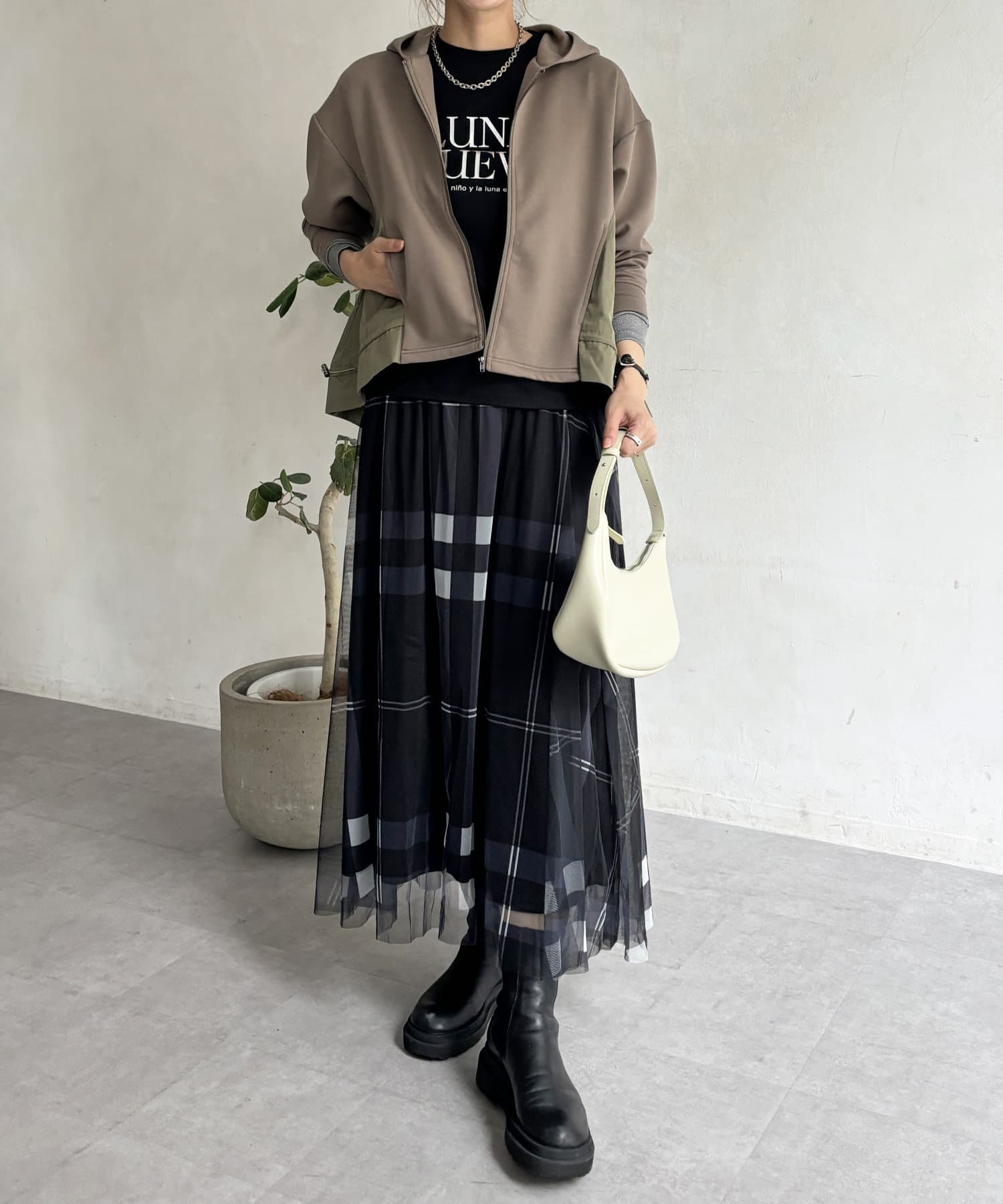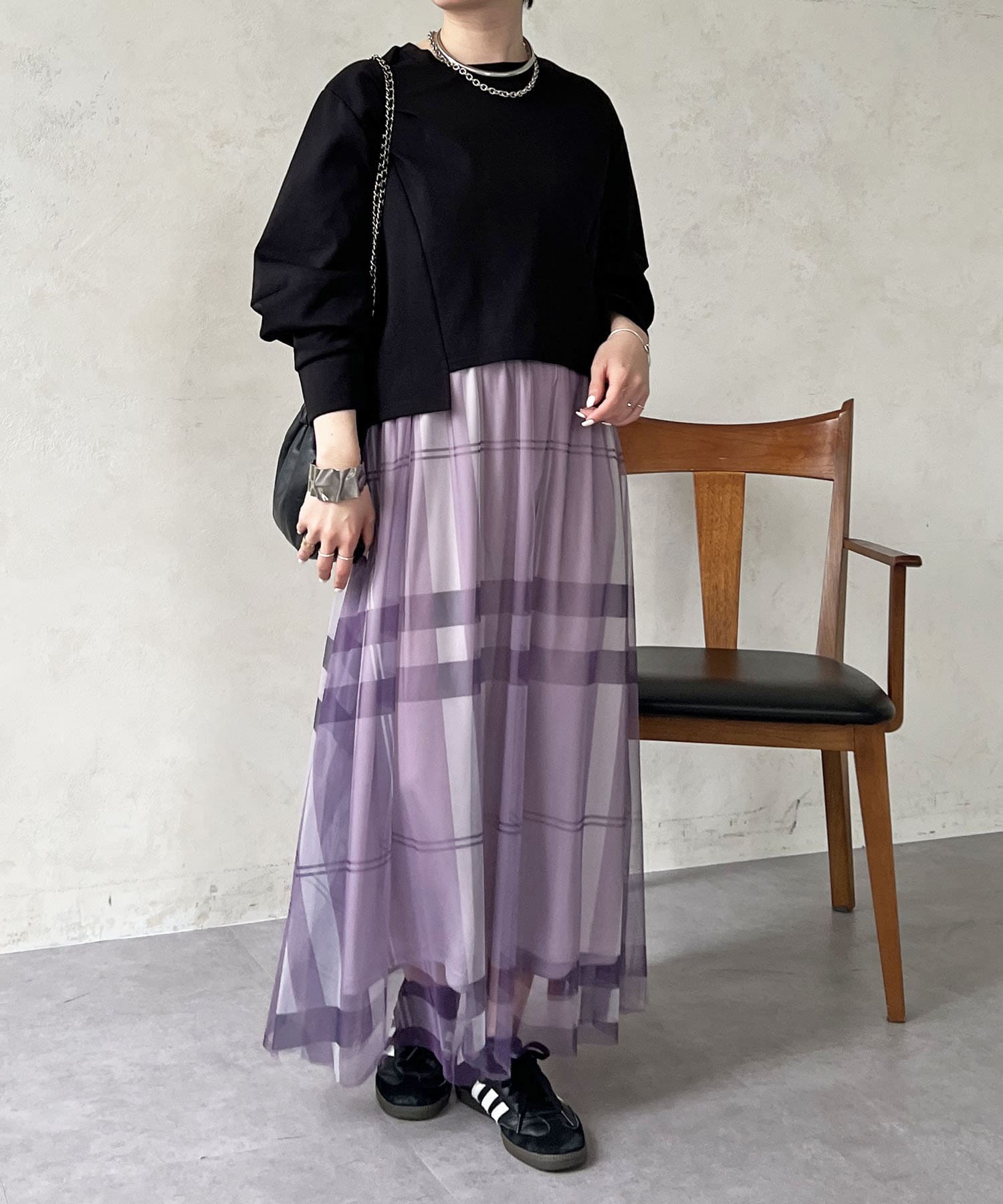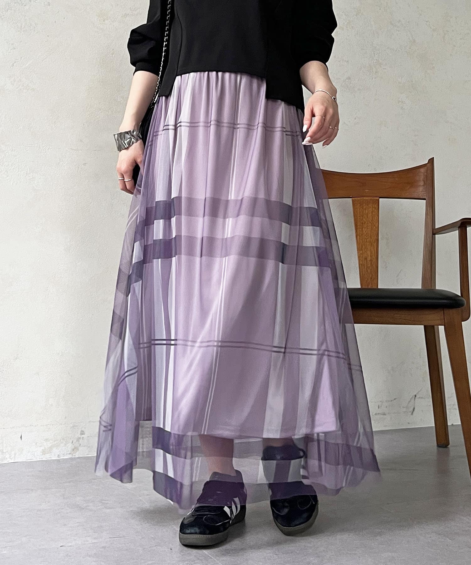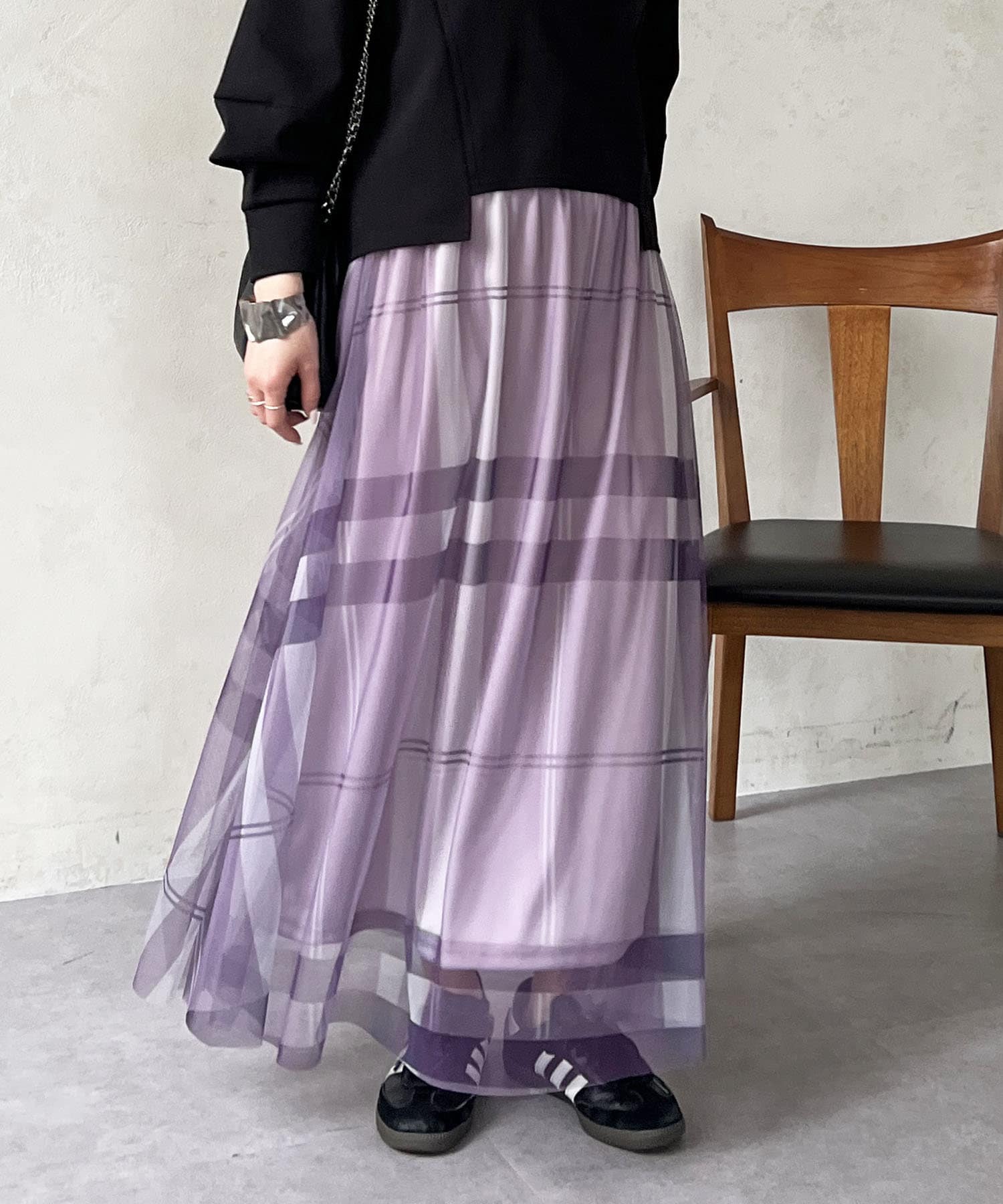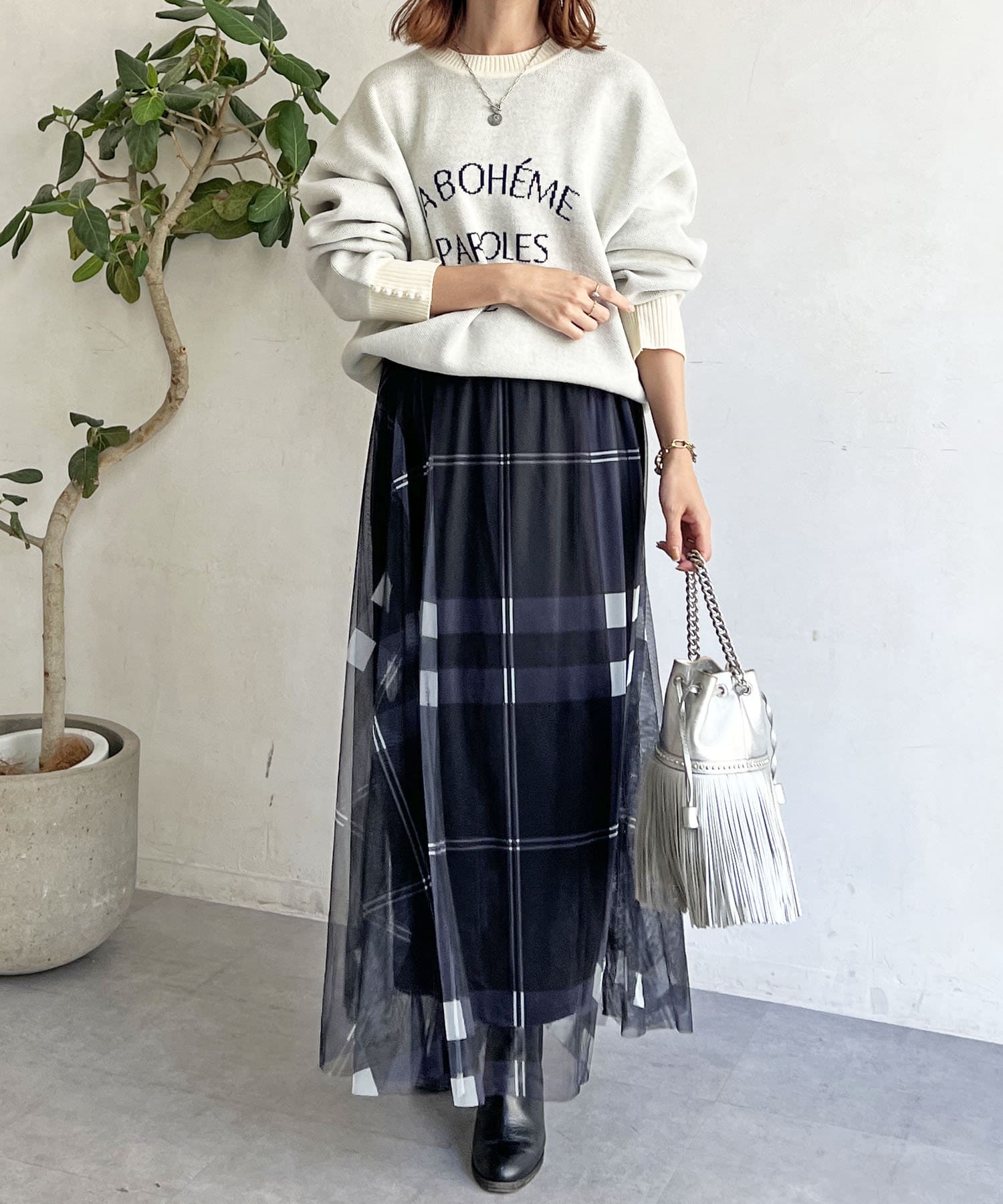 秋冬コーディネートのアクセントに!チェック柄のチュールスカート