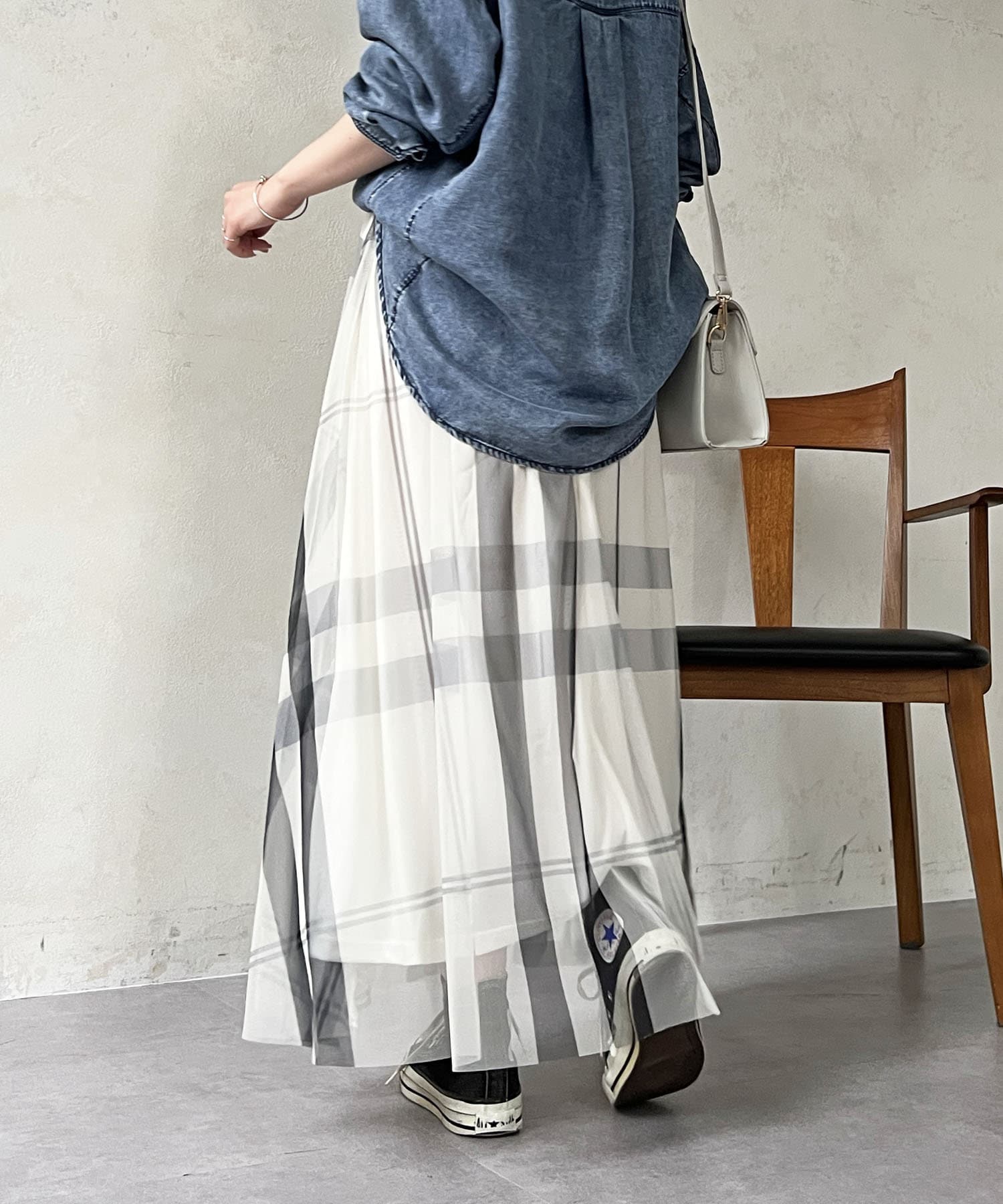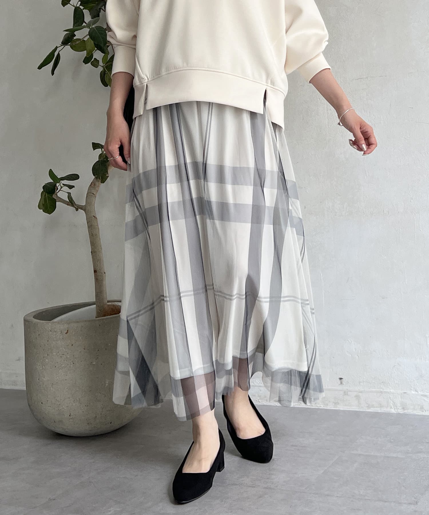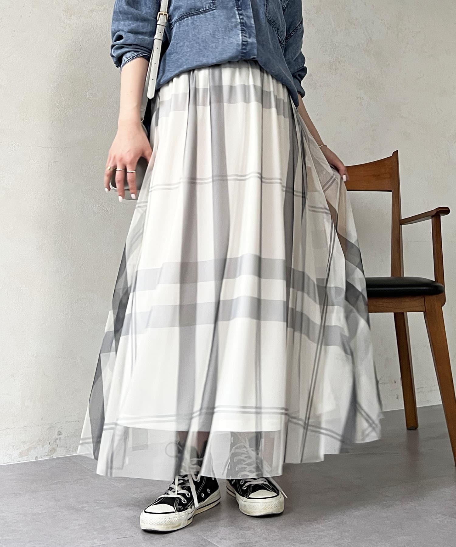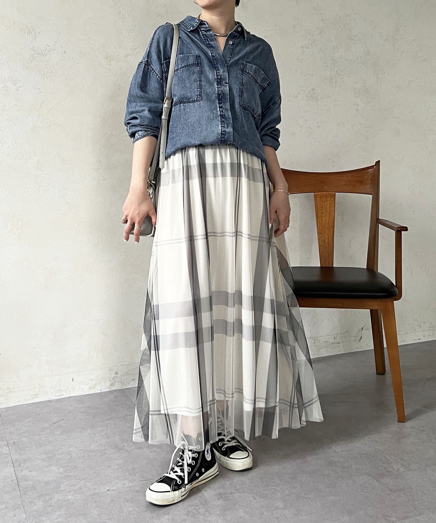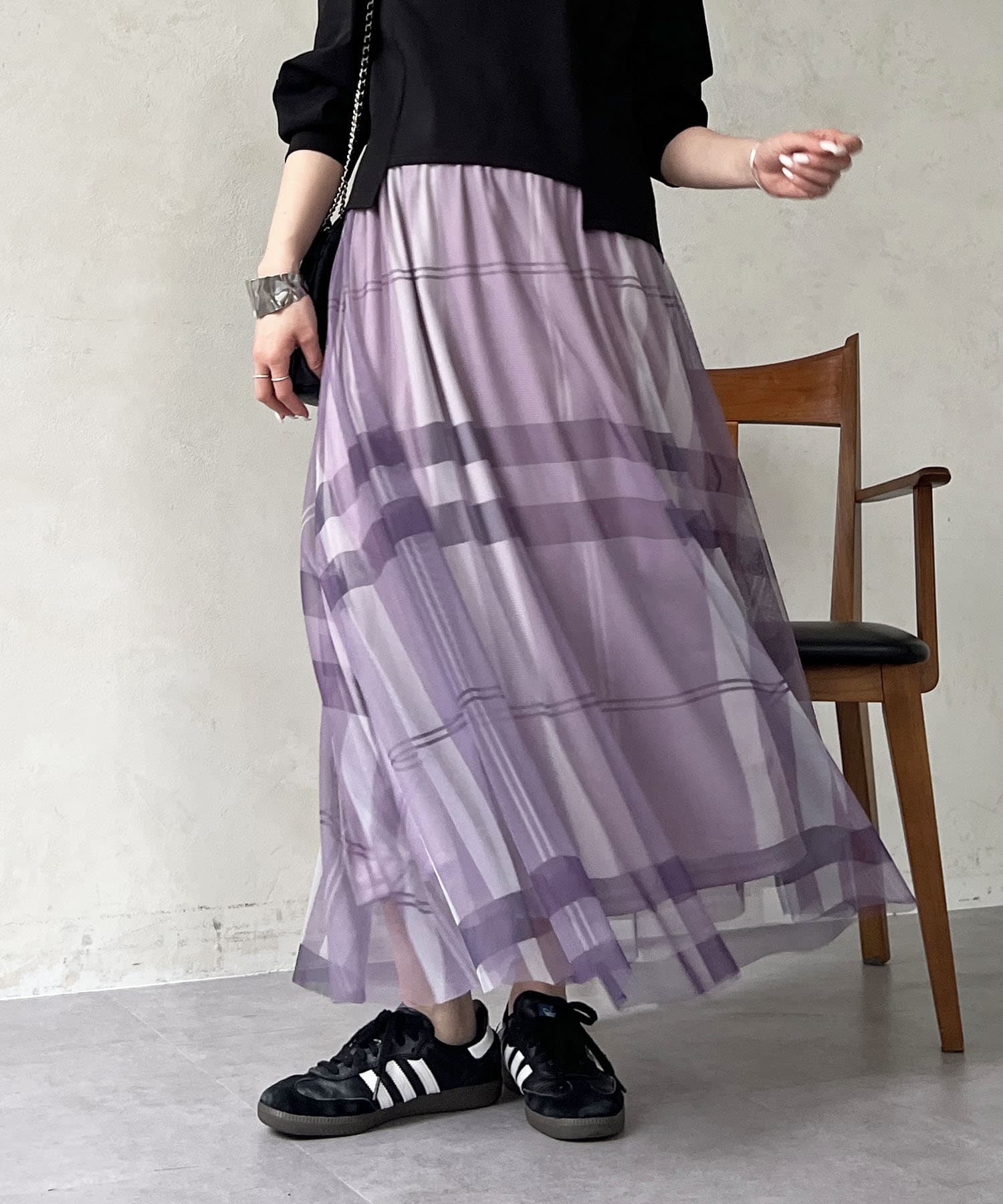 秋冬コーディネートのアクセントに!チェック柄のチュールスカート