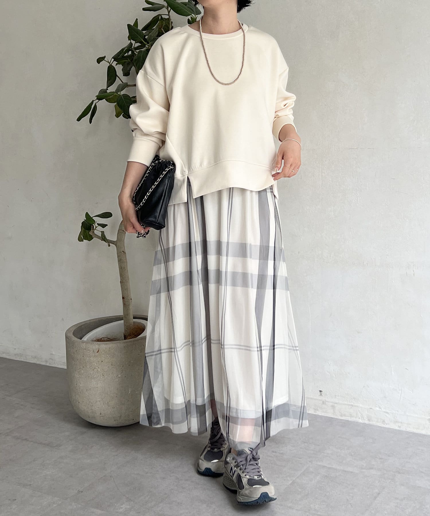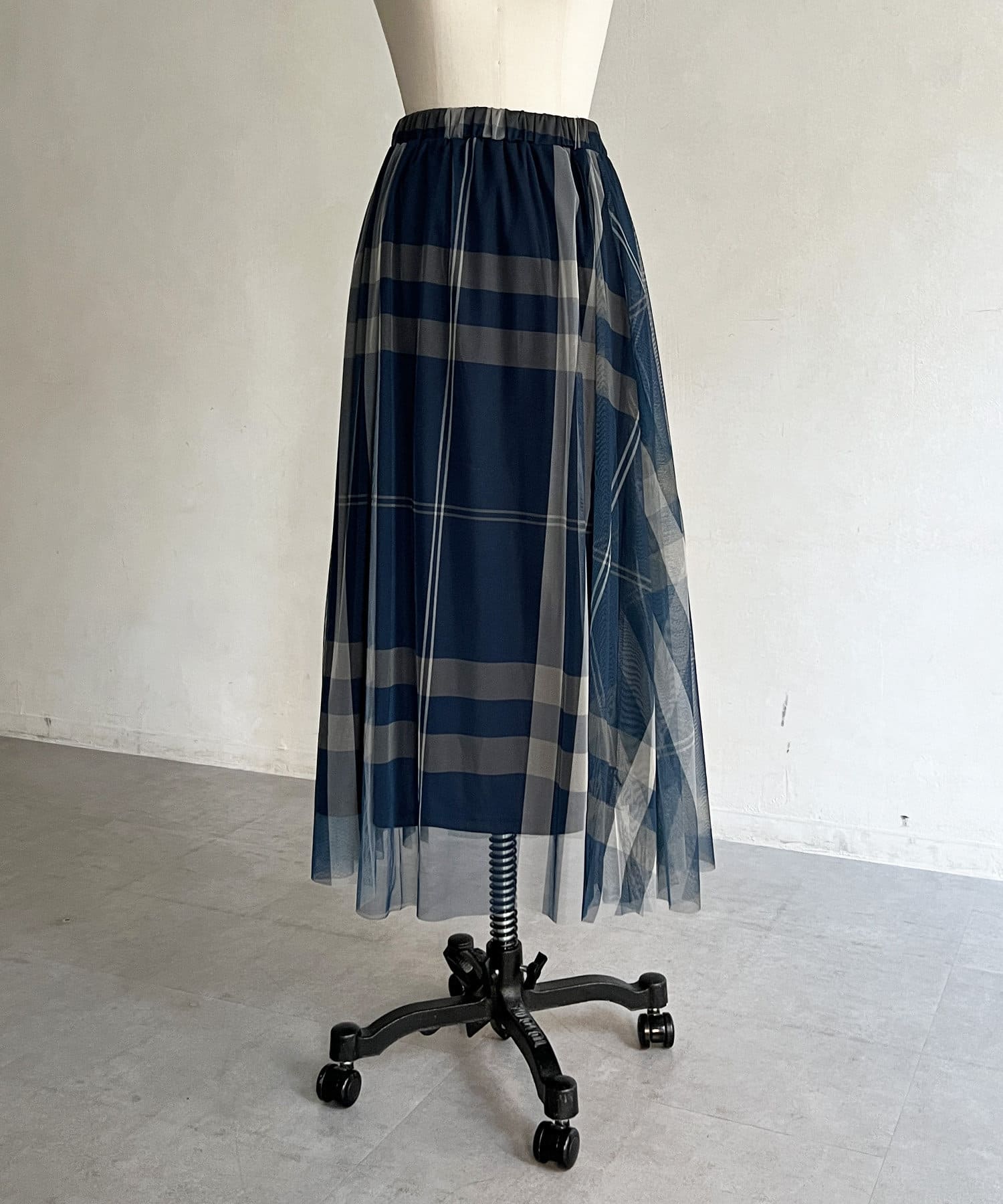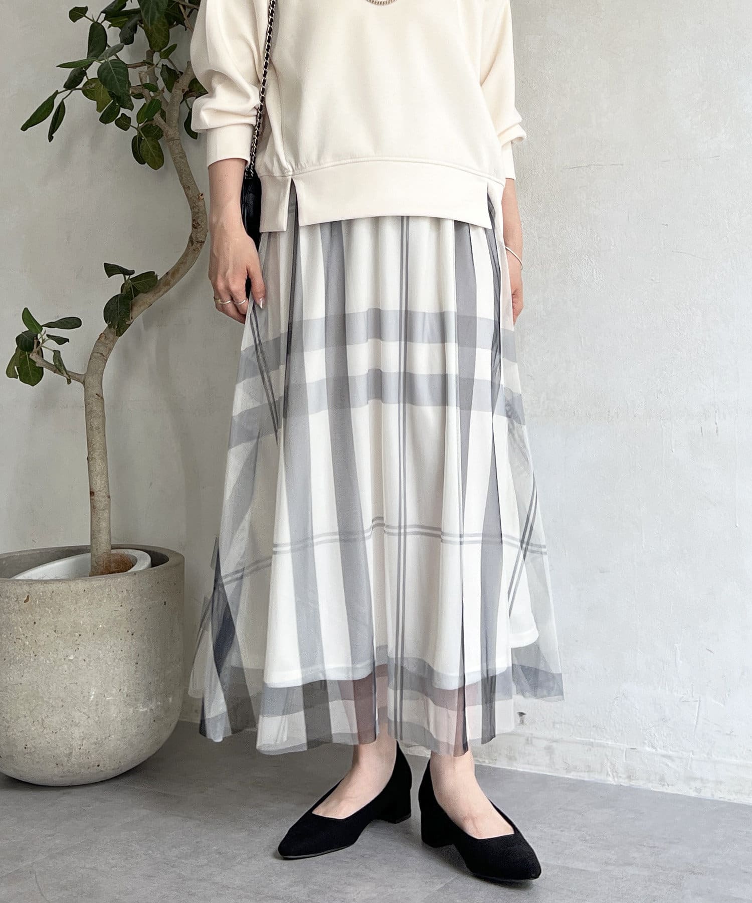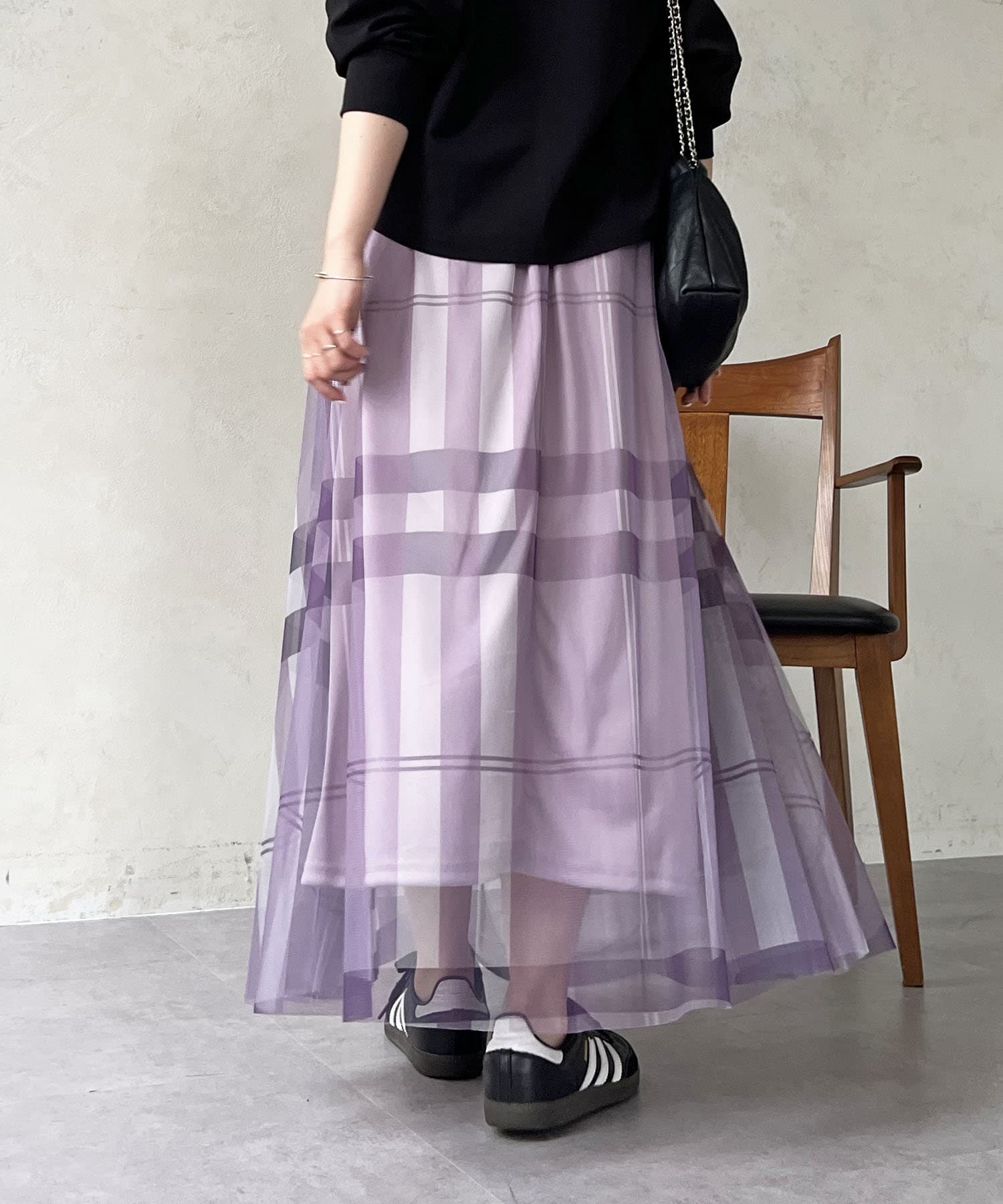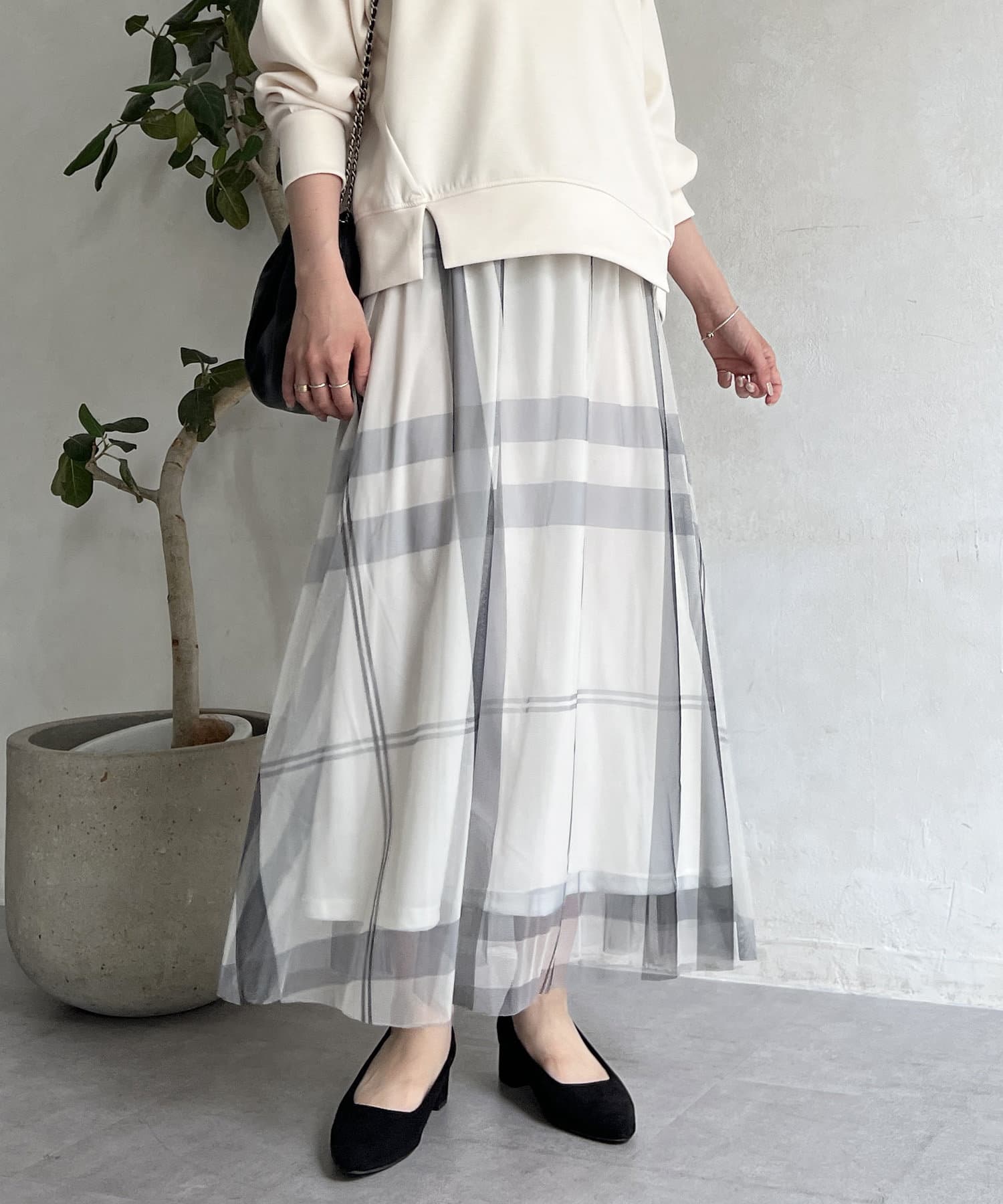 秋冬コーディネートのアクセントに!チェック柄のチュールスカート