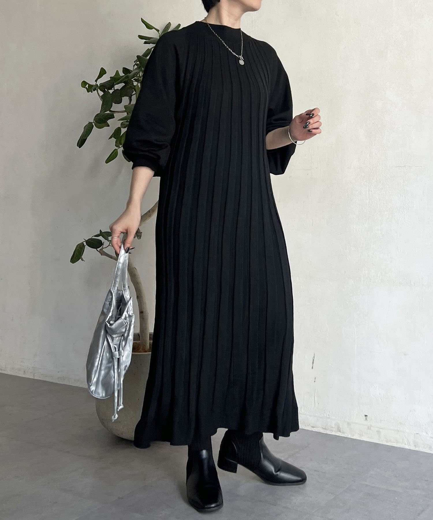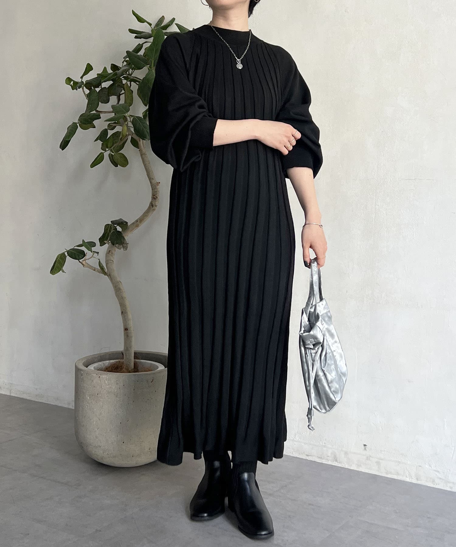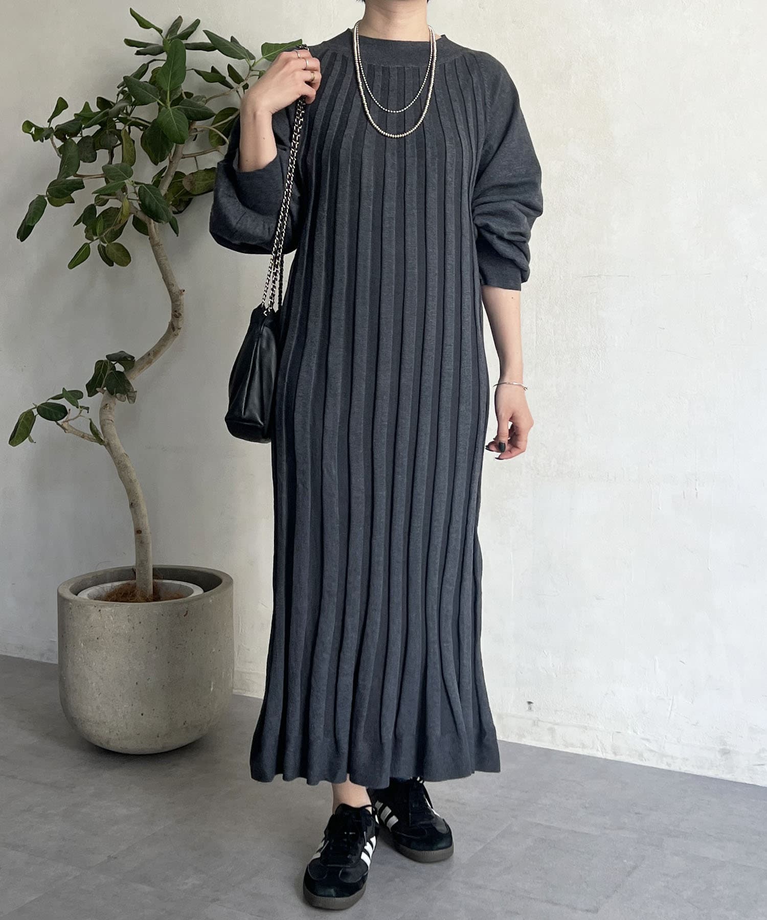 リブニットワンピース