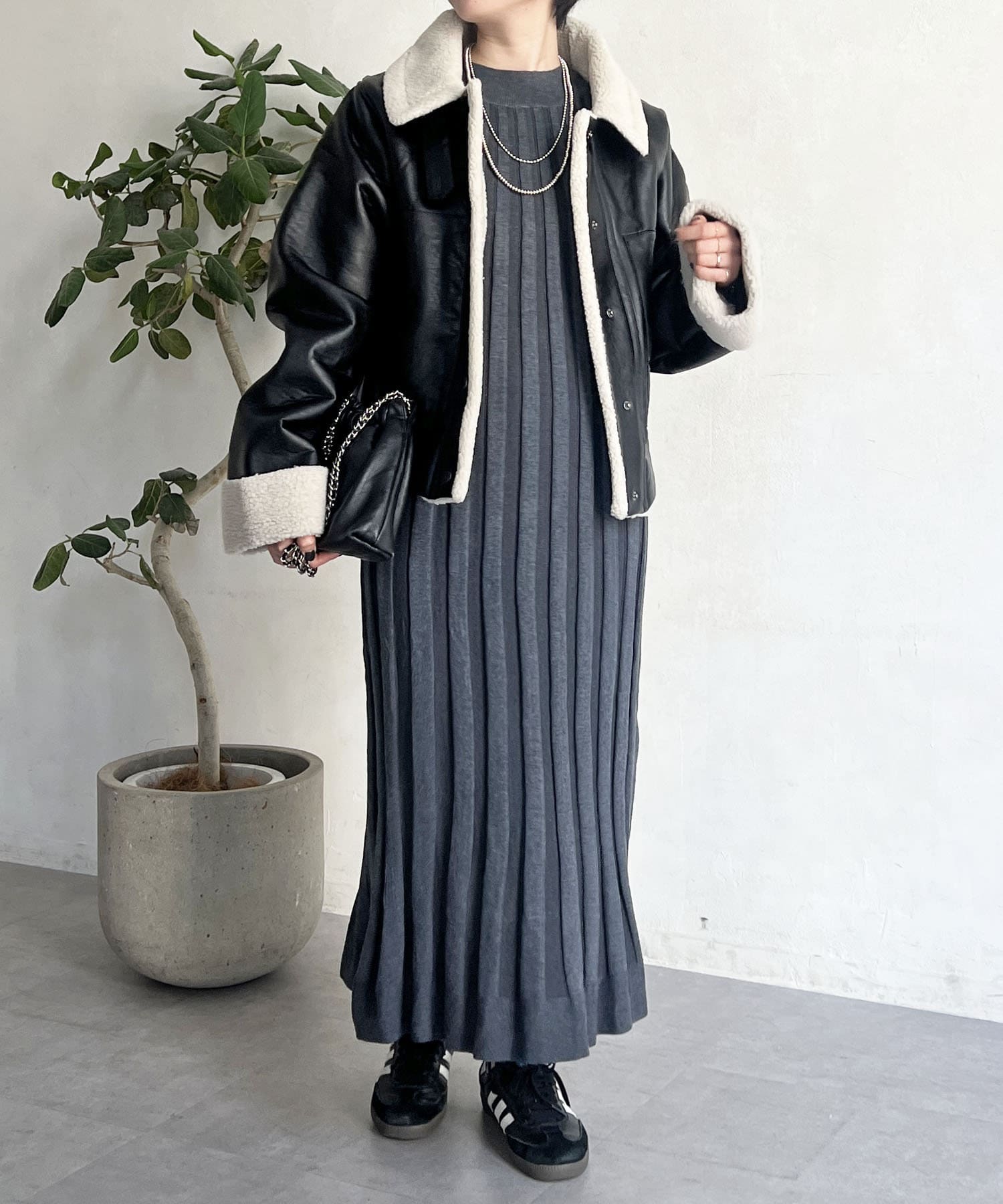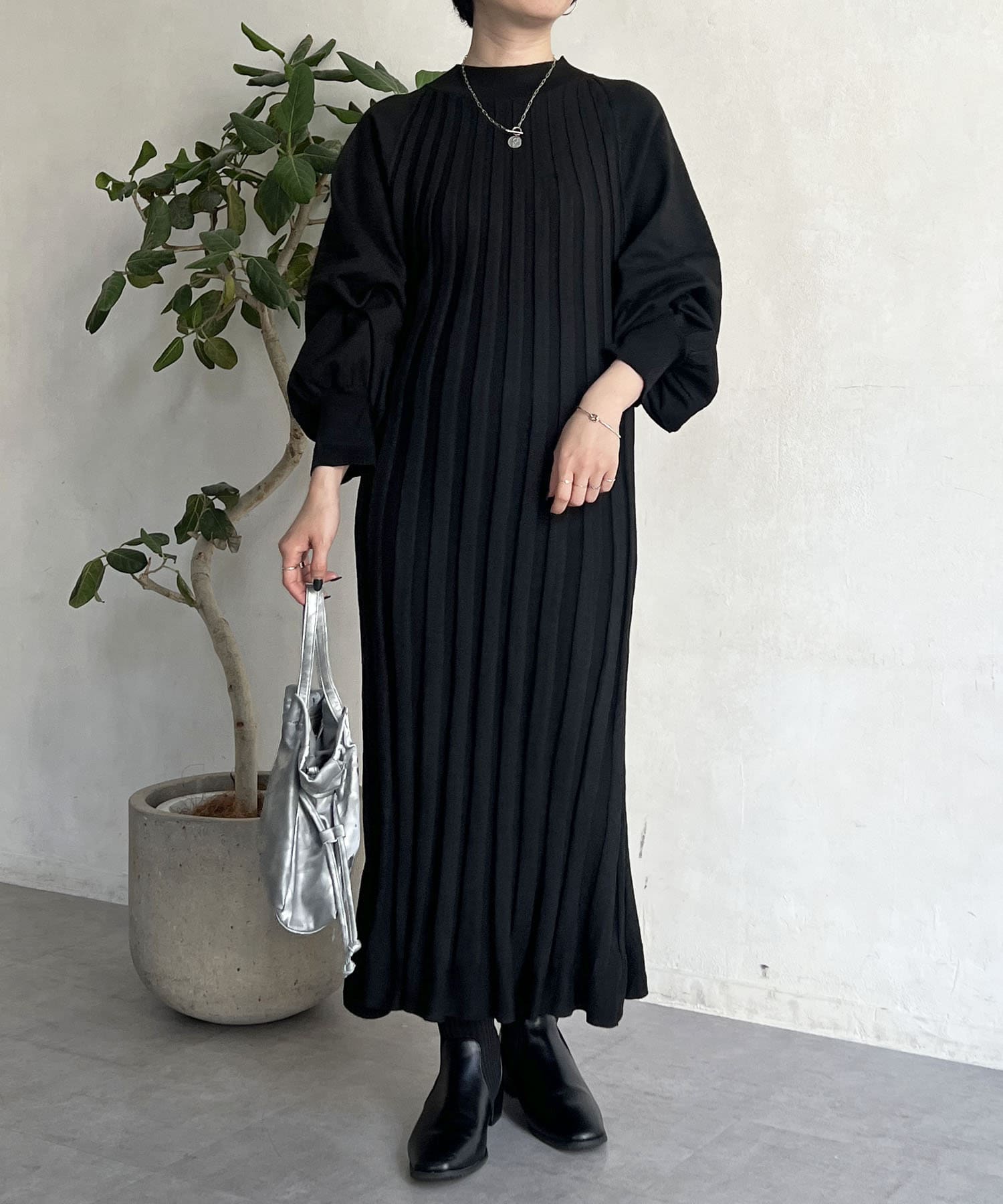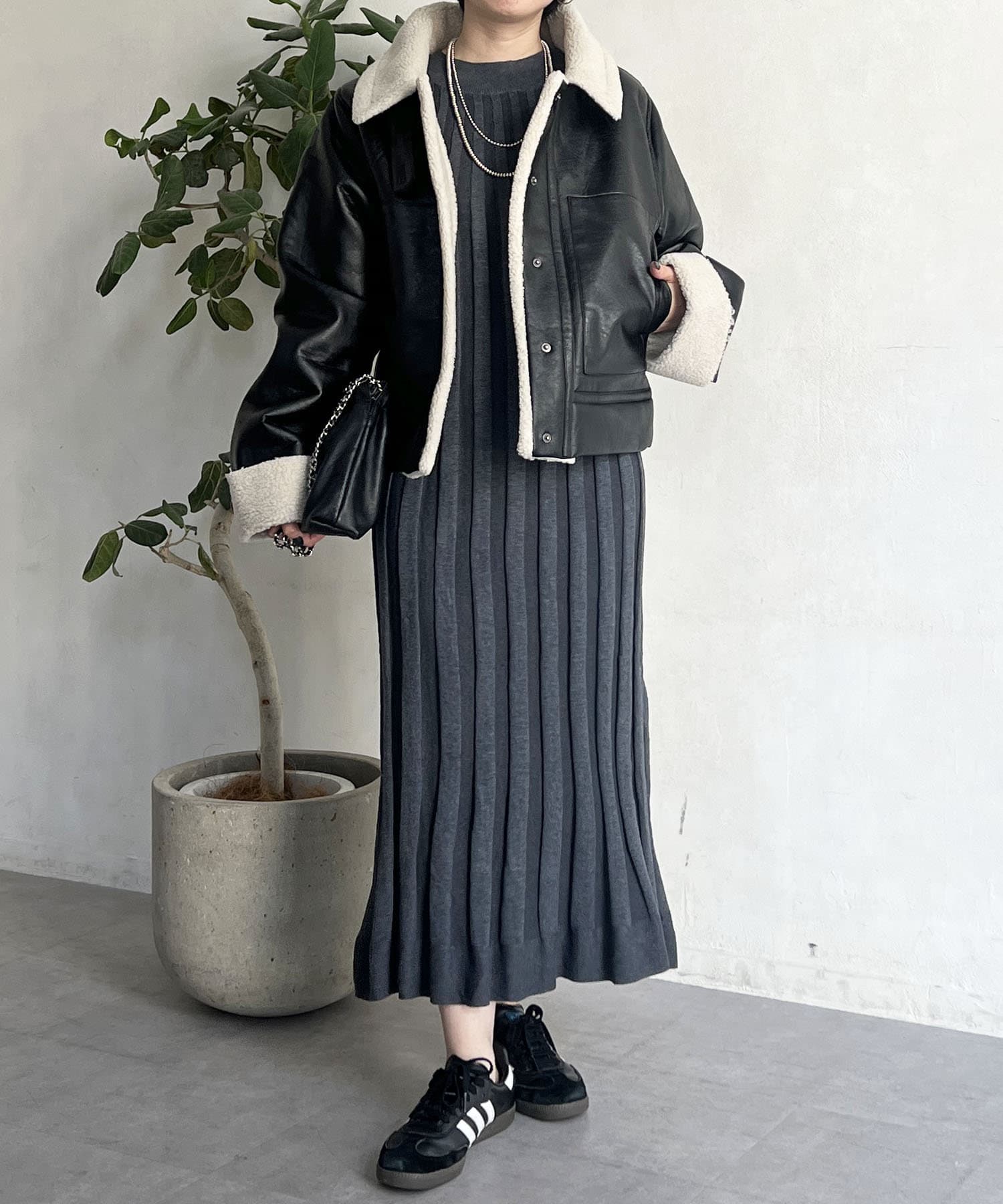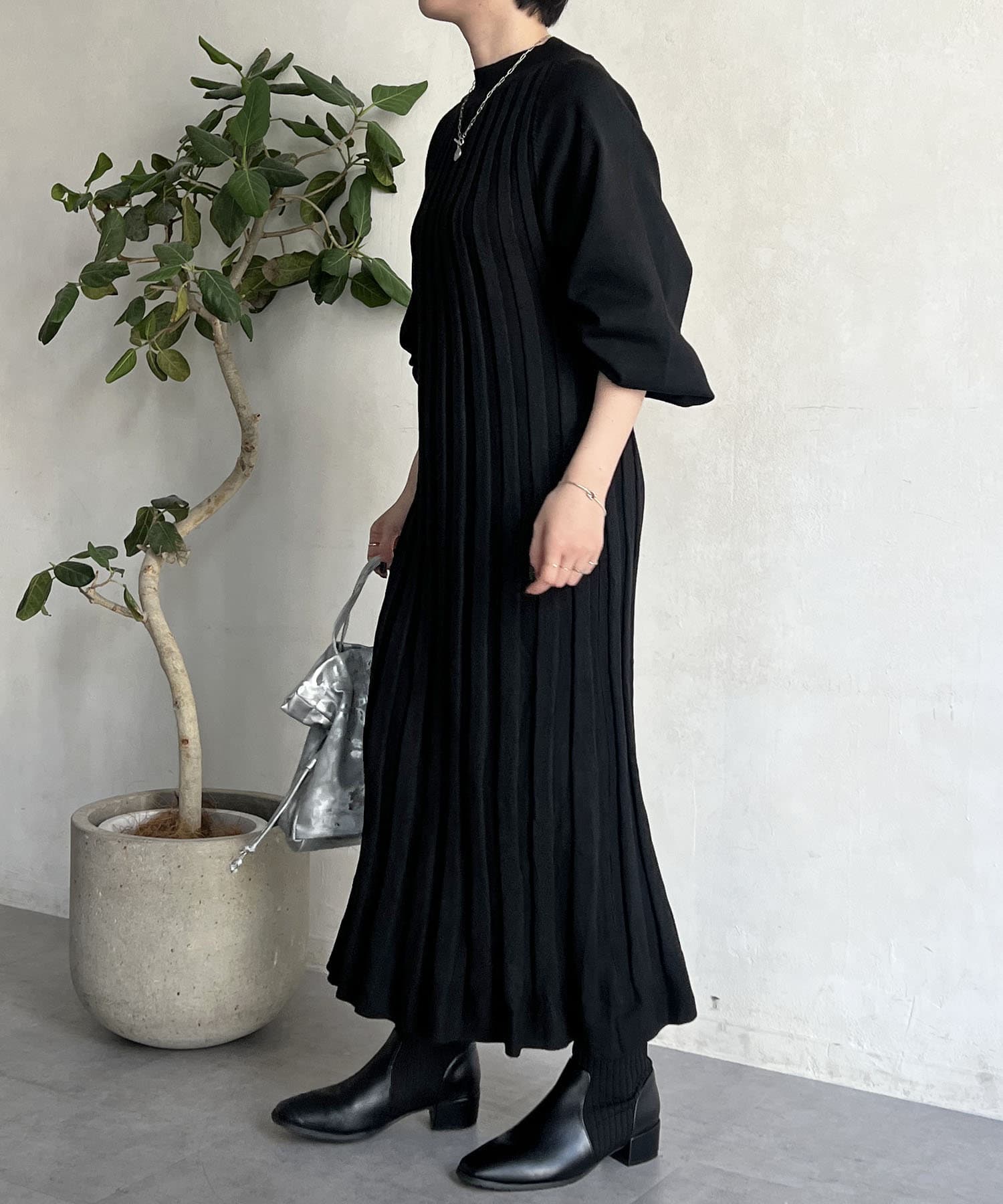 リブニットワンピース