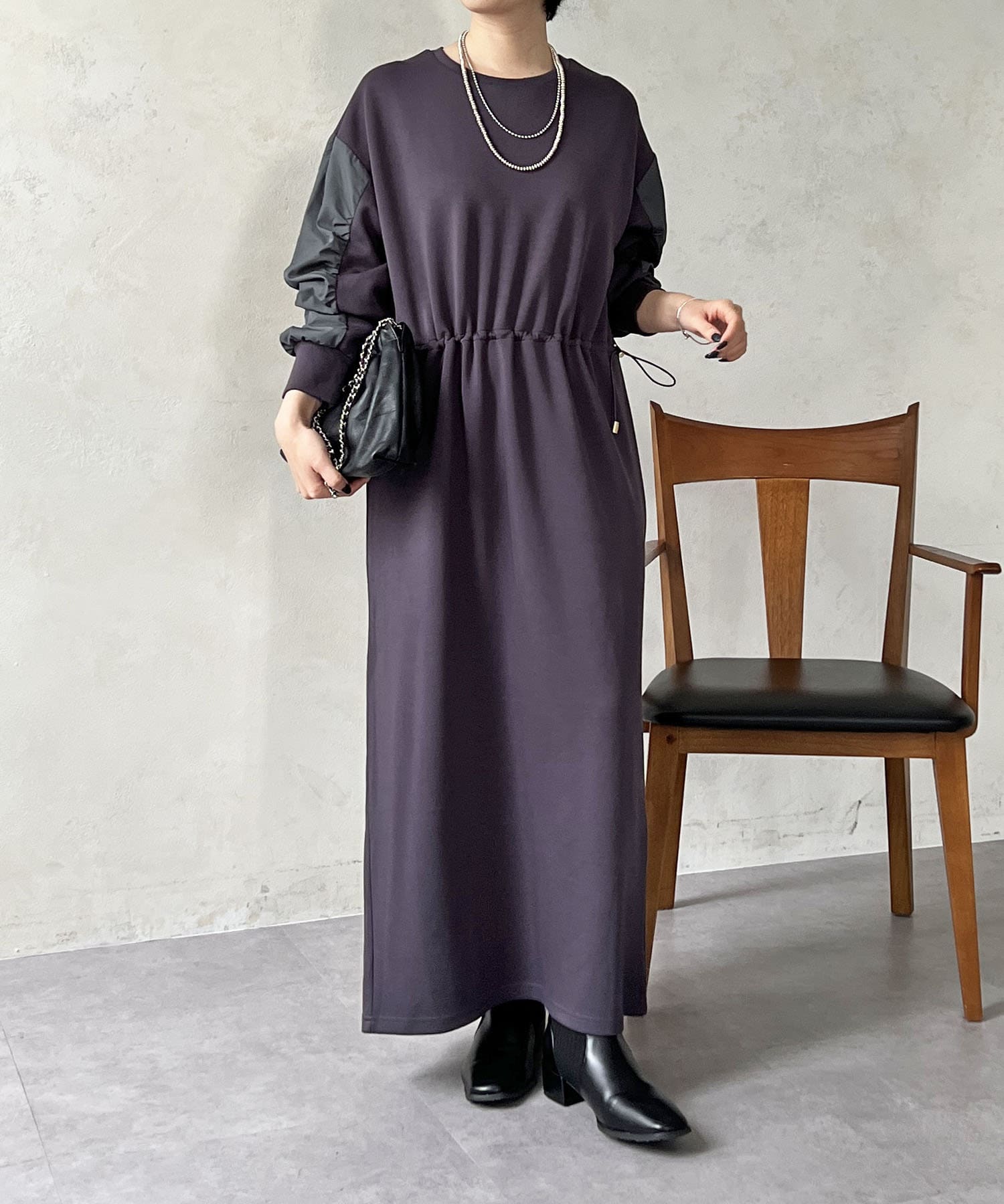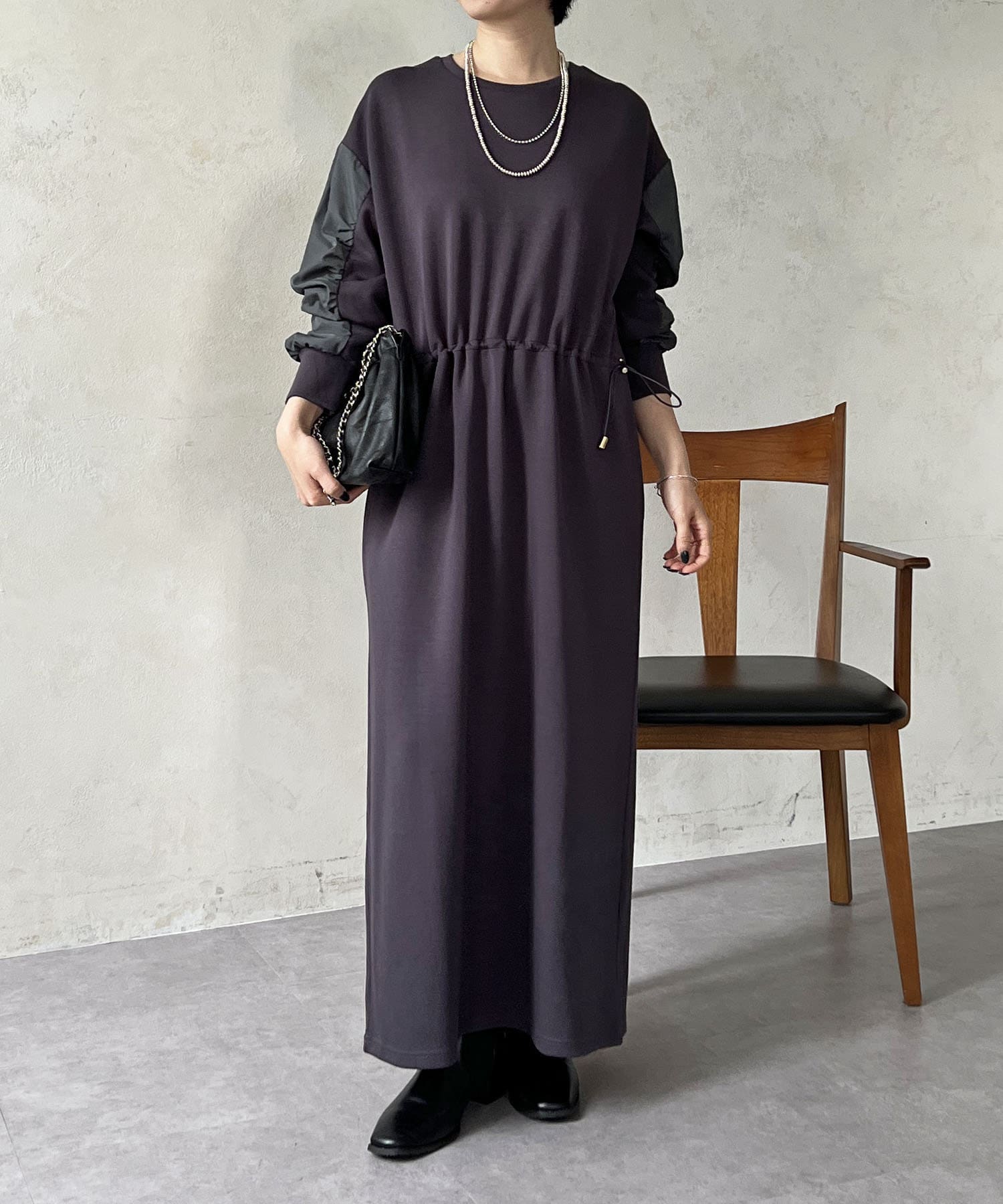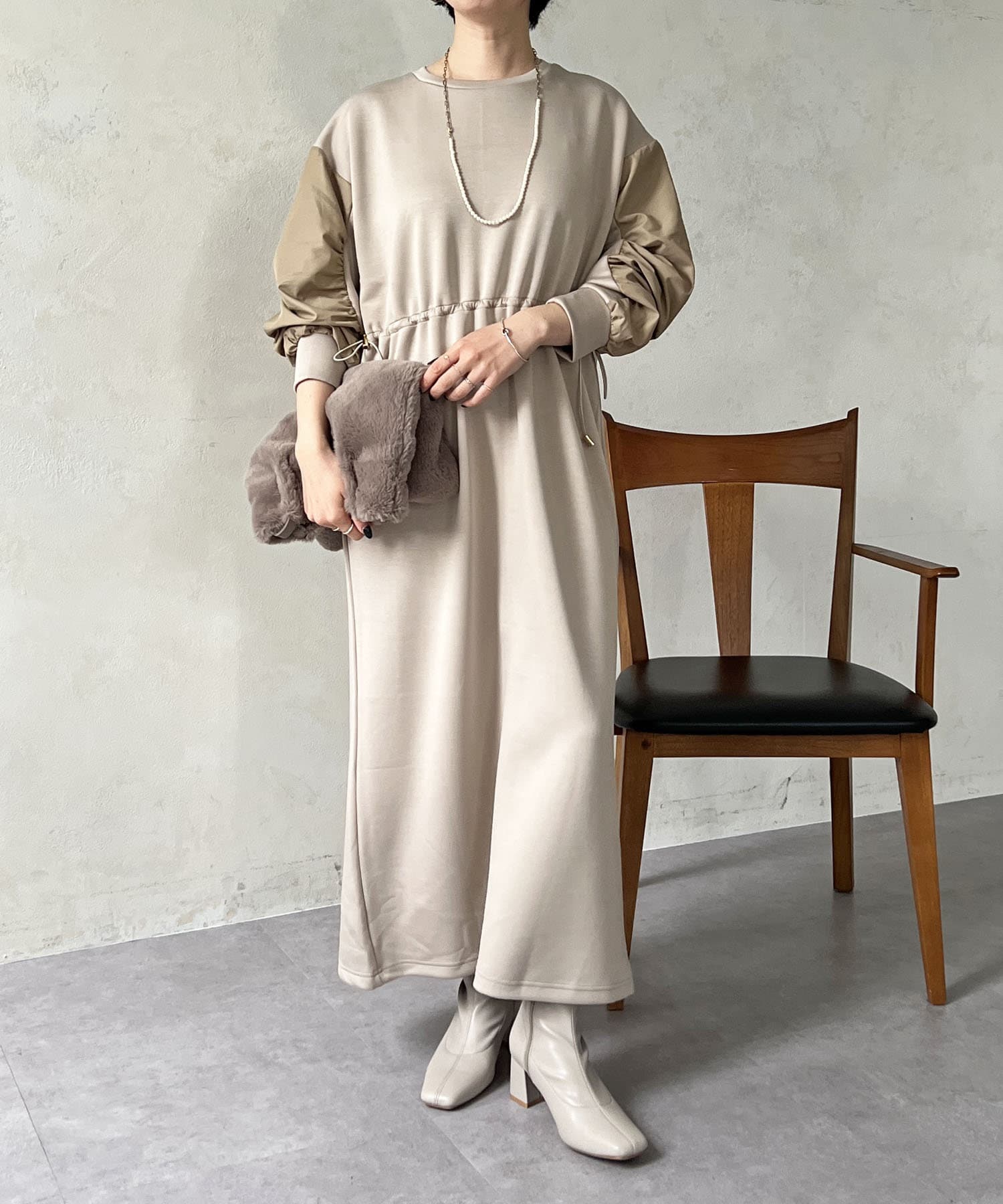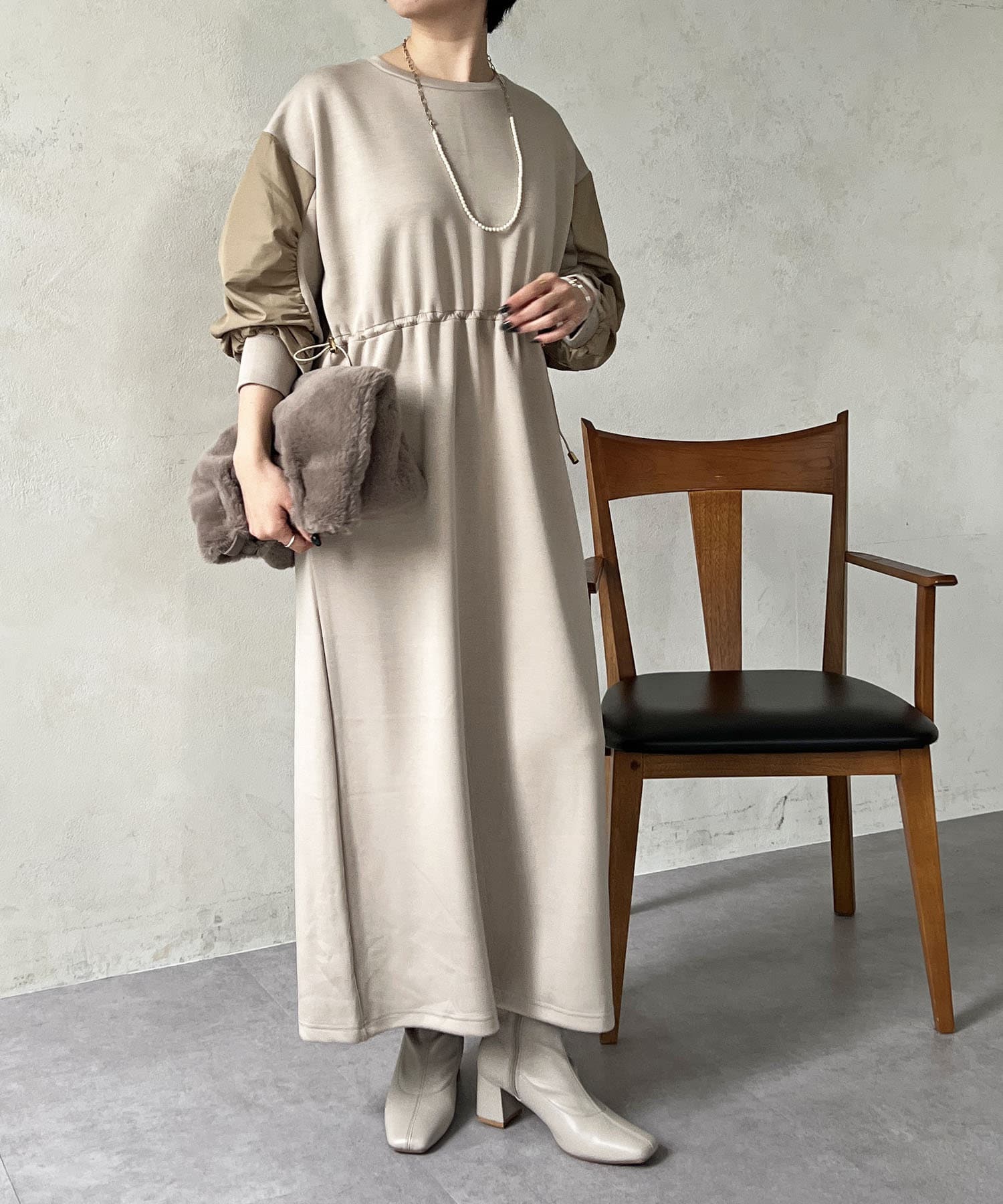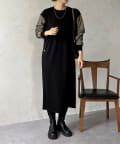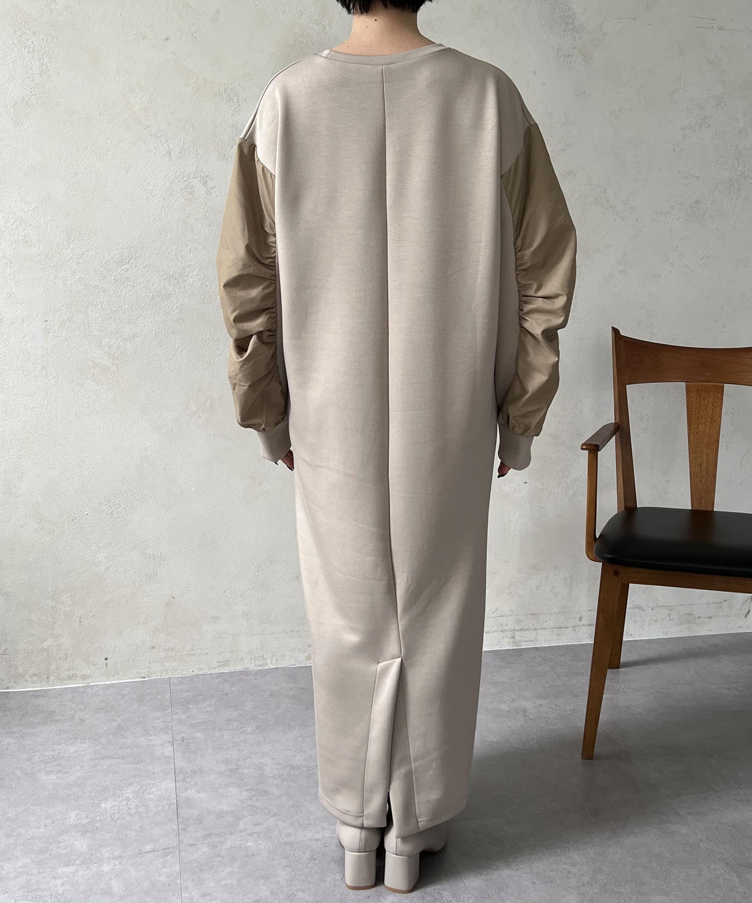 ・異素材ドッキングの袖はギャザー仕様で立体的に◎