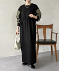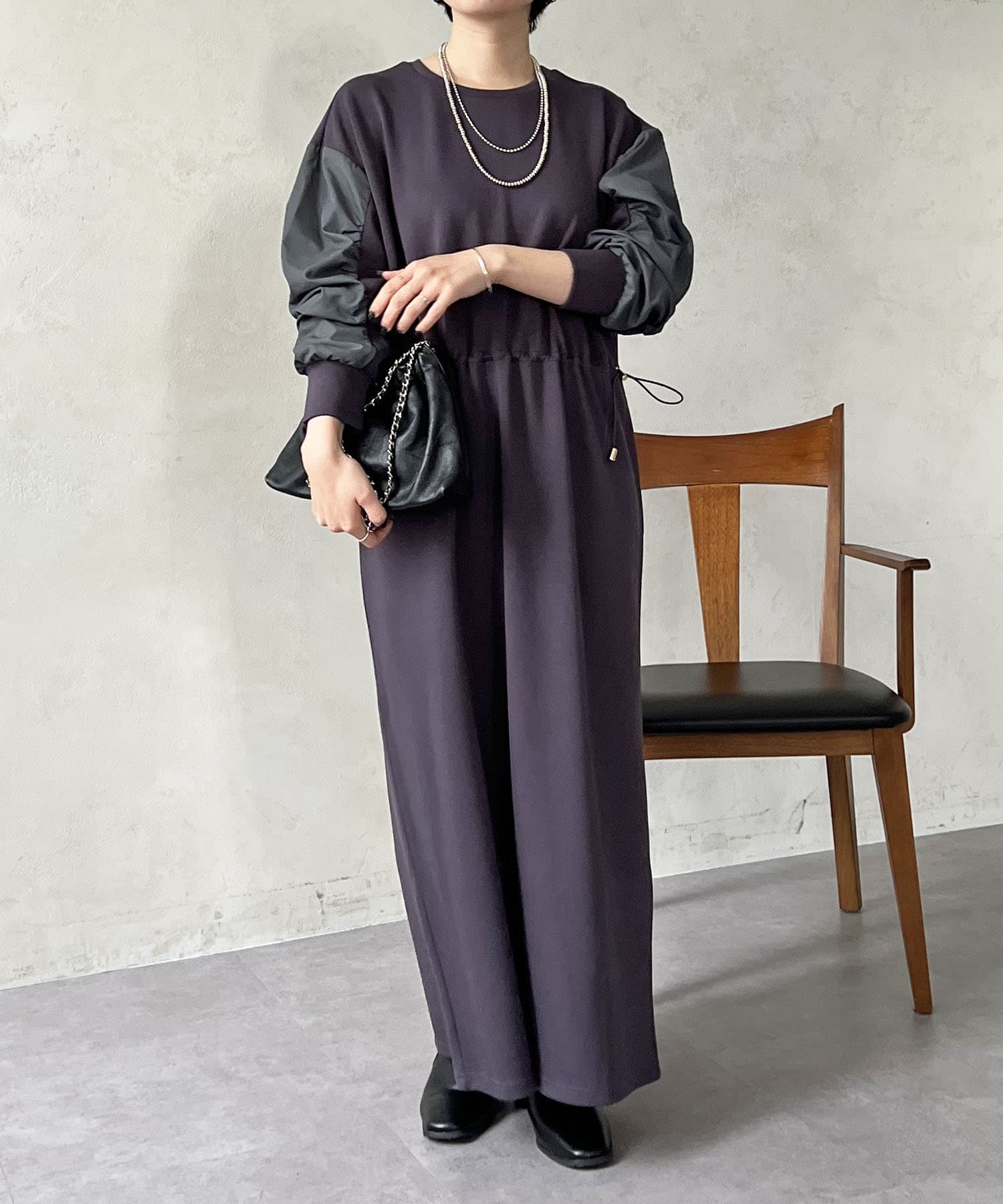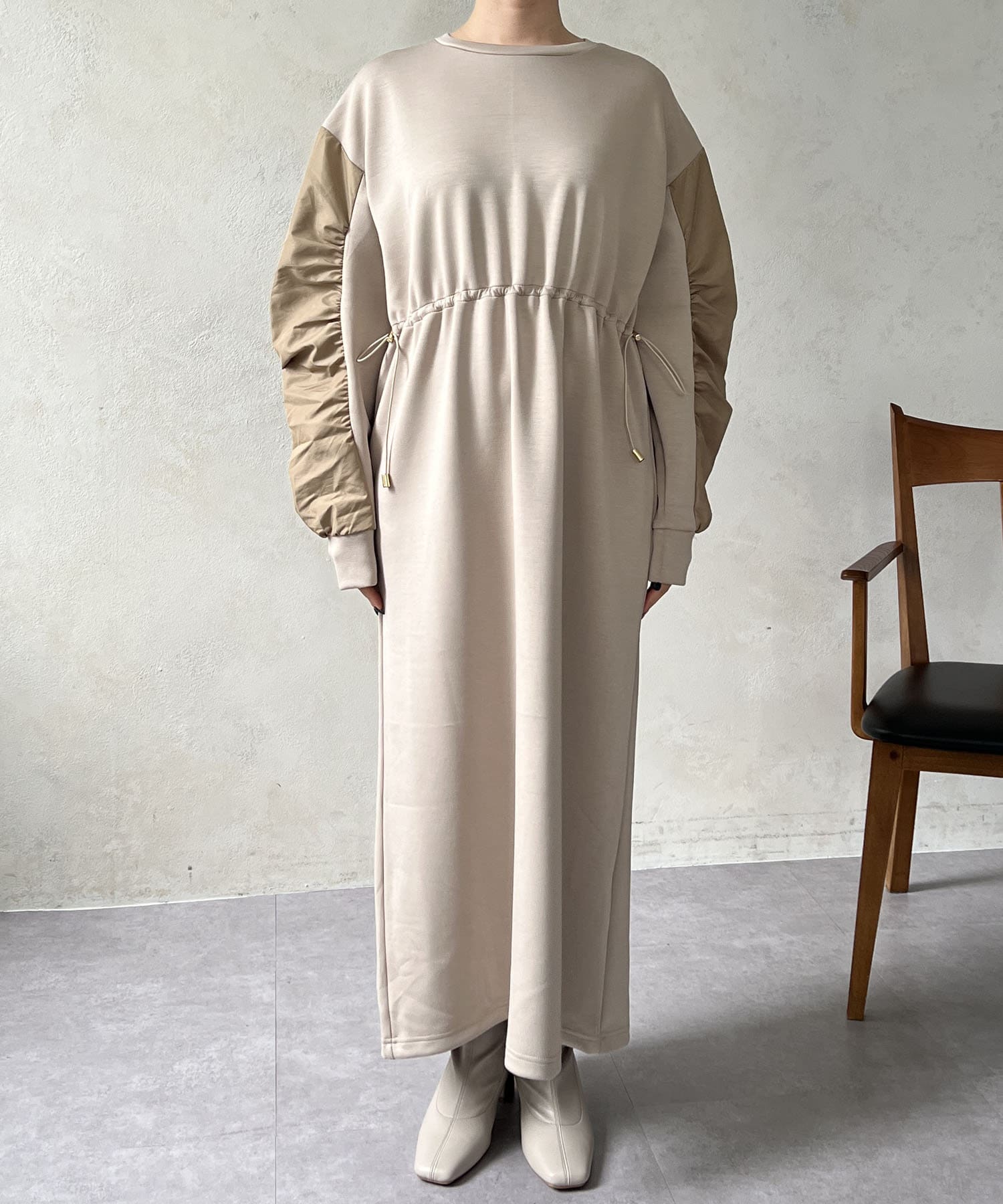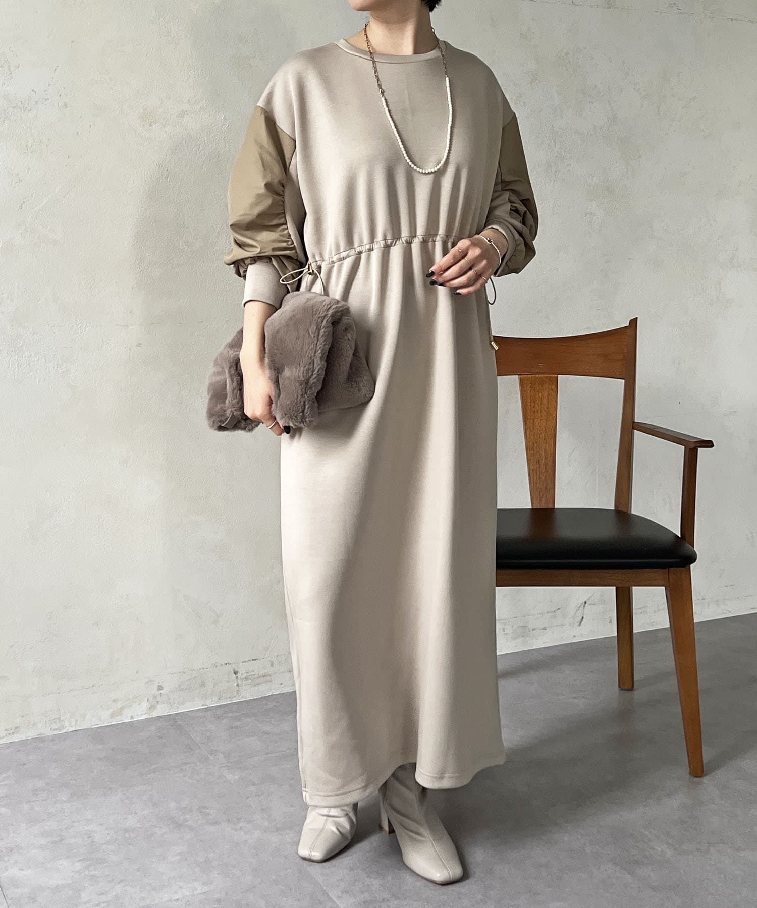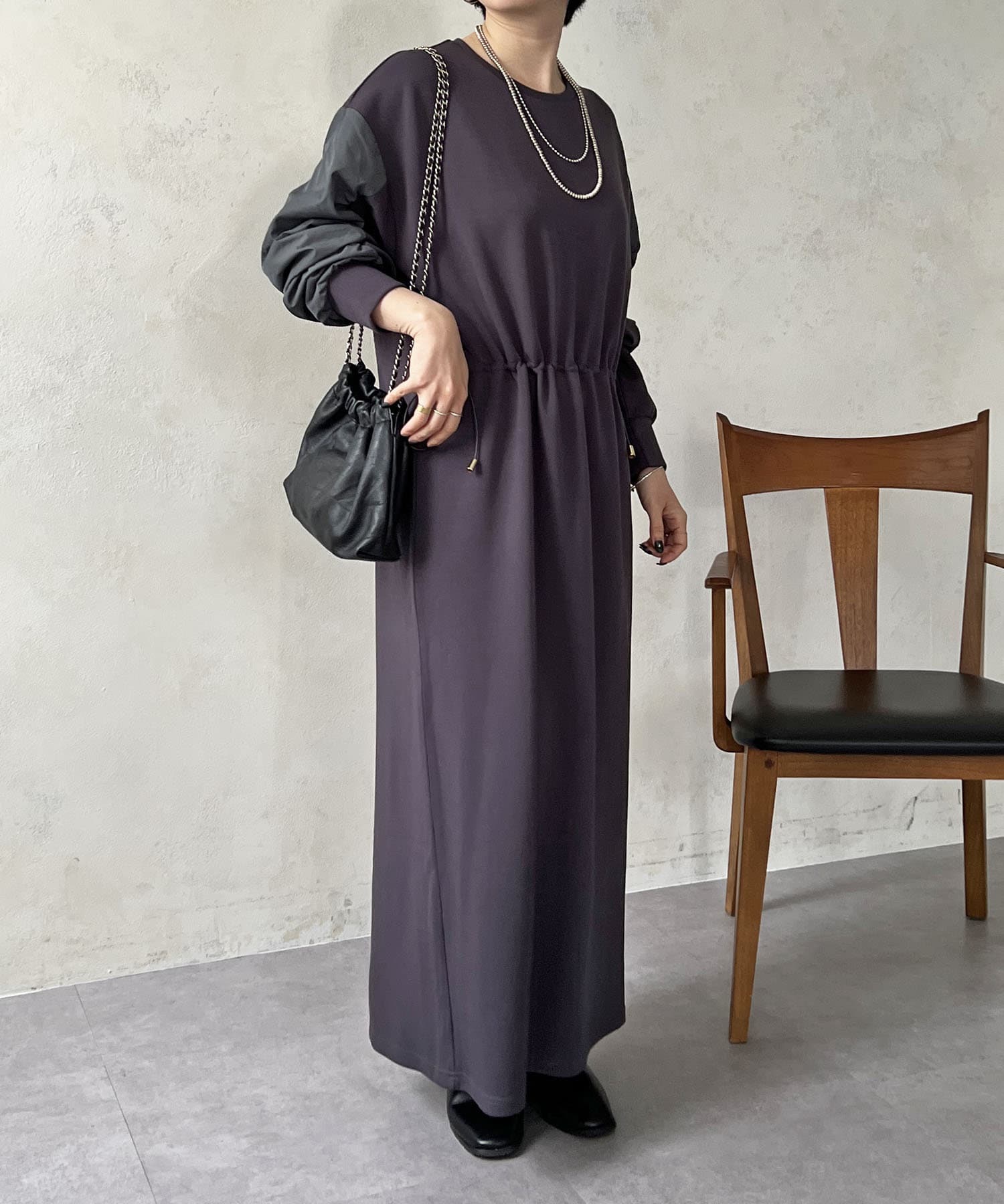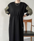 ・異素材ドッキングの袖はギャザー仕様で立体的に◎