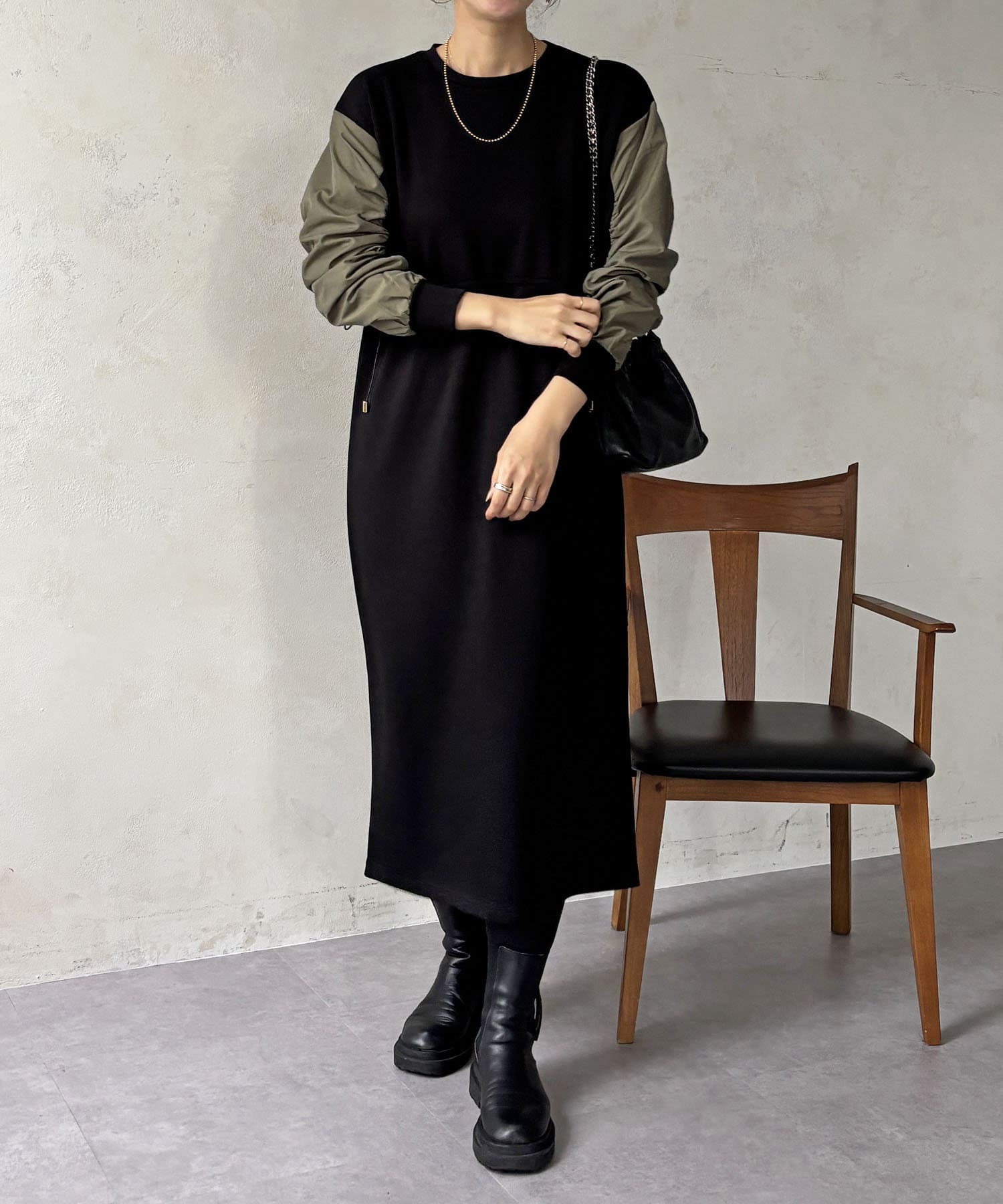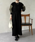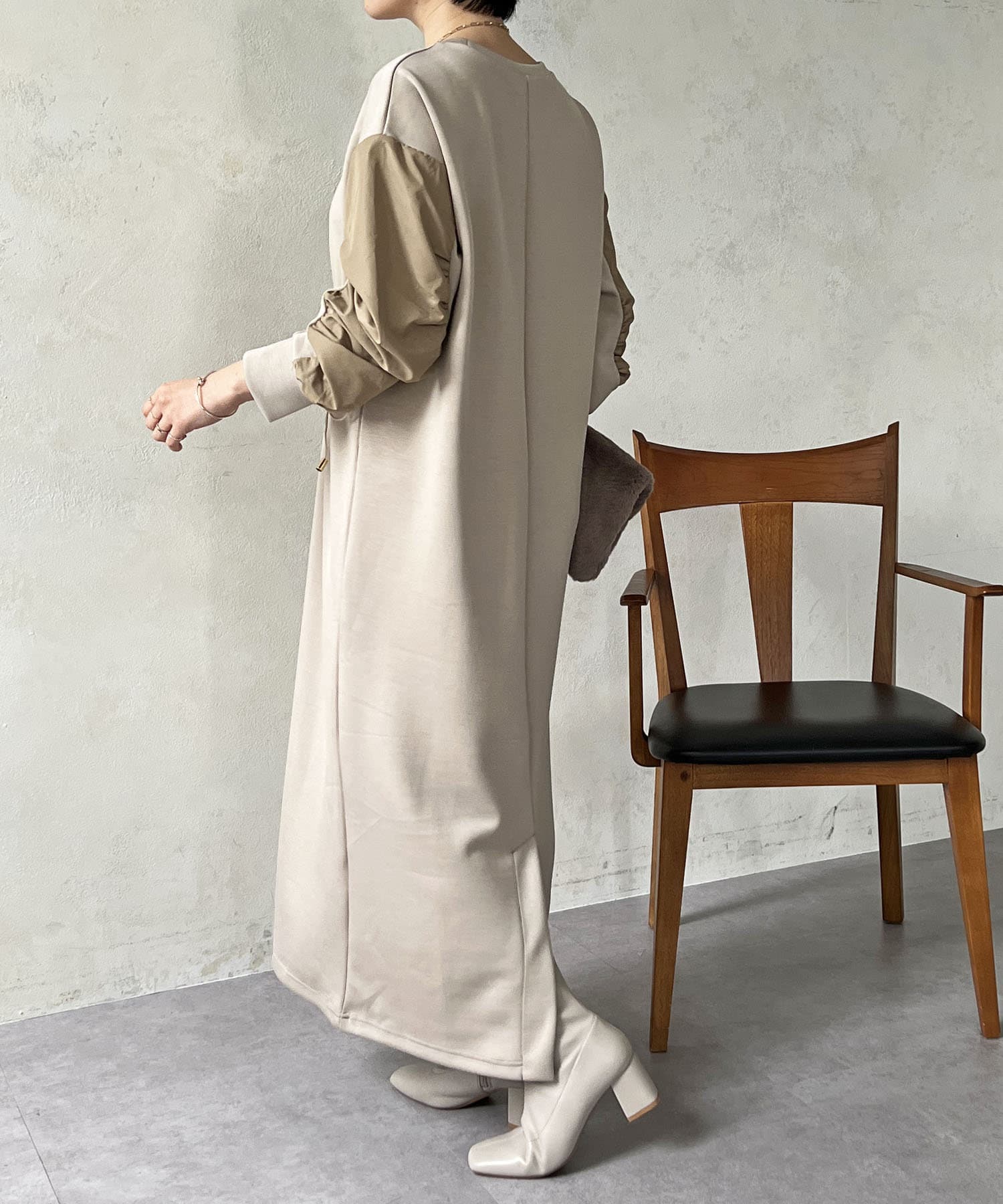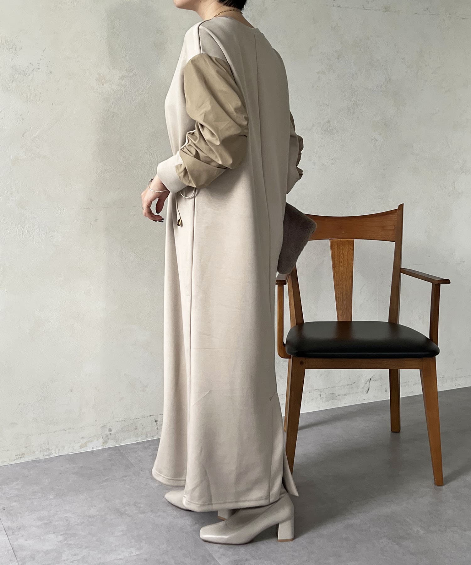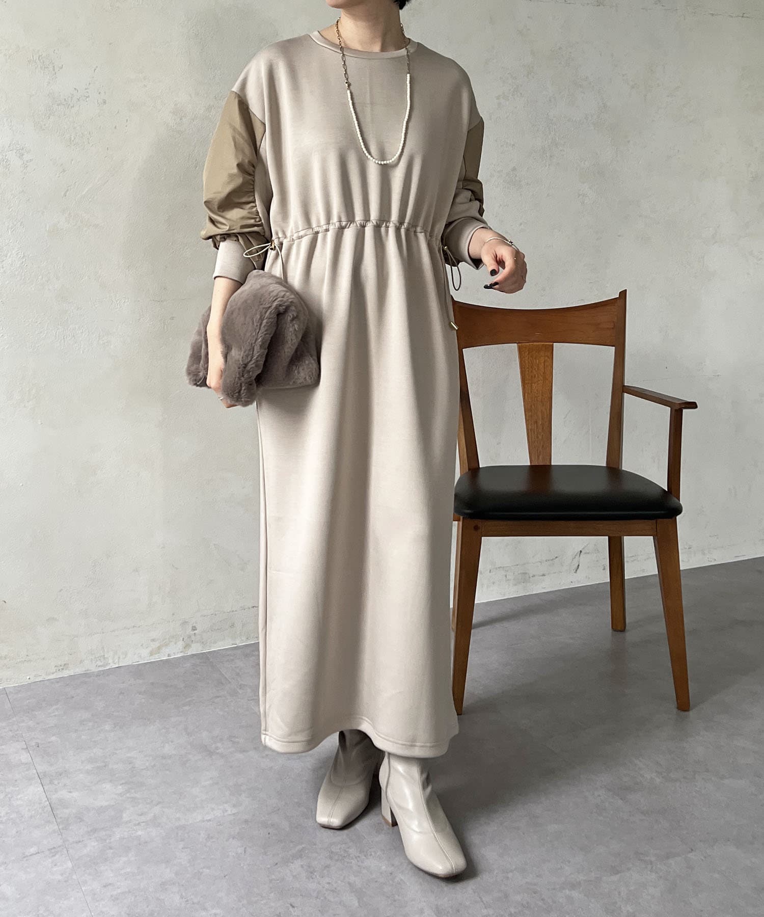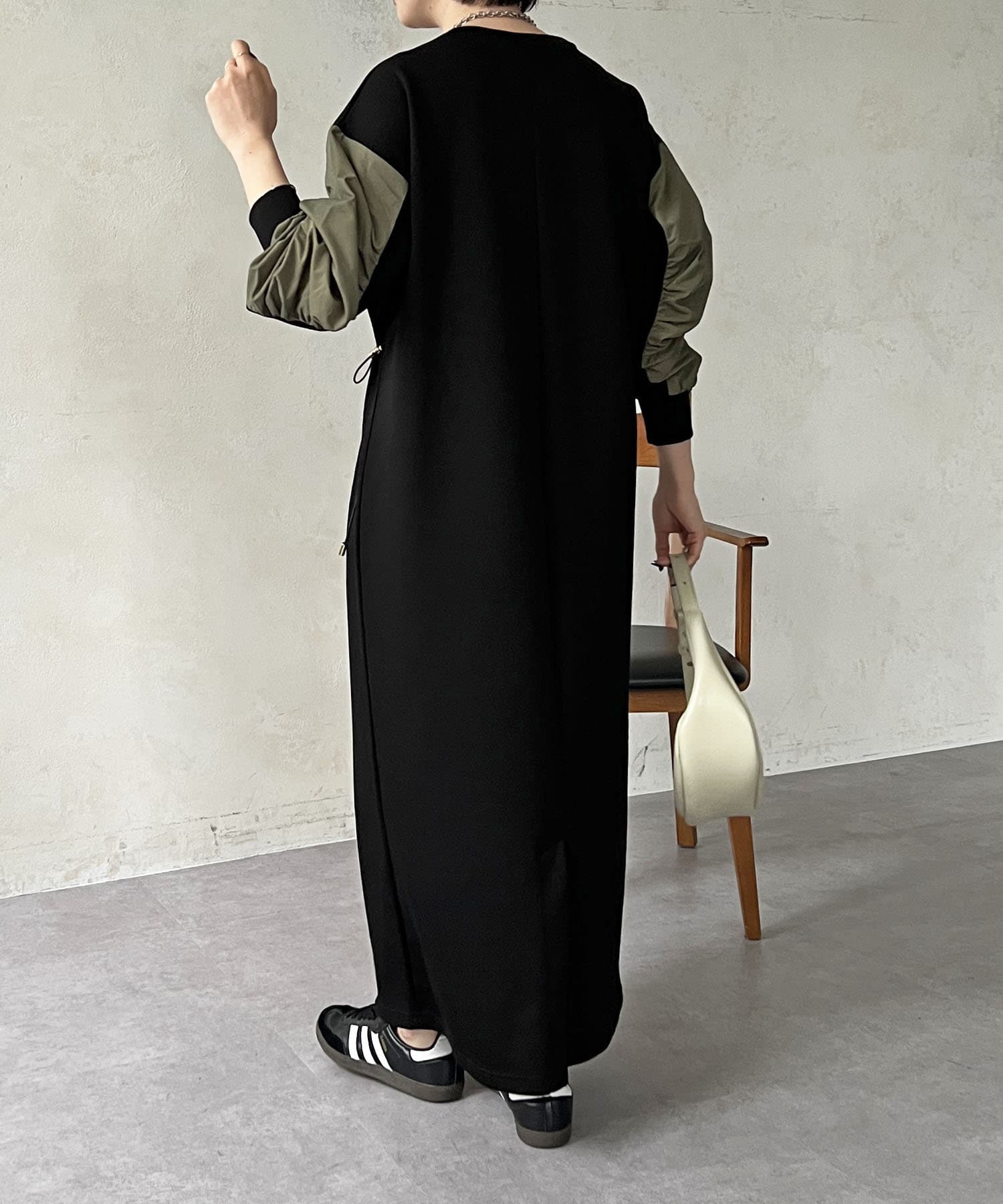 ・異素材ドッキングの袖はギャザー仕様で立体的に◎