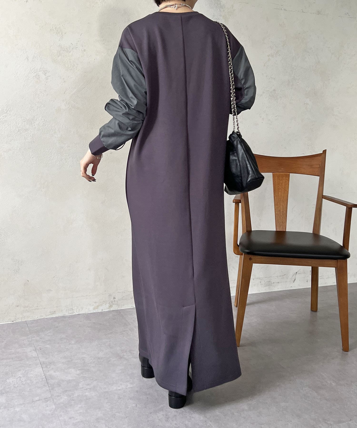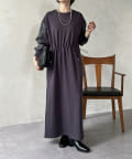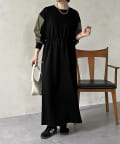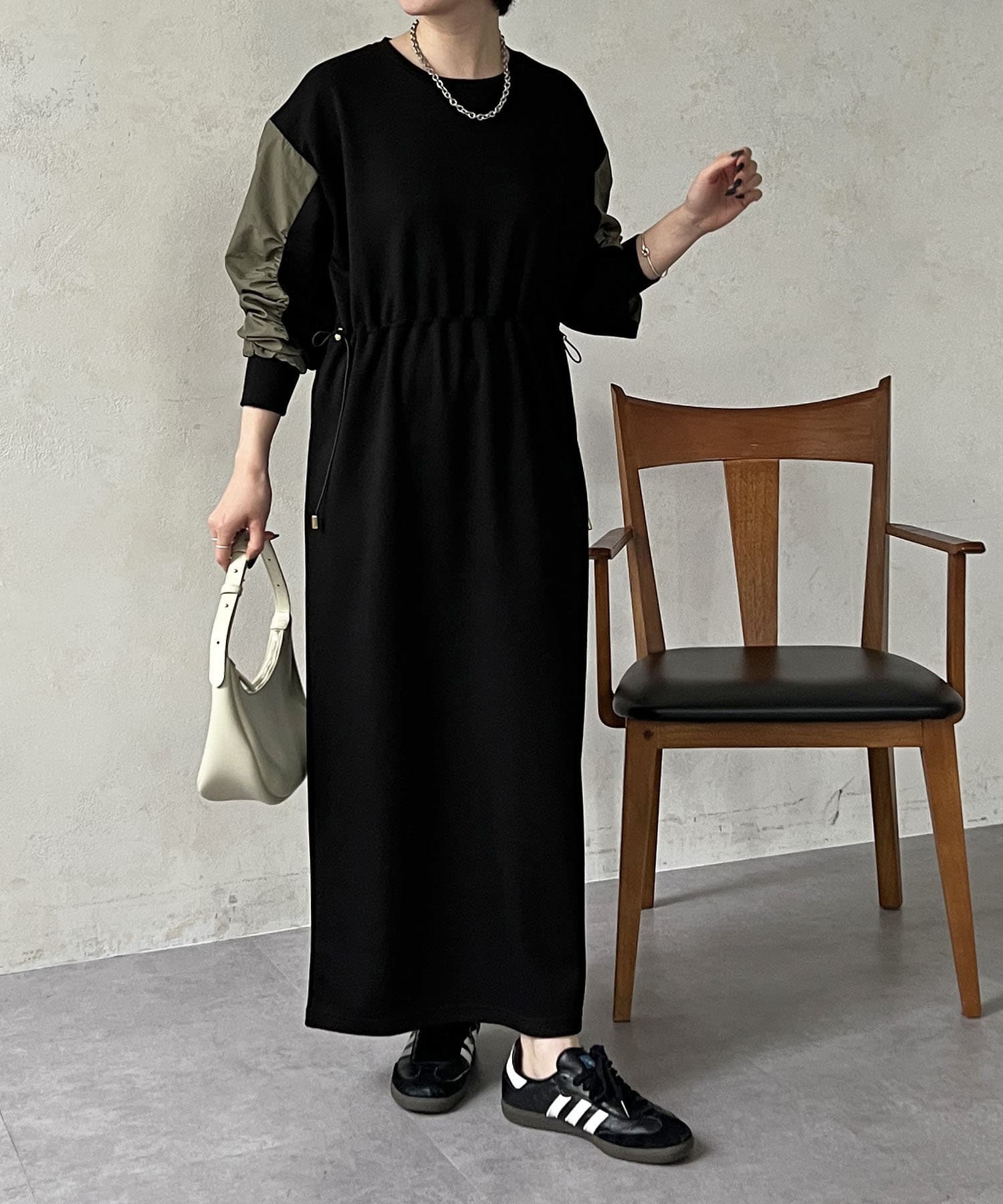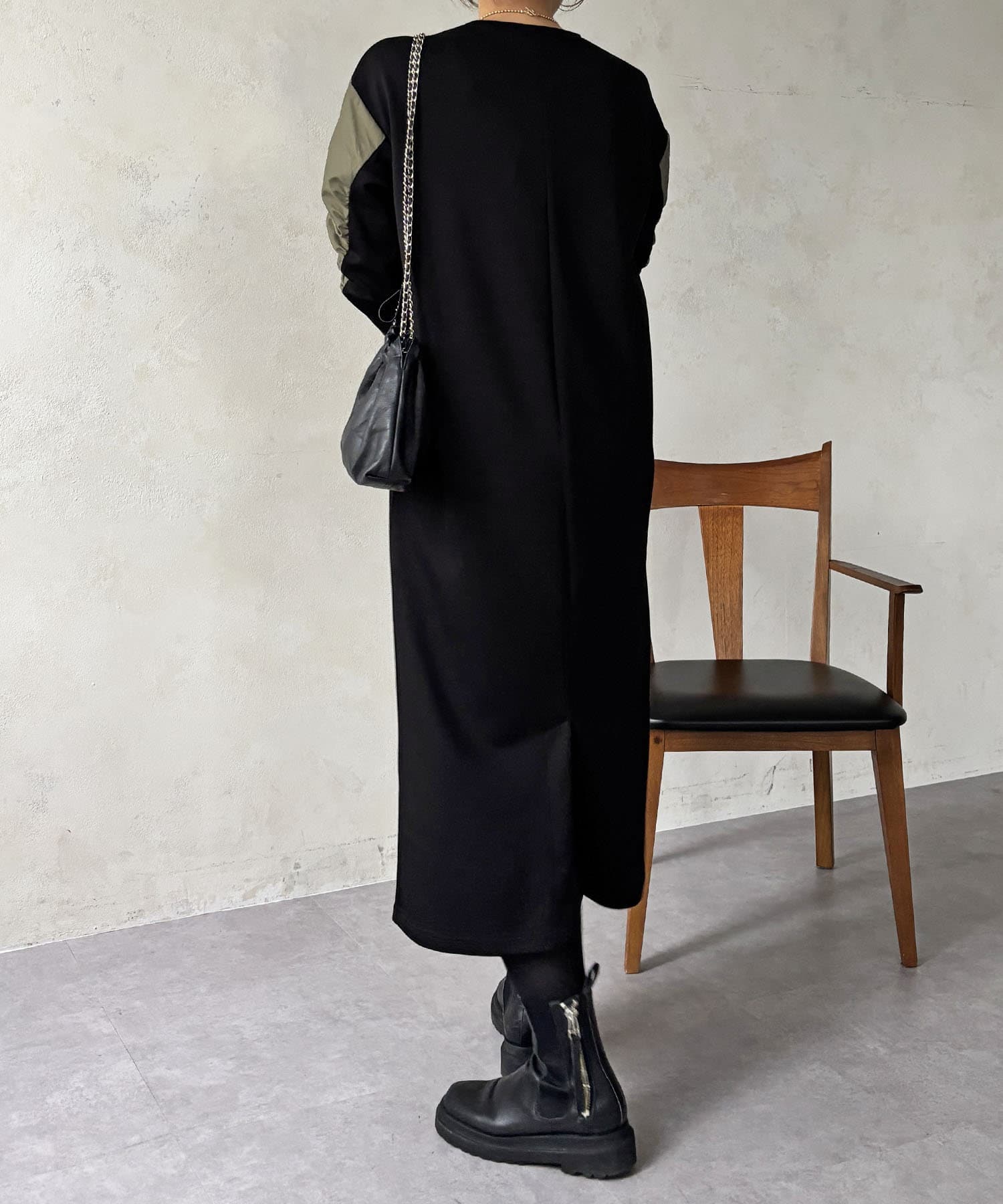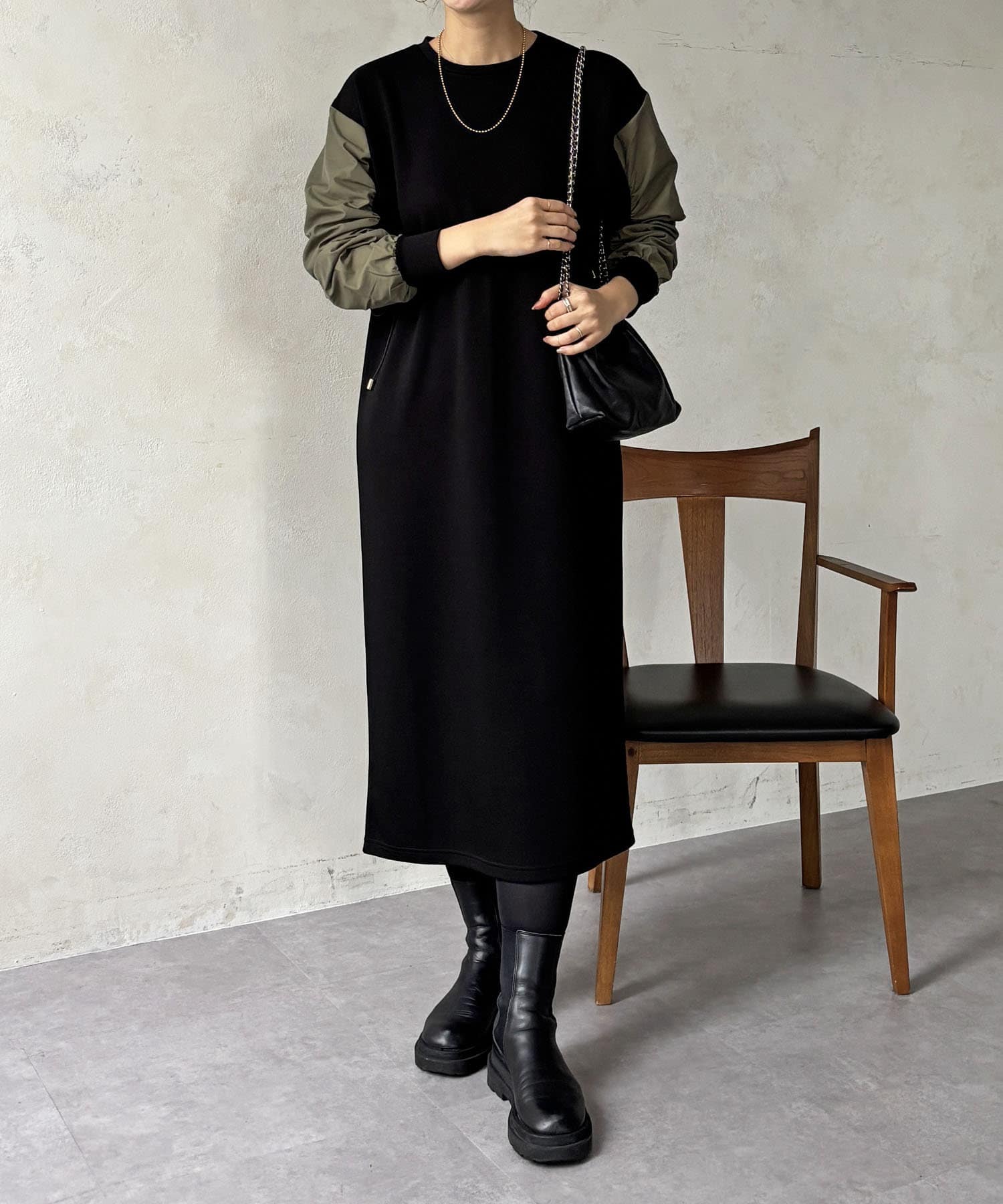 ・異素材ドッキングの袖はギャザー仕様で立体的に◎
