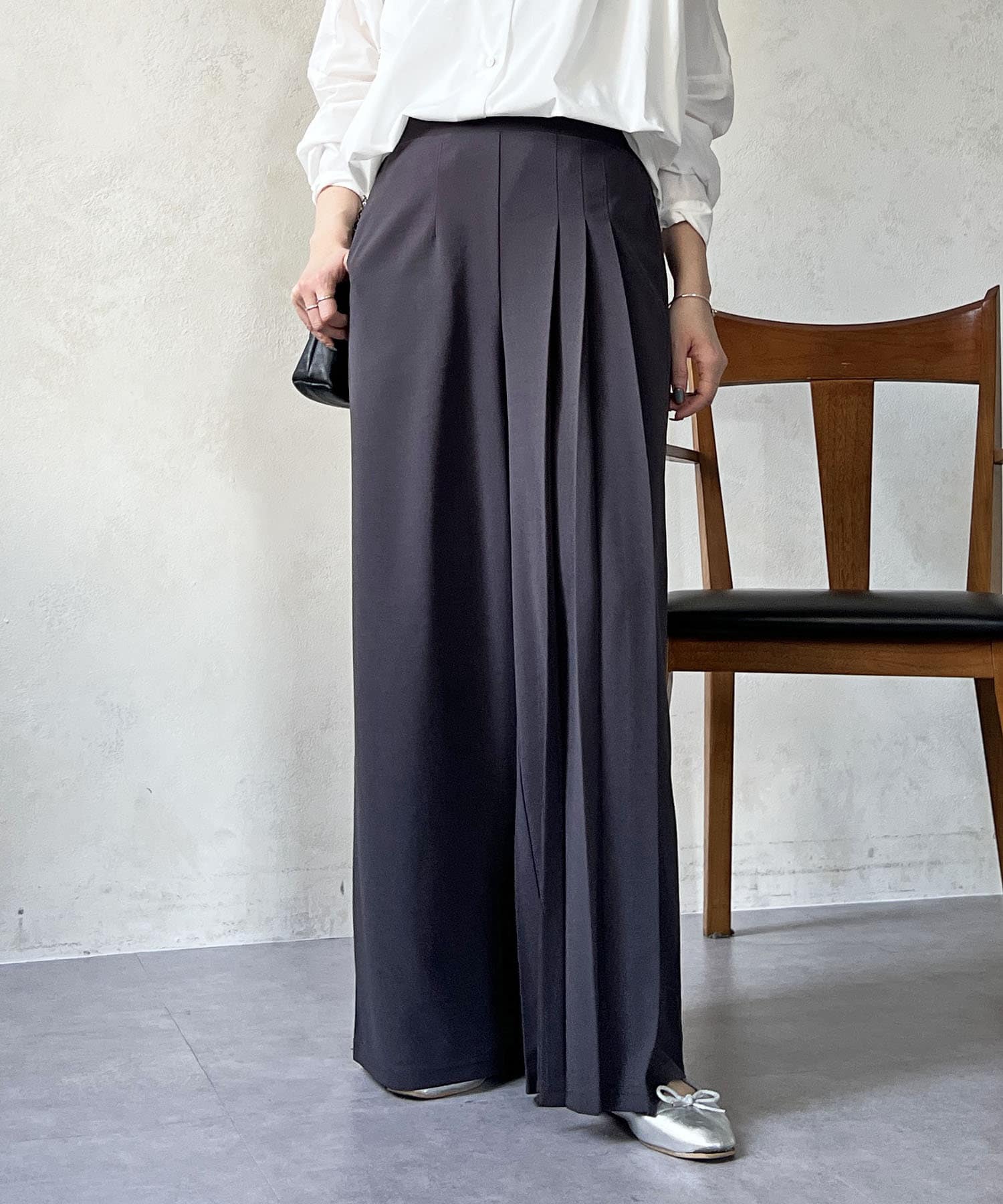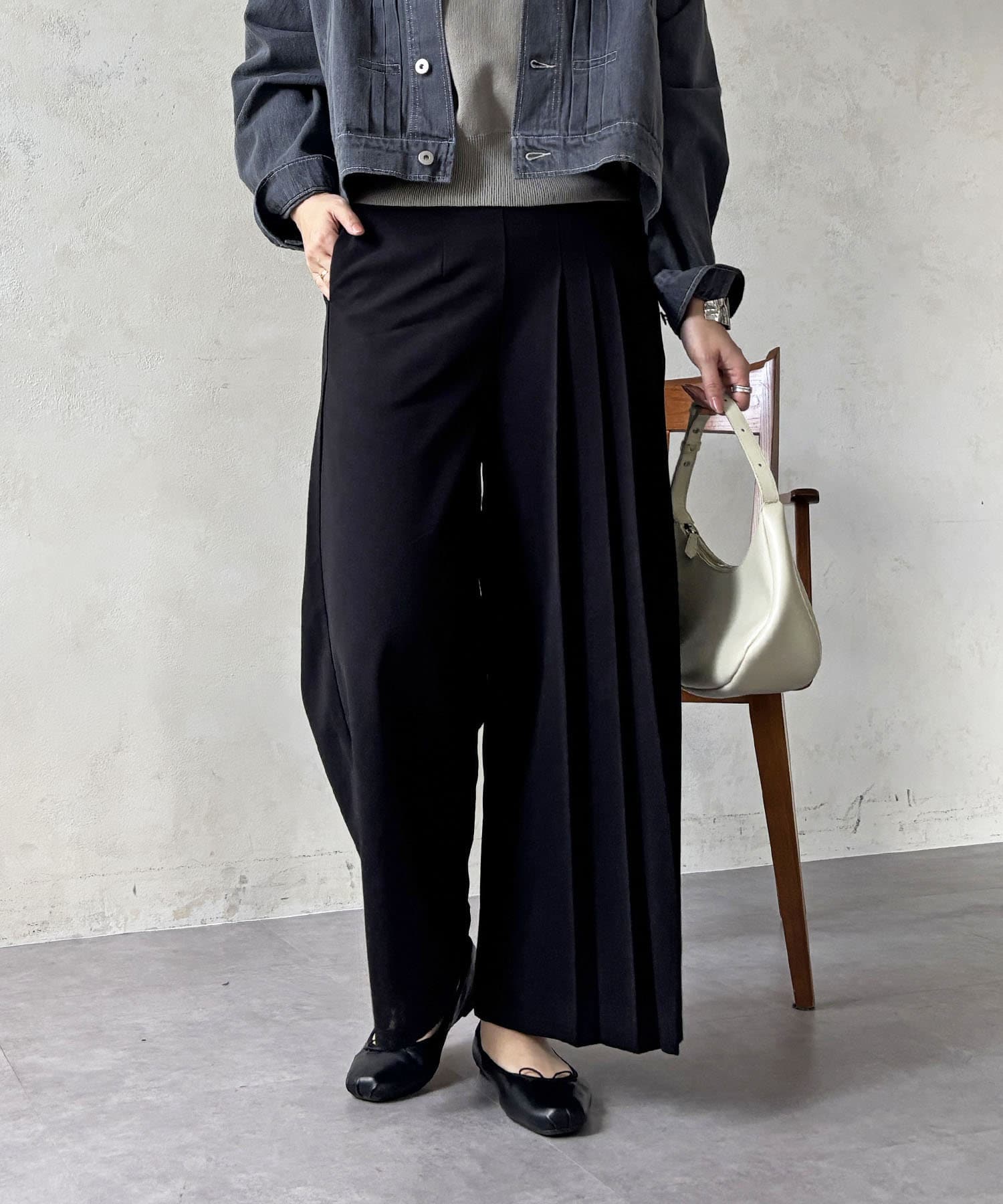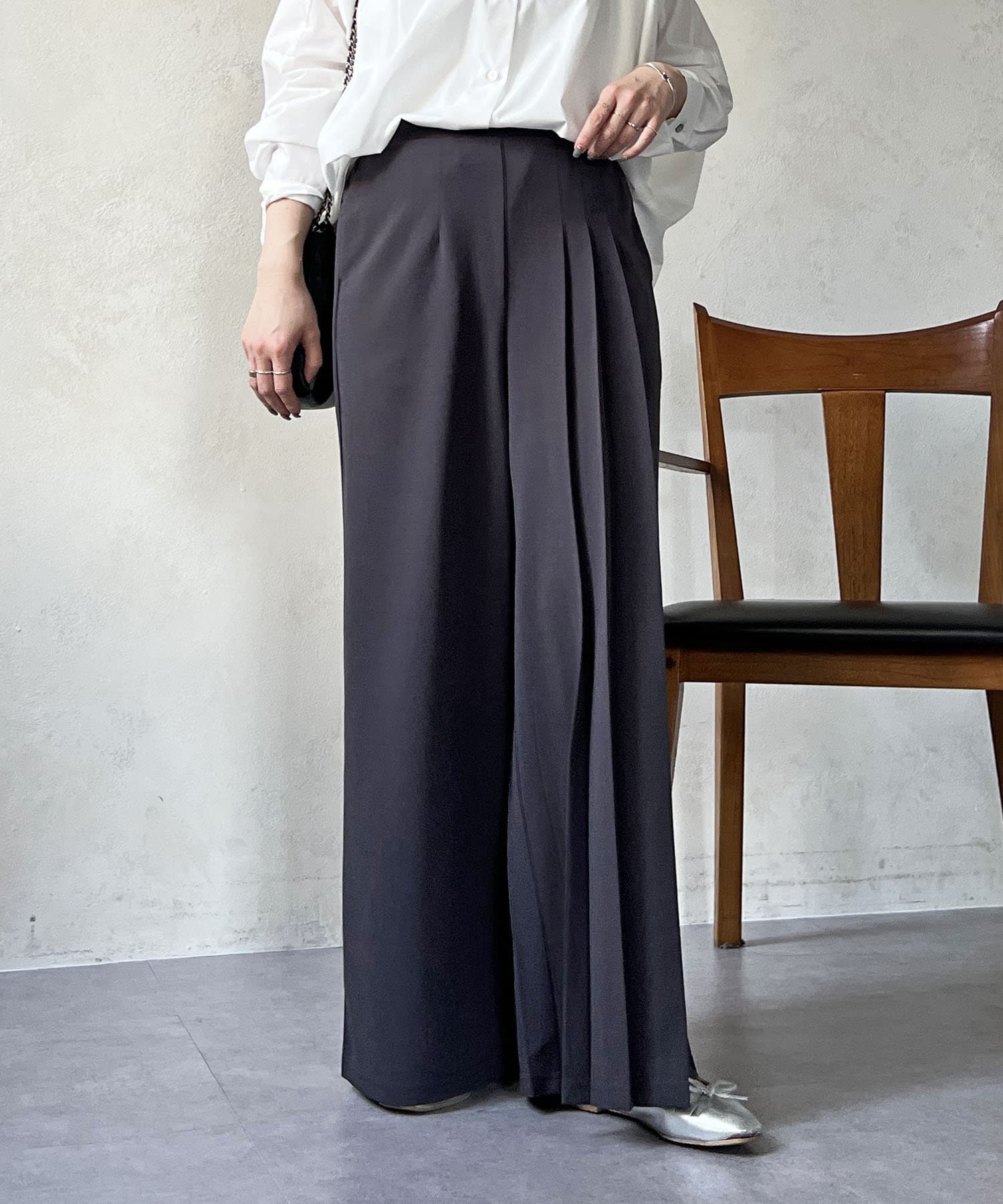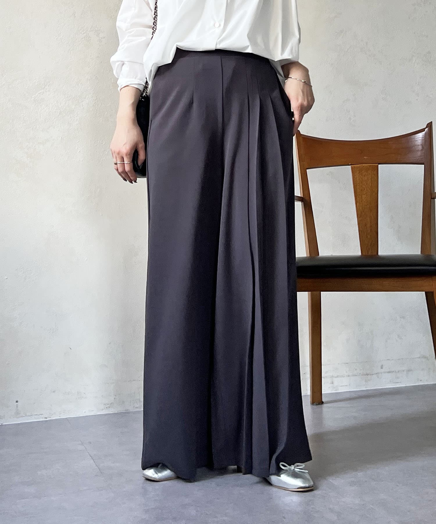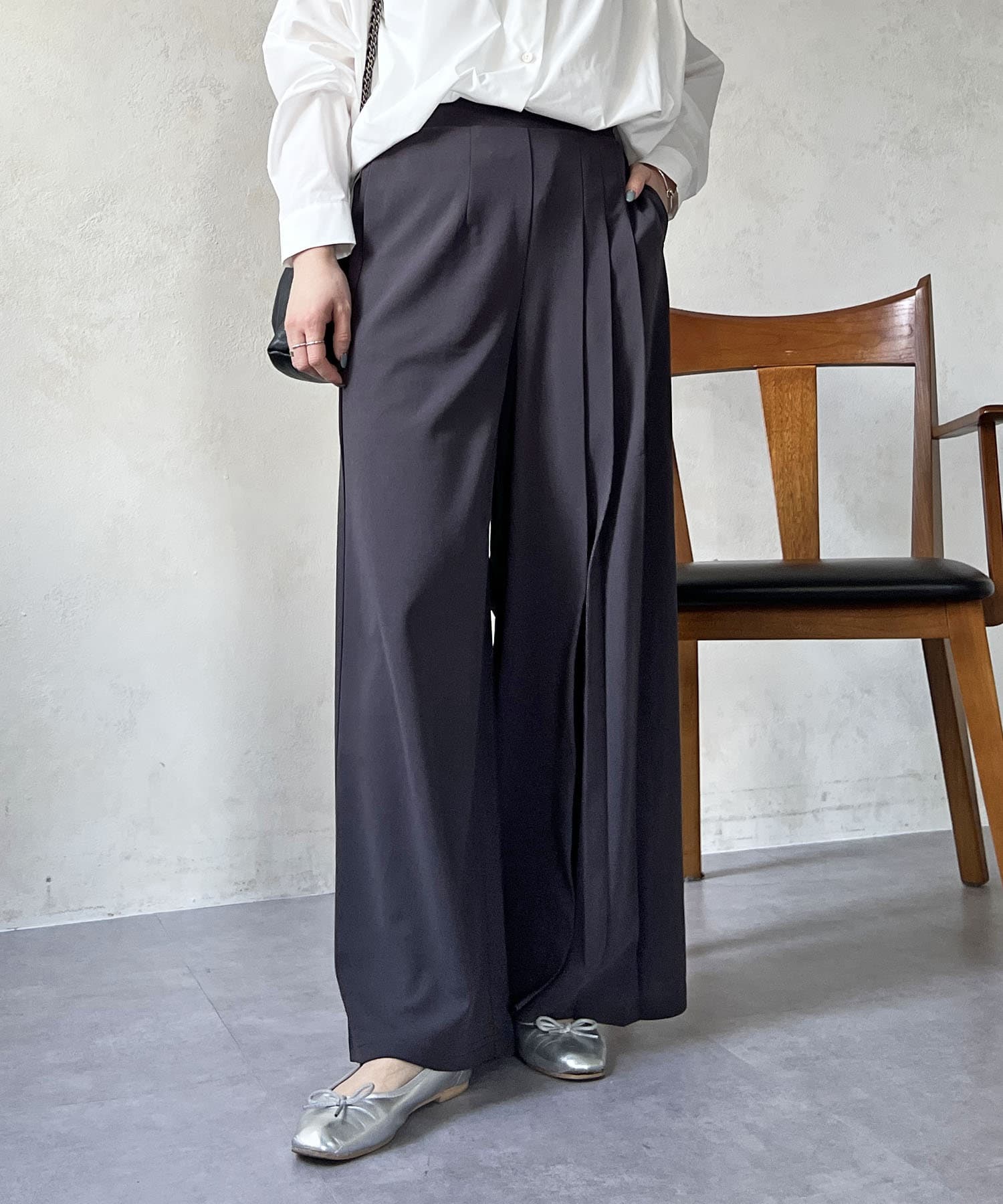 落ち感のある素材でキレイめ見え×体型カバーが叶うデザインワイドパンツ
