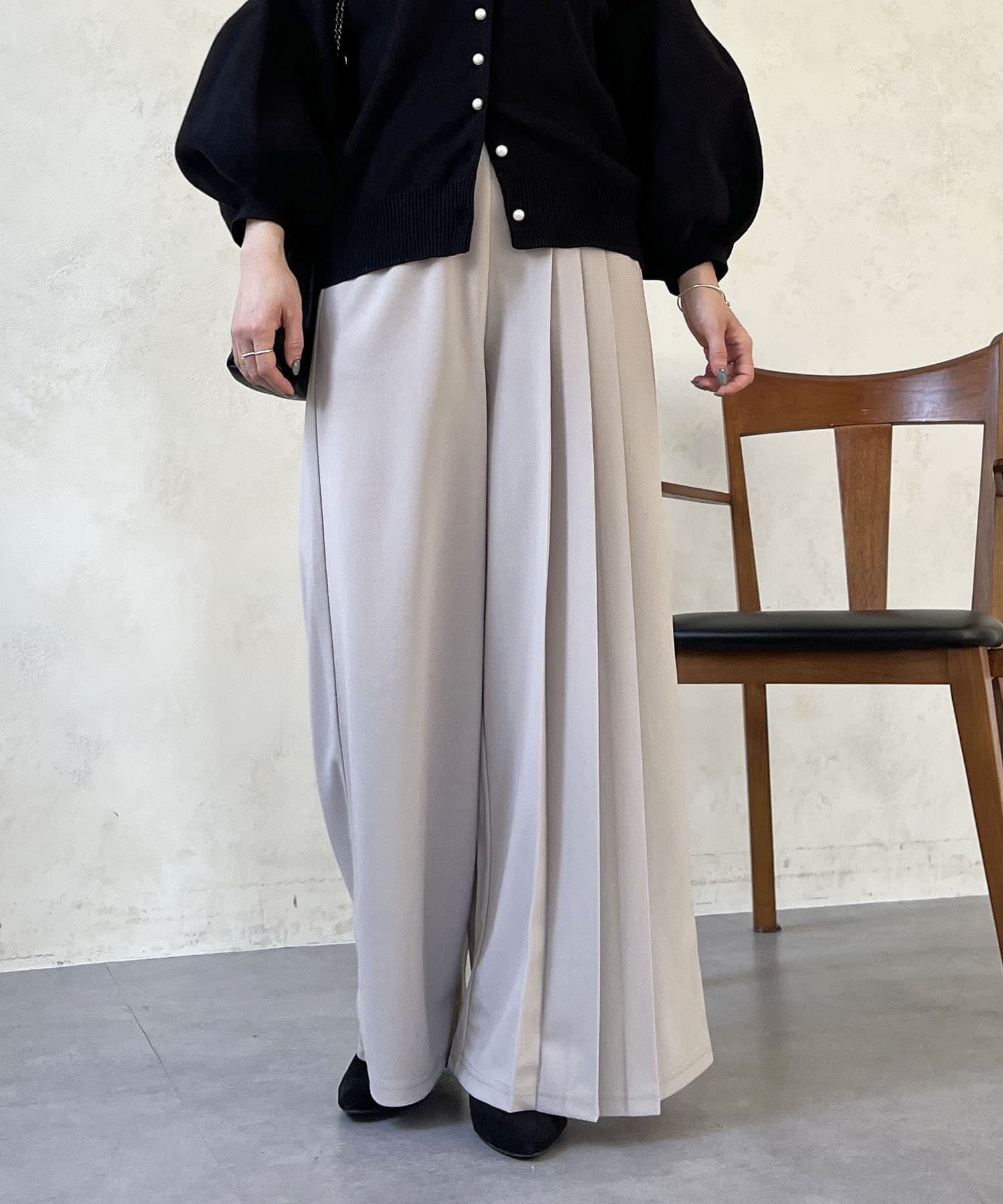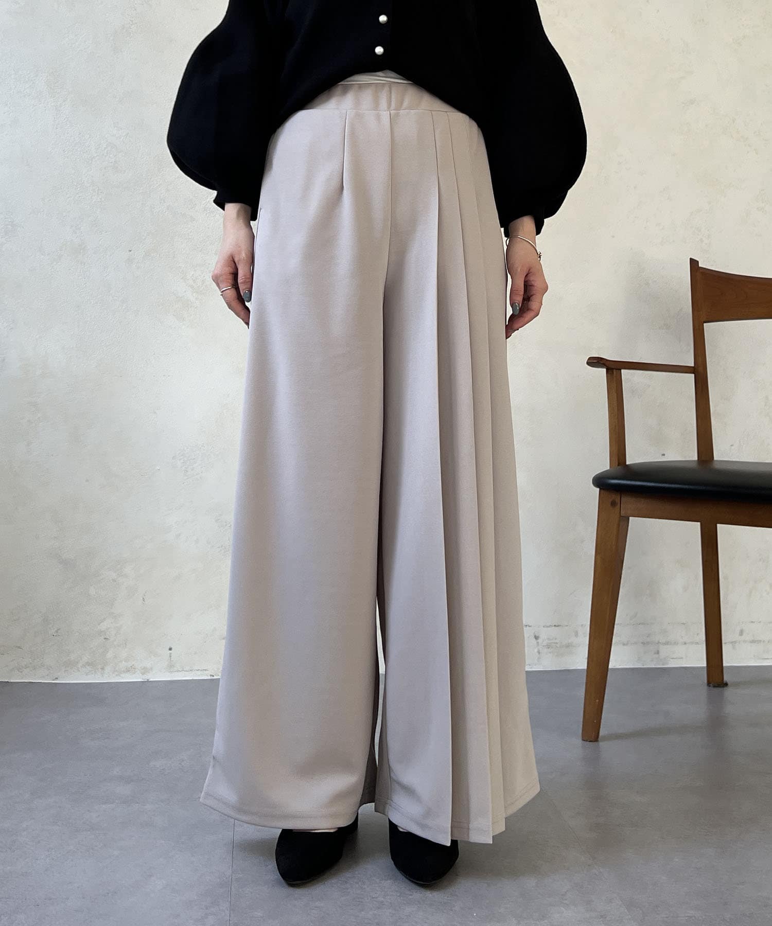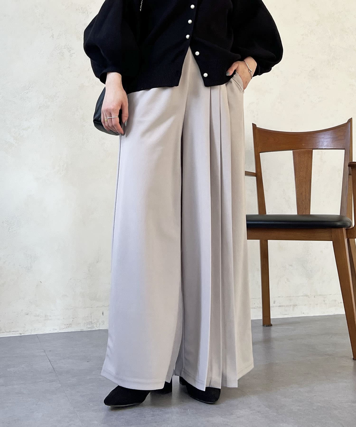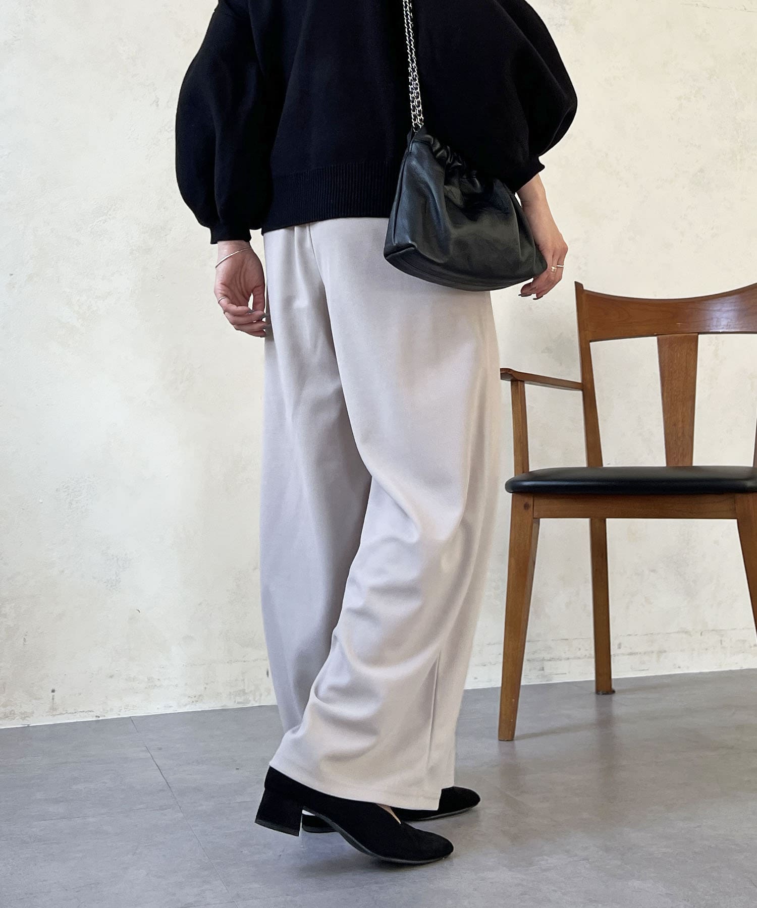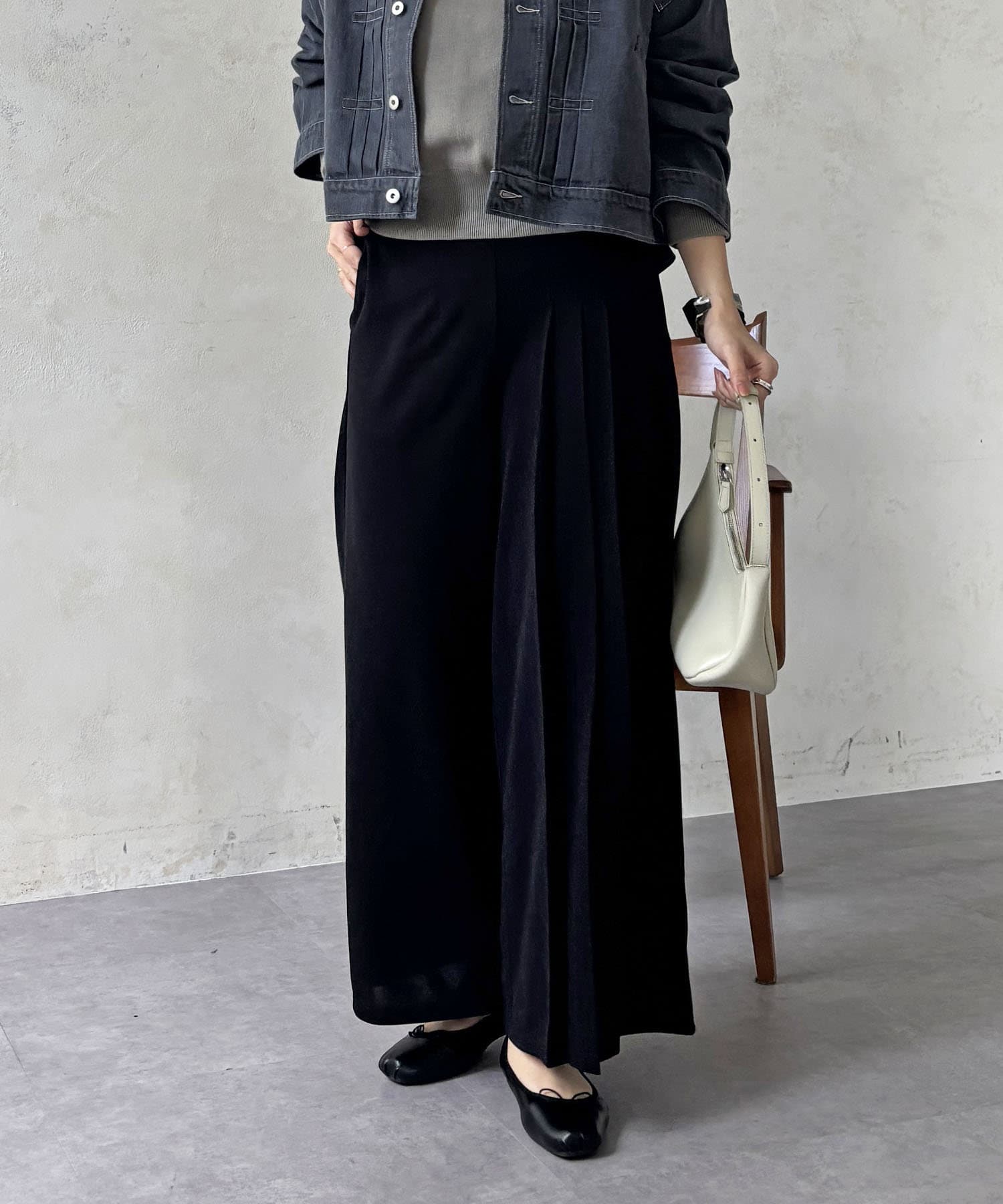 落ち感のある素材でキレイめ見え×体型カバーが叶うデザインワイドパンツ
