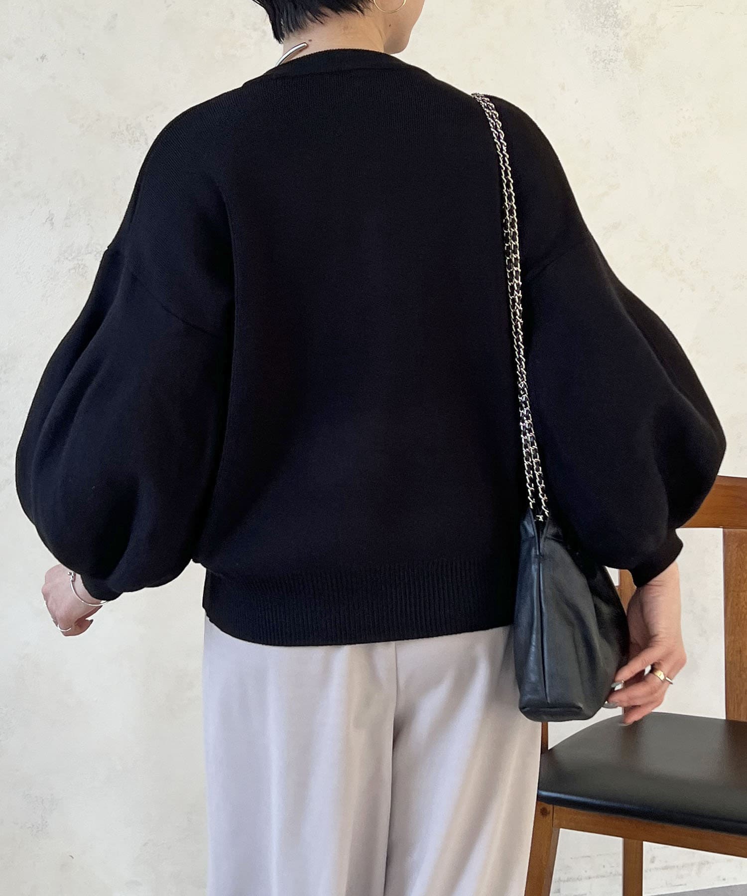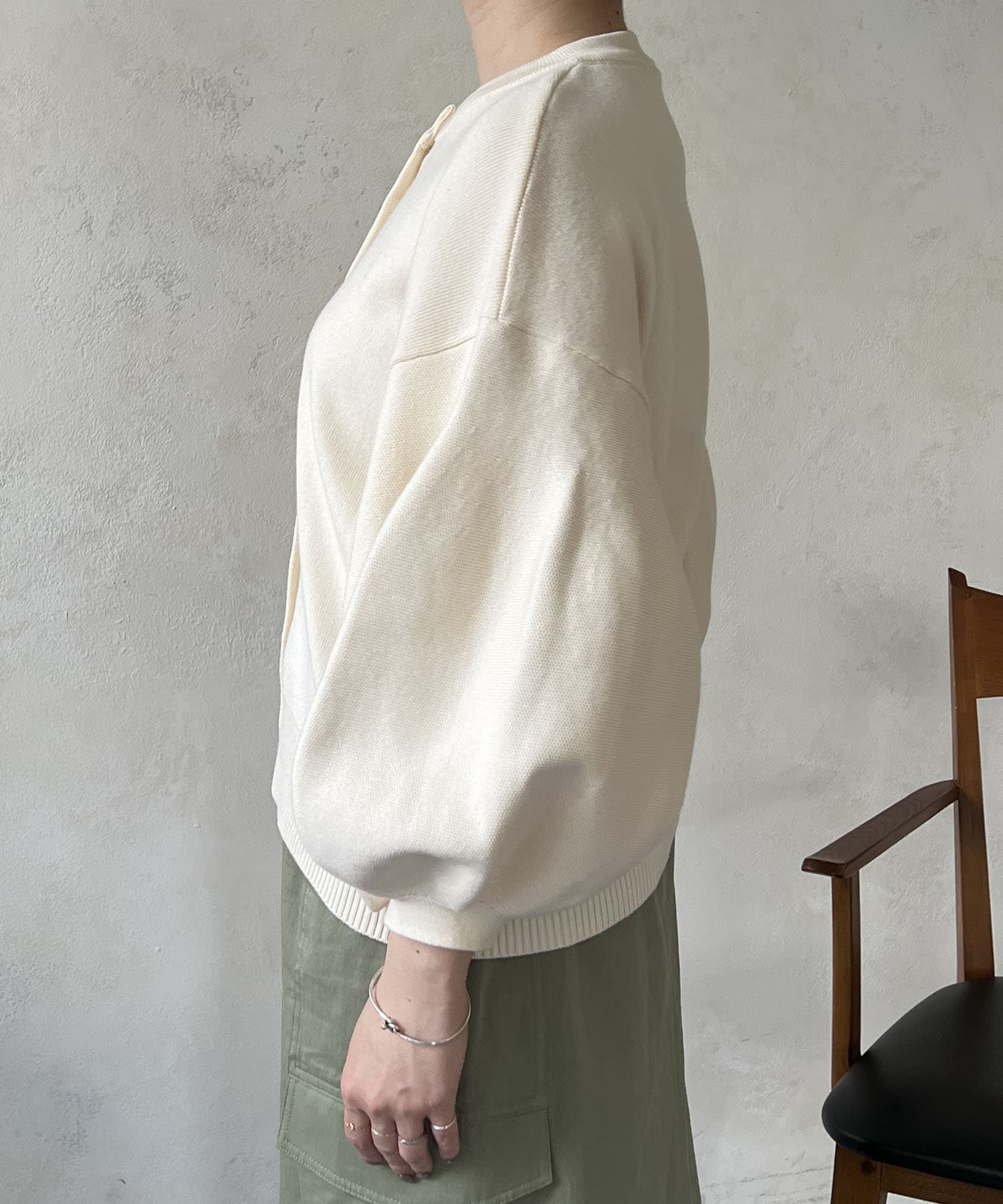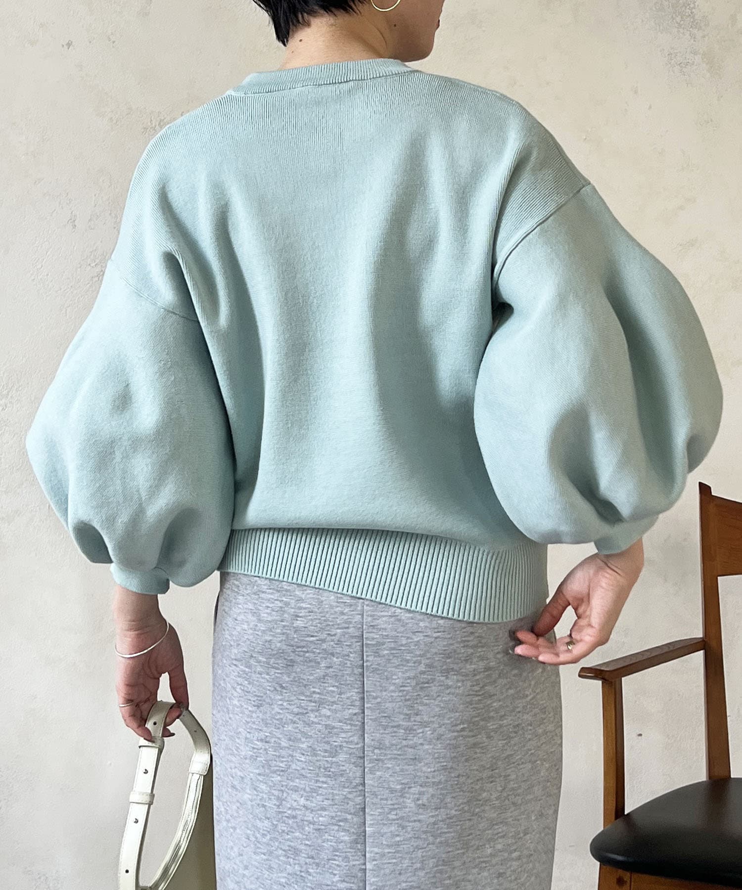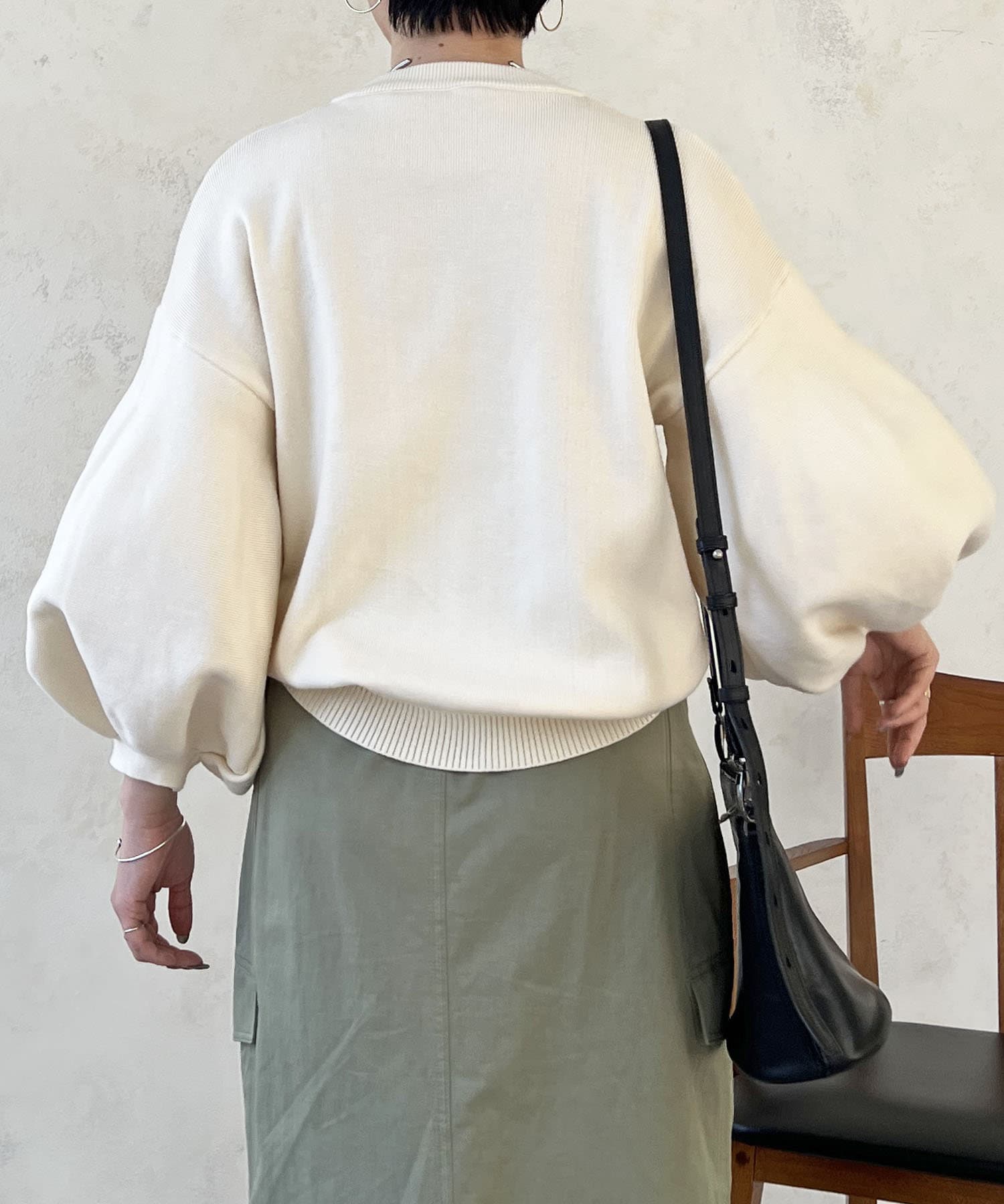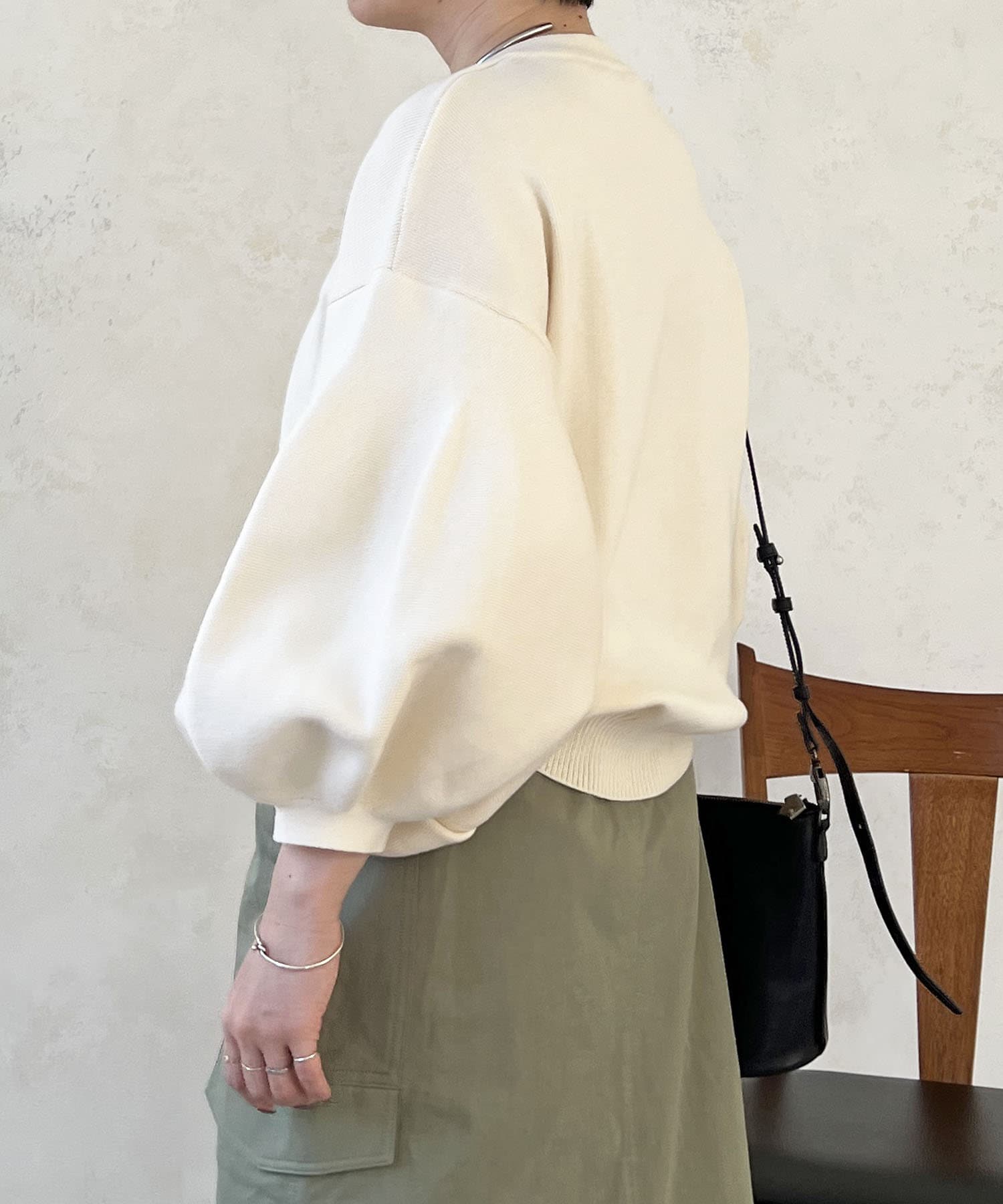 ・肩幅にゆとりあるデザインでバルーンスリーブでもスッキリ着られる