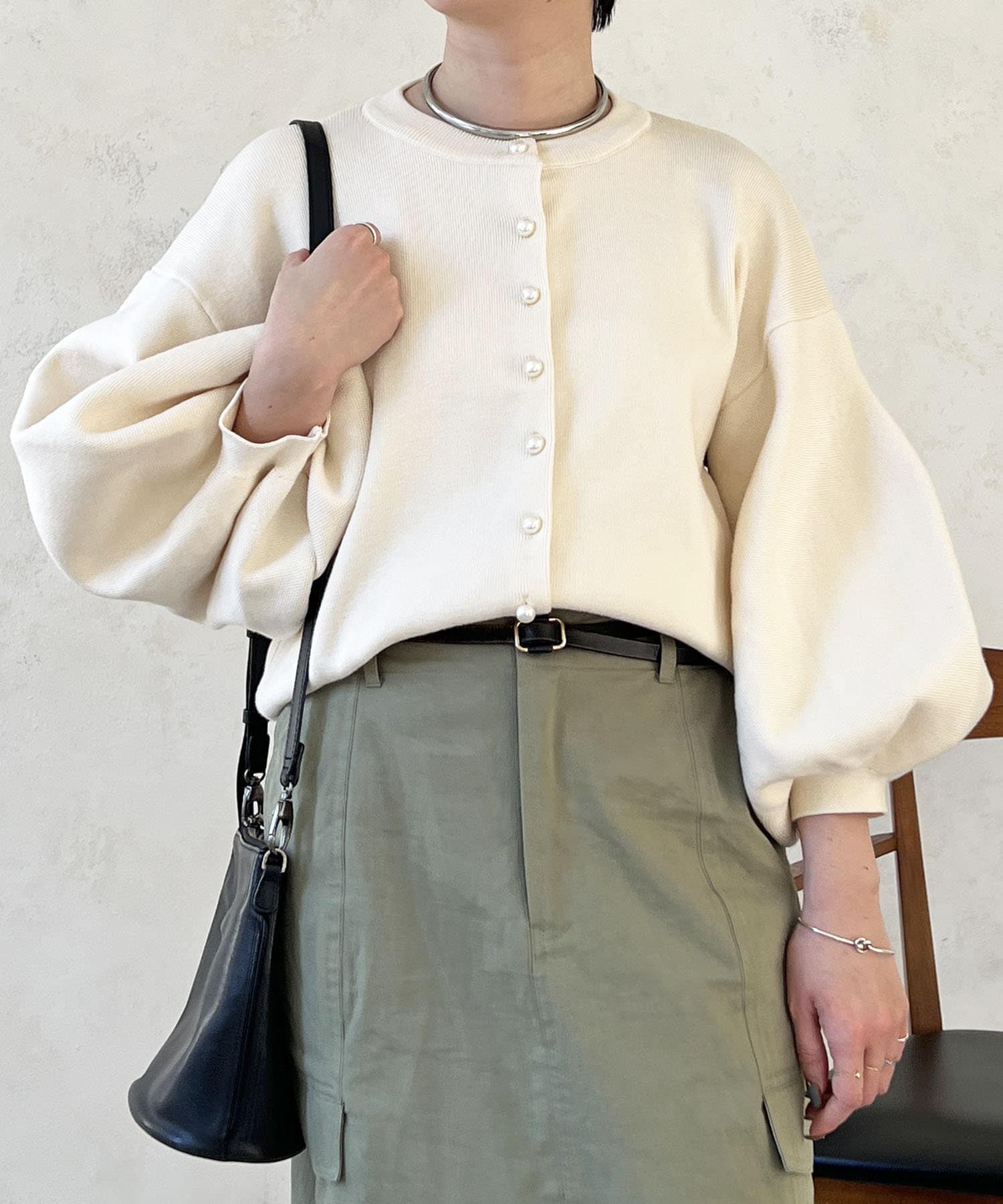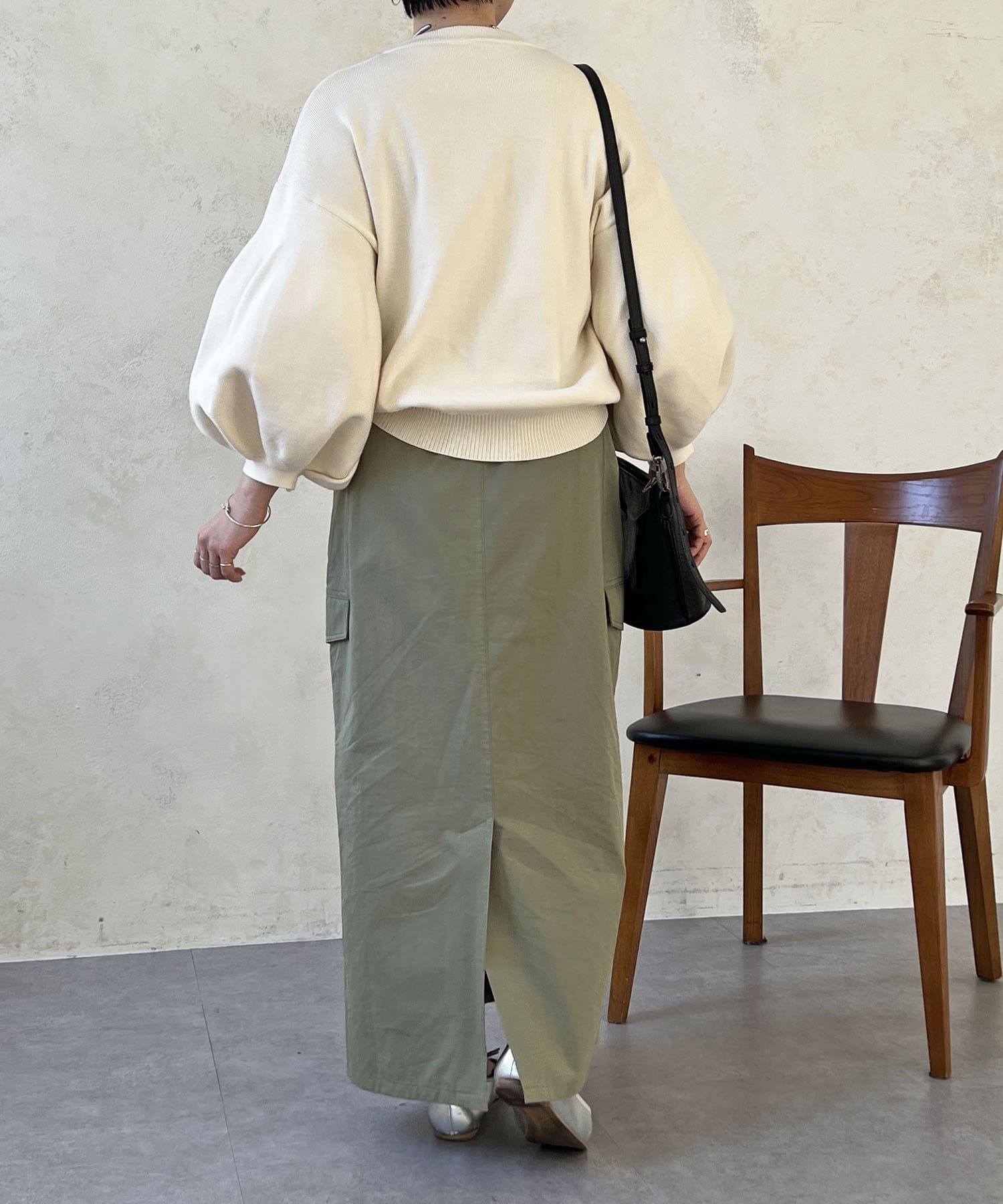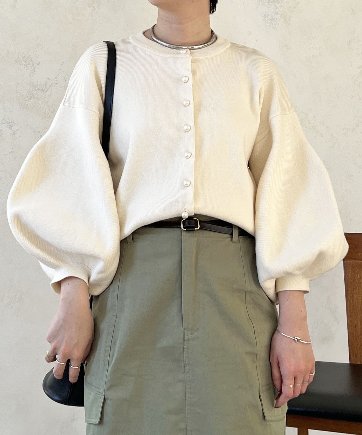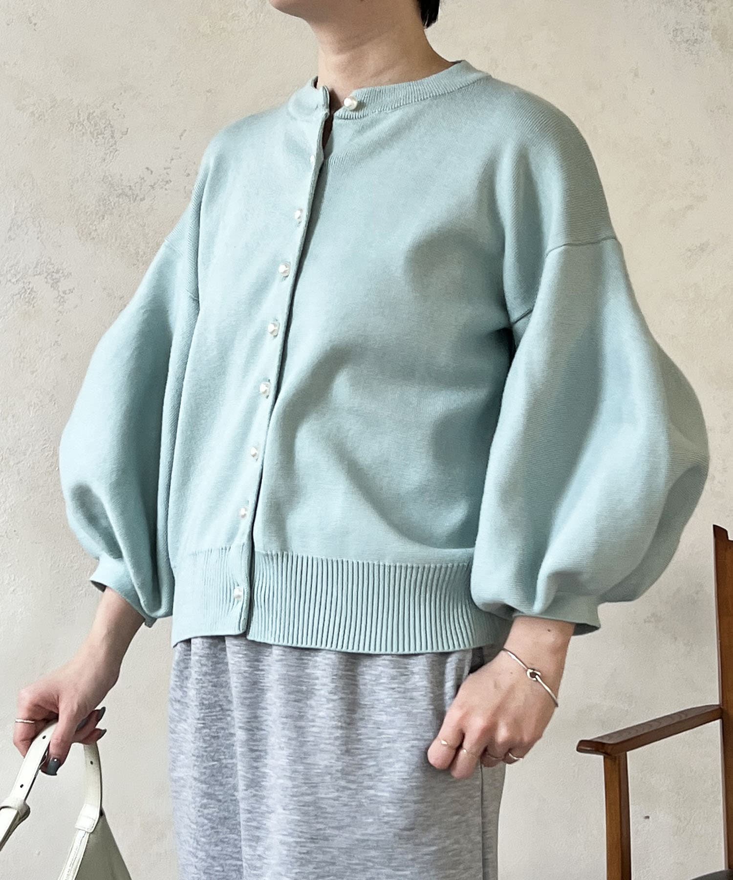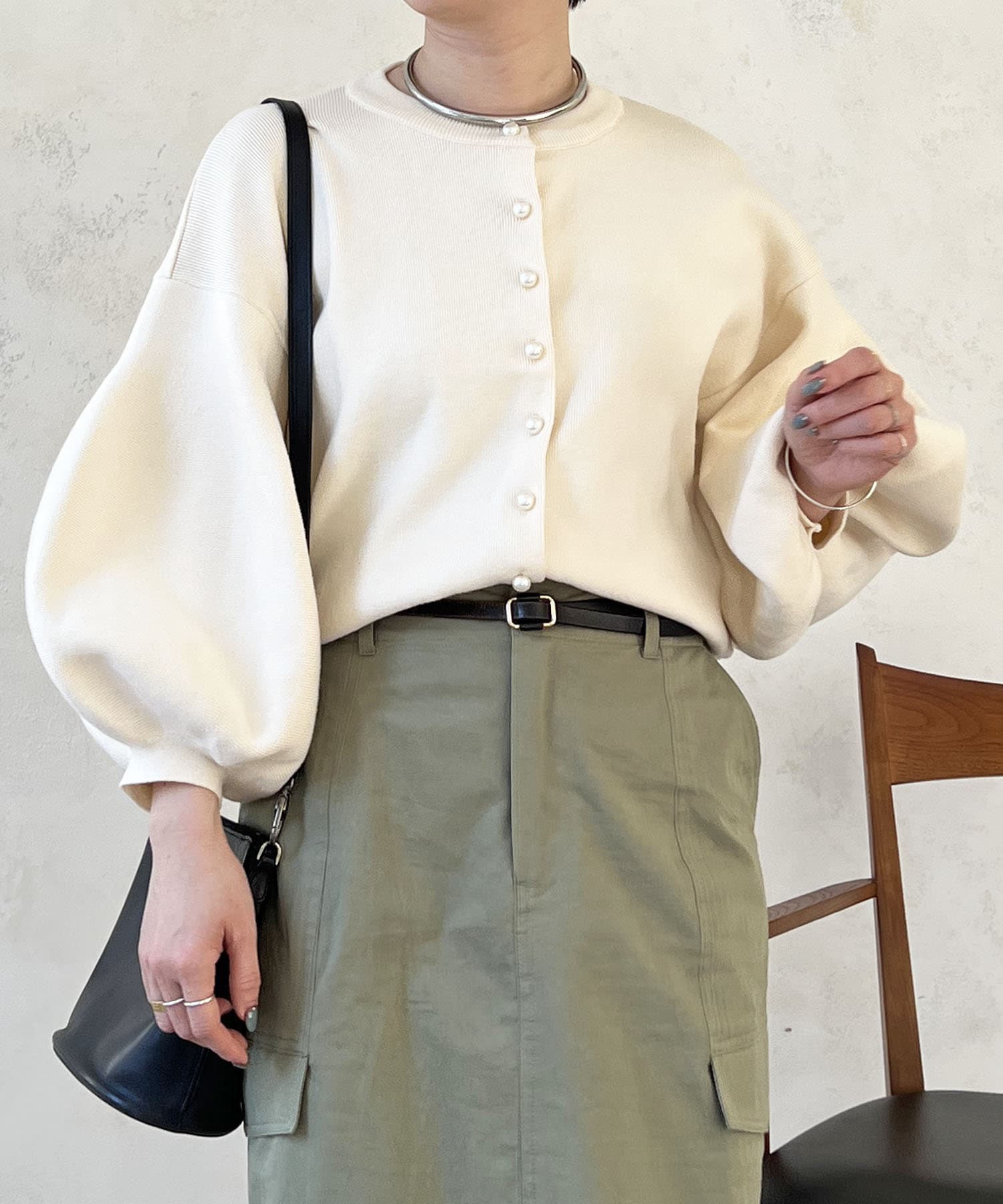 ・肩幅にゆとりあるデザインでバルーンスリーブでもスッキリ着られる