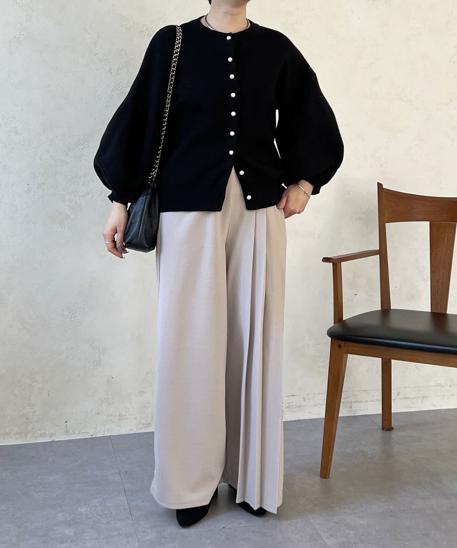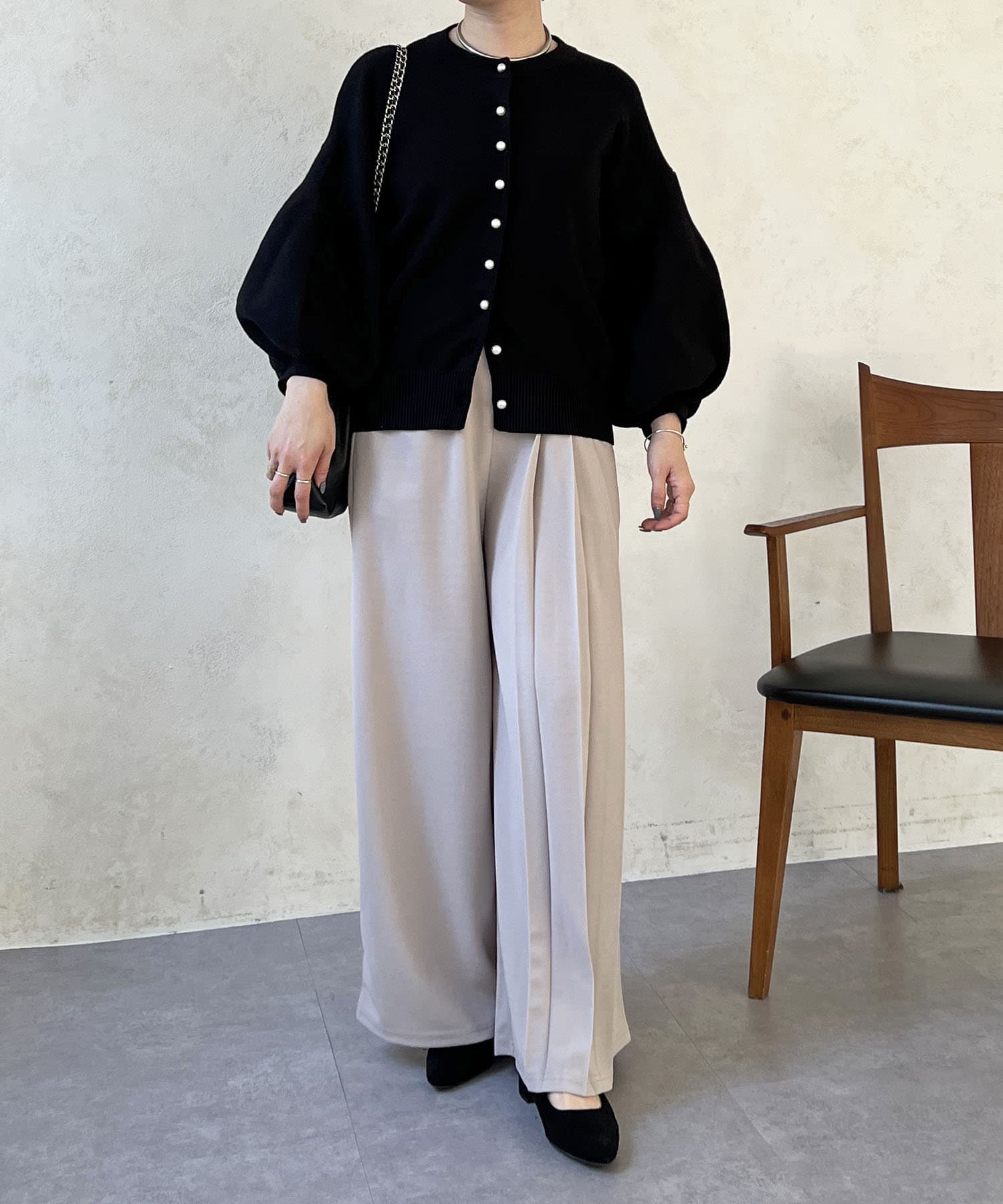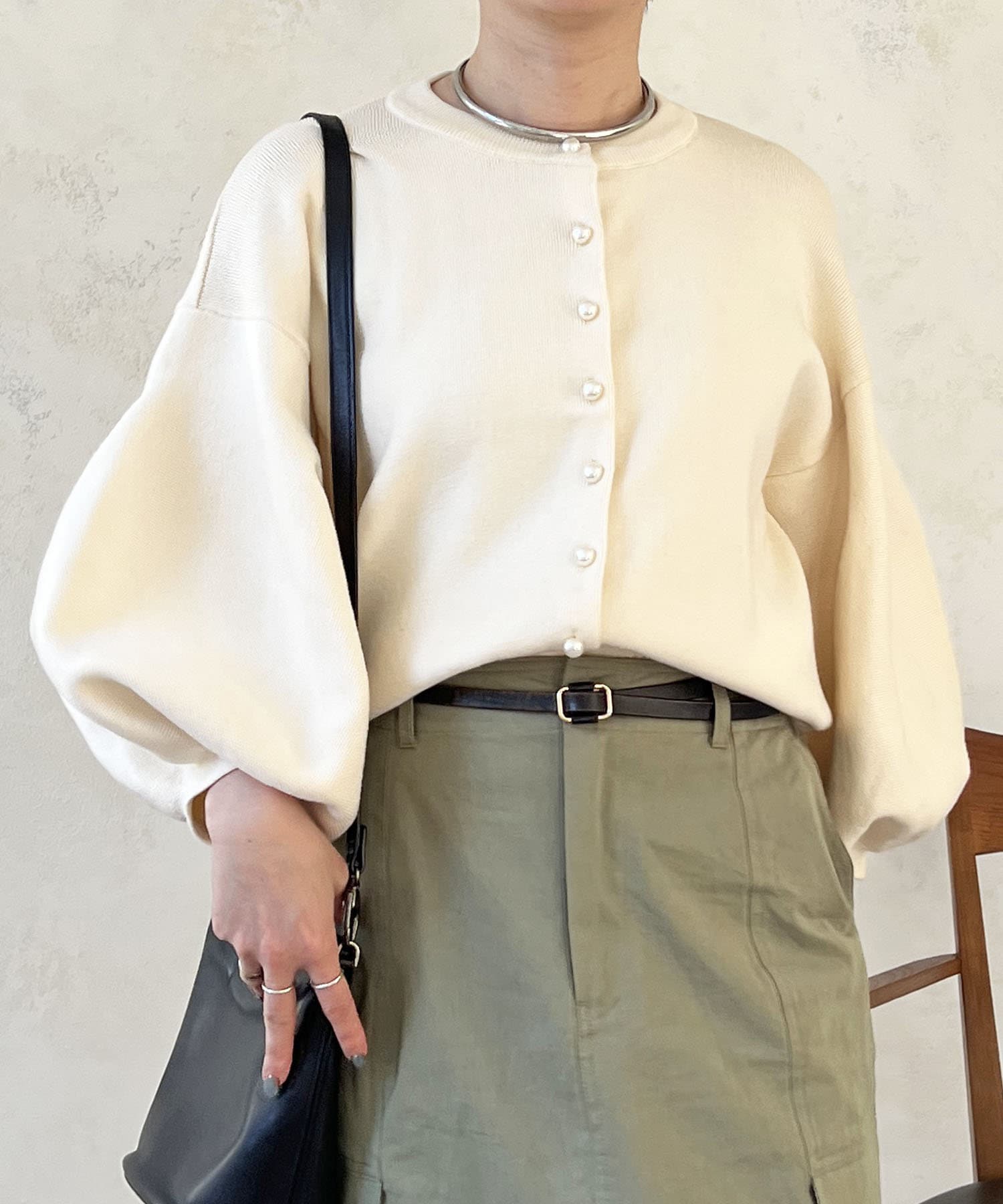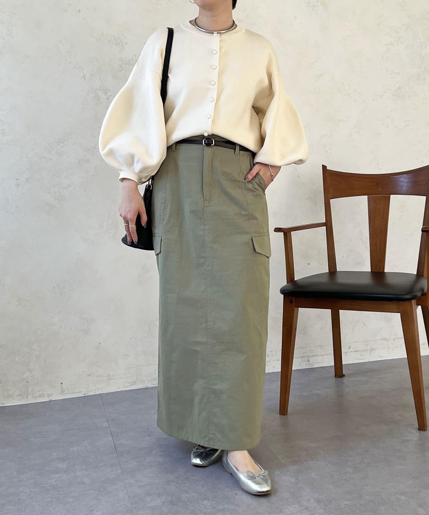 ・肩幅にゆとりあるデザインでバルーンスリーブでもスッキリ着られる