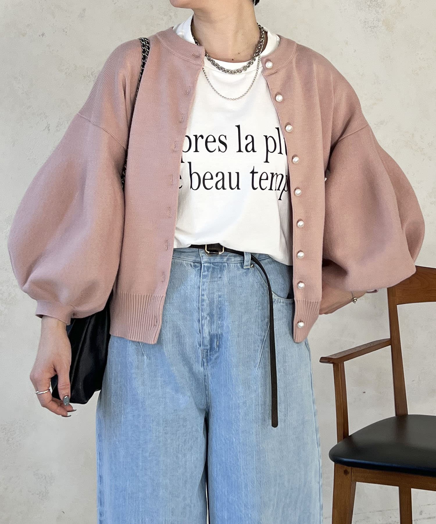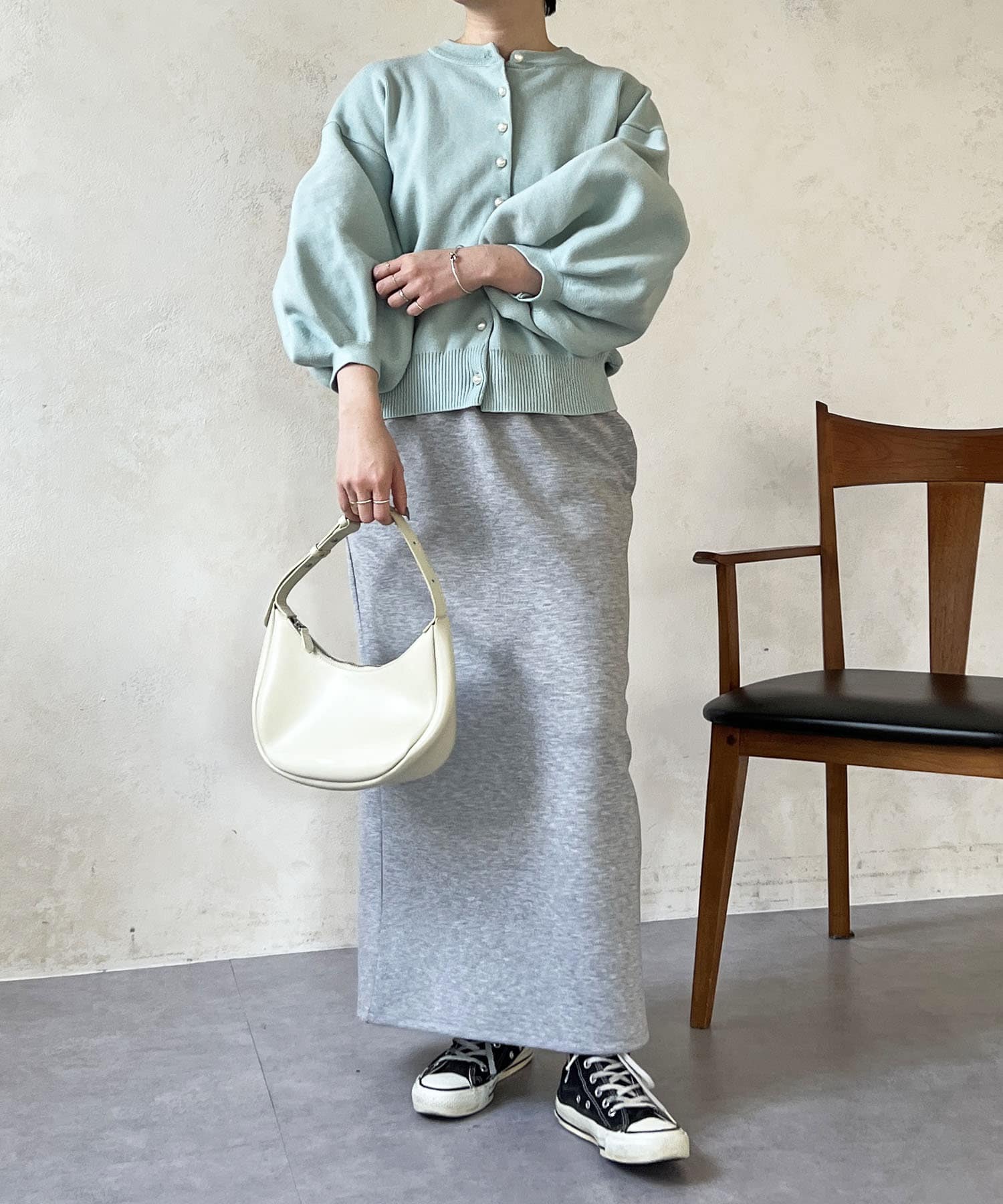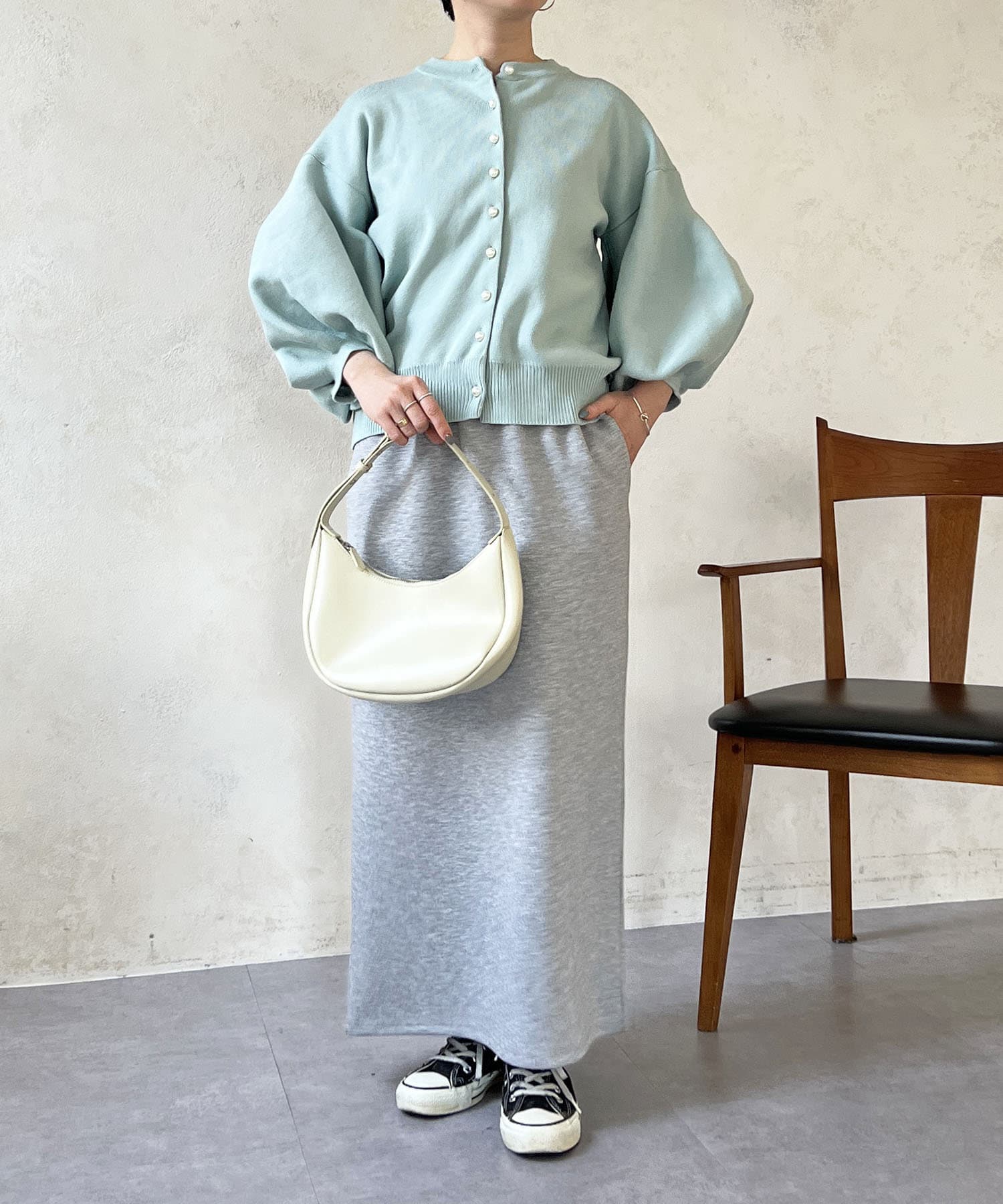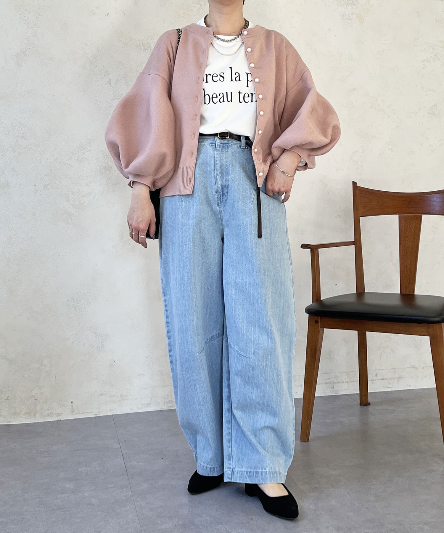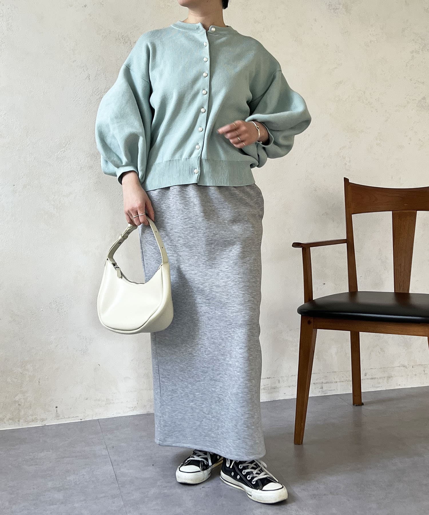 ・肩幅にゆとりあるデザインでバルーンスリーブでもスッキリ着られる
