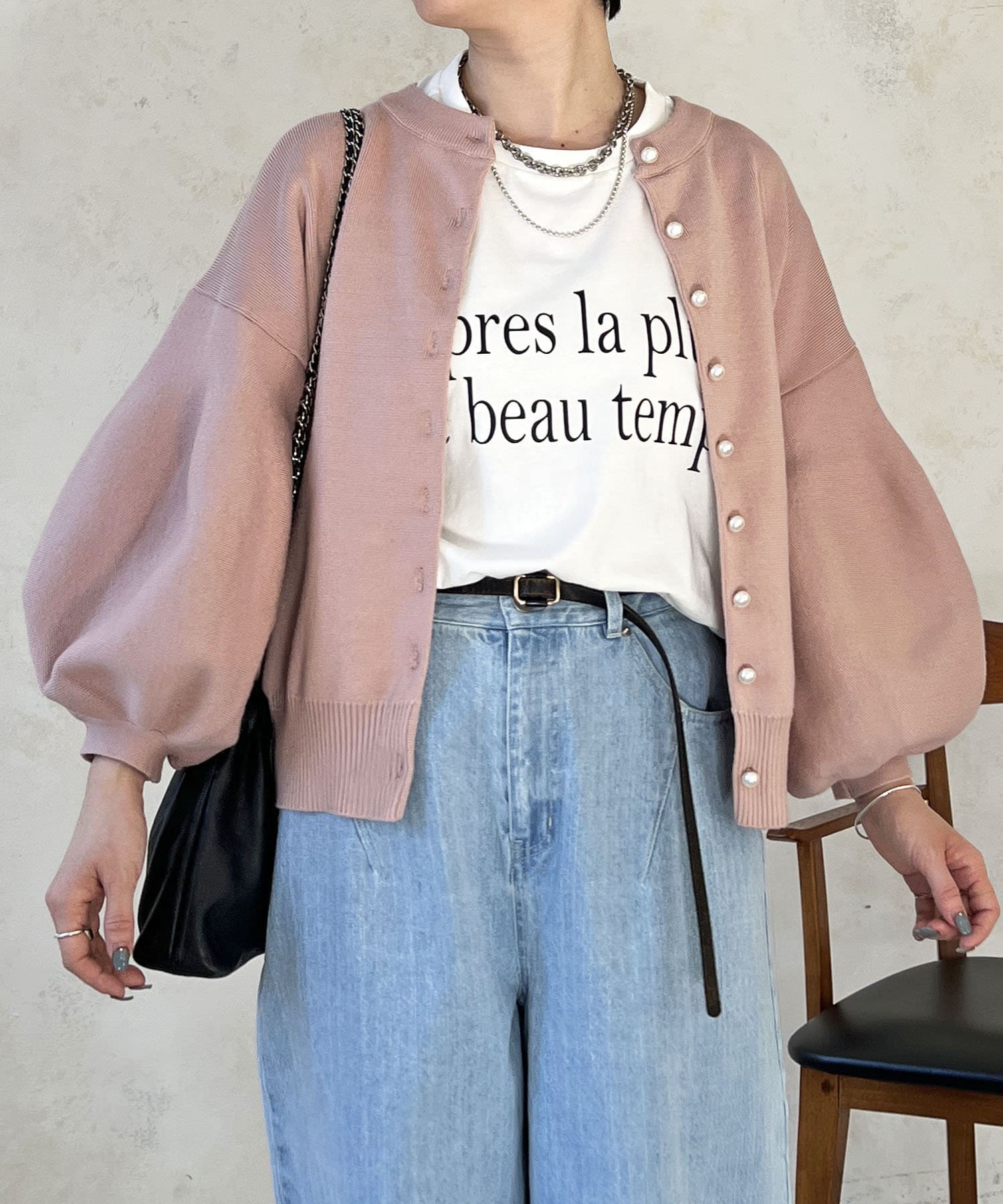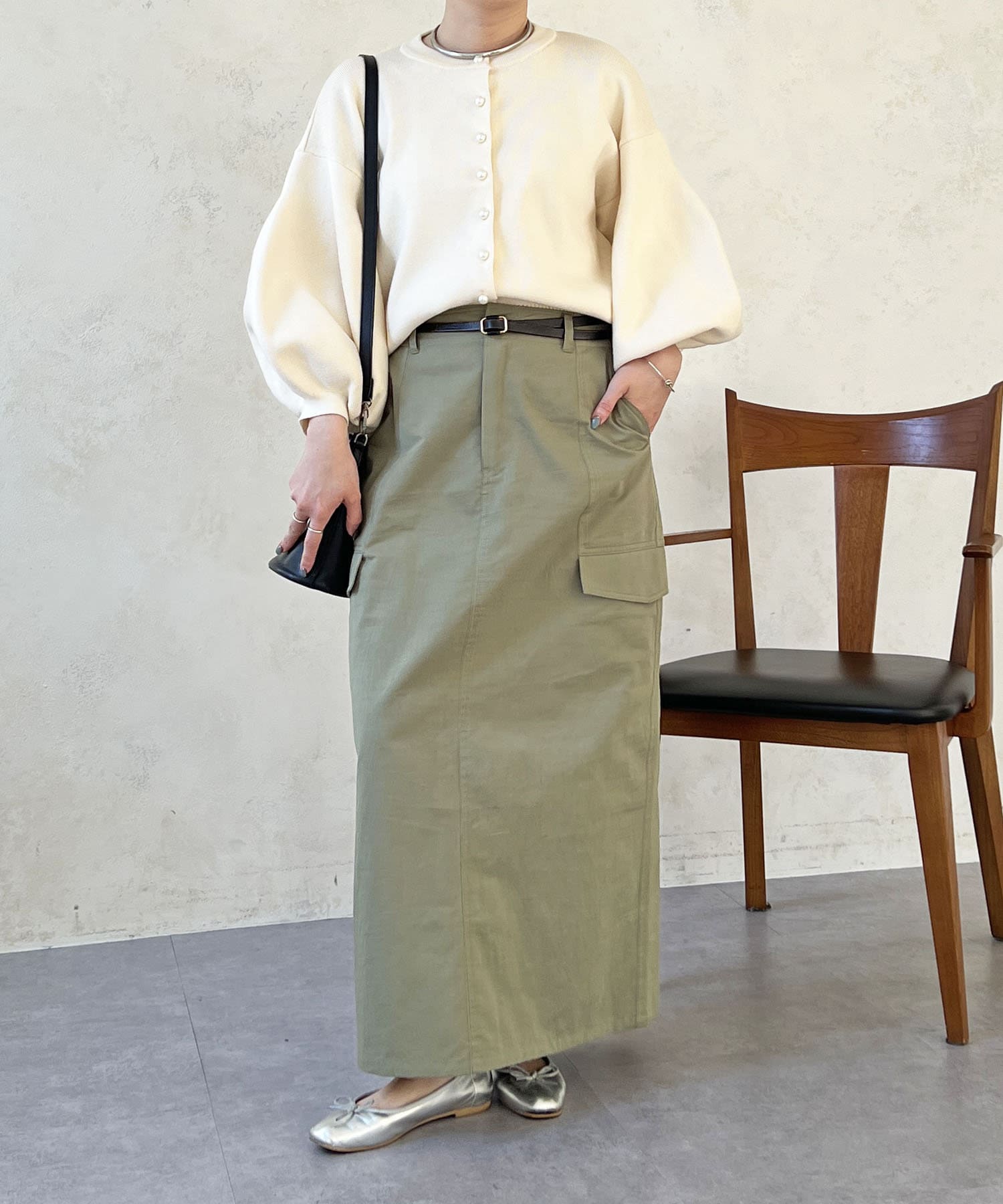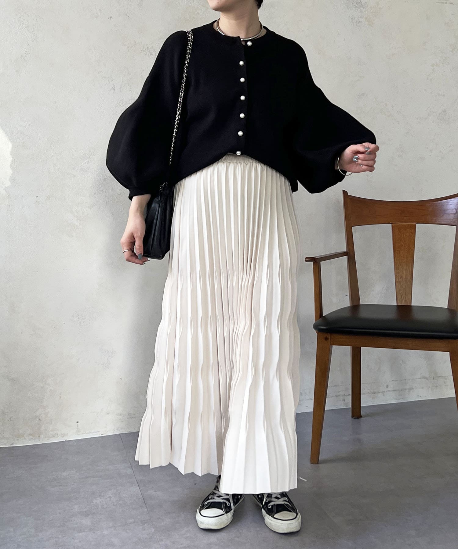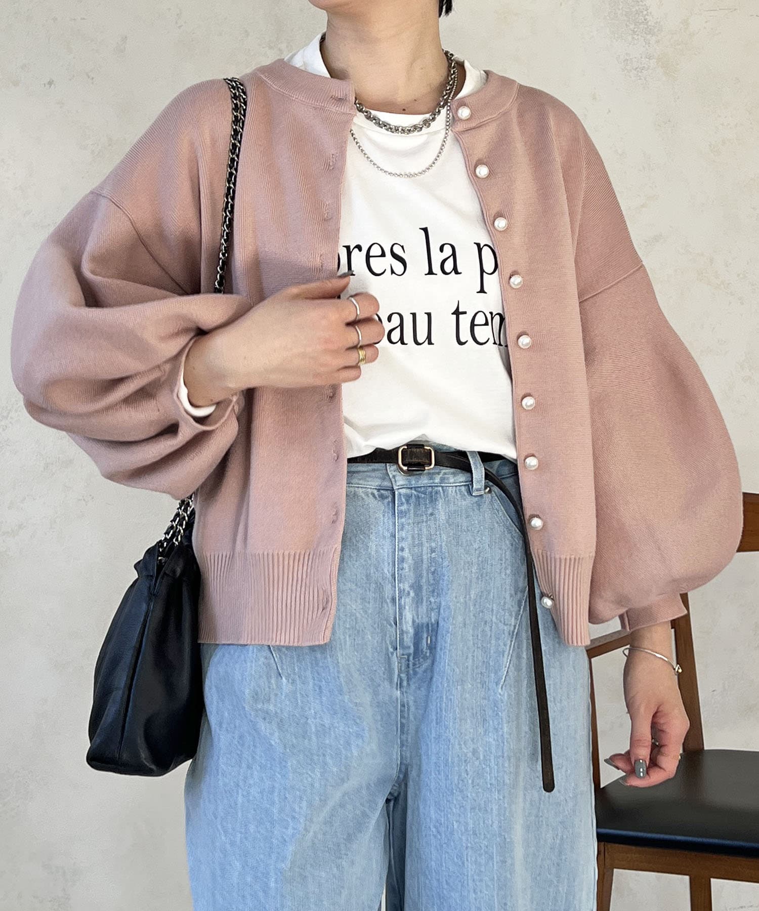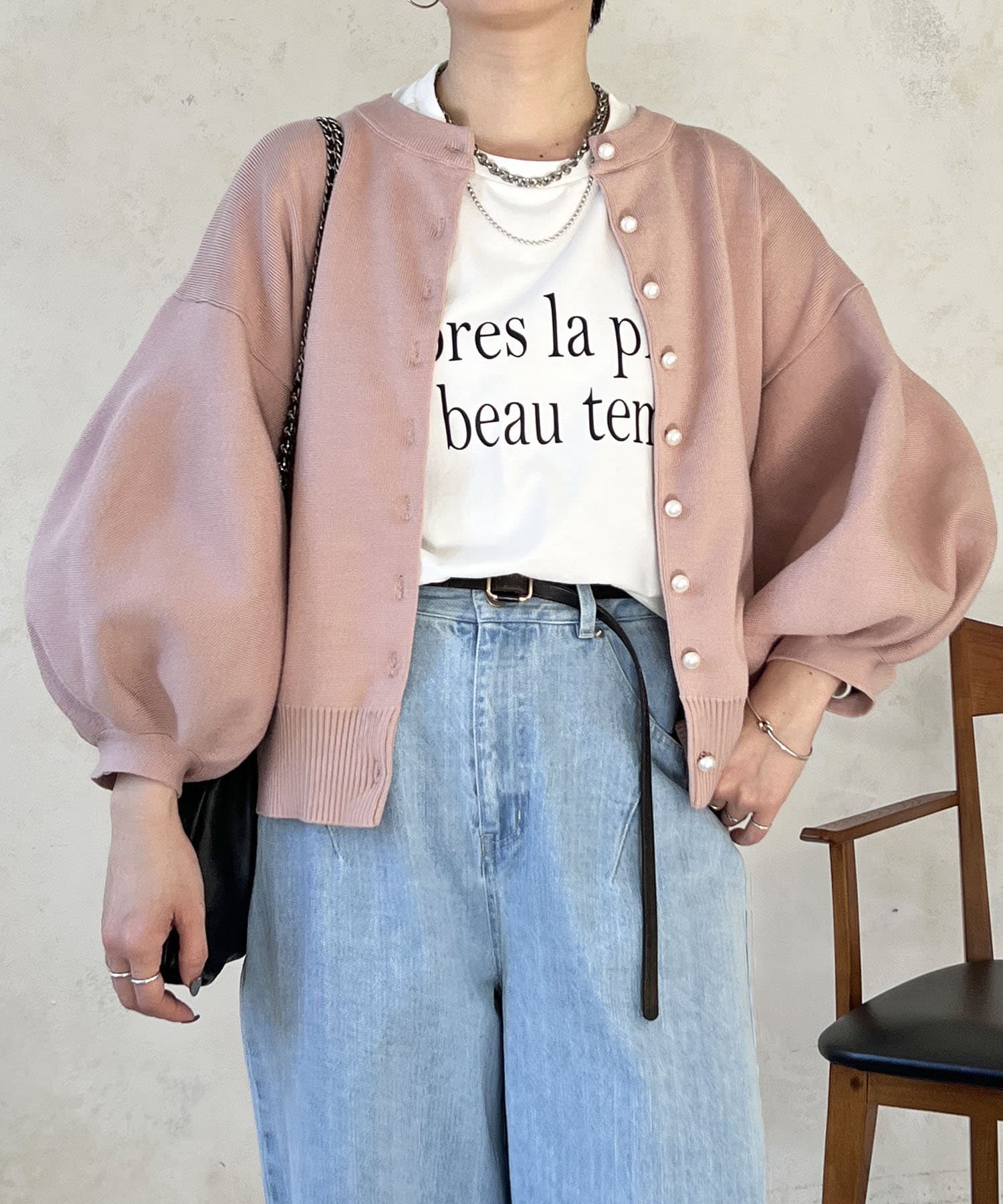 ・肩幅にゆとりあるデザインでバルーンスリーブでもスッキリ着られる