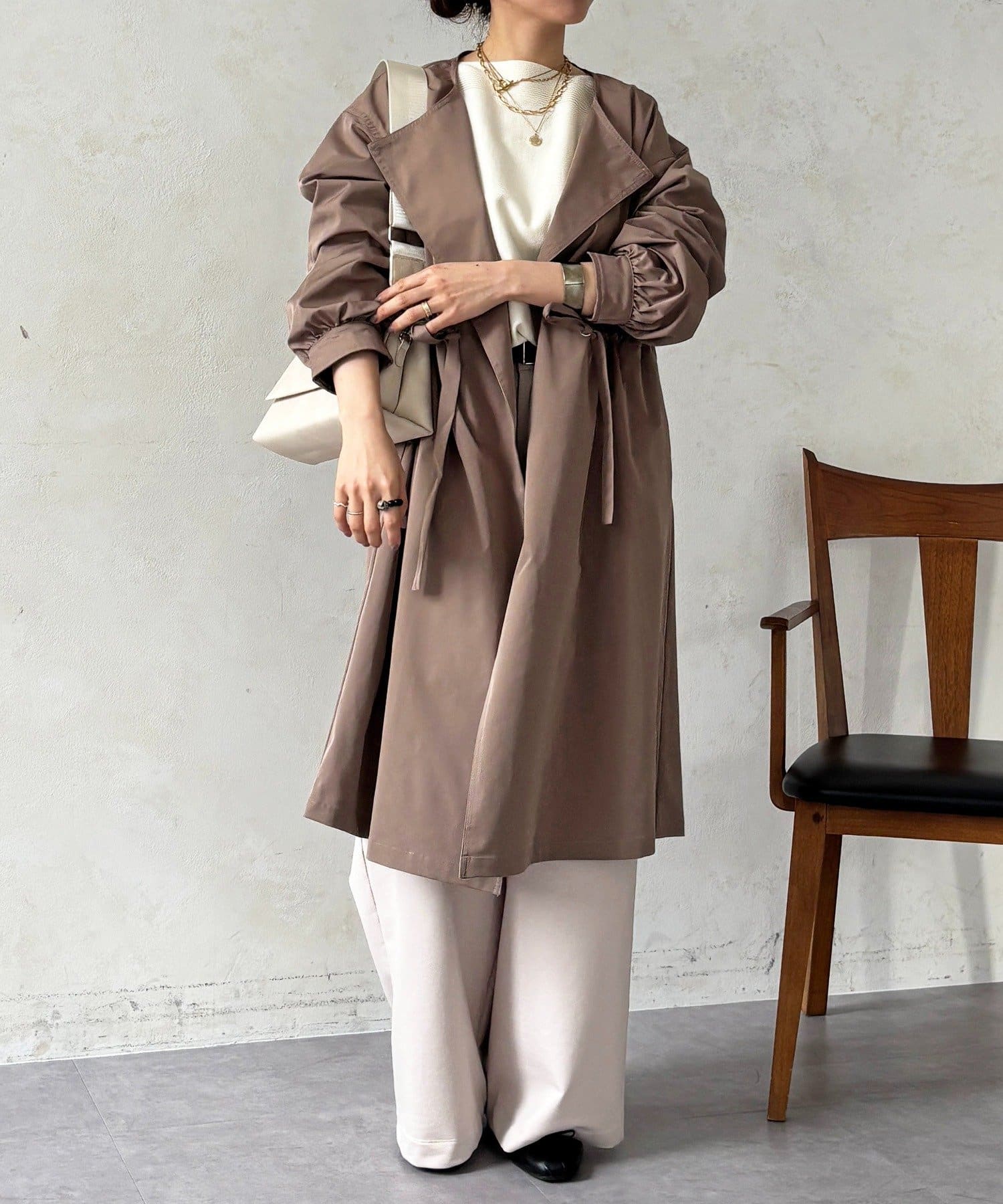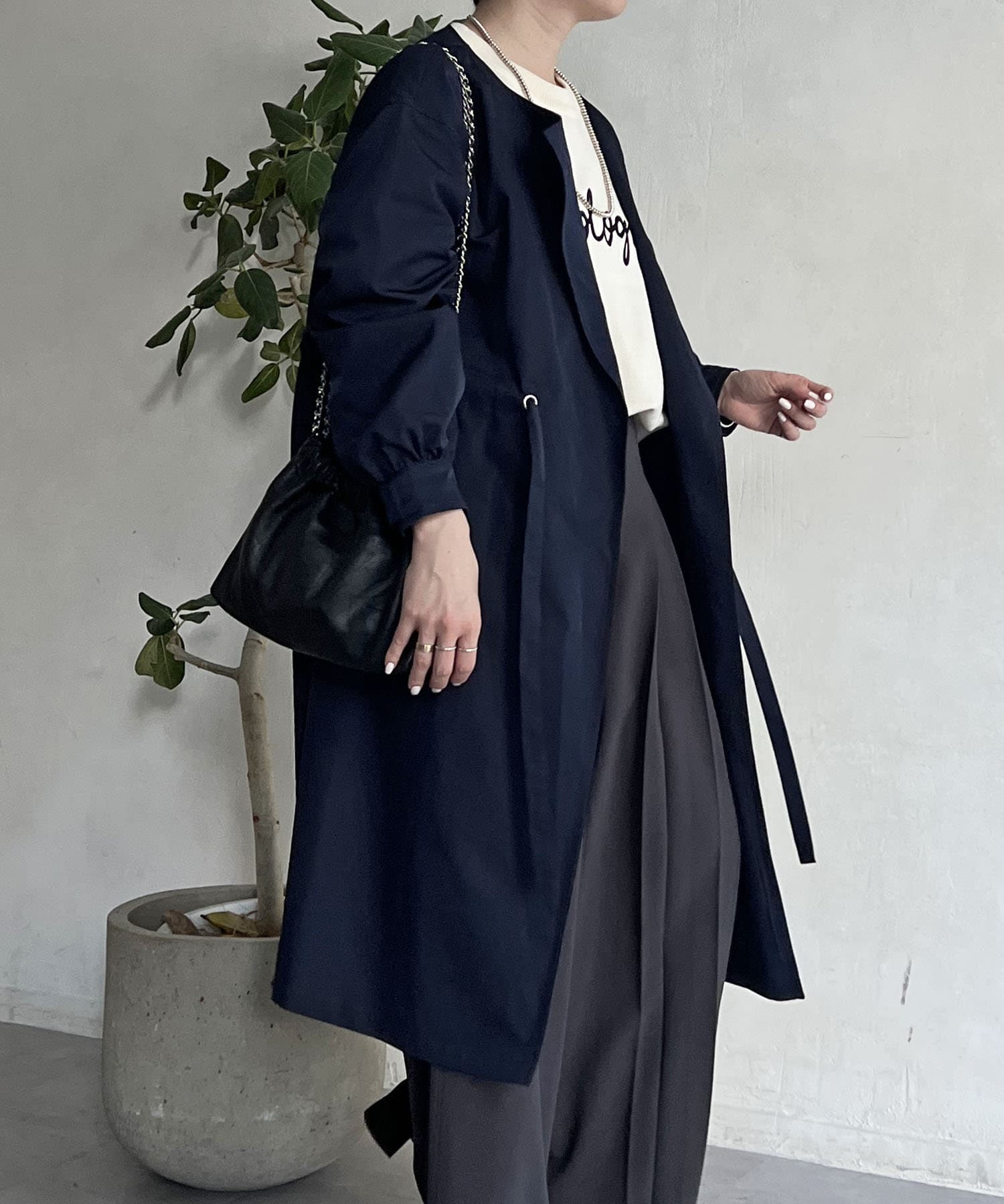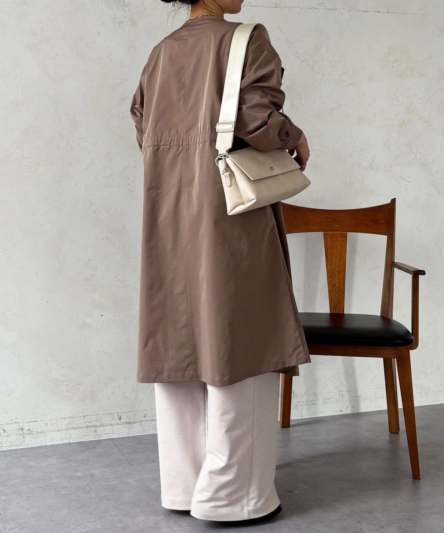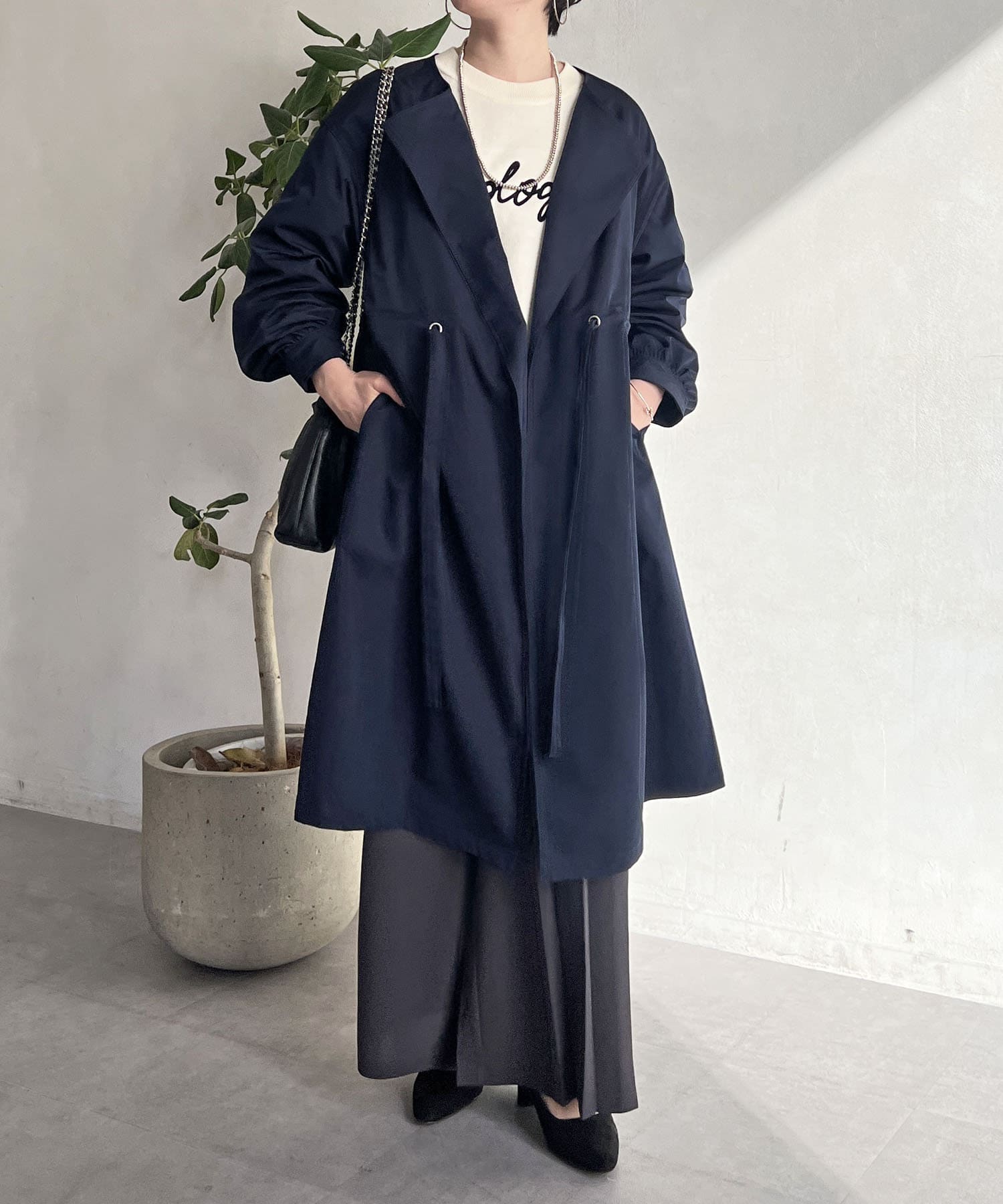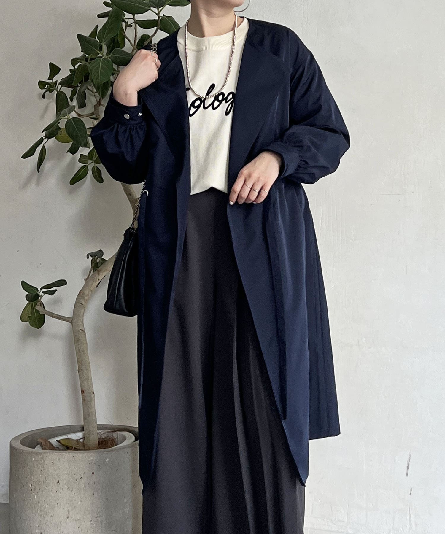 ノーカラーで首元スッキリなミドル丈ハーフコート