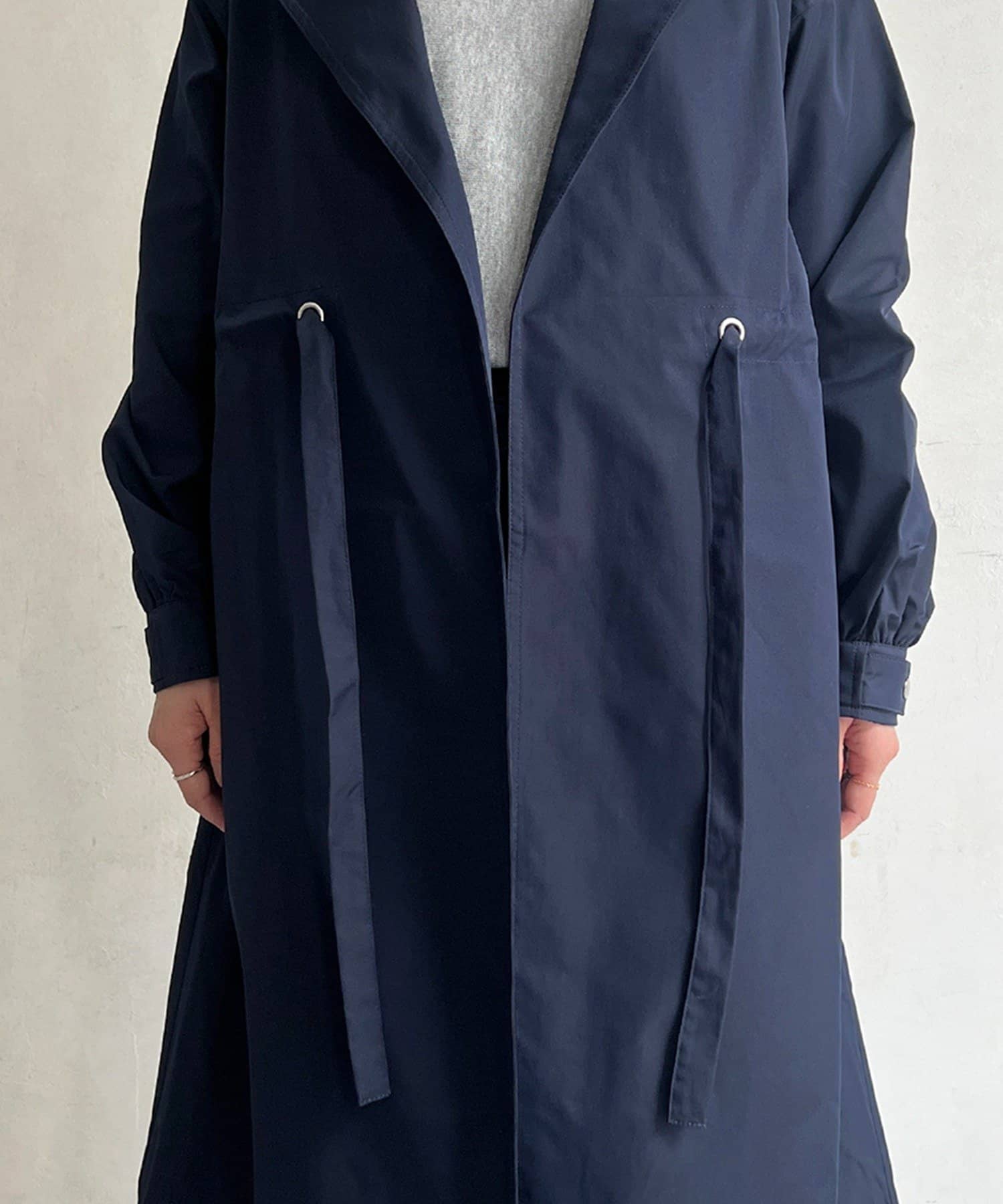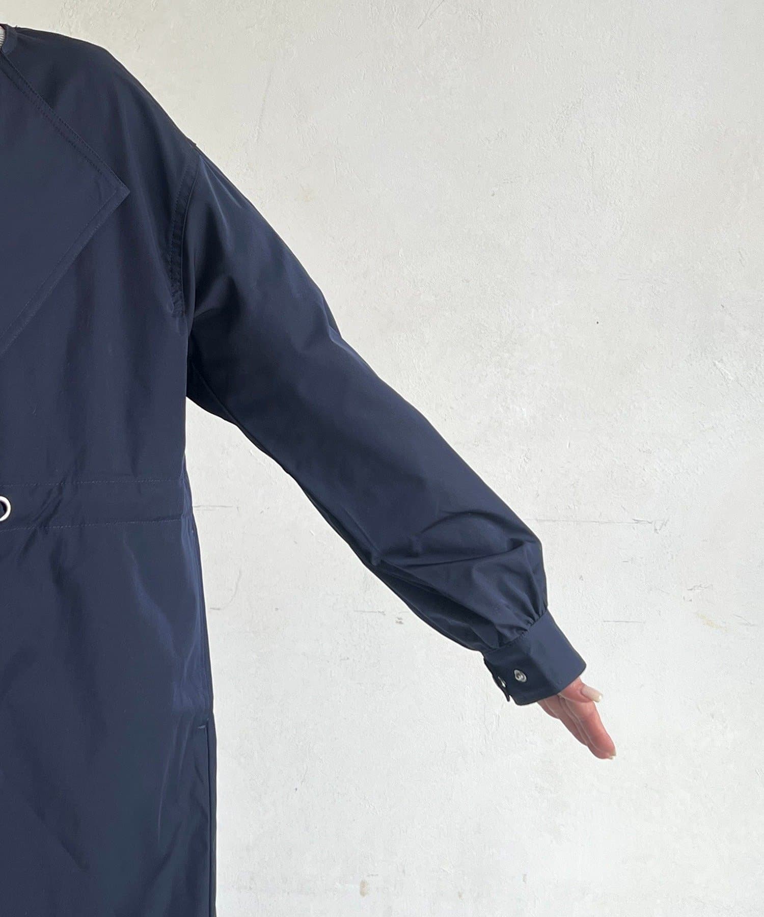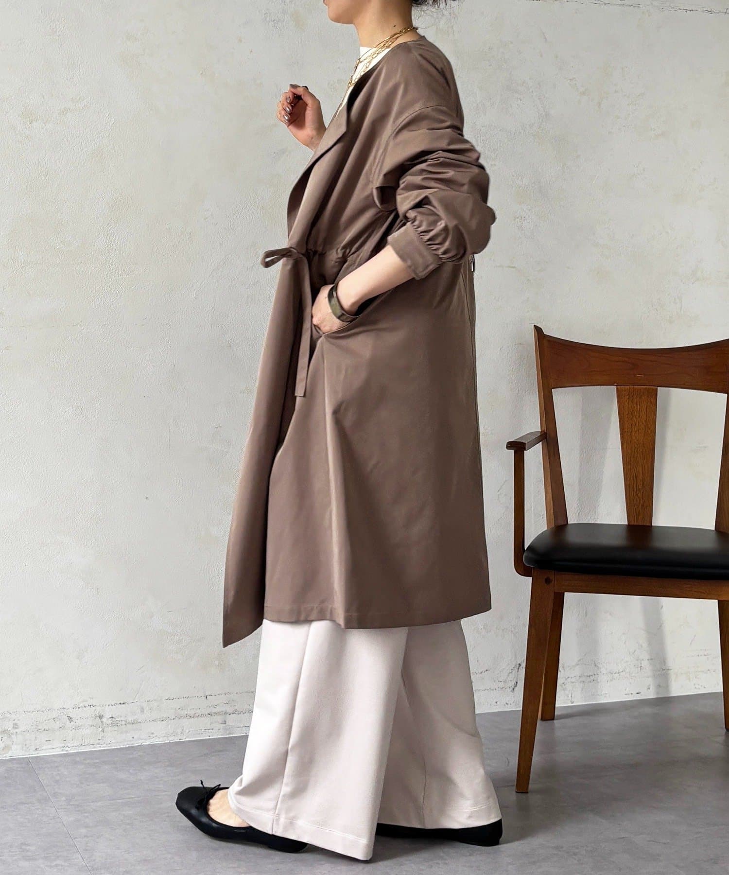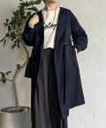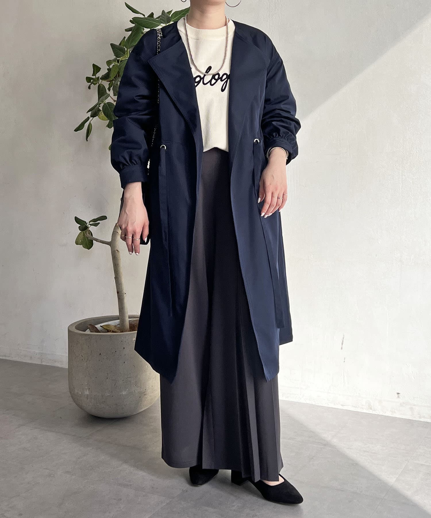 ノーカラーで首元スッキリなミドル丈ハーフコート