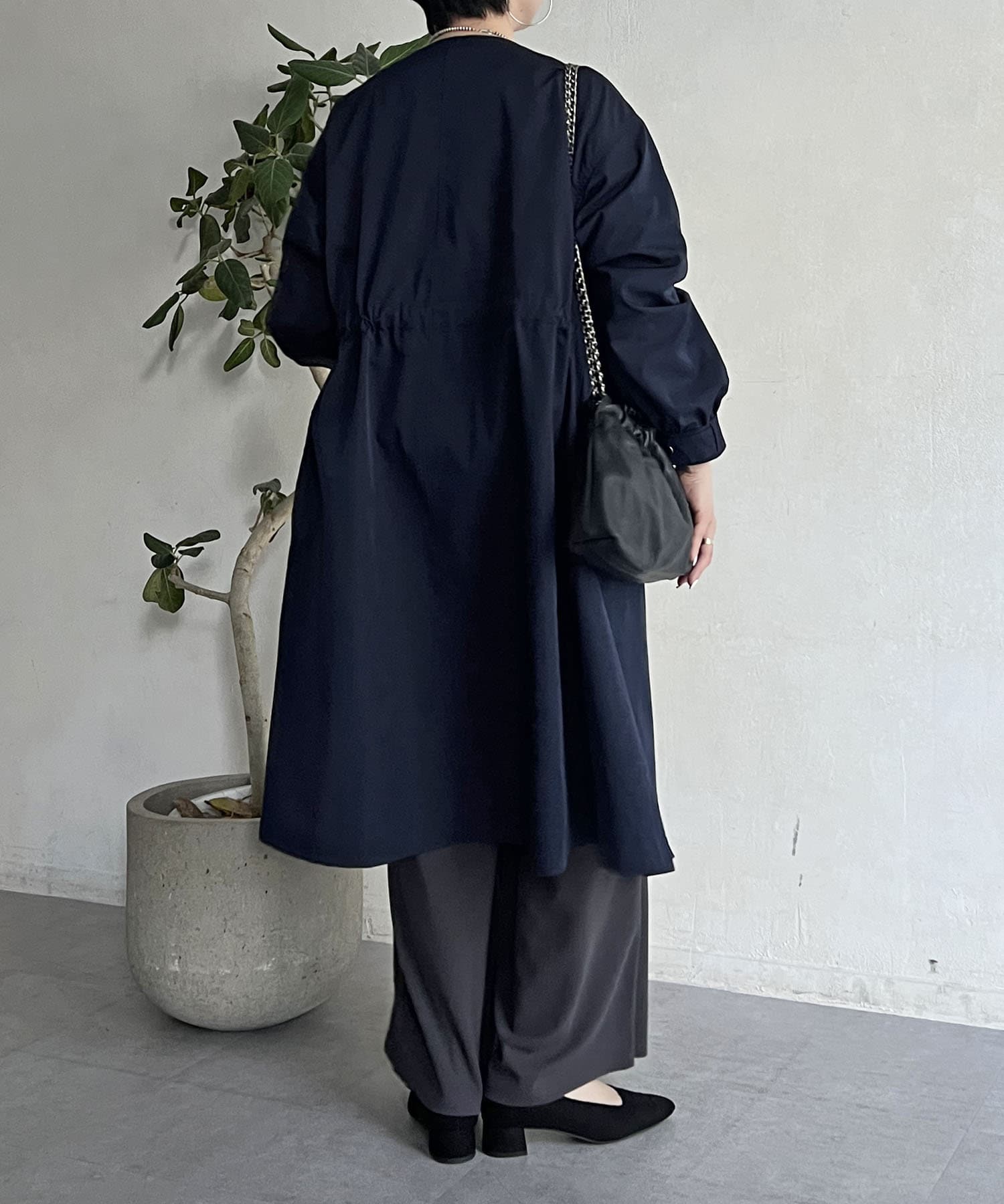 ・ノーカラーデザインは首元スッキリ、細見え効果◎