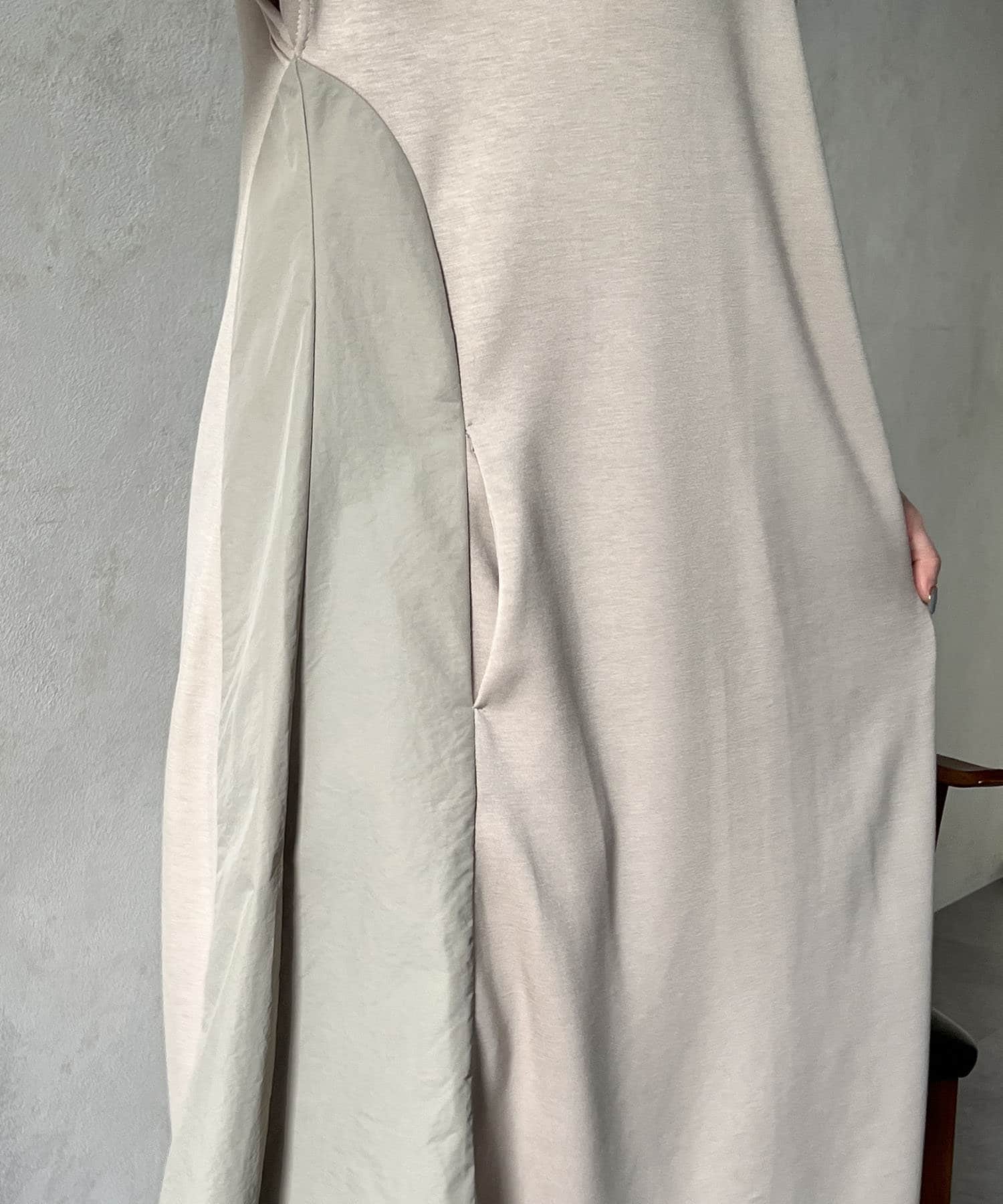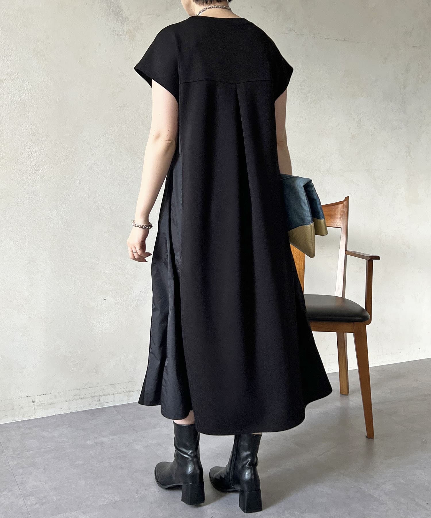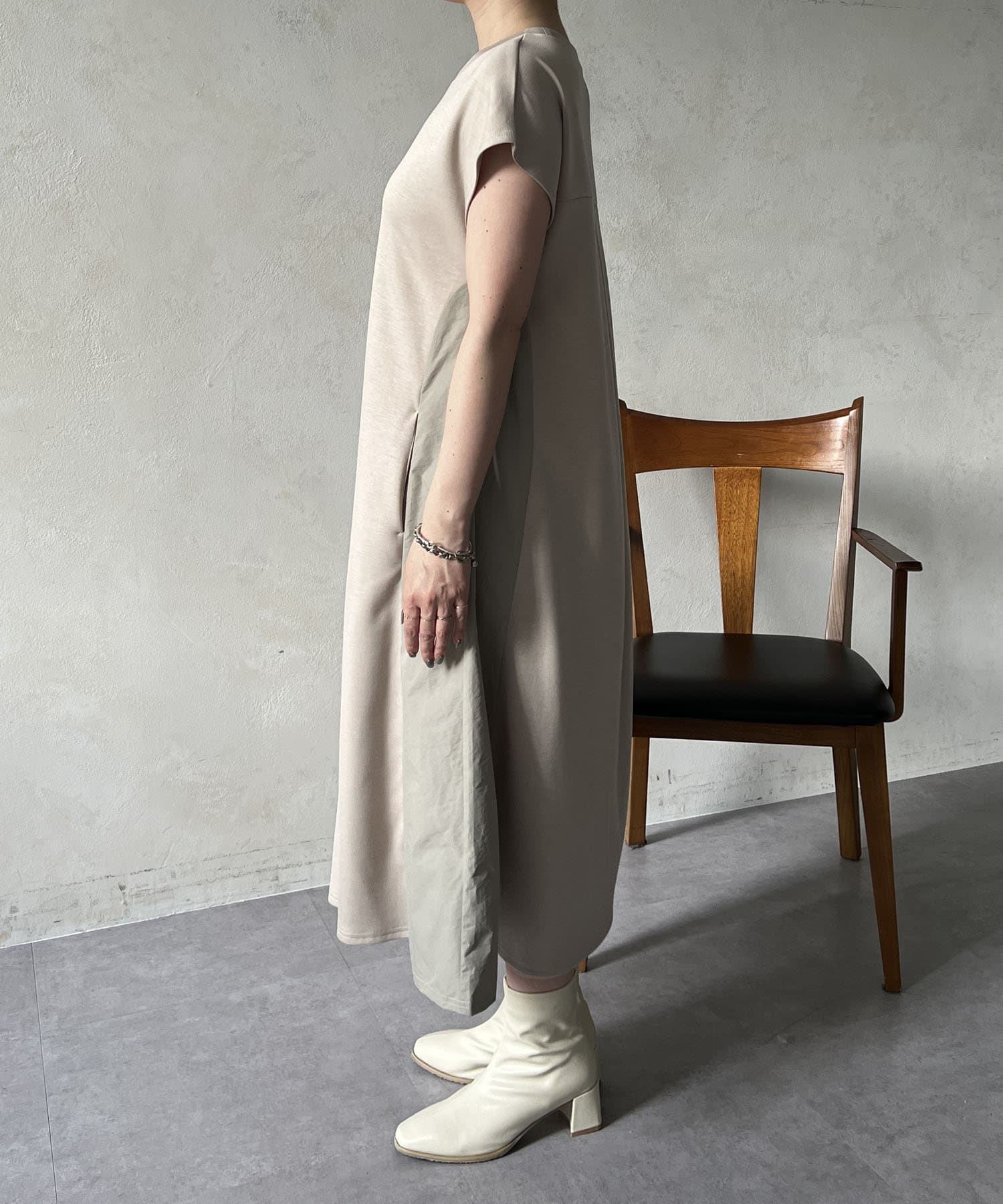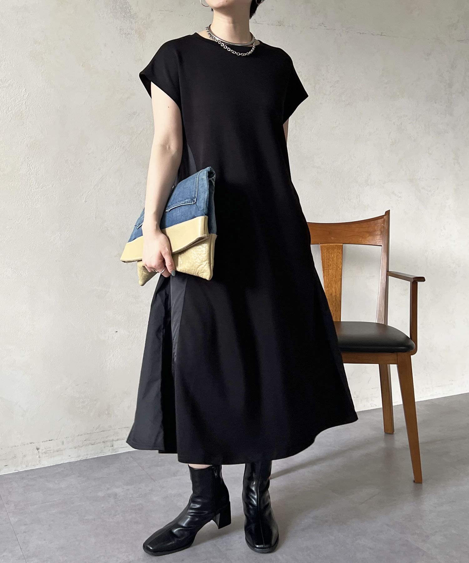 ・ワンピースは両脇が異素材ドッキングになっており、凝ったデザイン