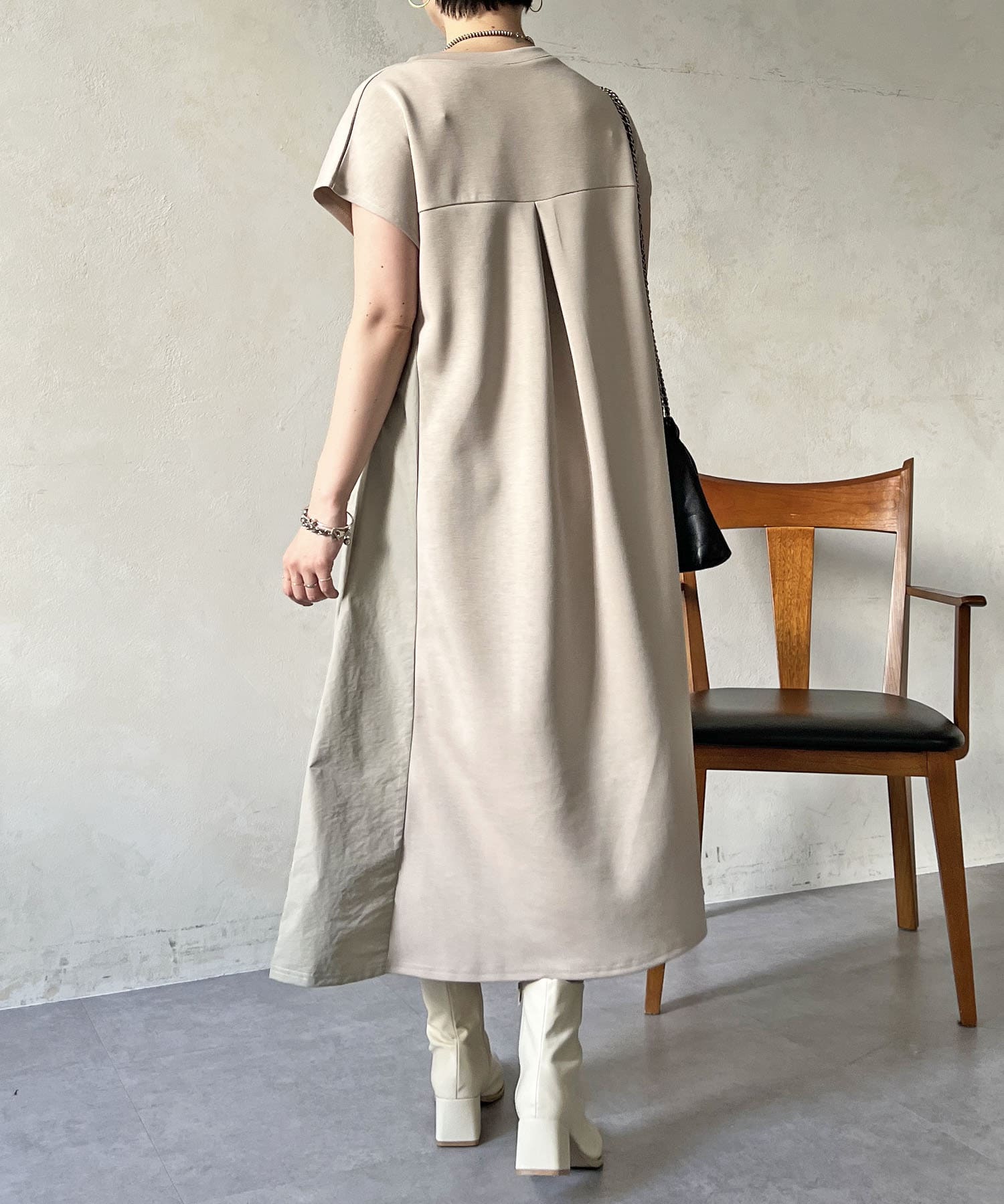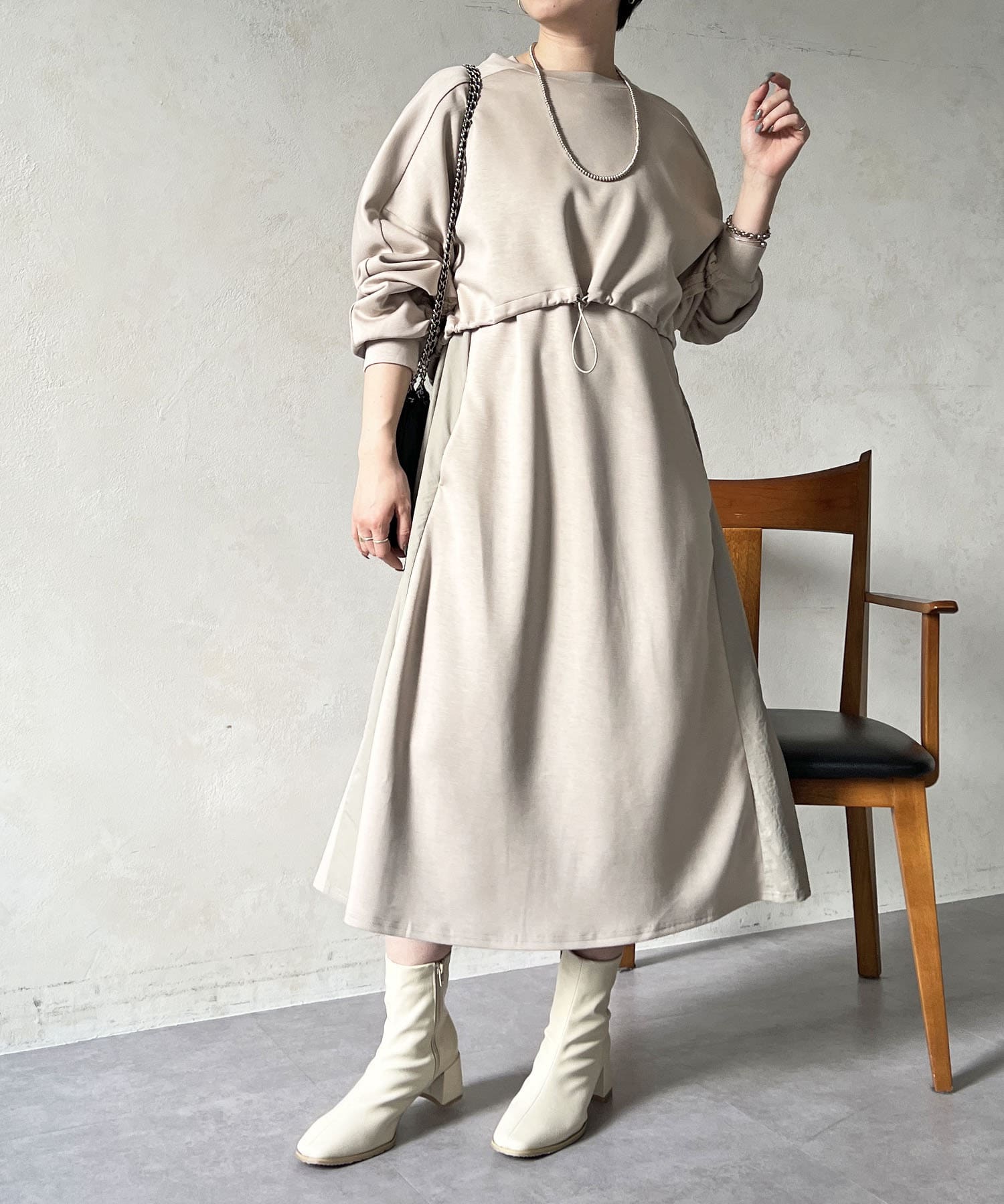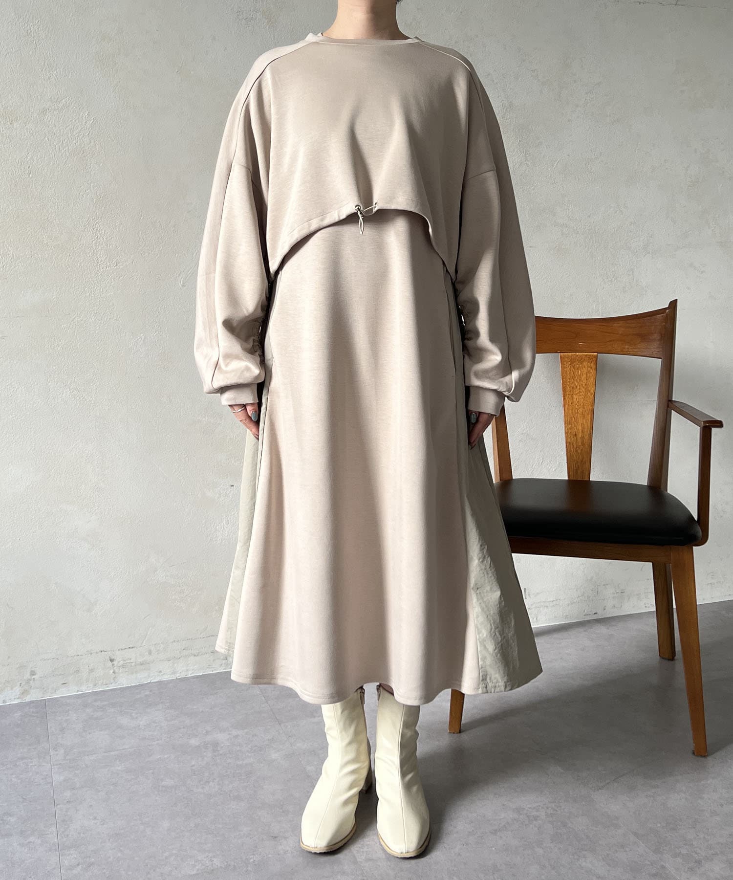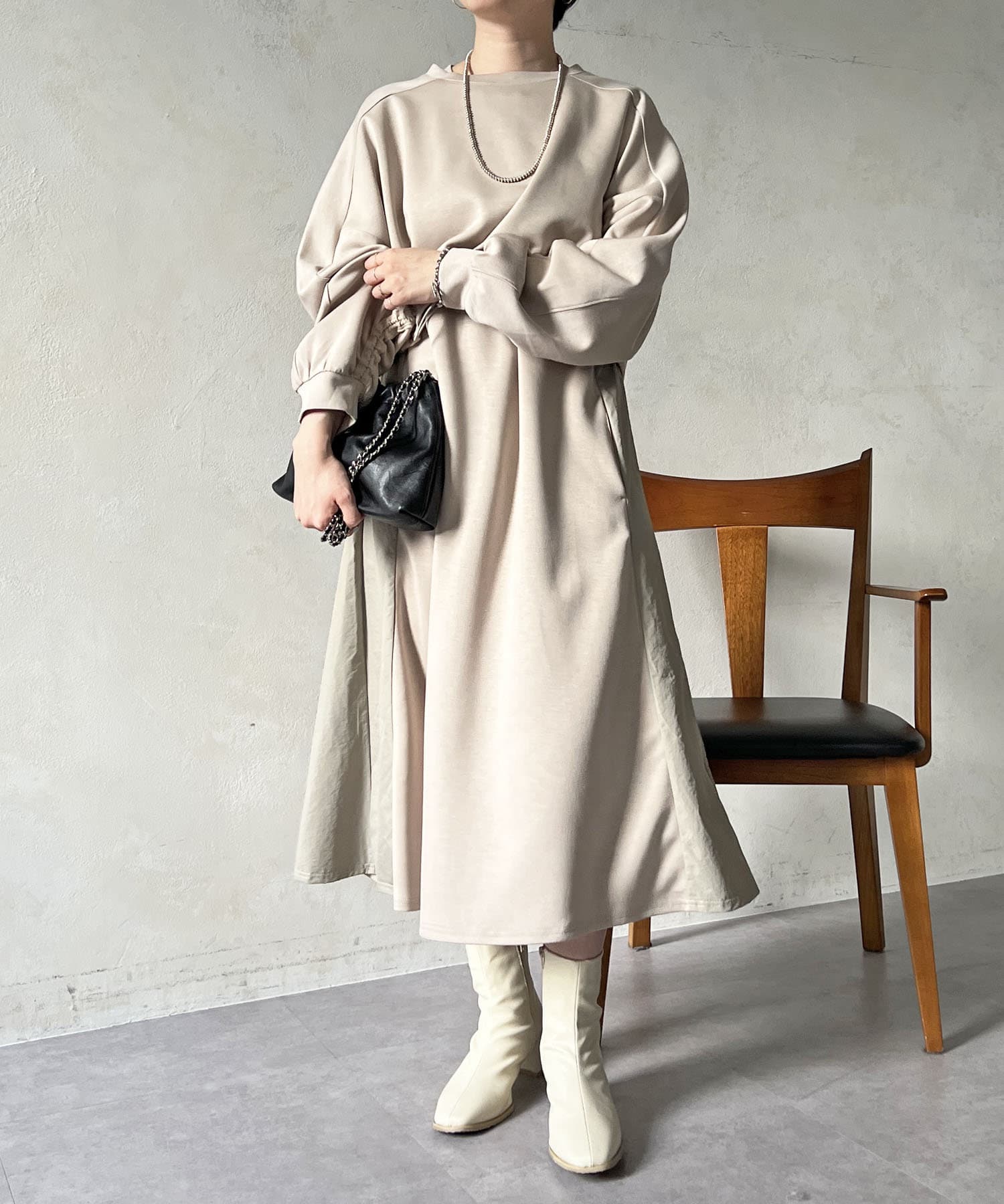 ・ワンピースは両脇が異素材ドッキングになっており、凝ったデザイン