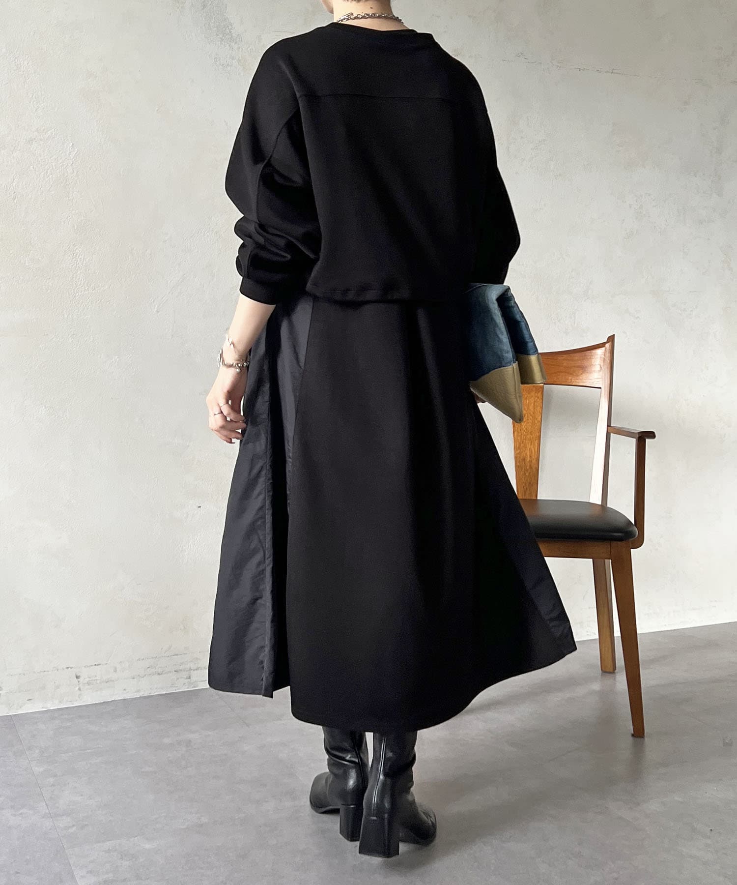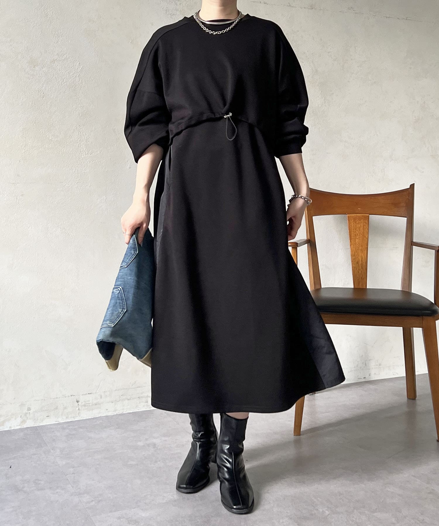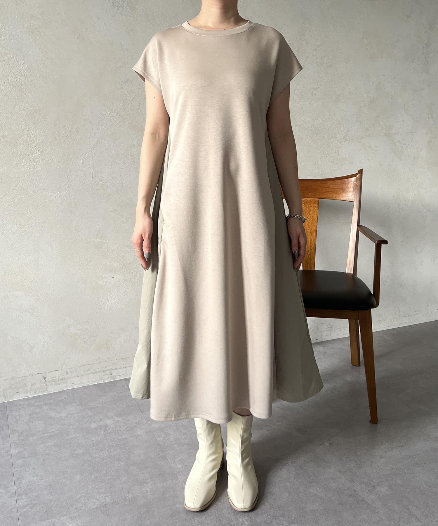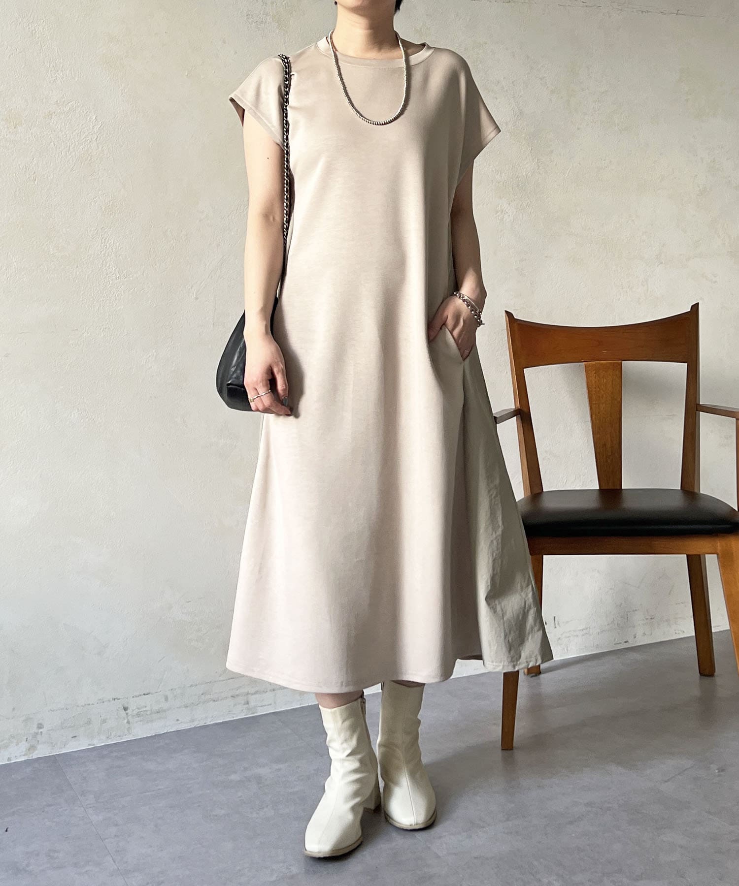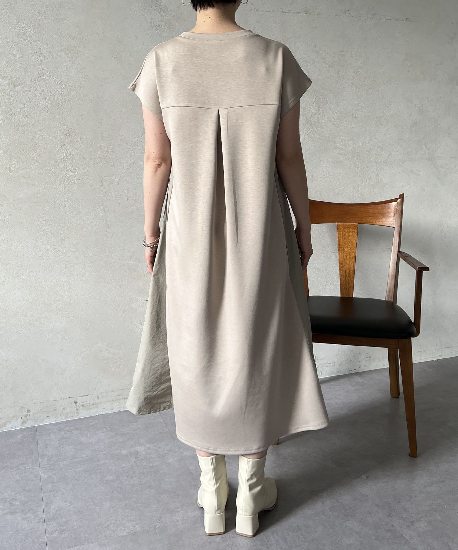 ・ワンピースは両脇が異素材ドッキングになっており、凝ったデザイン