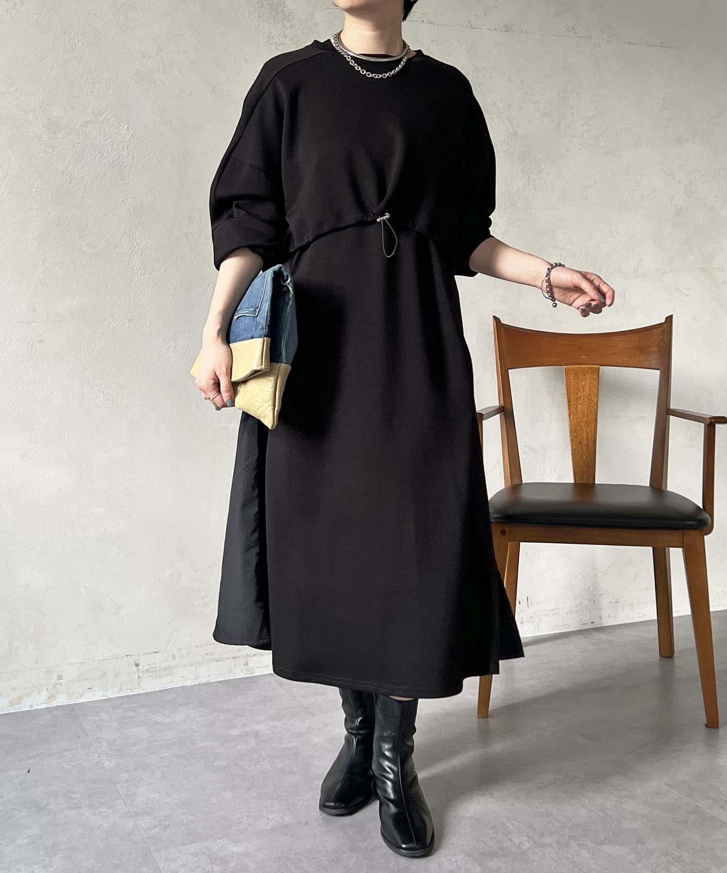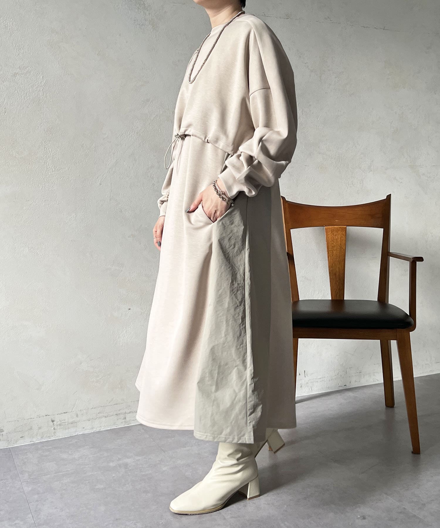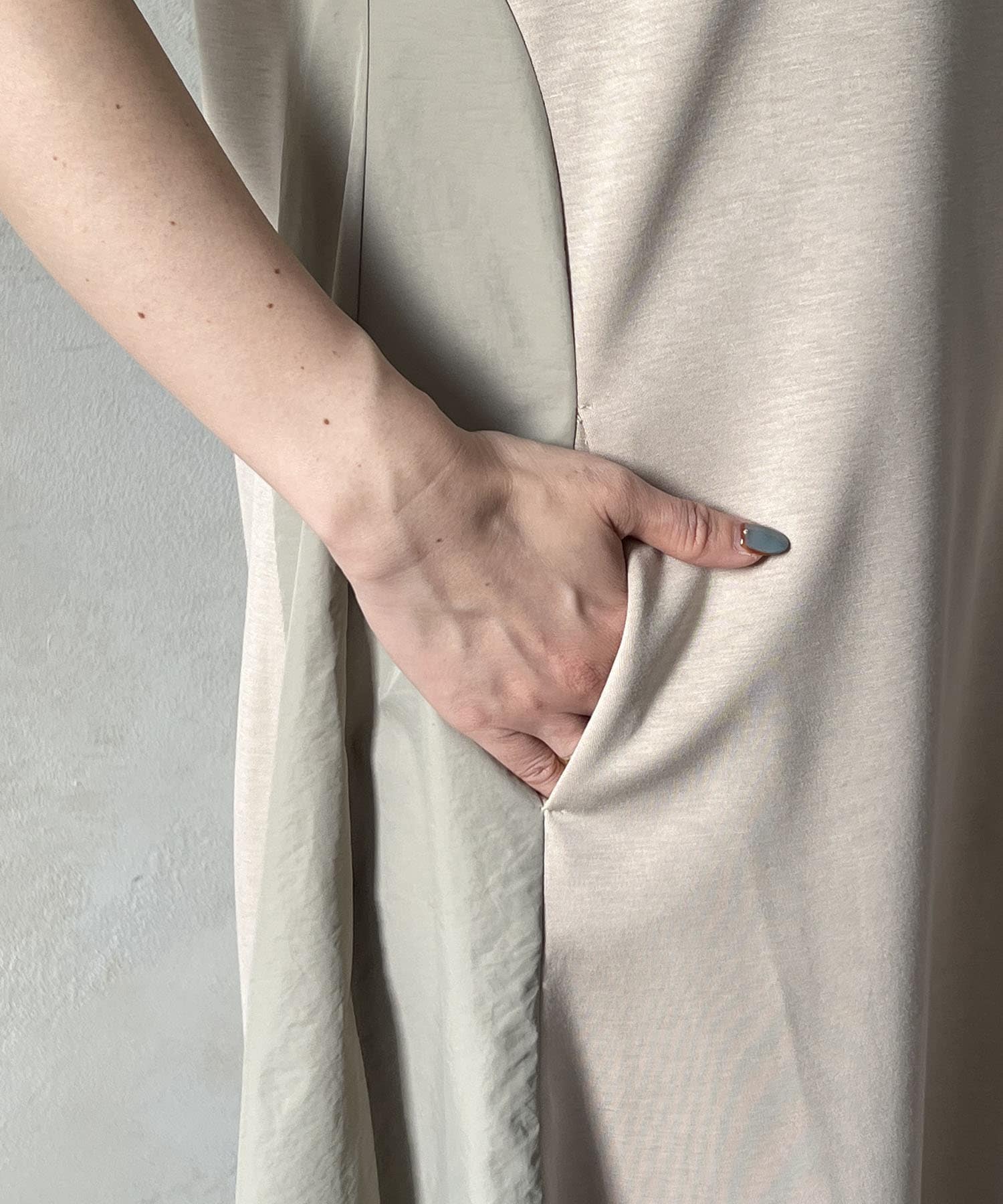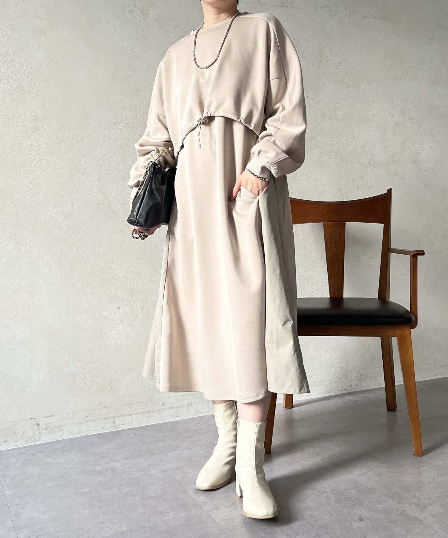 ・ワンピースは両脇が異素材ドッキングになっており、凝ったデザイン