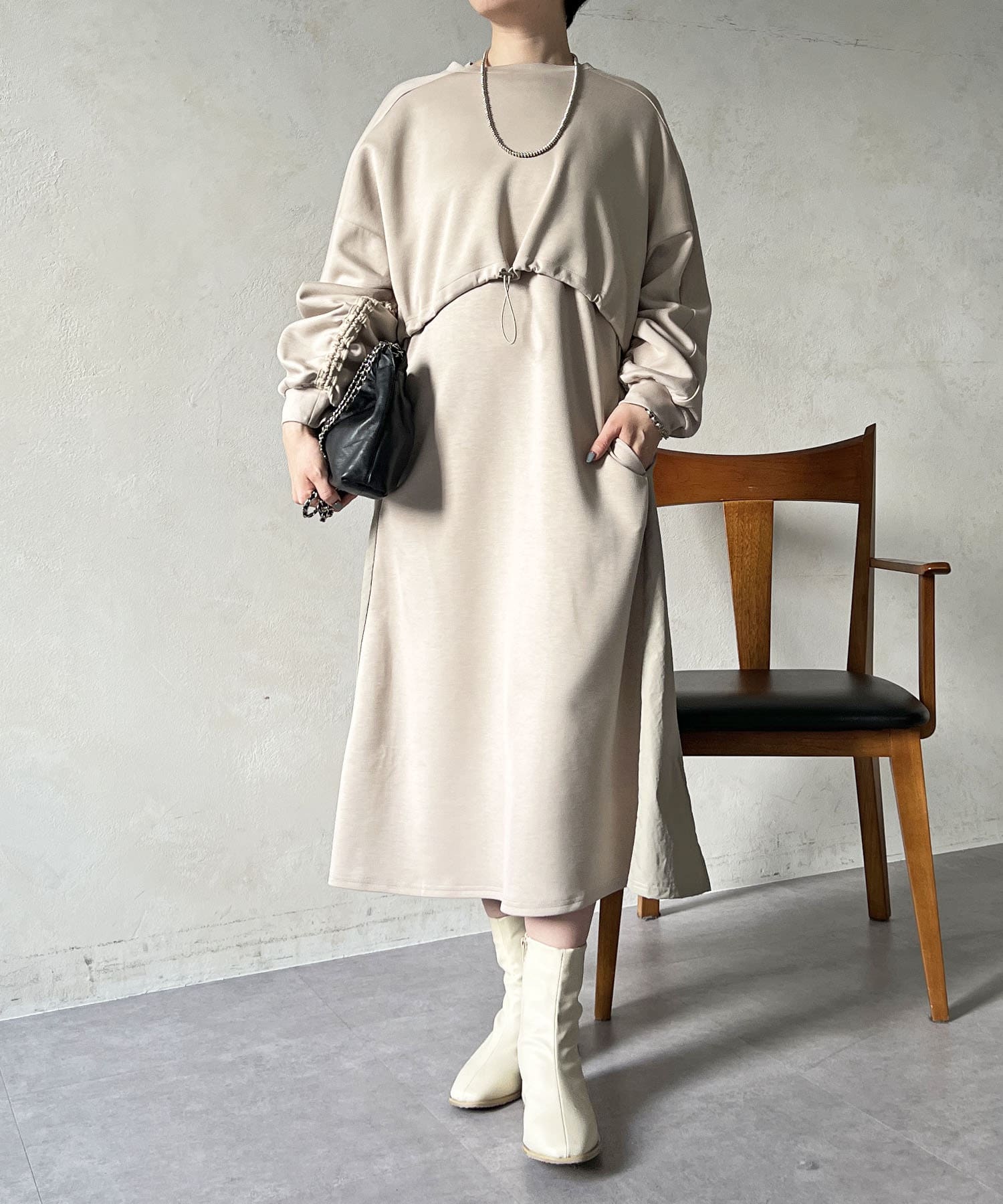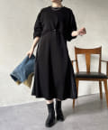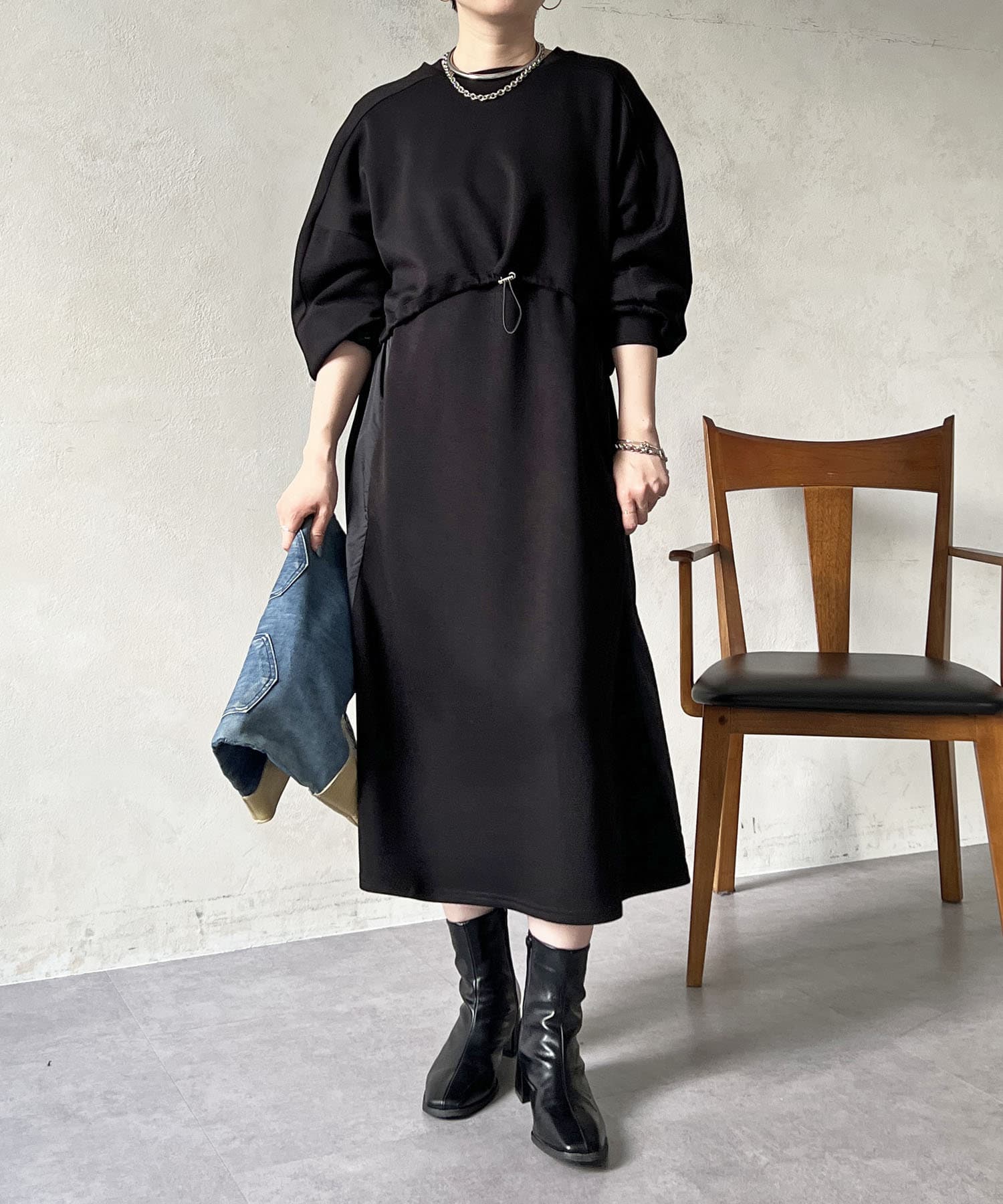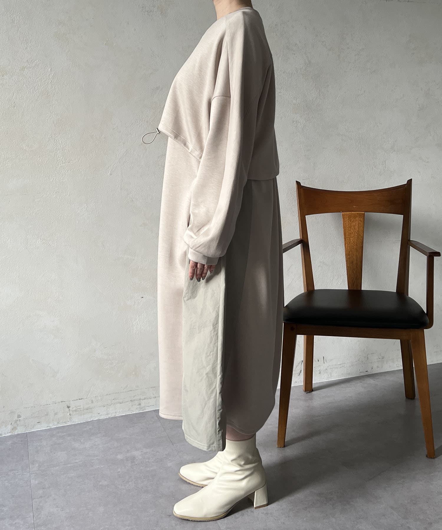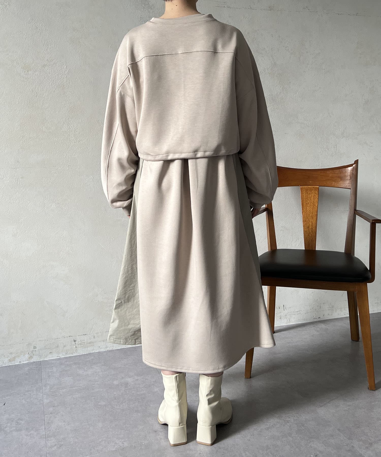 ・ワンピースは両脇が異素材ドッキングになっており、凝ったデザイン