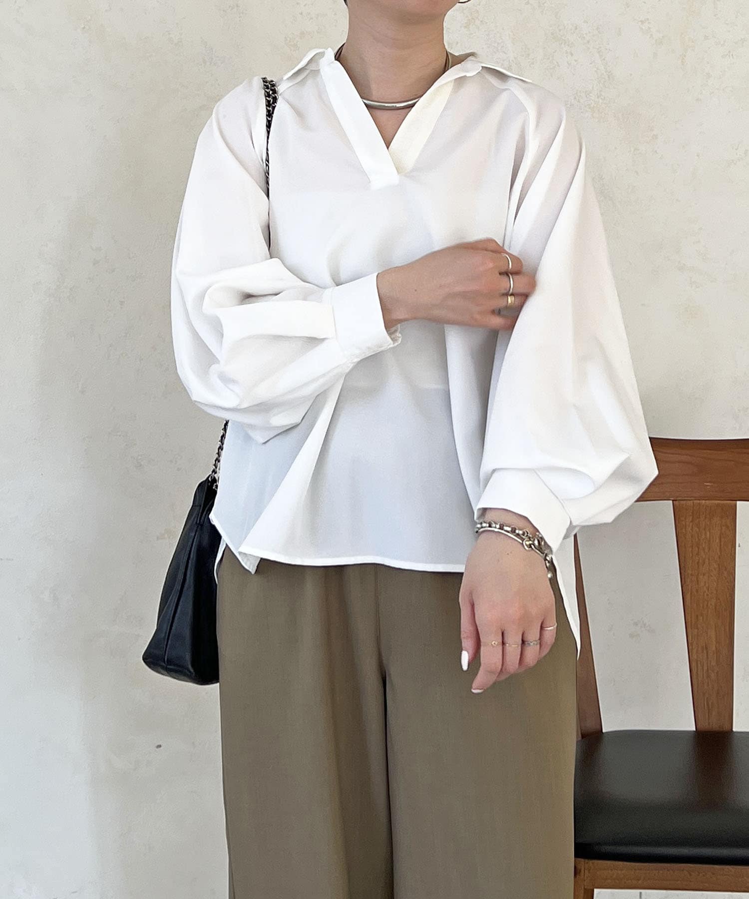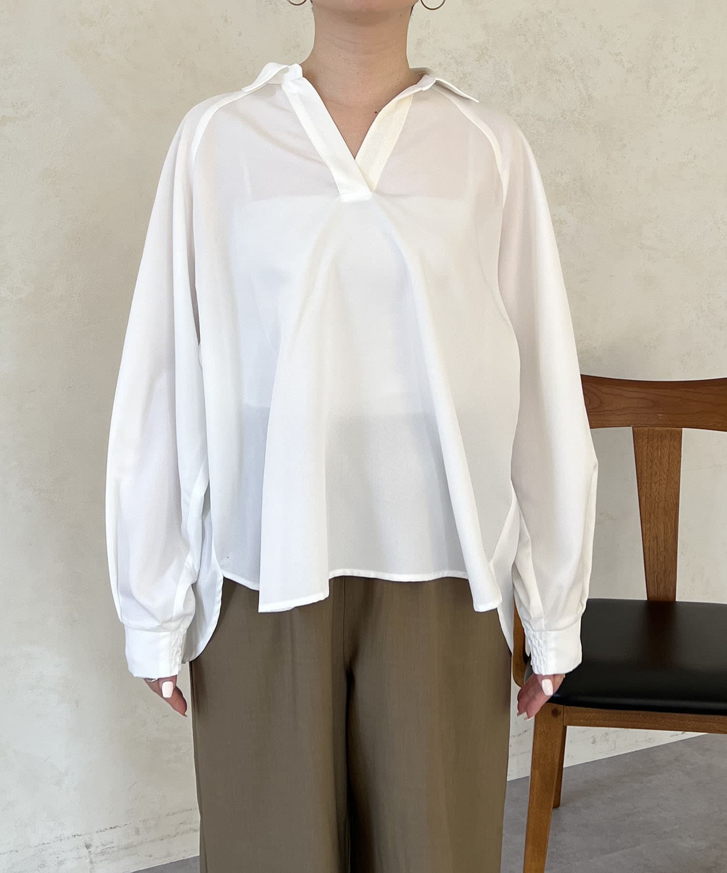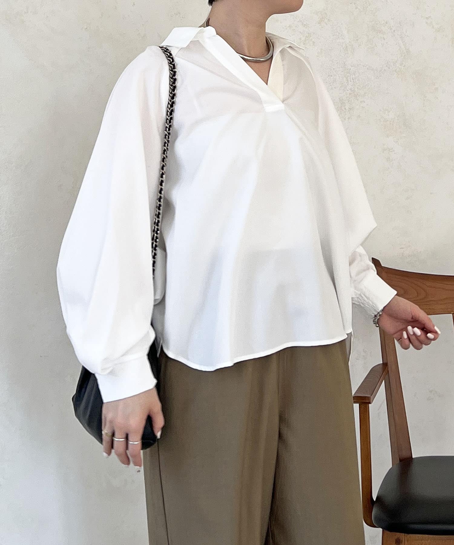 バックデザインで後ろ姿にも自信!顔回りもスッキリ見せてくれるスキッパーシャツ