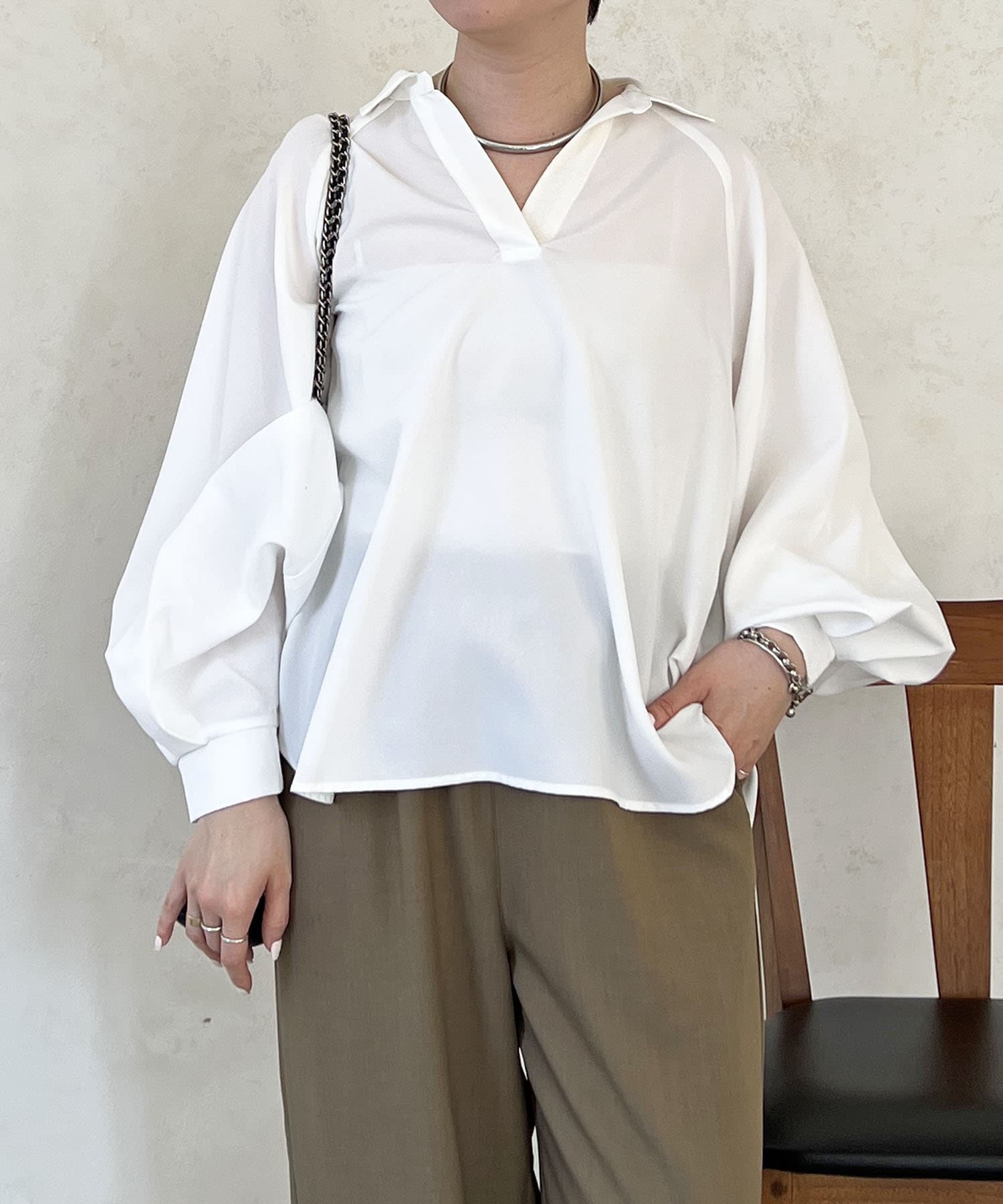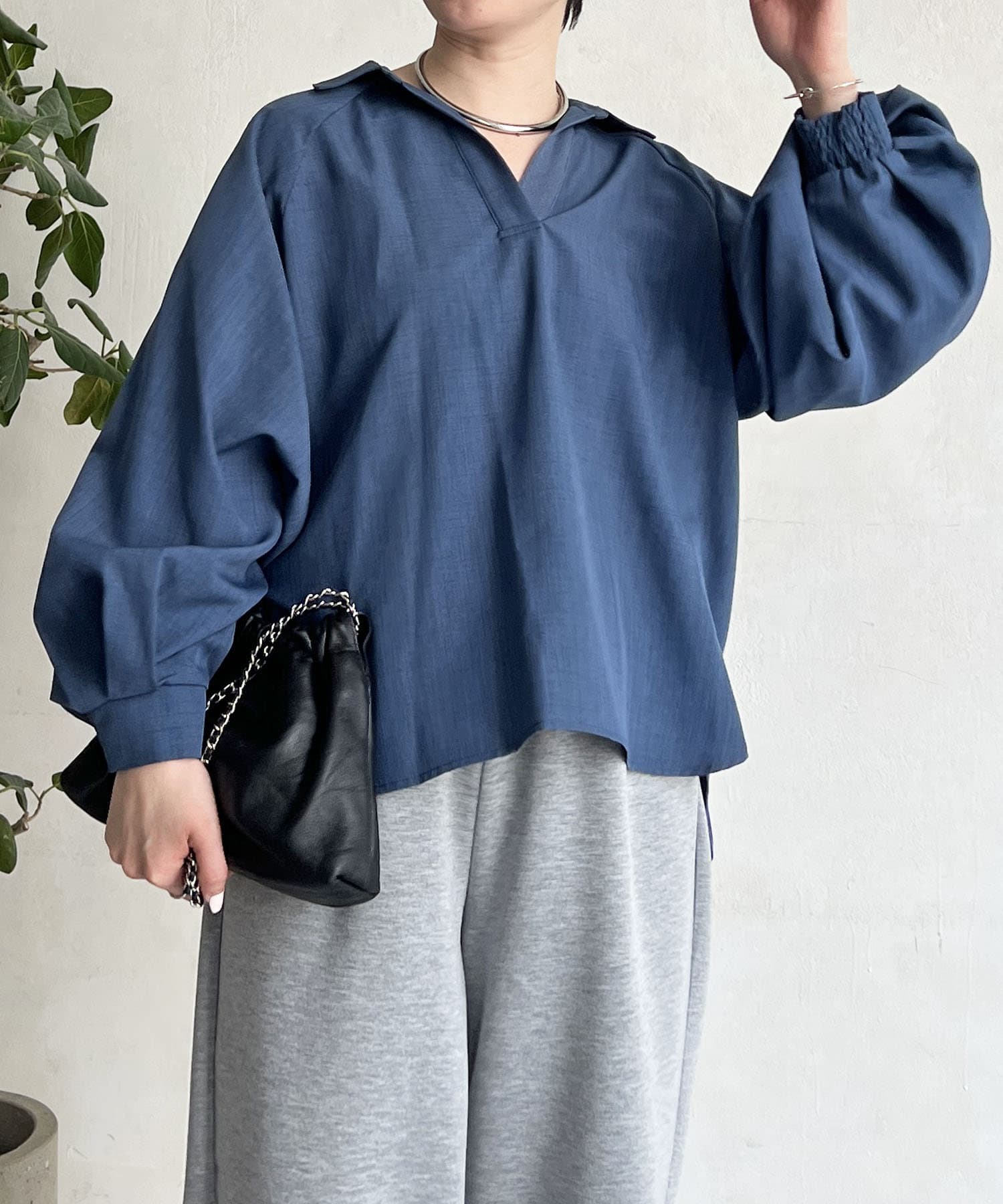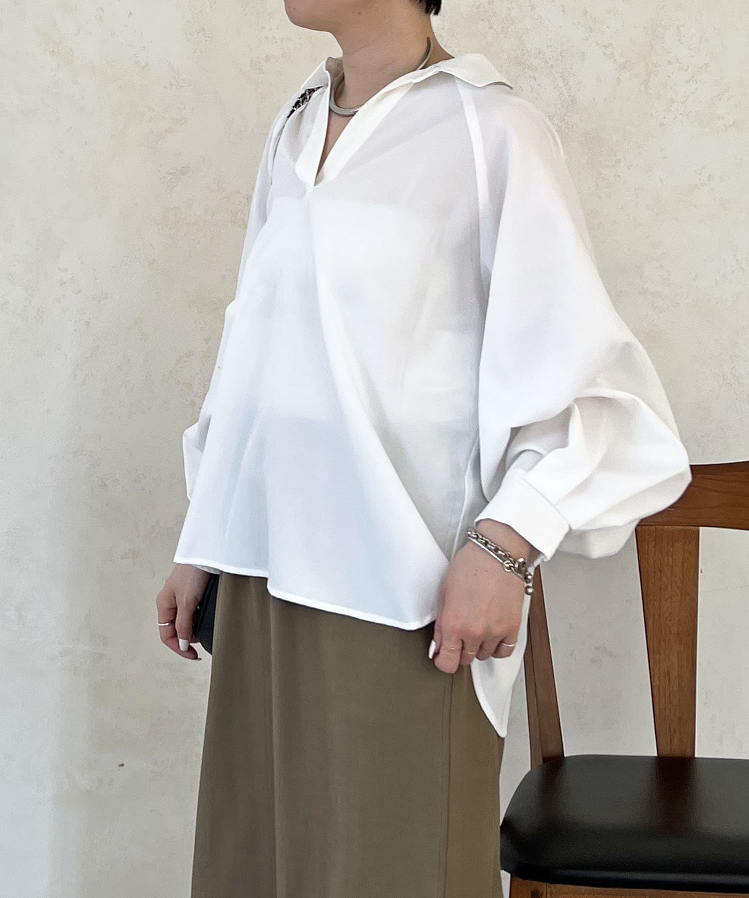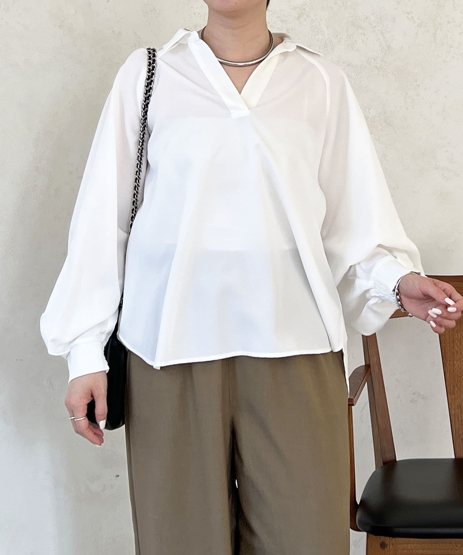 バックデザインで後ろ姿にも自信!顔回りもスッキリ見せてくれるスキッパーシャツ