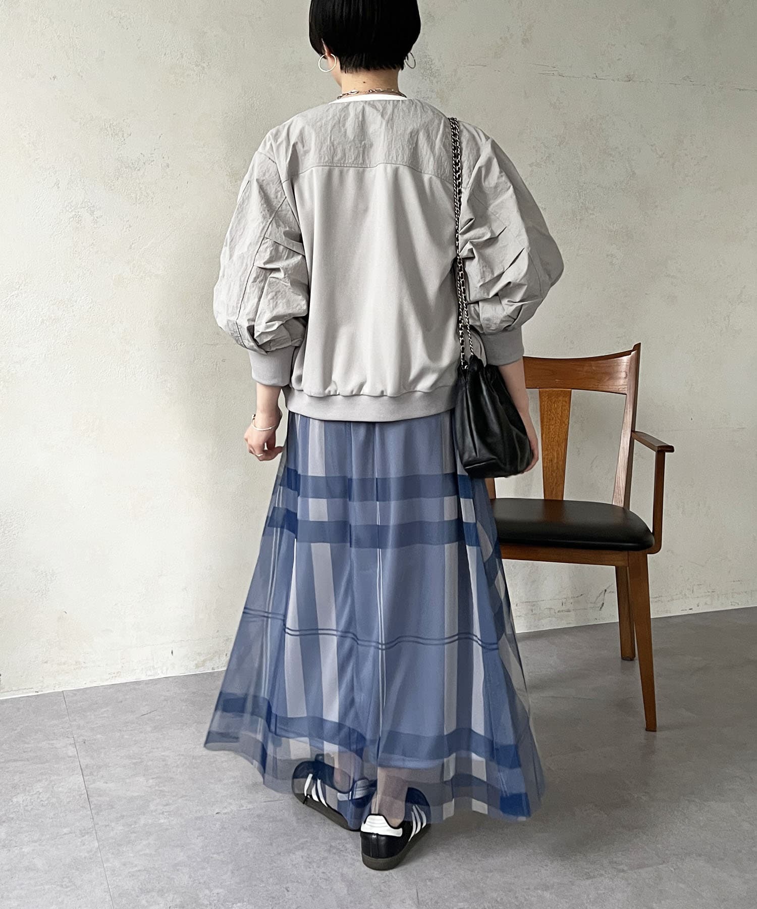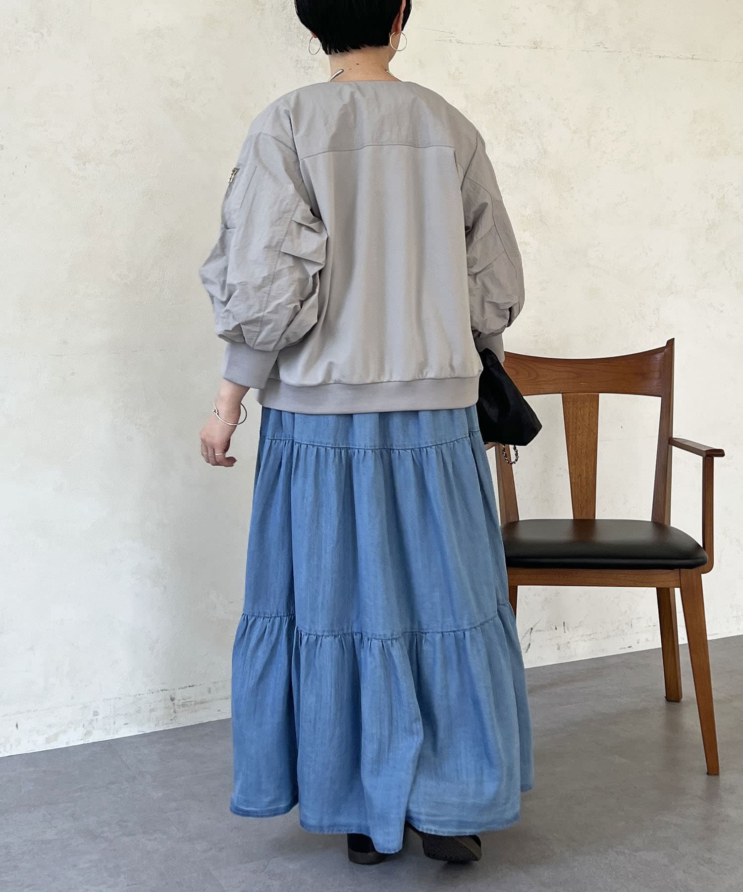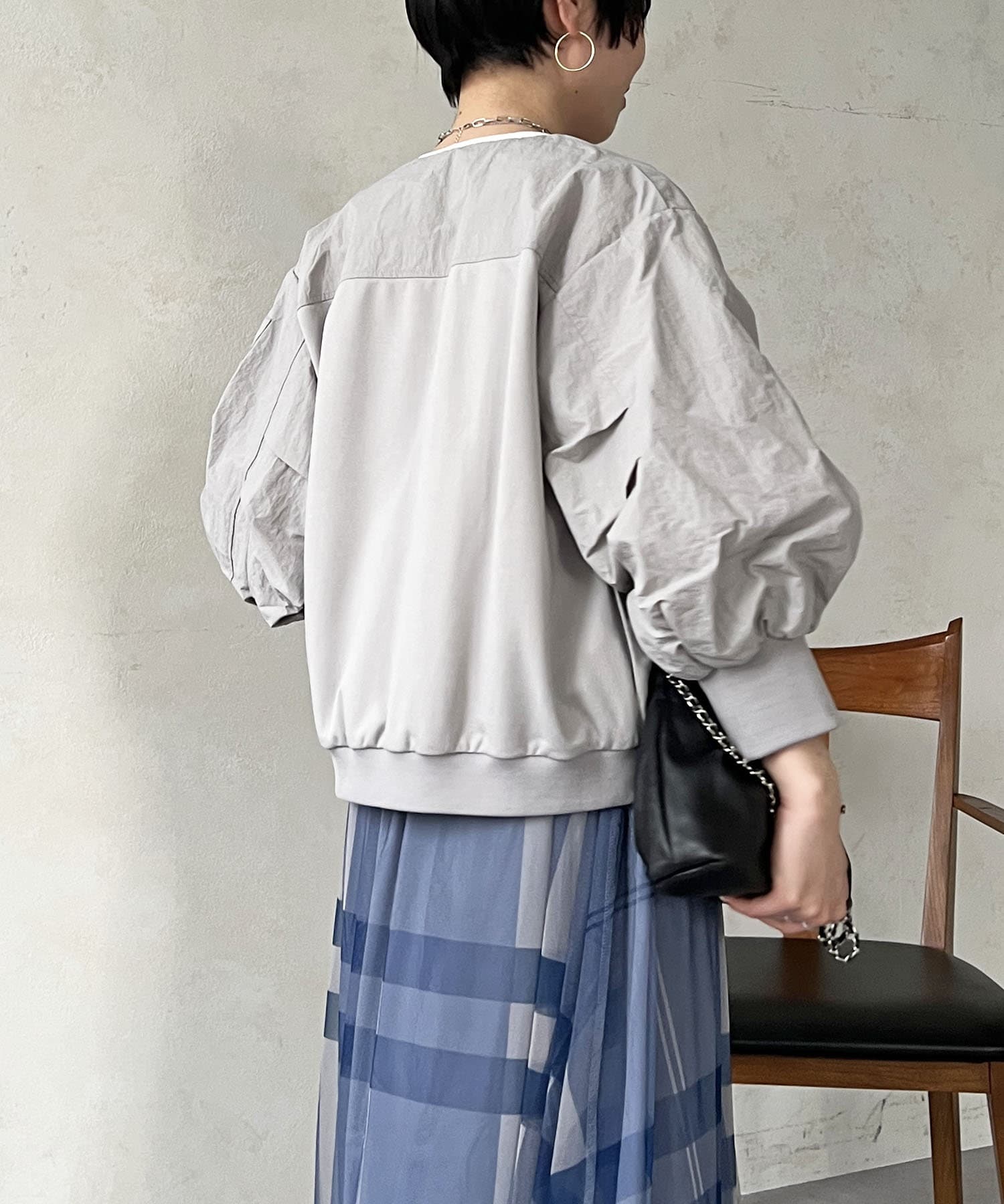 ・ワークテイストだけでなく、ふんわりした袖が可愛さも演出