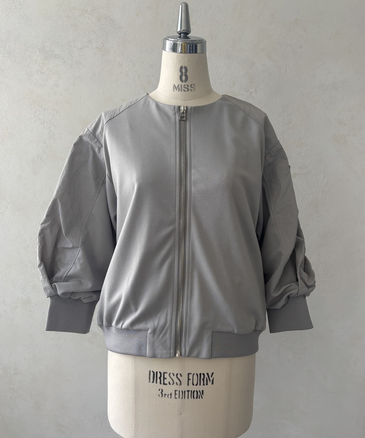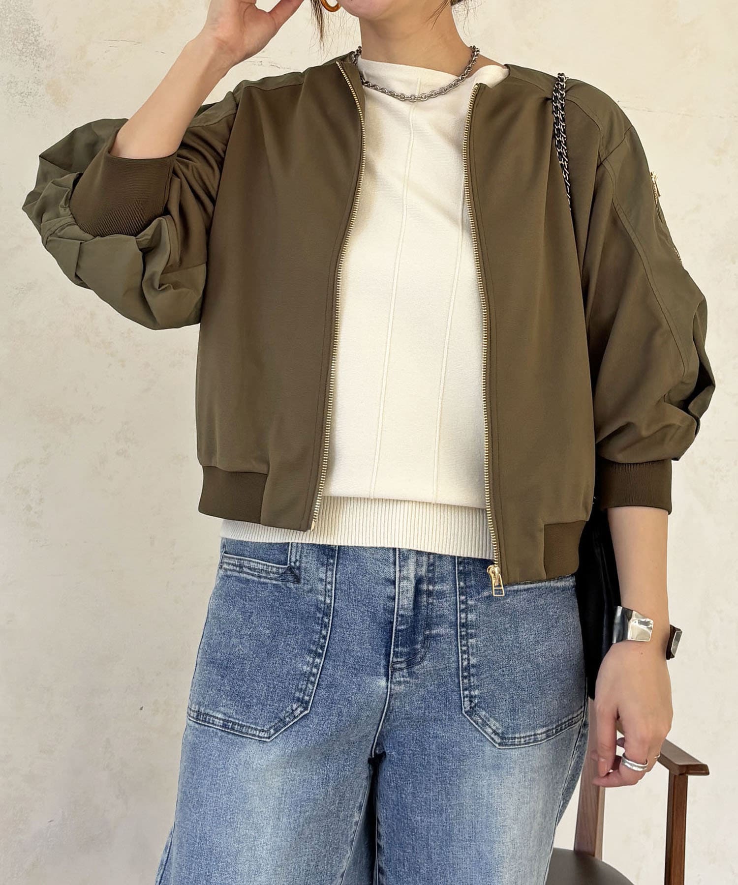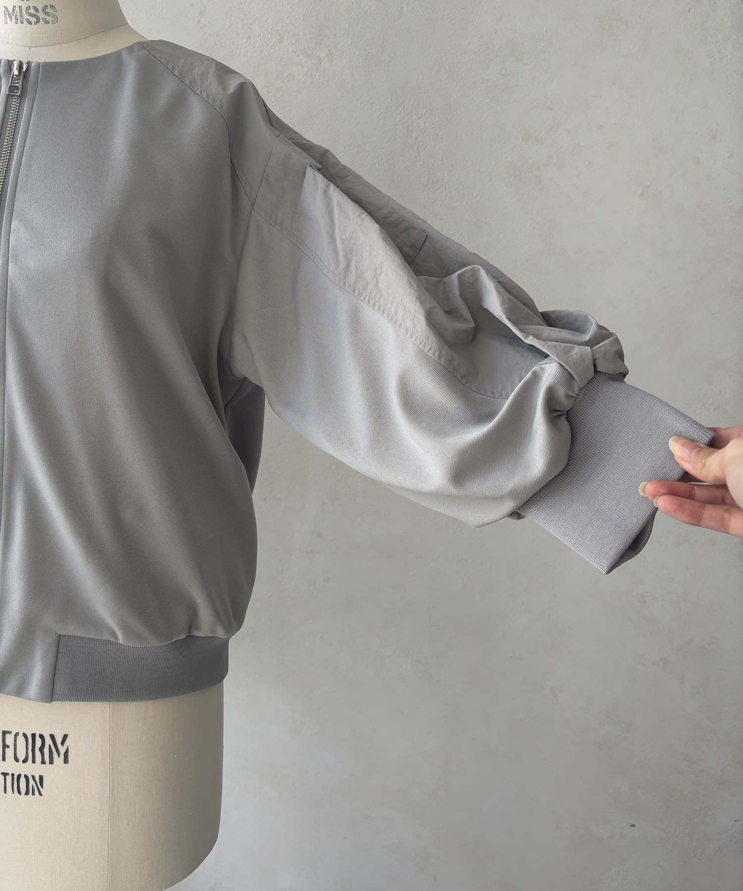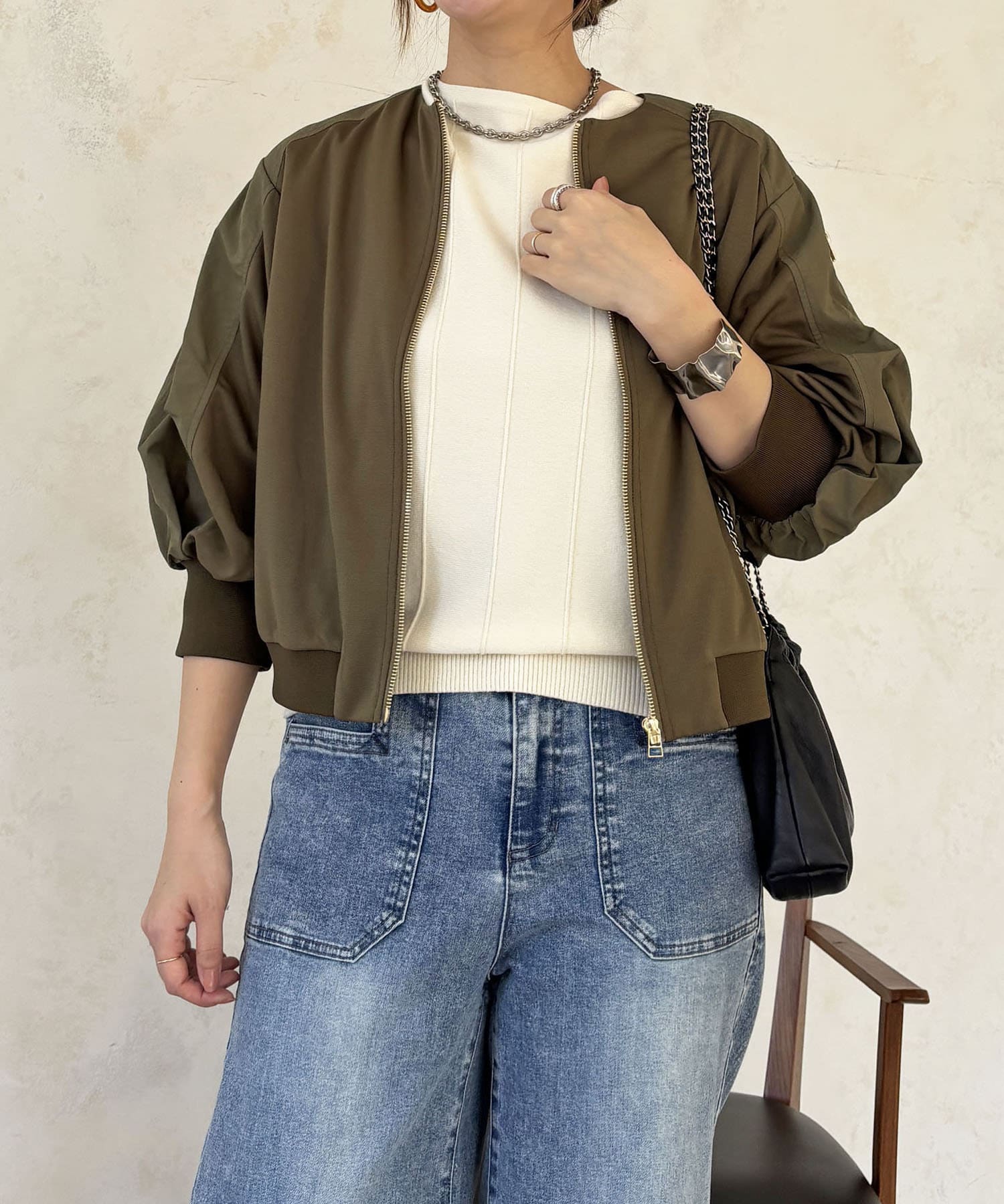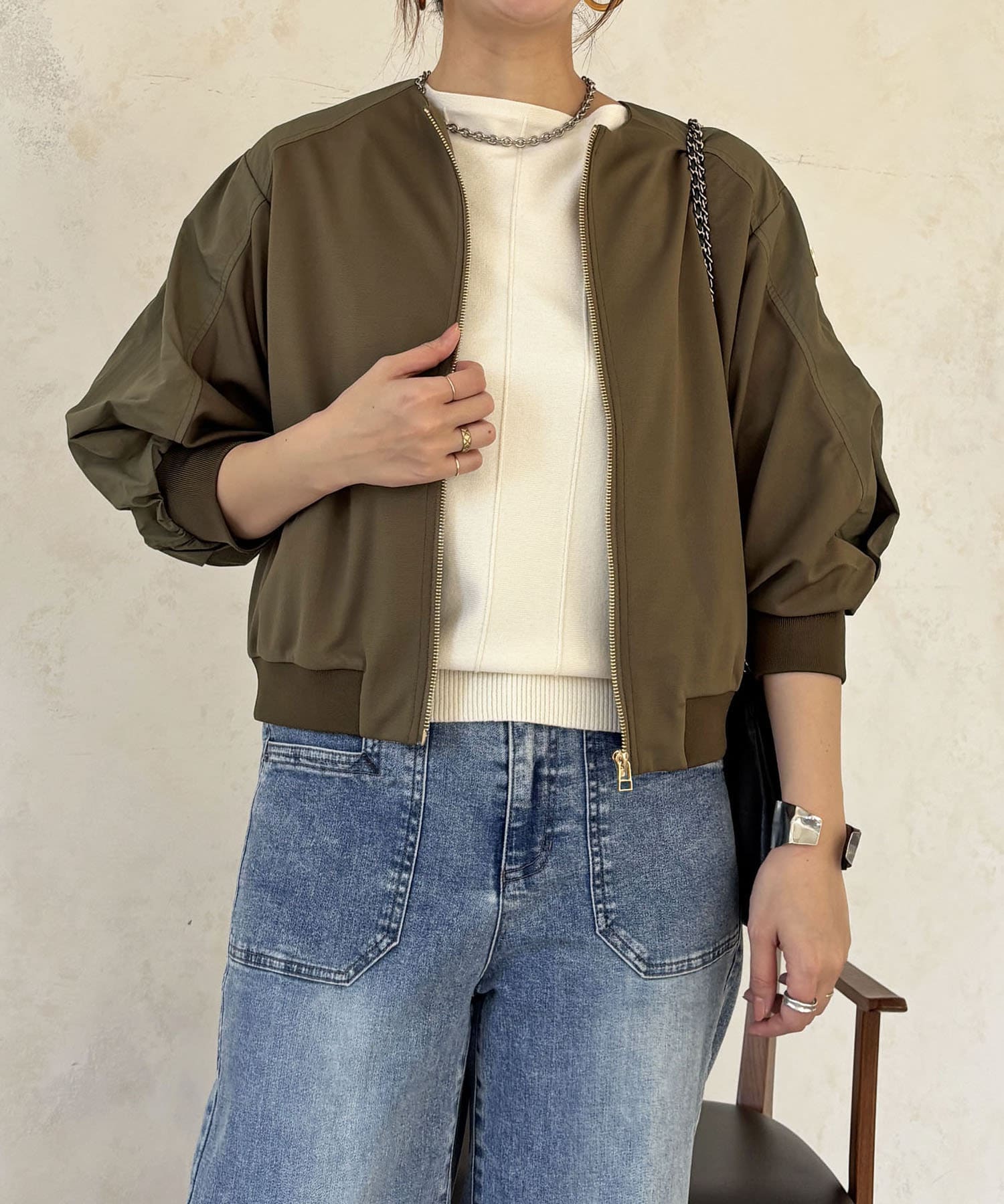 スタイリッシュに着れる大人の異素材切替ショート丈ブルゾン