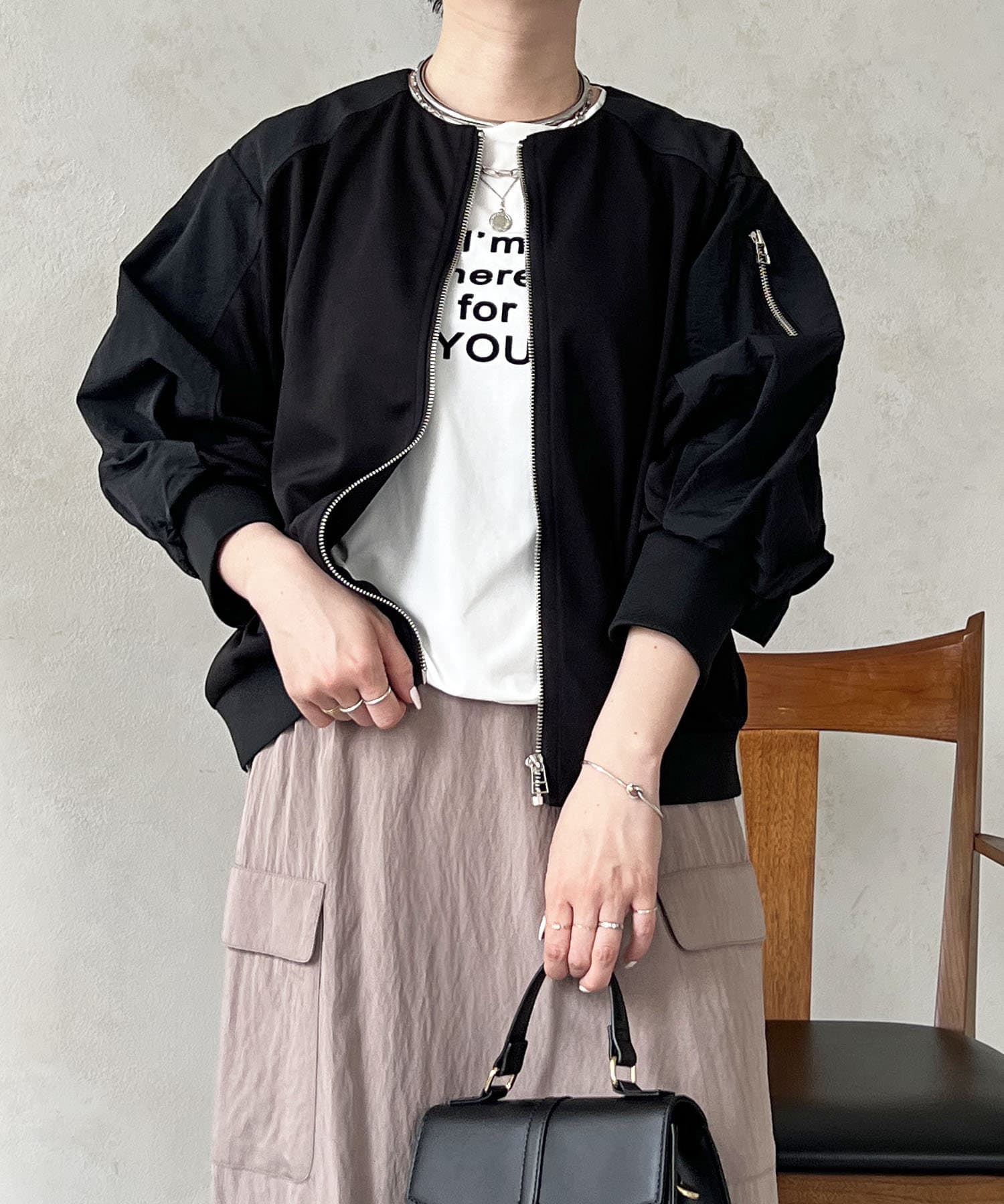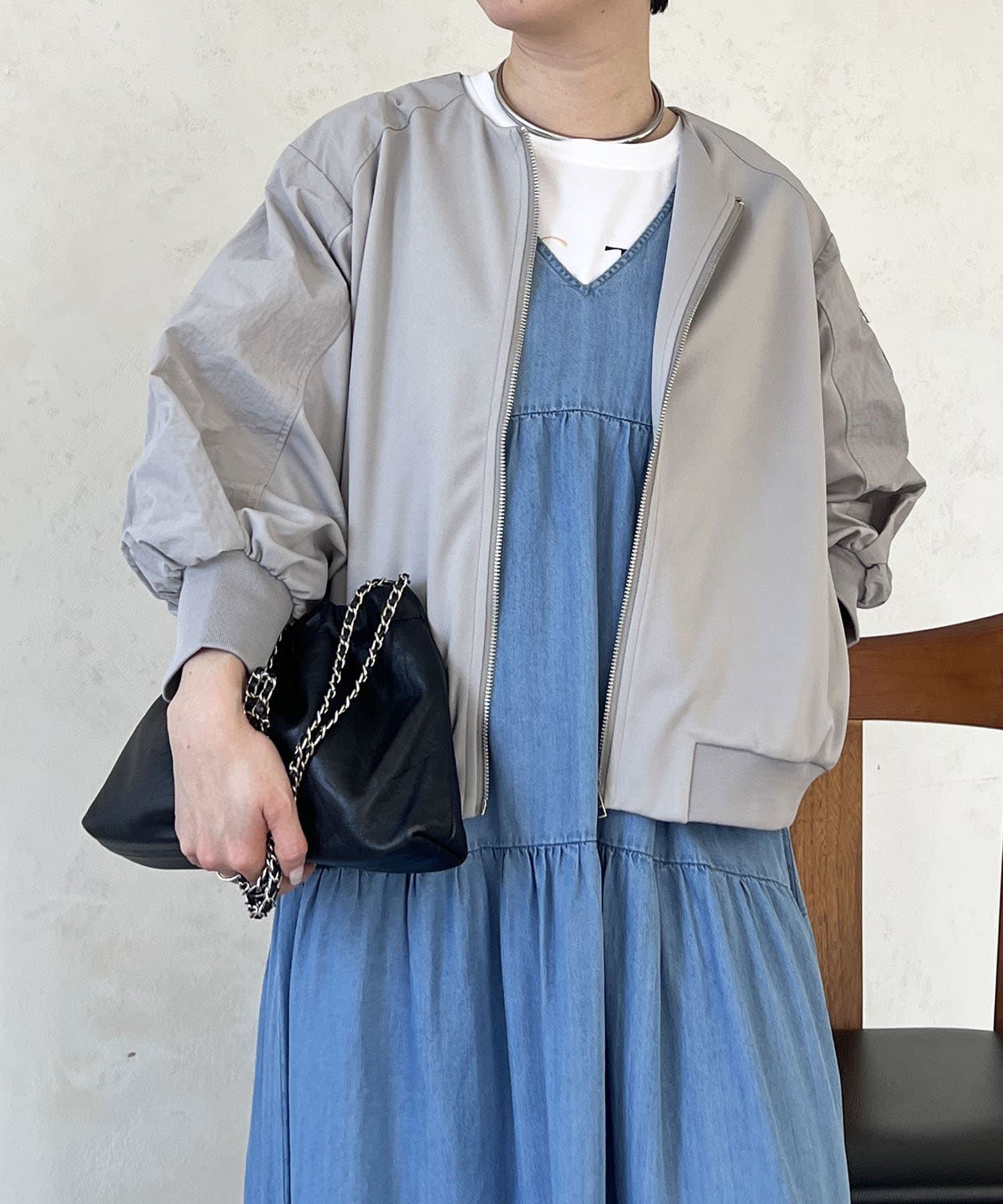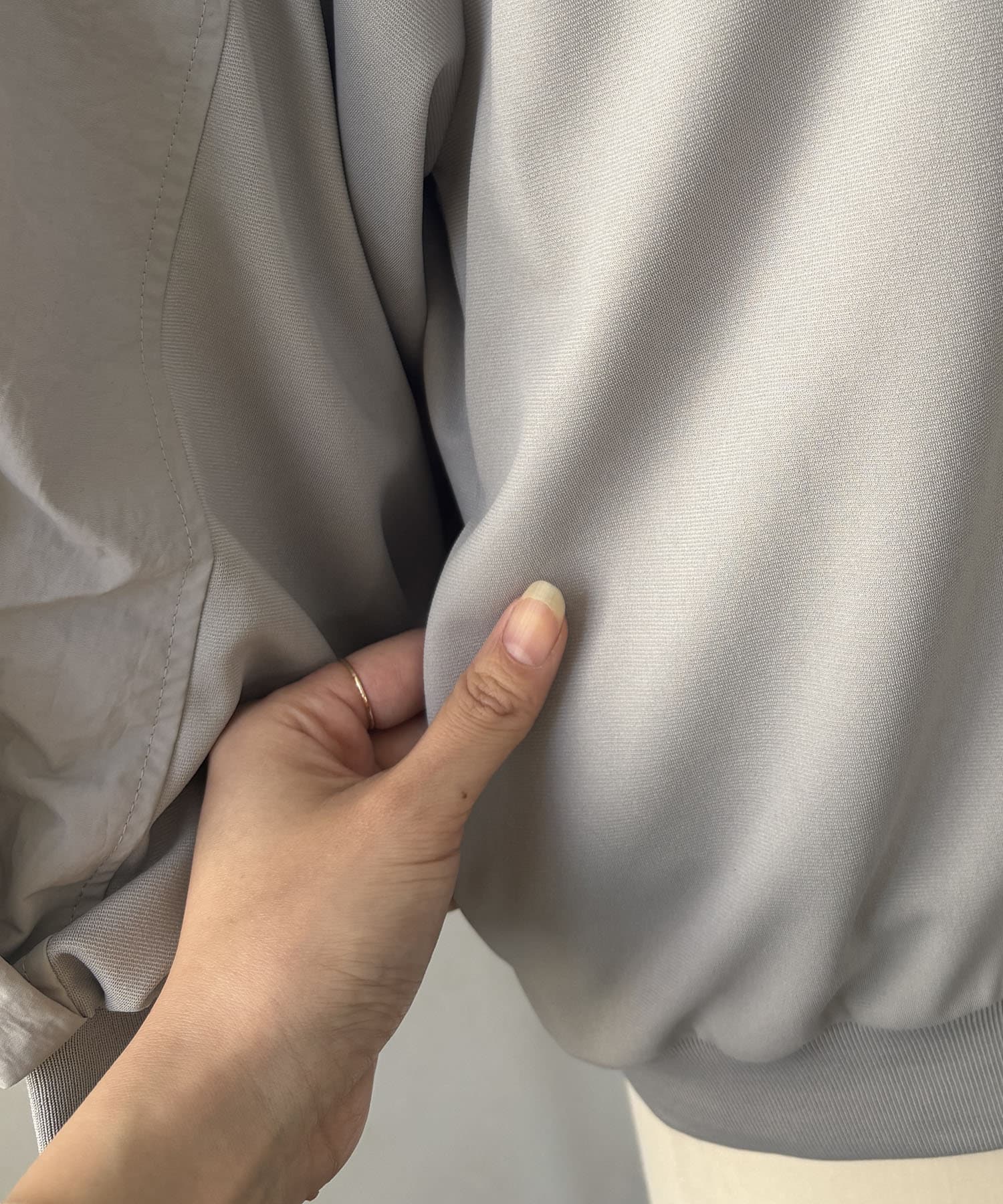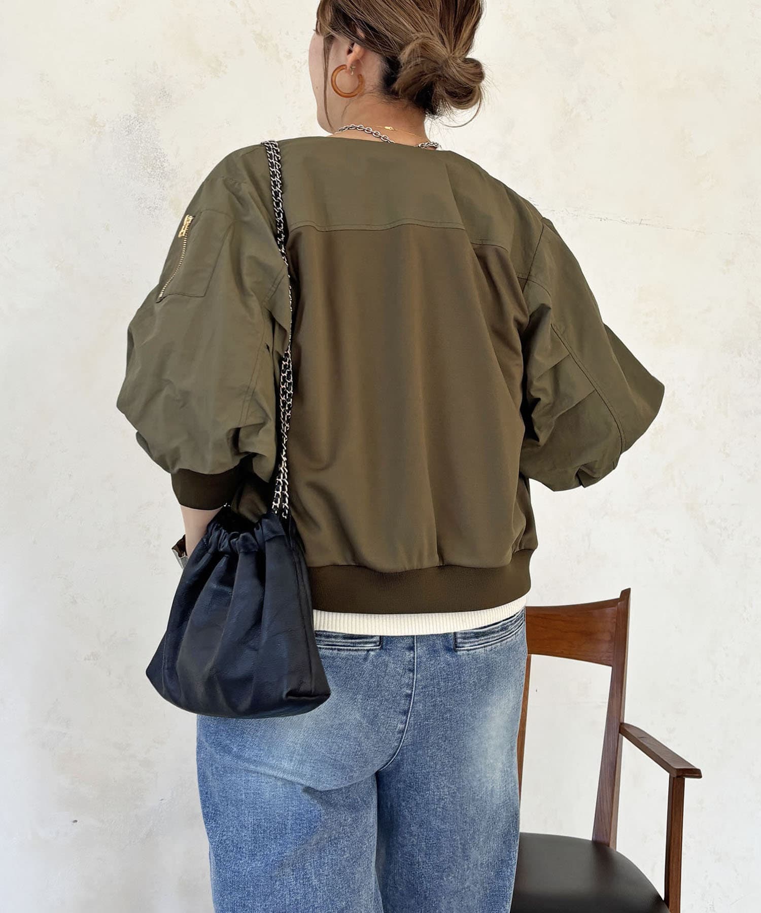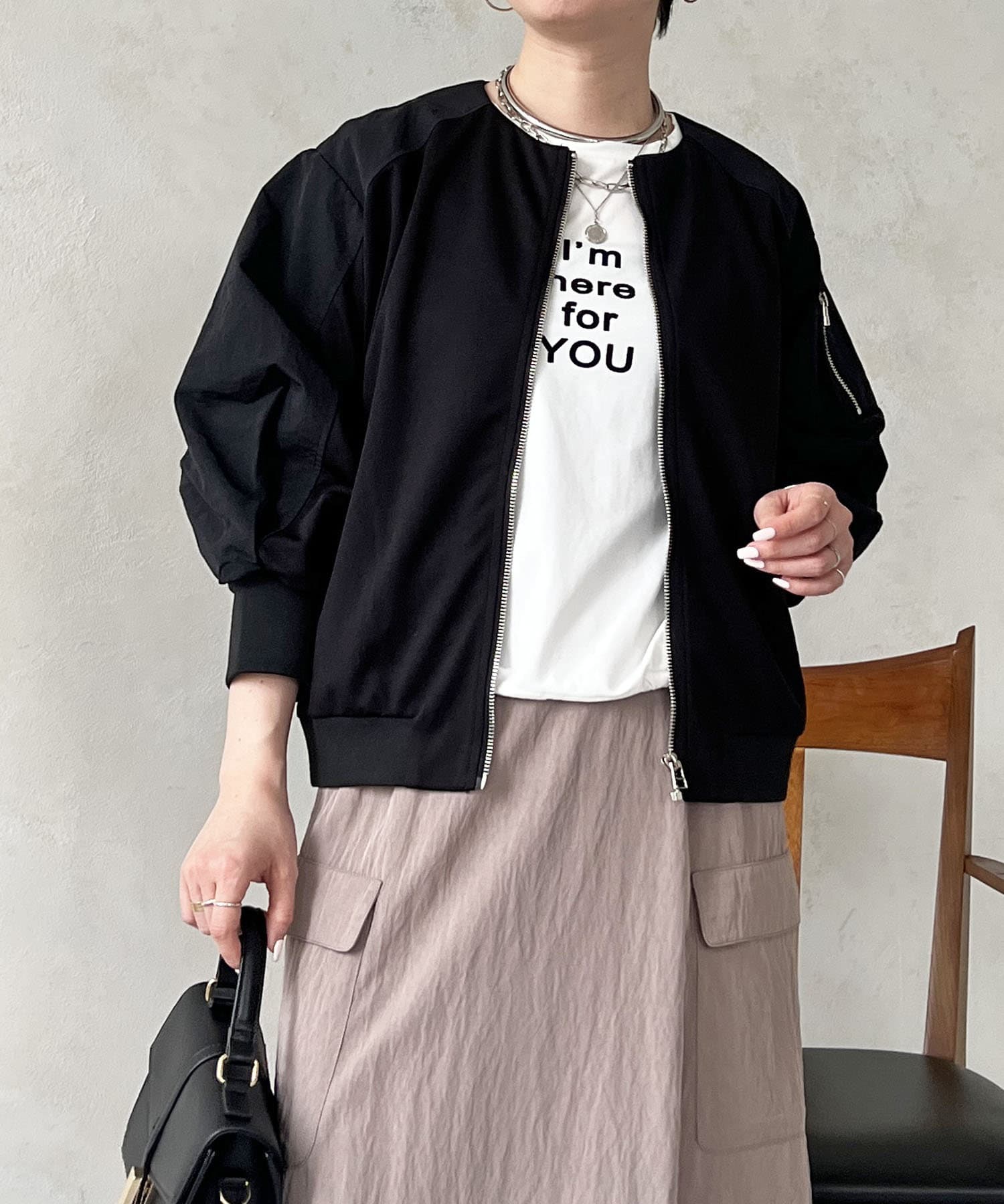スタイリッシュに着れる大人の異素材切替ショート丈ブルゾン