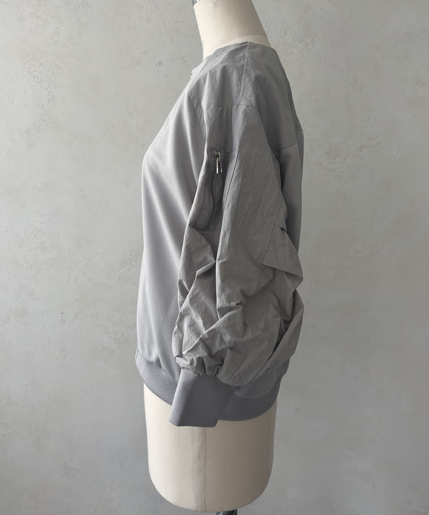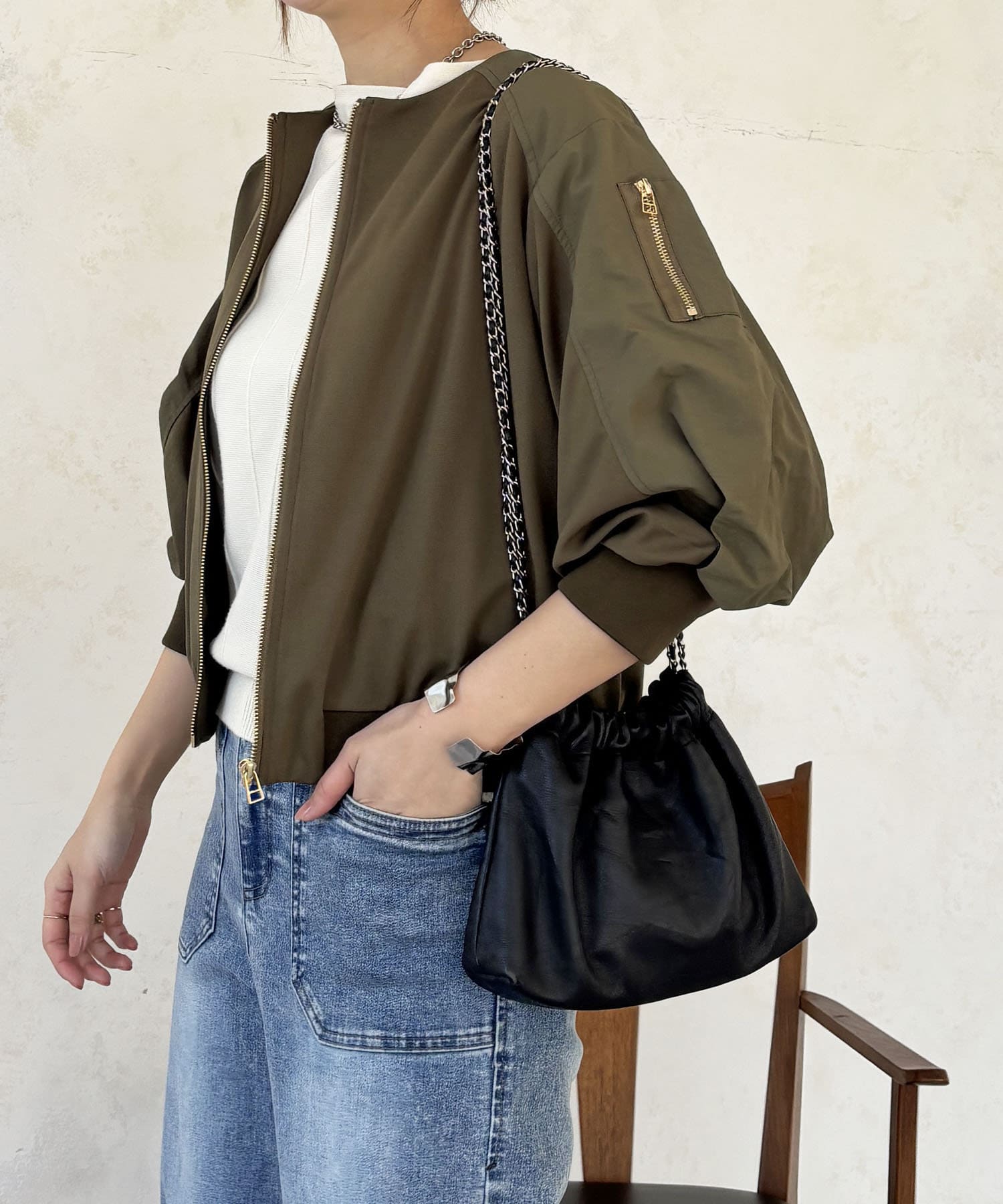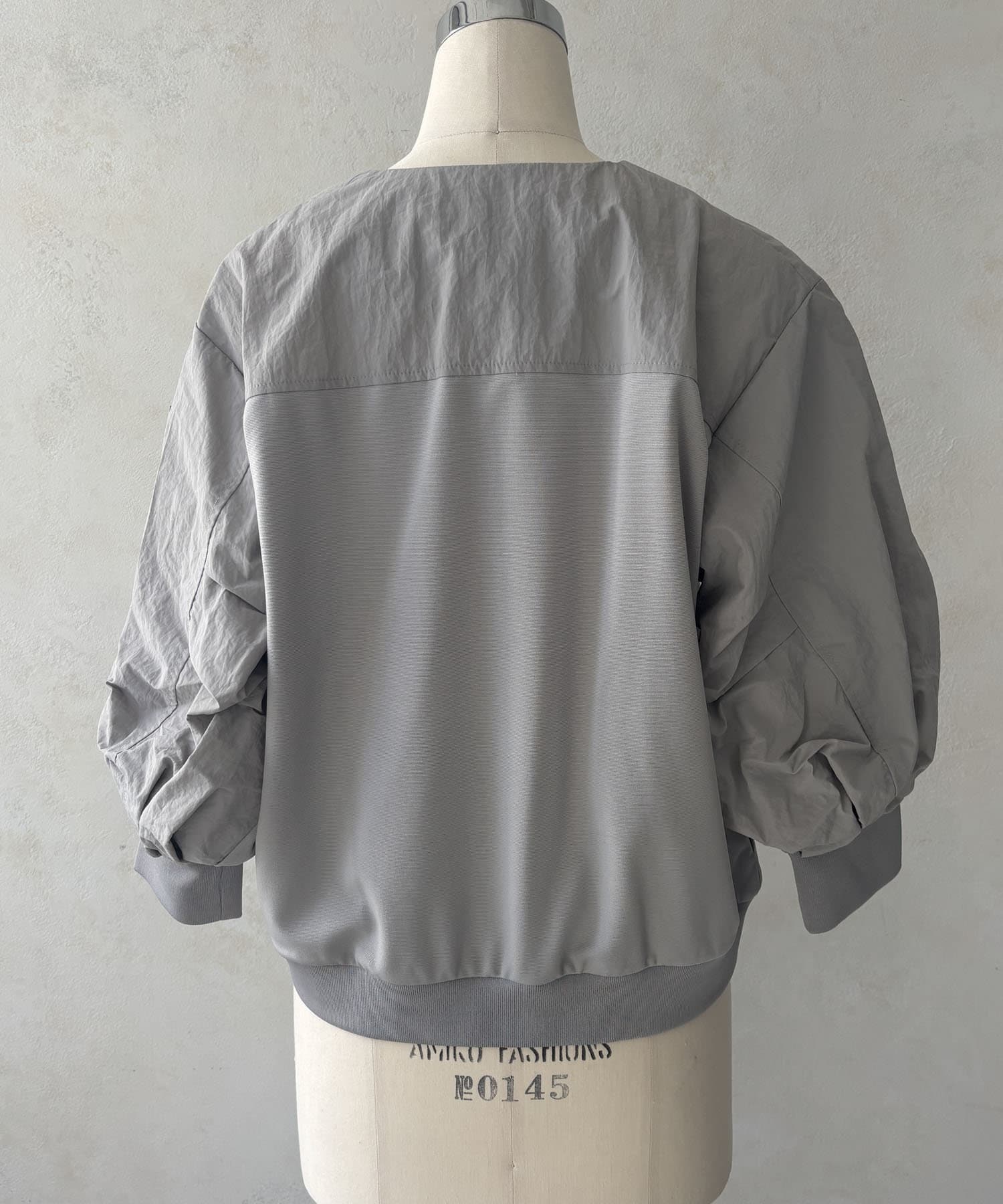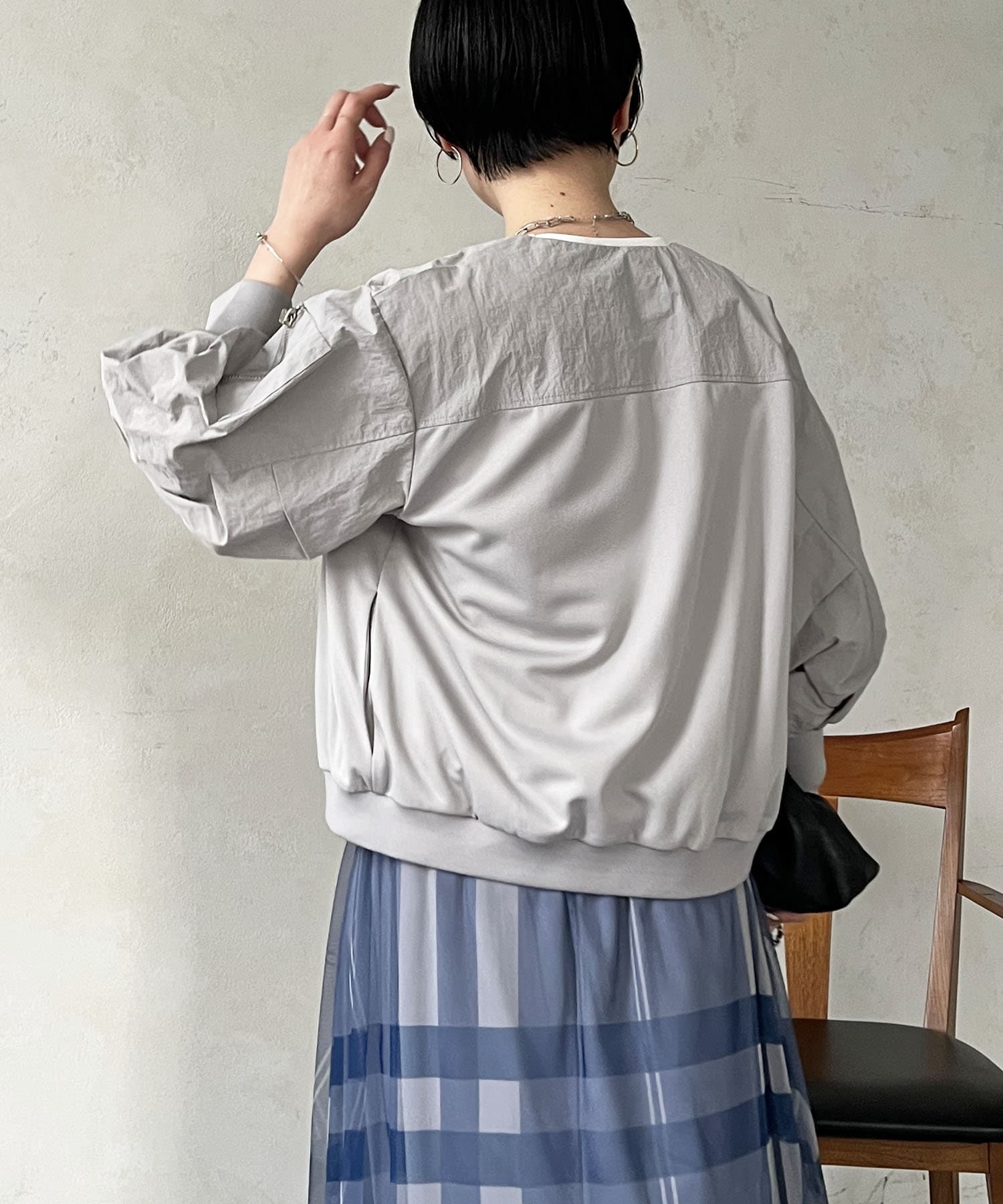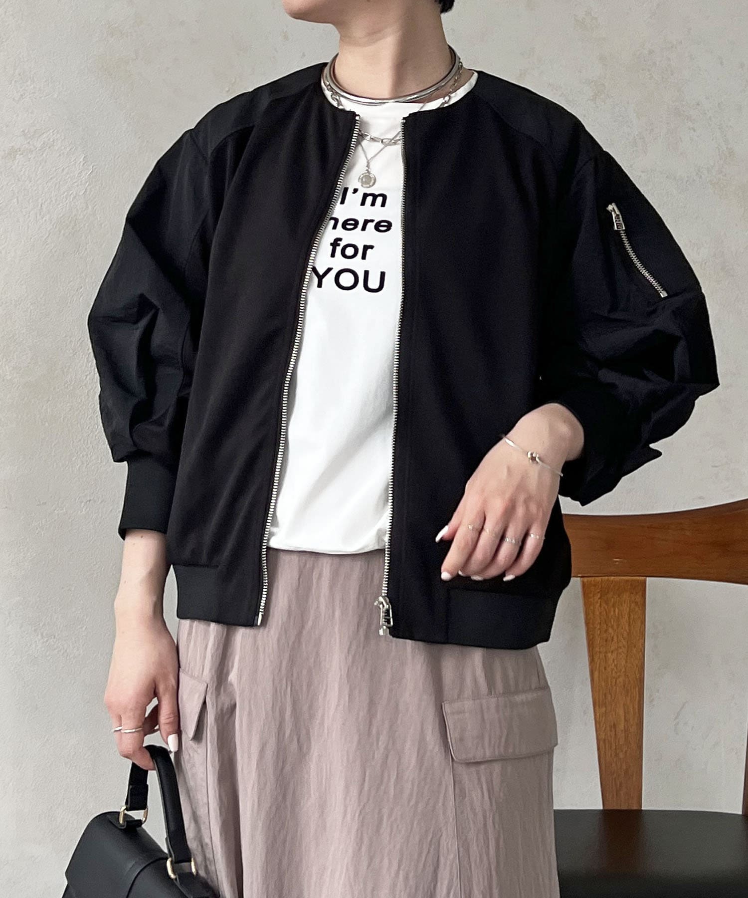 スタイリッシュに着れる大人の異素材切替ショート丈ブルゾン