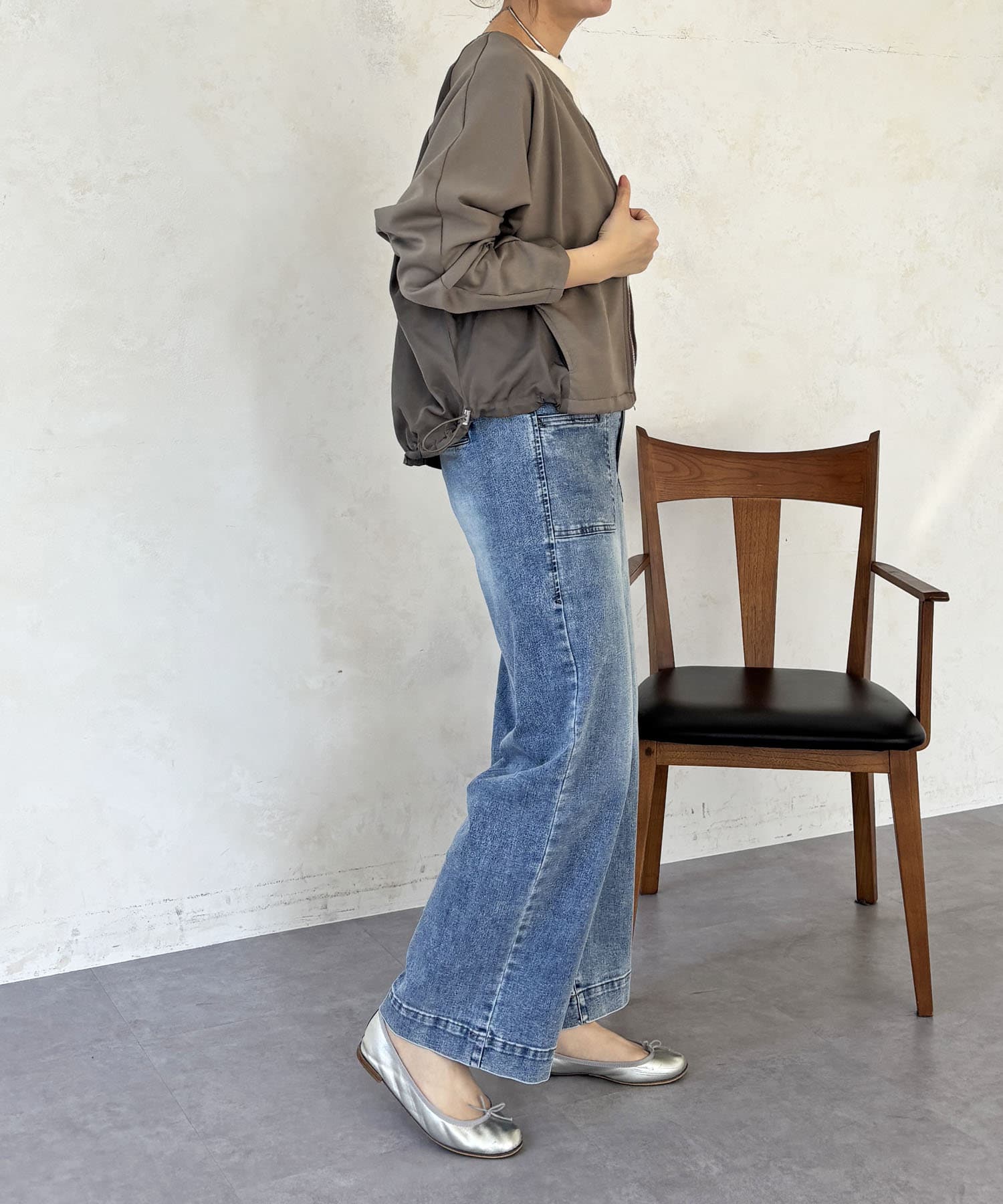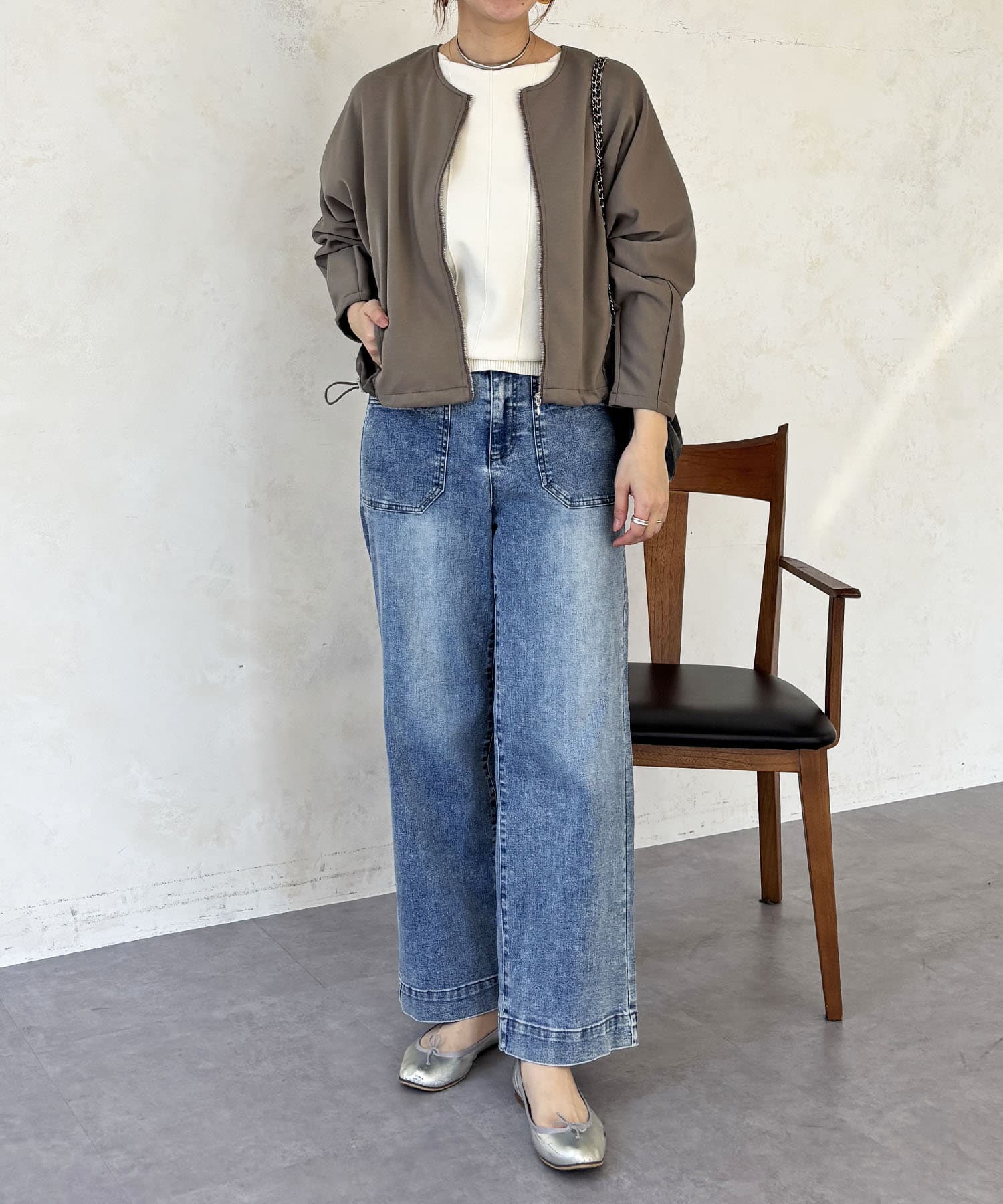 ・着丈短めでボトムを選ばずスッキリした着こなしに