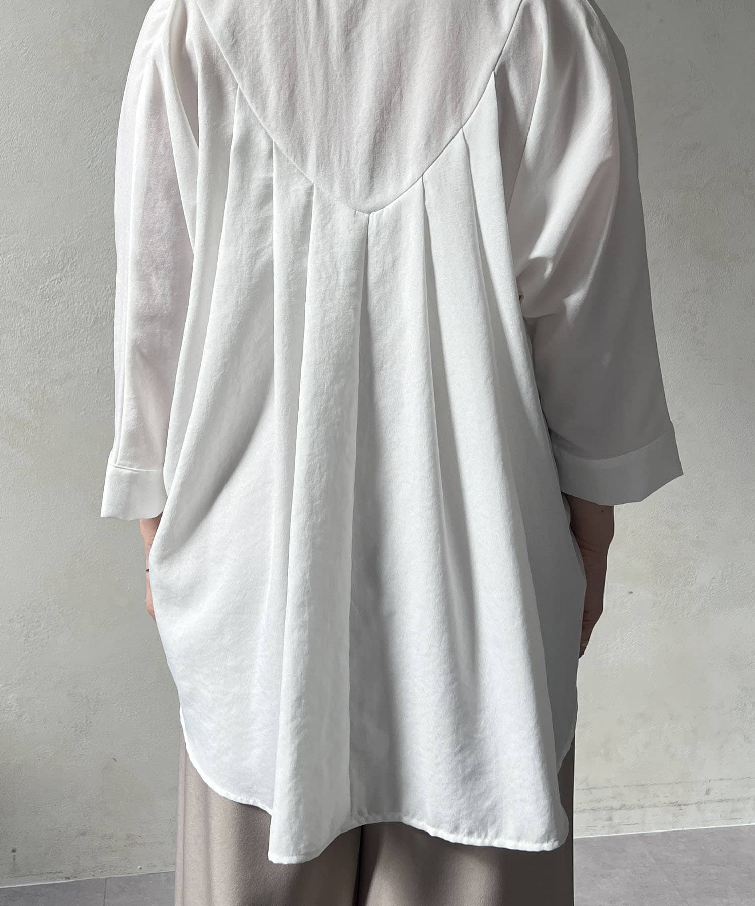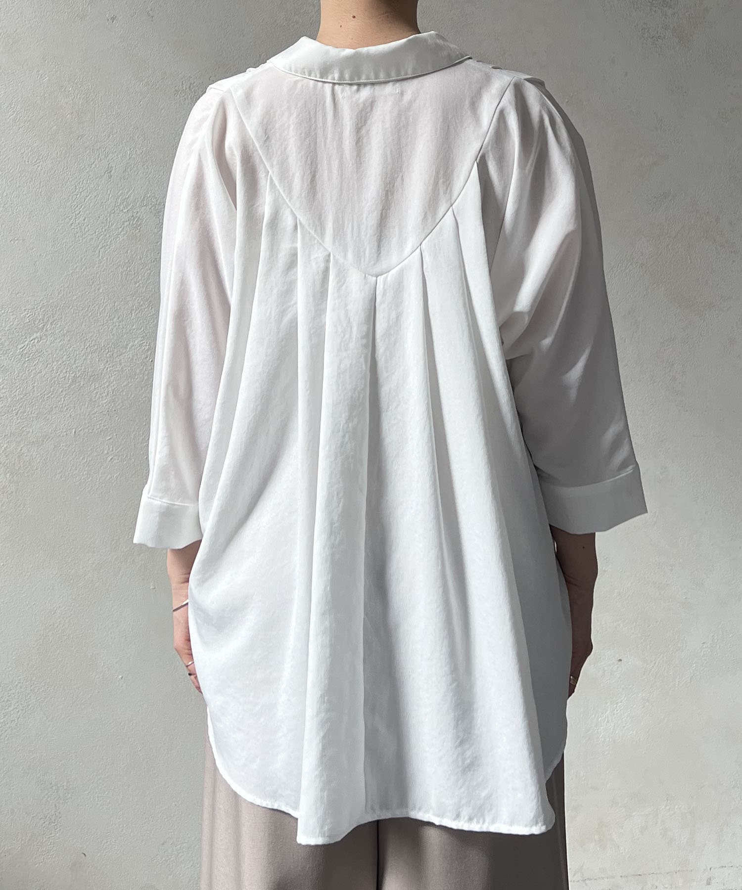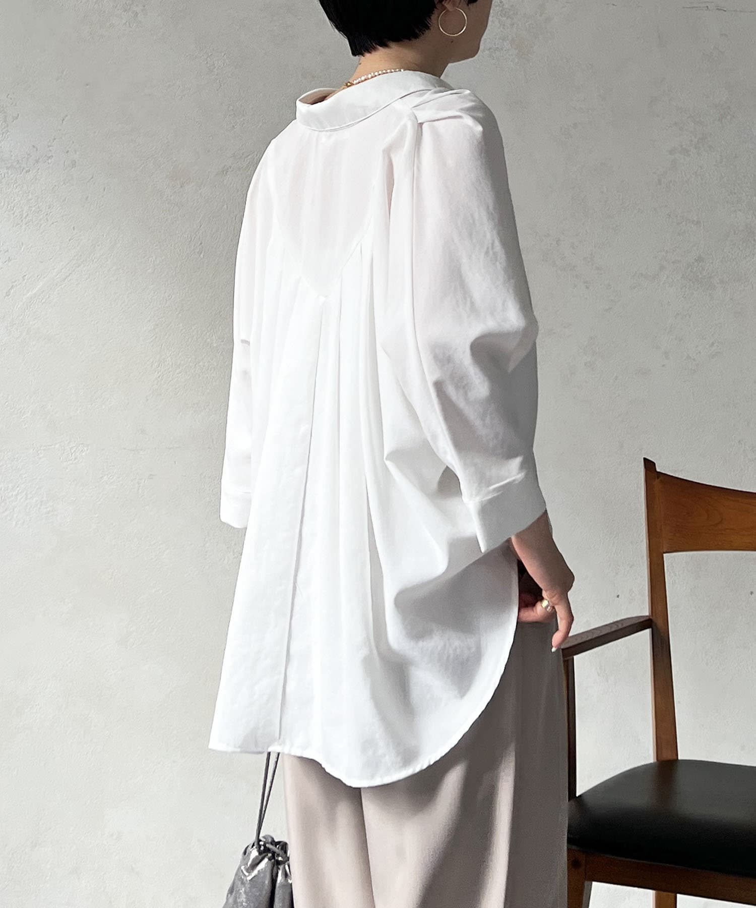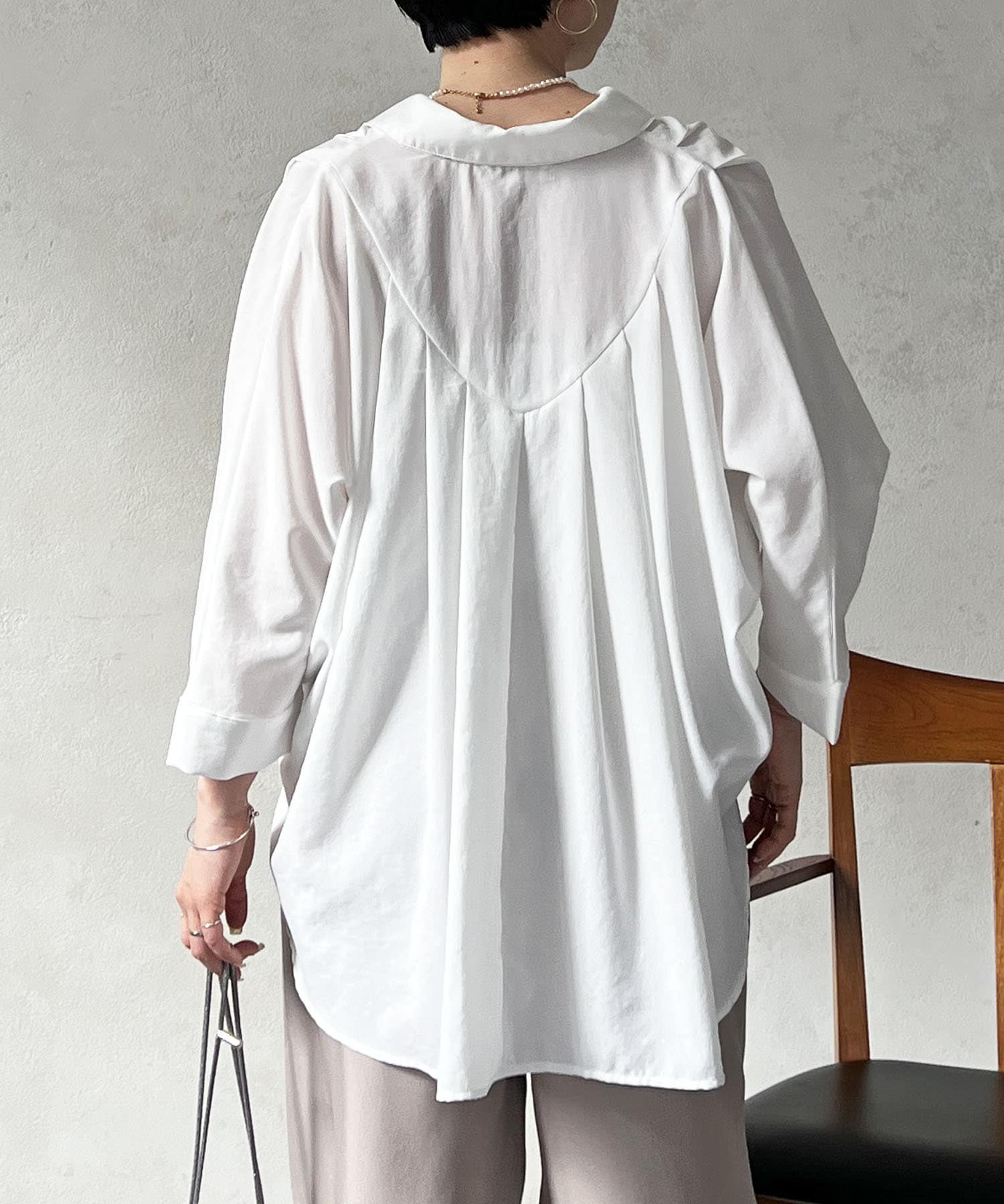 エアリーな素材感と後ろ姿まで可愛いタックブラウス