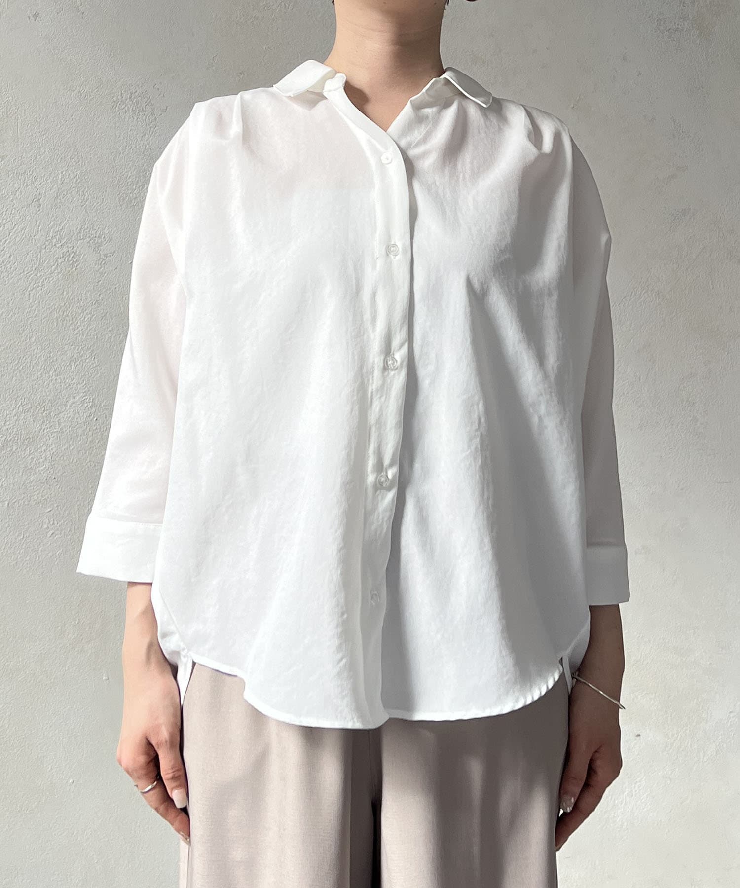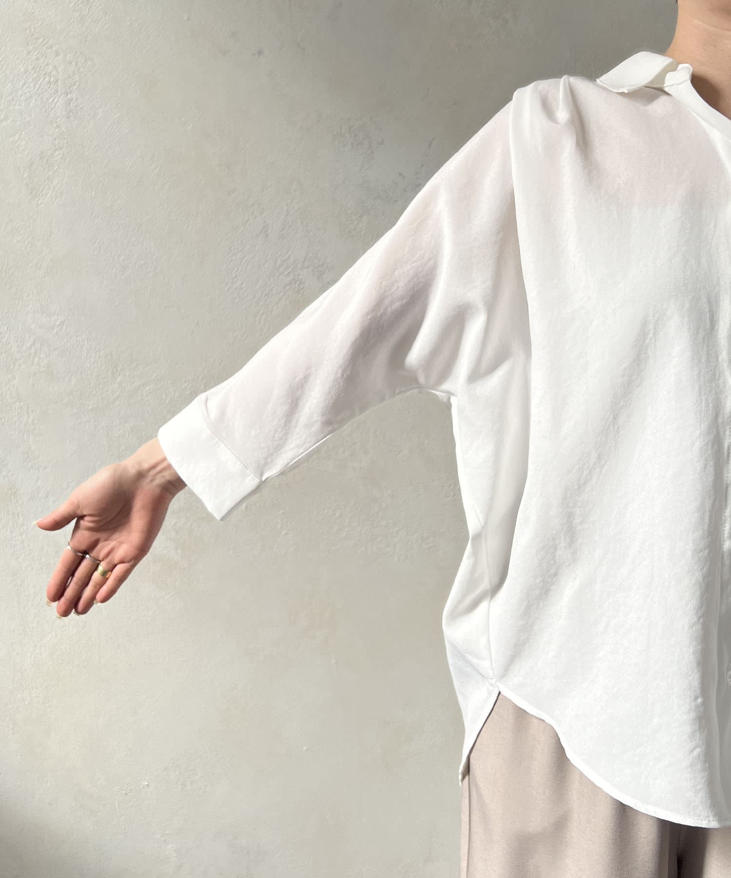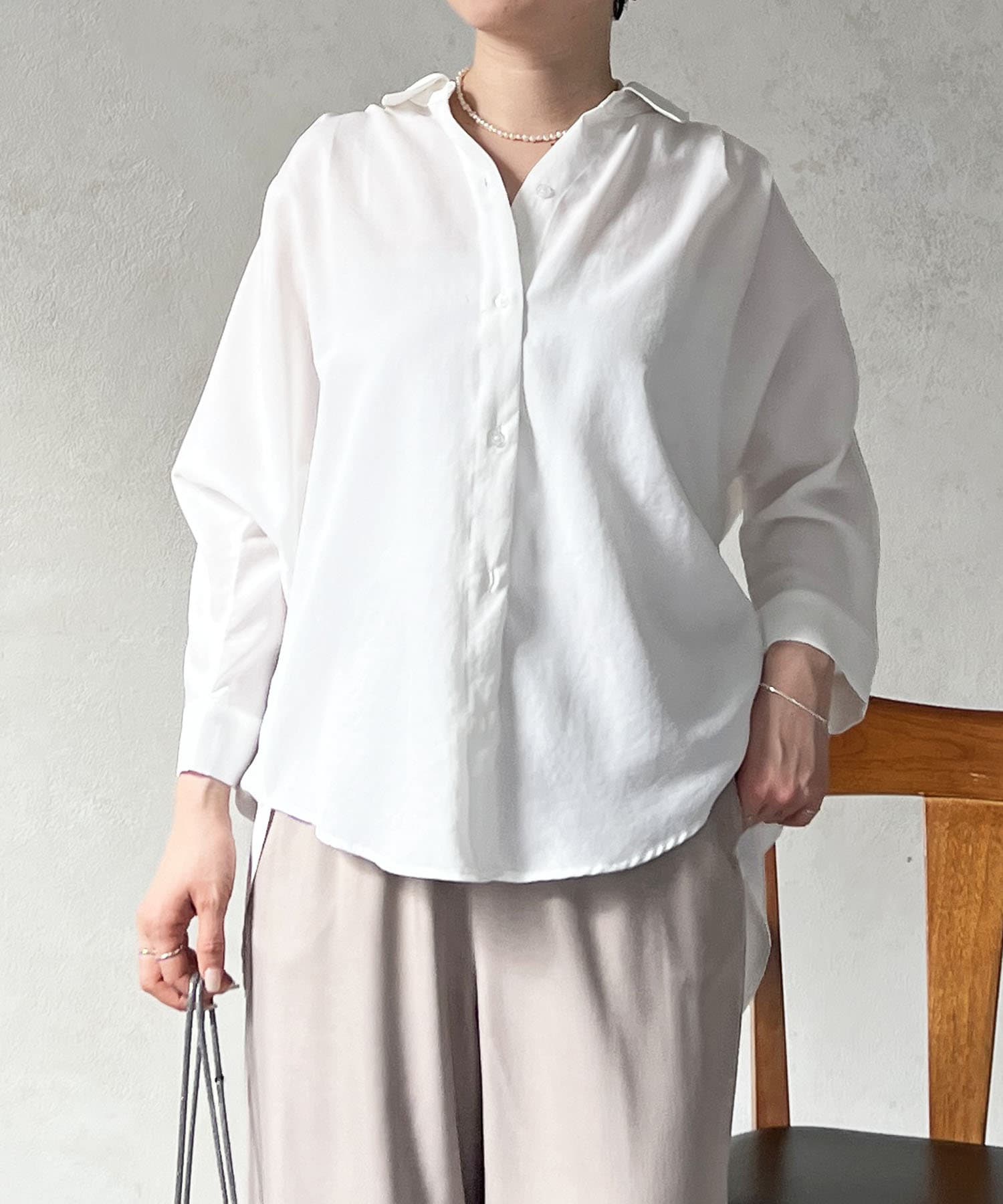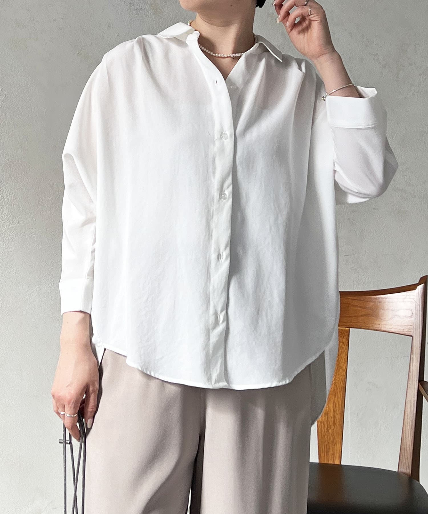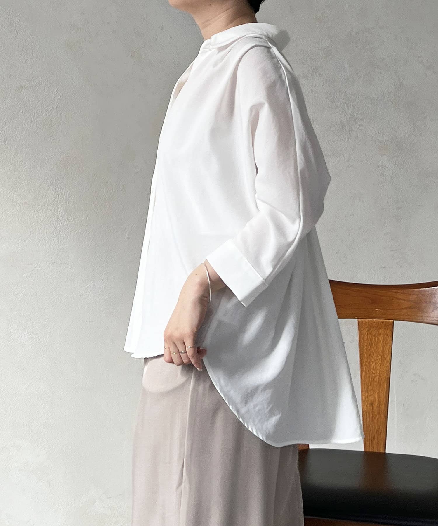 エアリーな素材感と後ろ姿まで可愛いタックブラウス