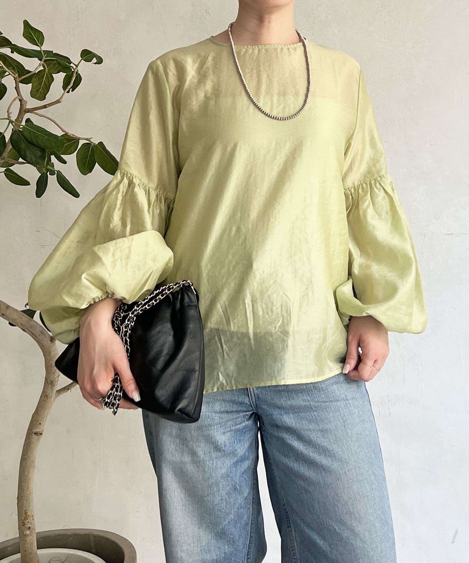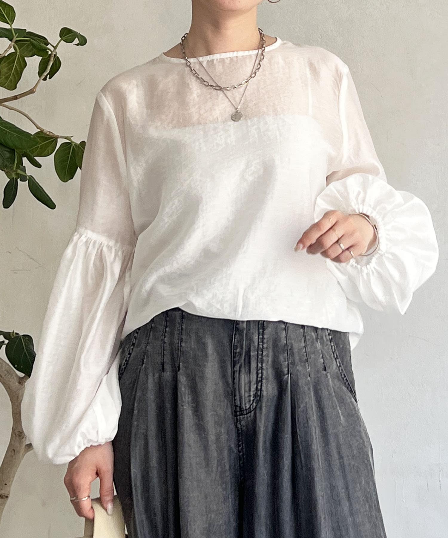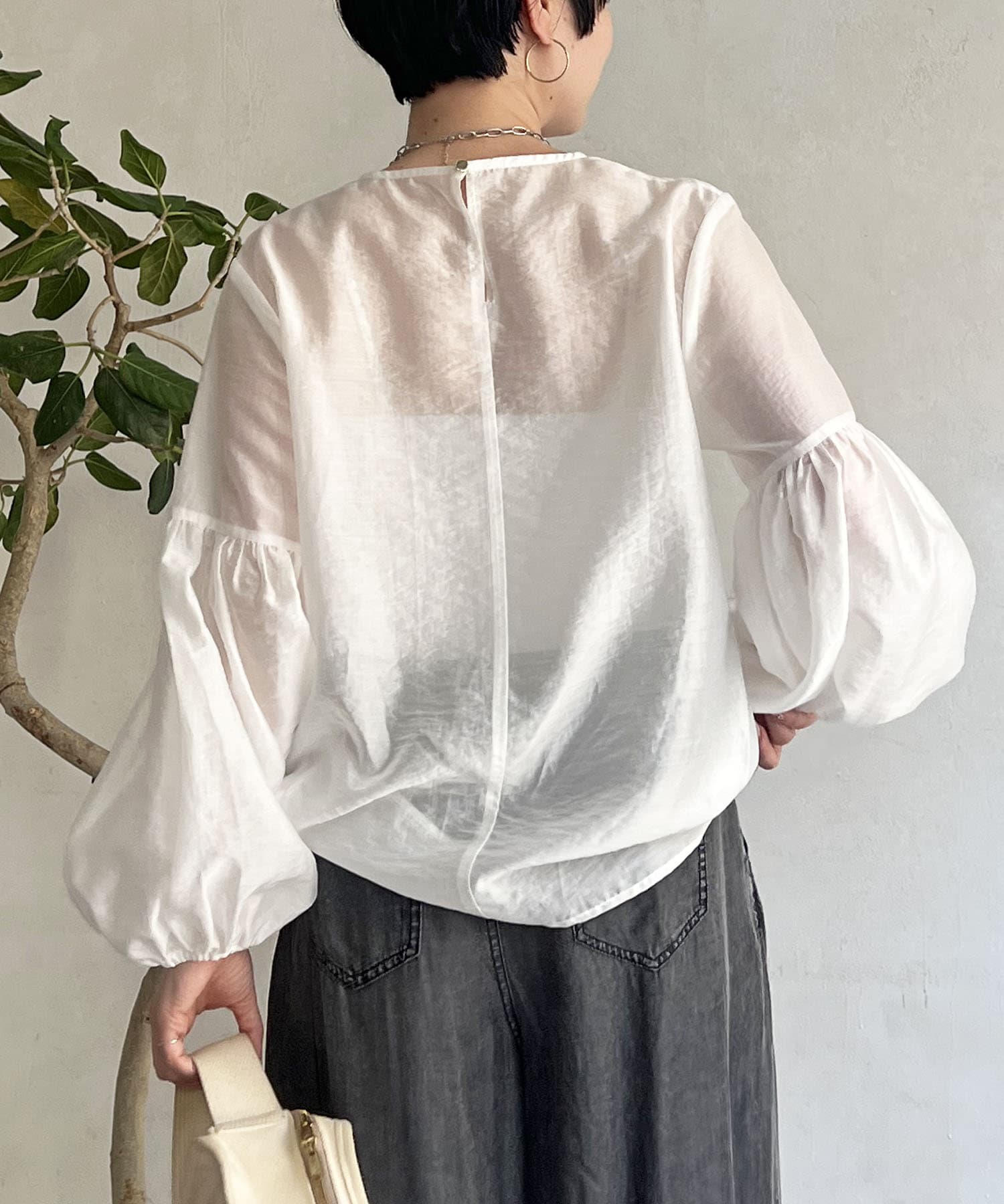 シアーボリュームスリーブブラウス