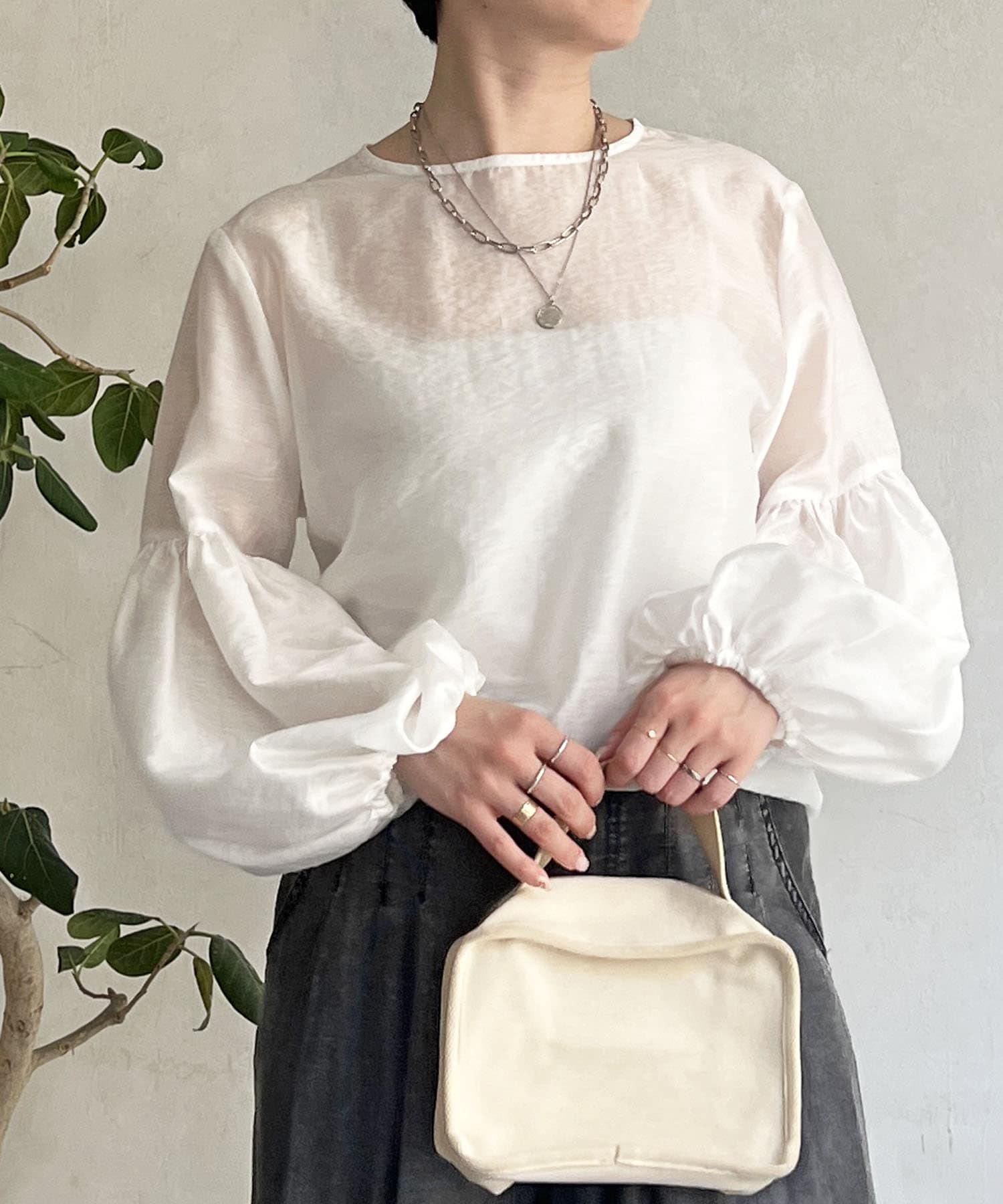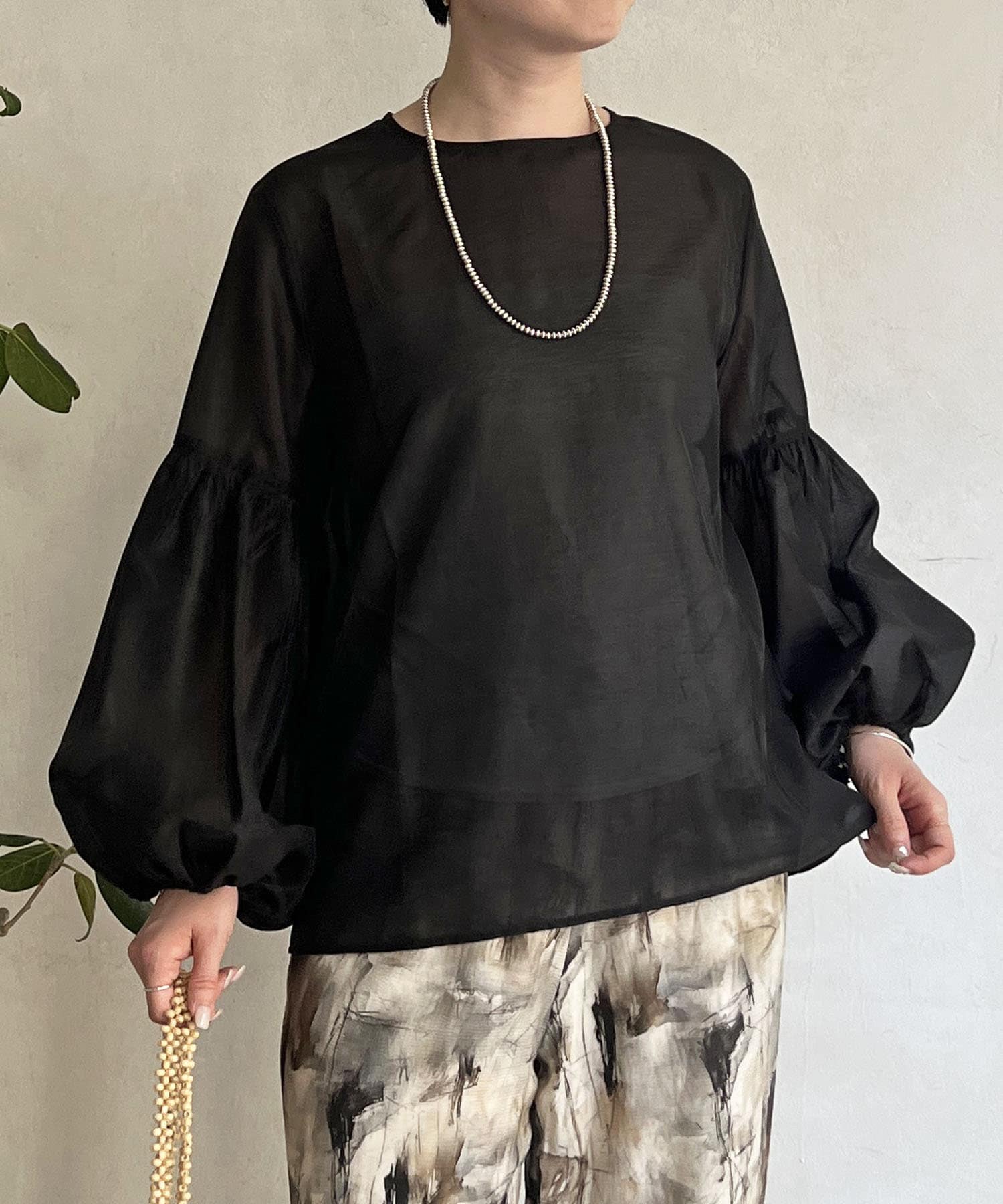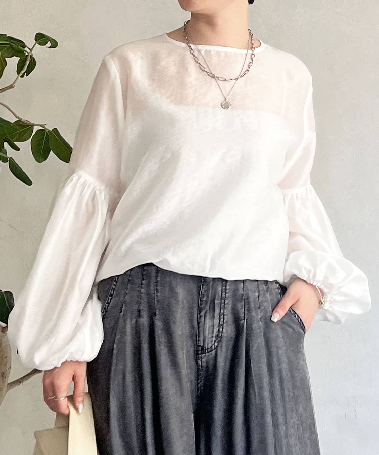 シアーボリュームスリーブブラウス