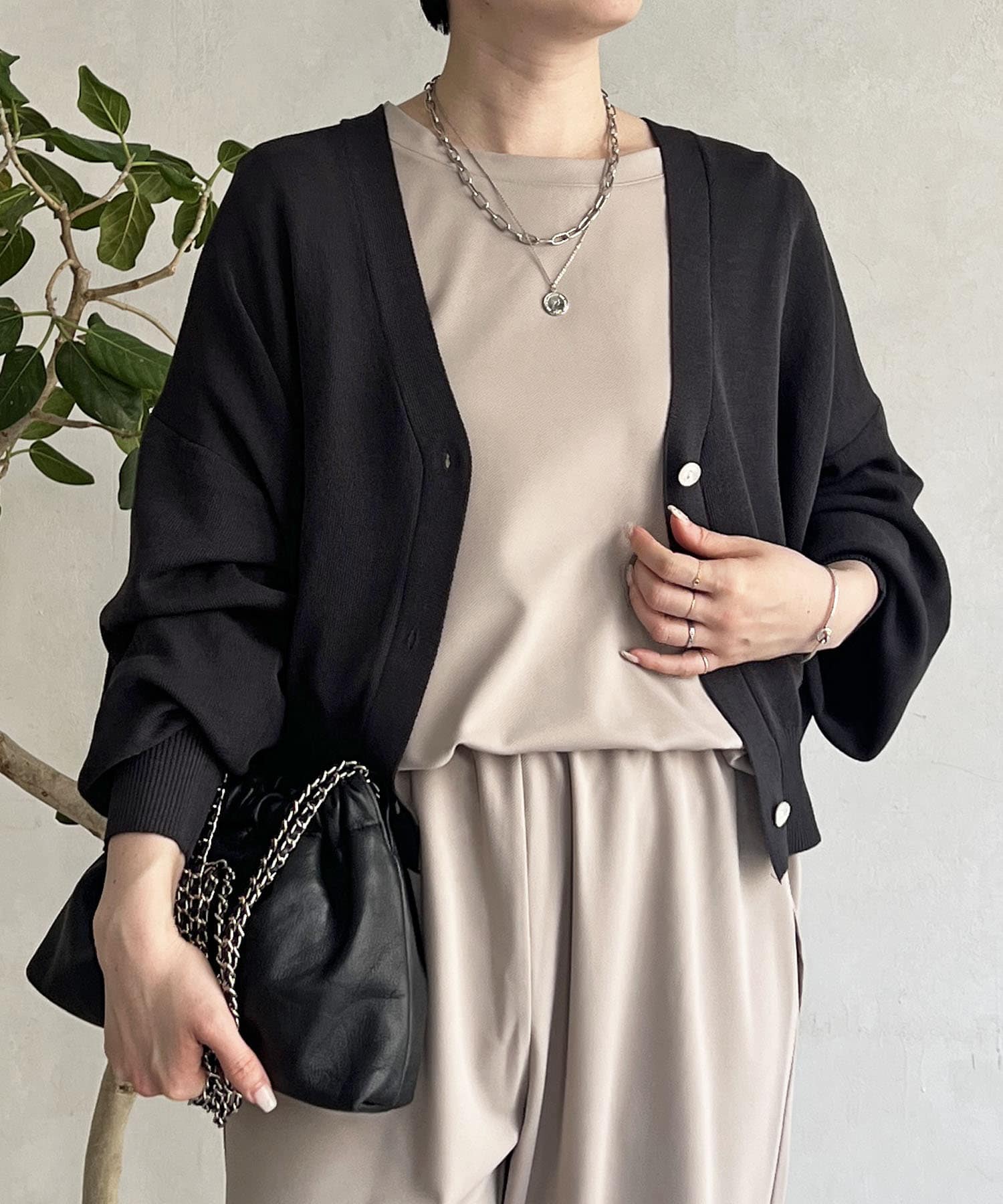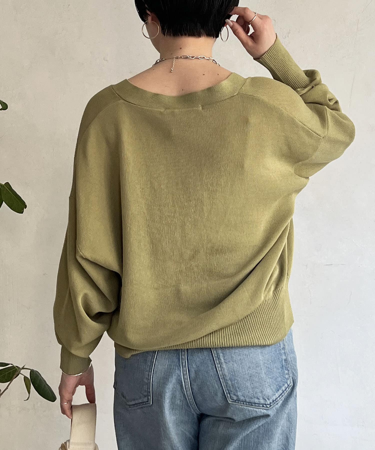 ・デコルテや顔回りをスッキリ見せてくれるVネックデザイン