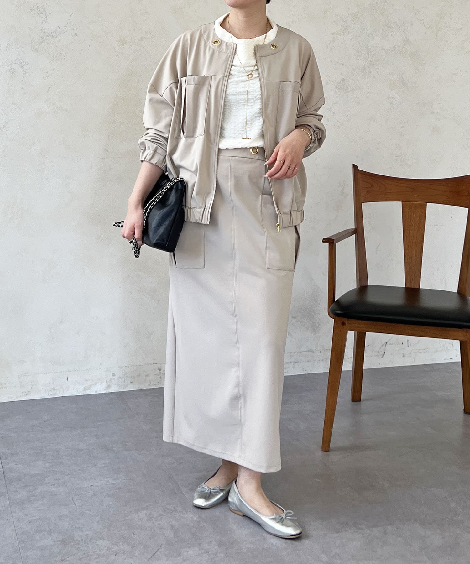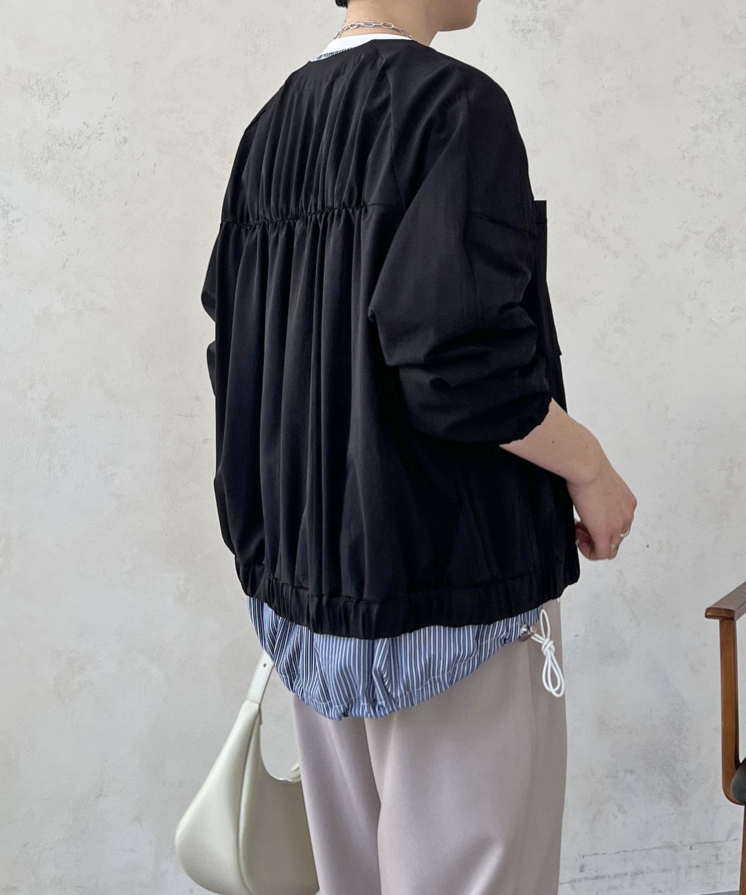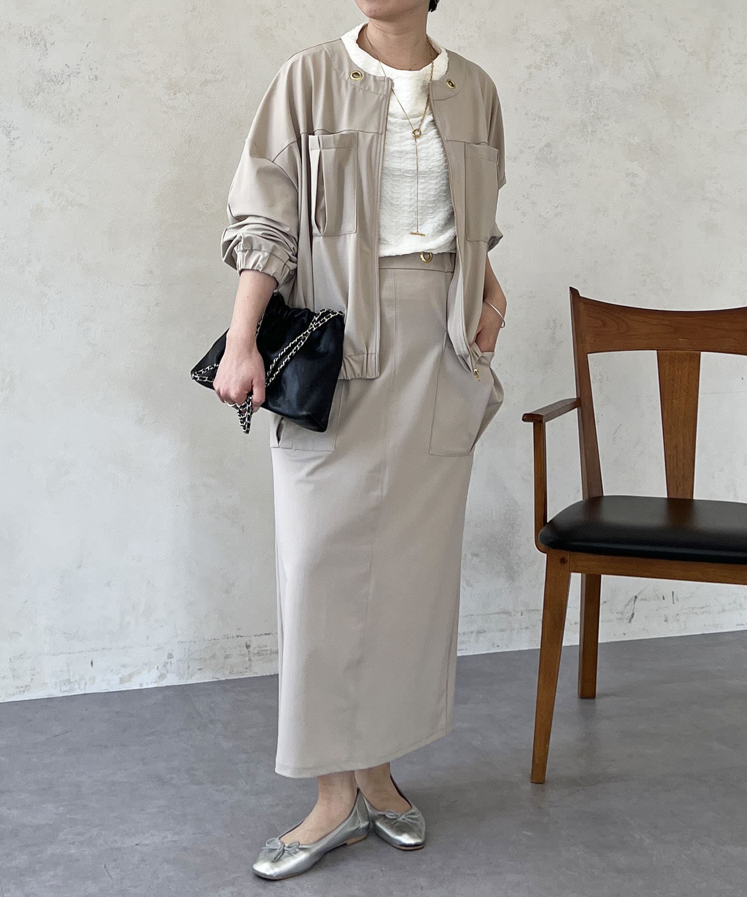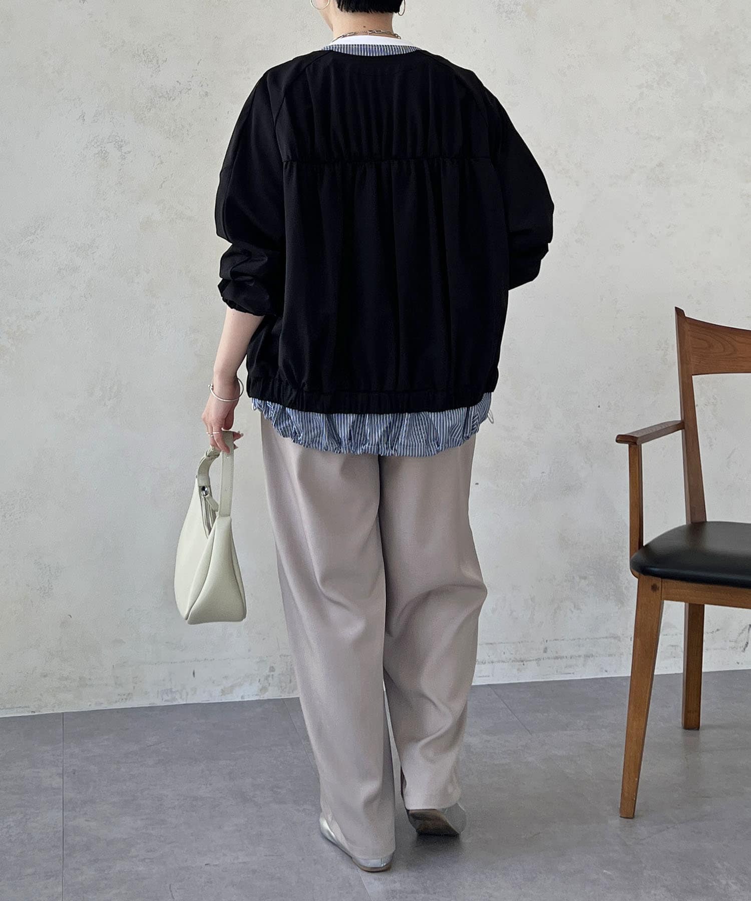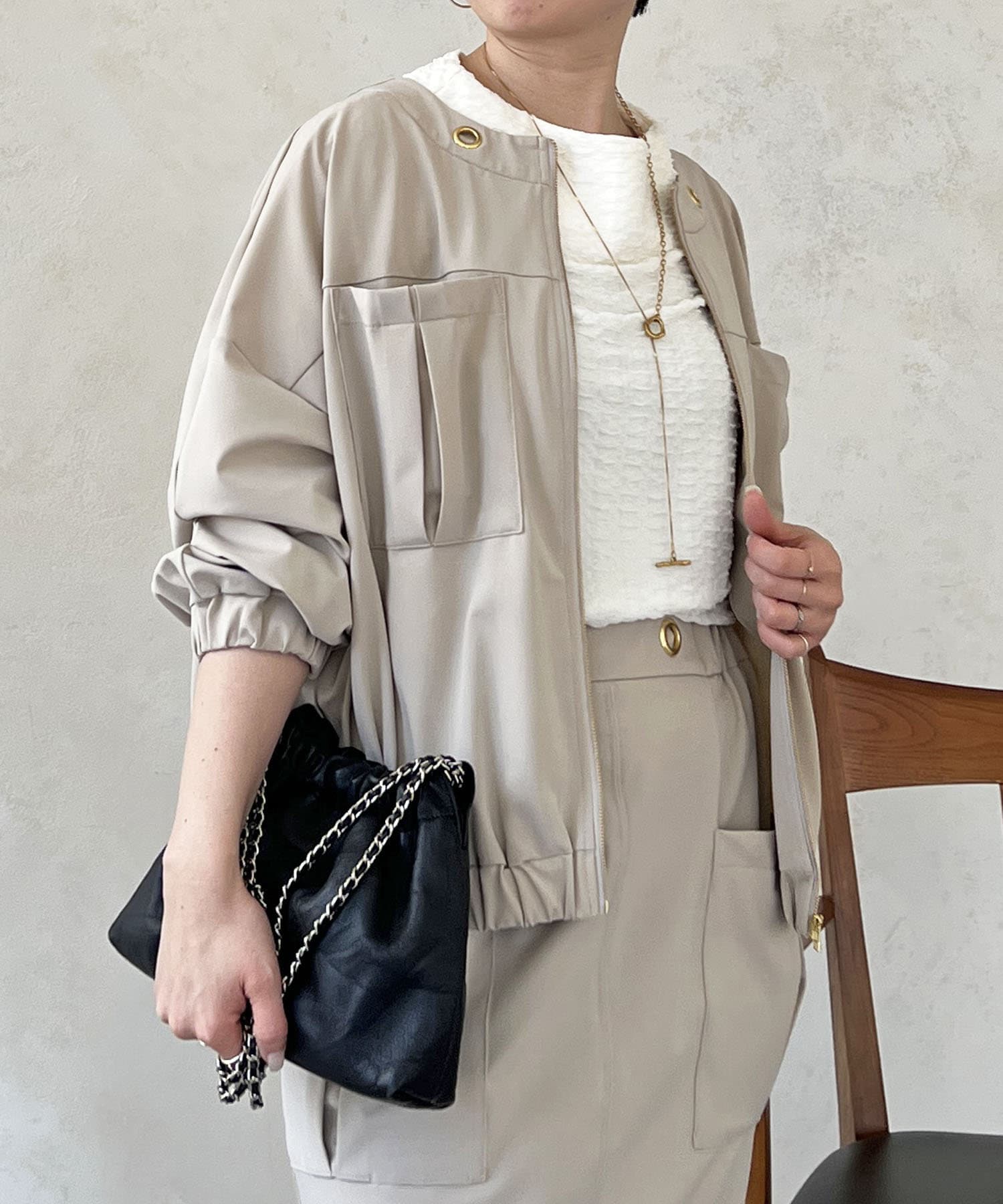 ・ノーカラーなので、大人のきれいめ感ある雰囲気で着られる